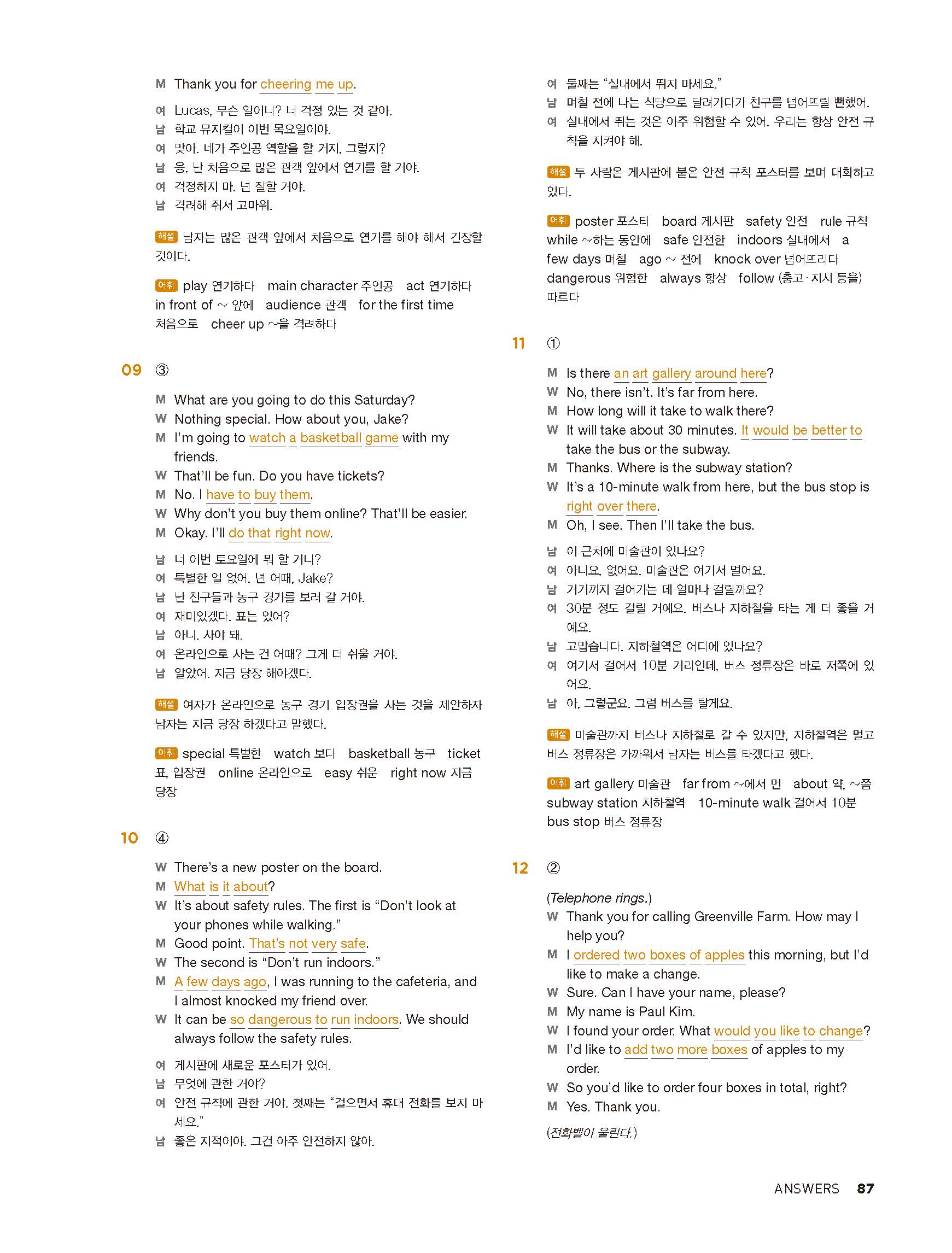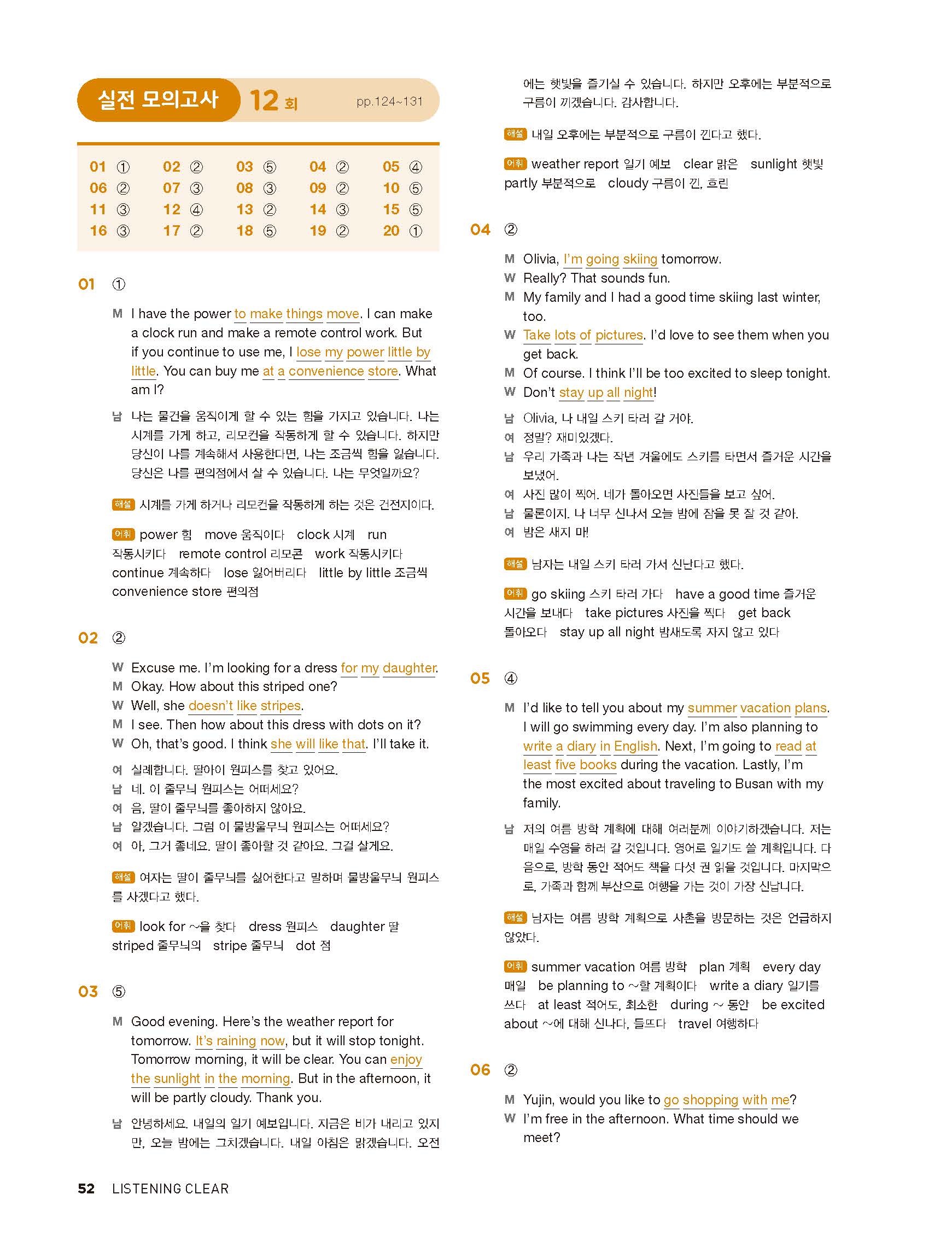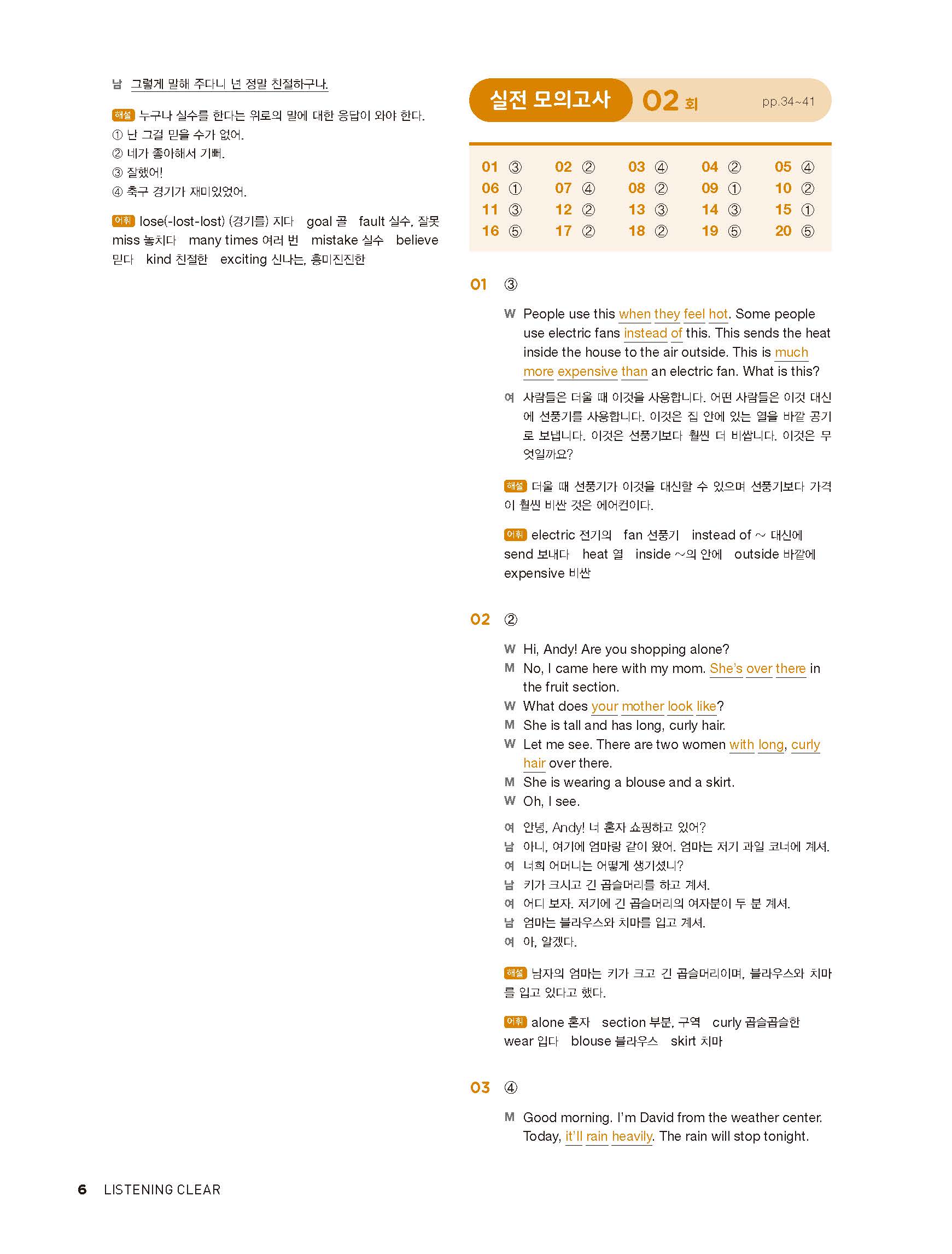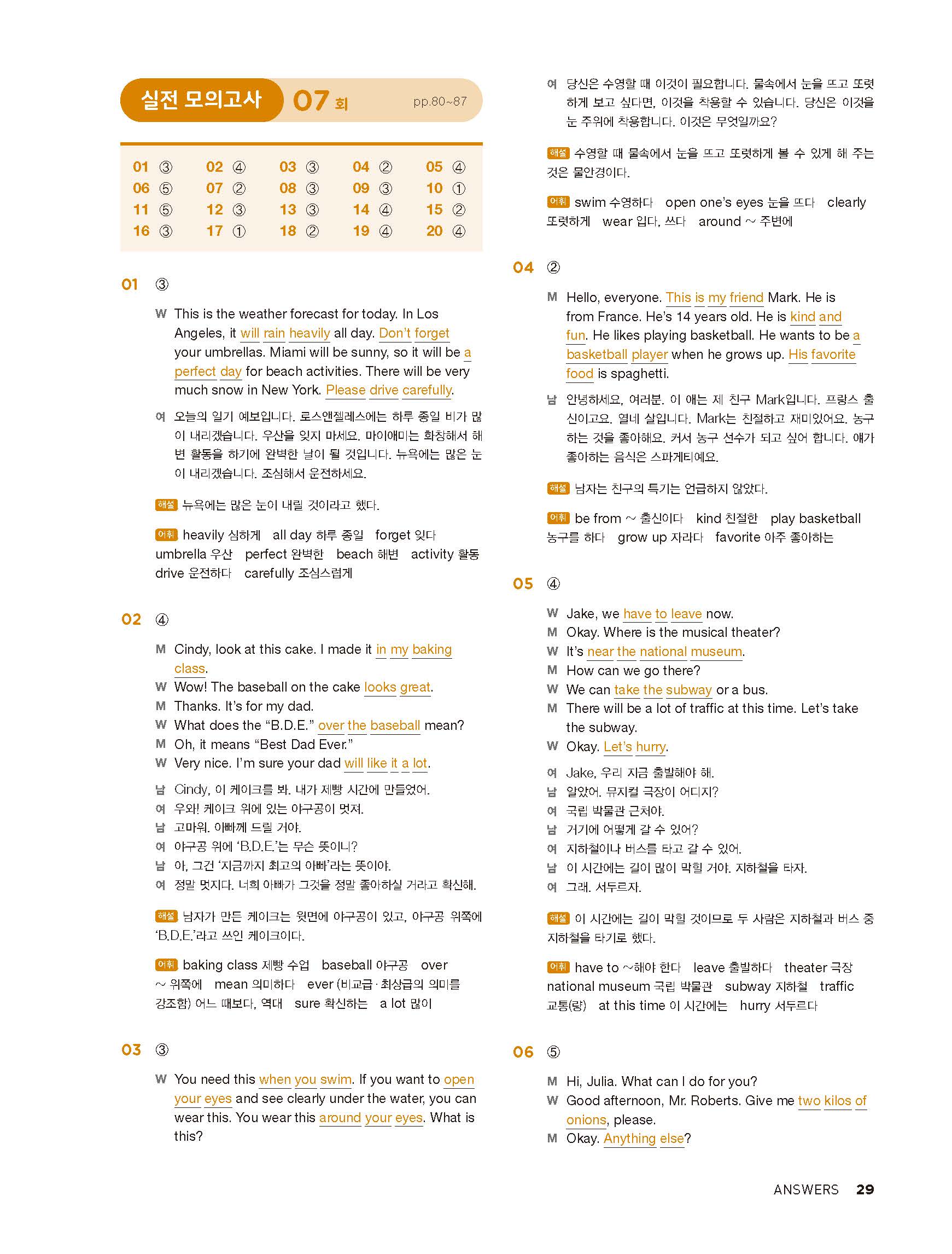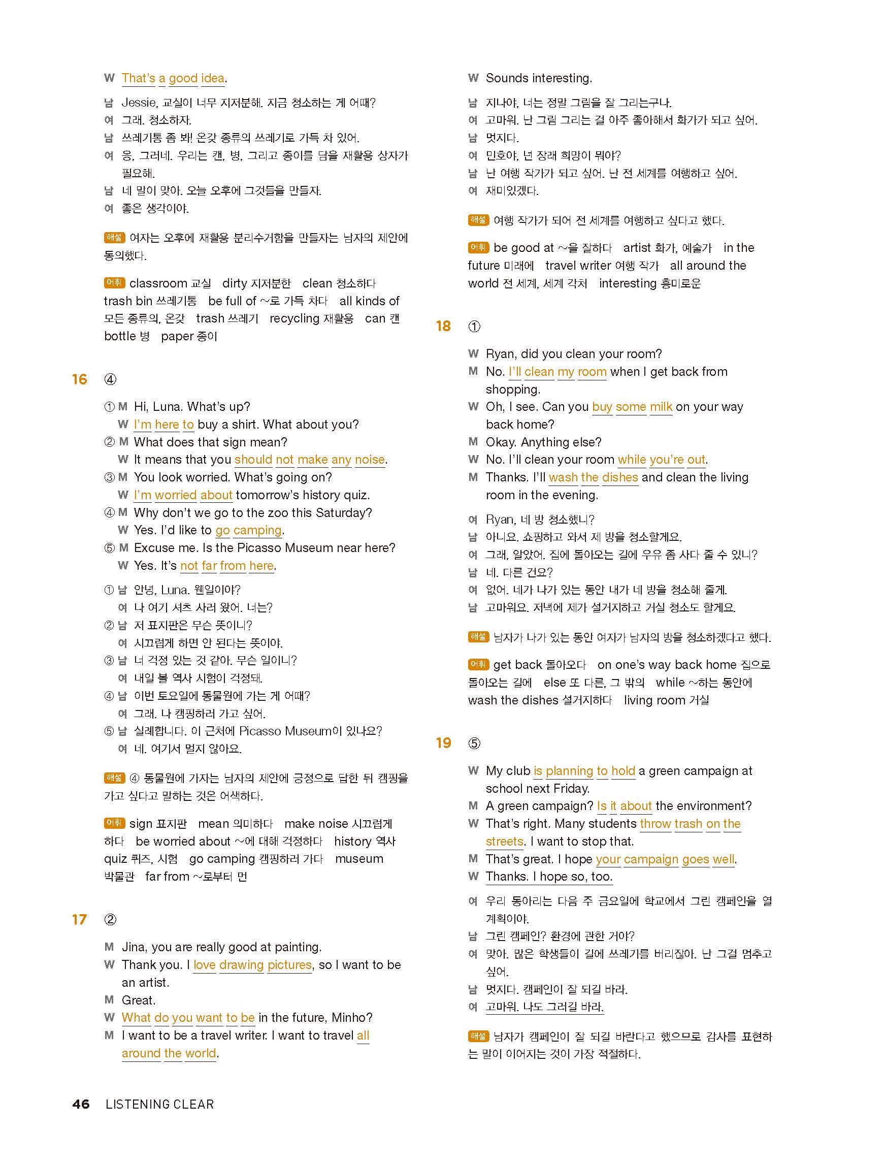 중학리스닝클리어 레벨1 답지 해설지 사진답지 빠른답지 모바일최적화