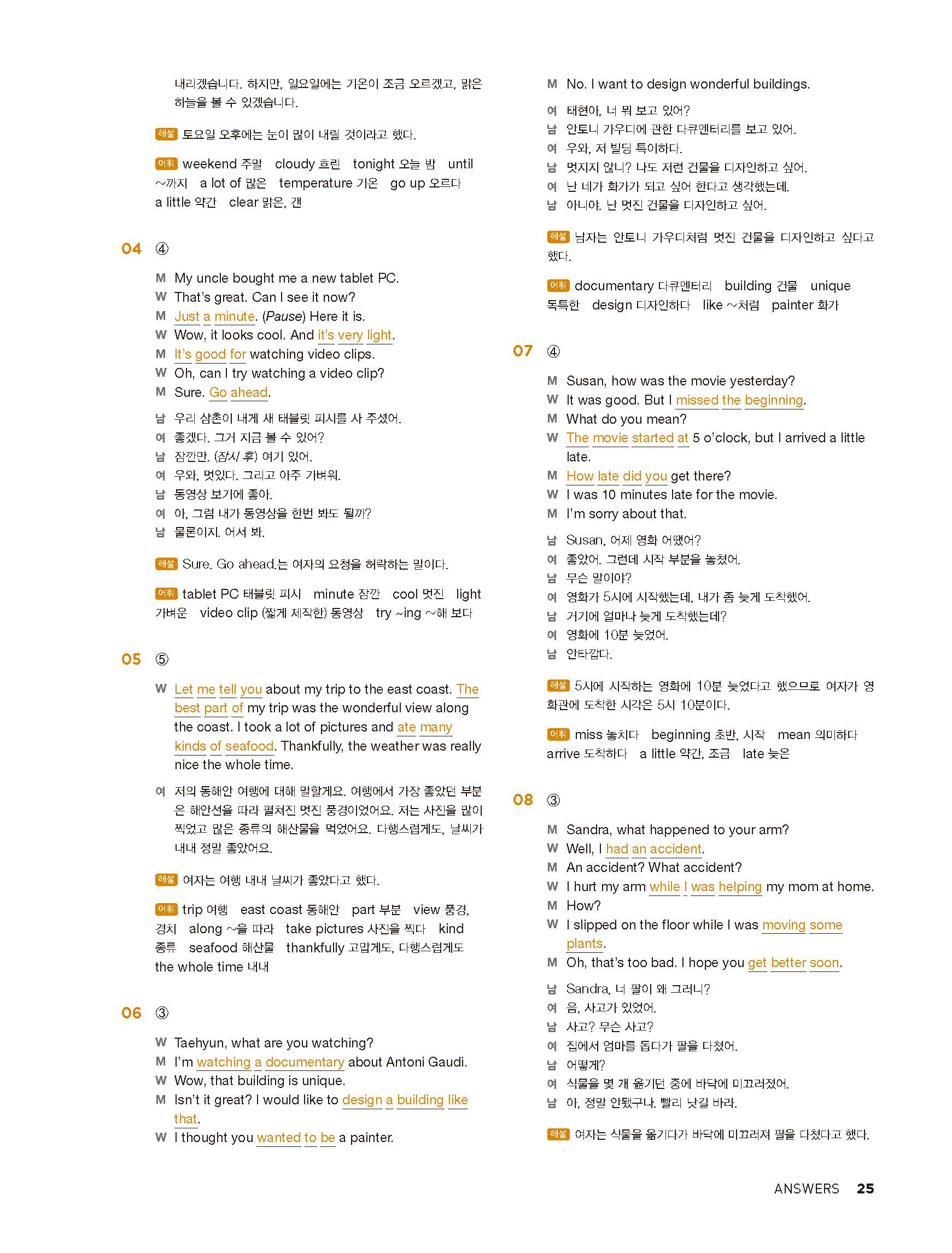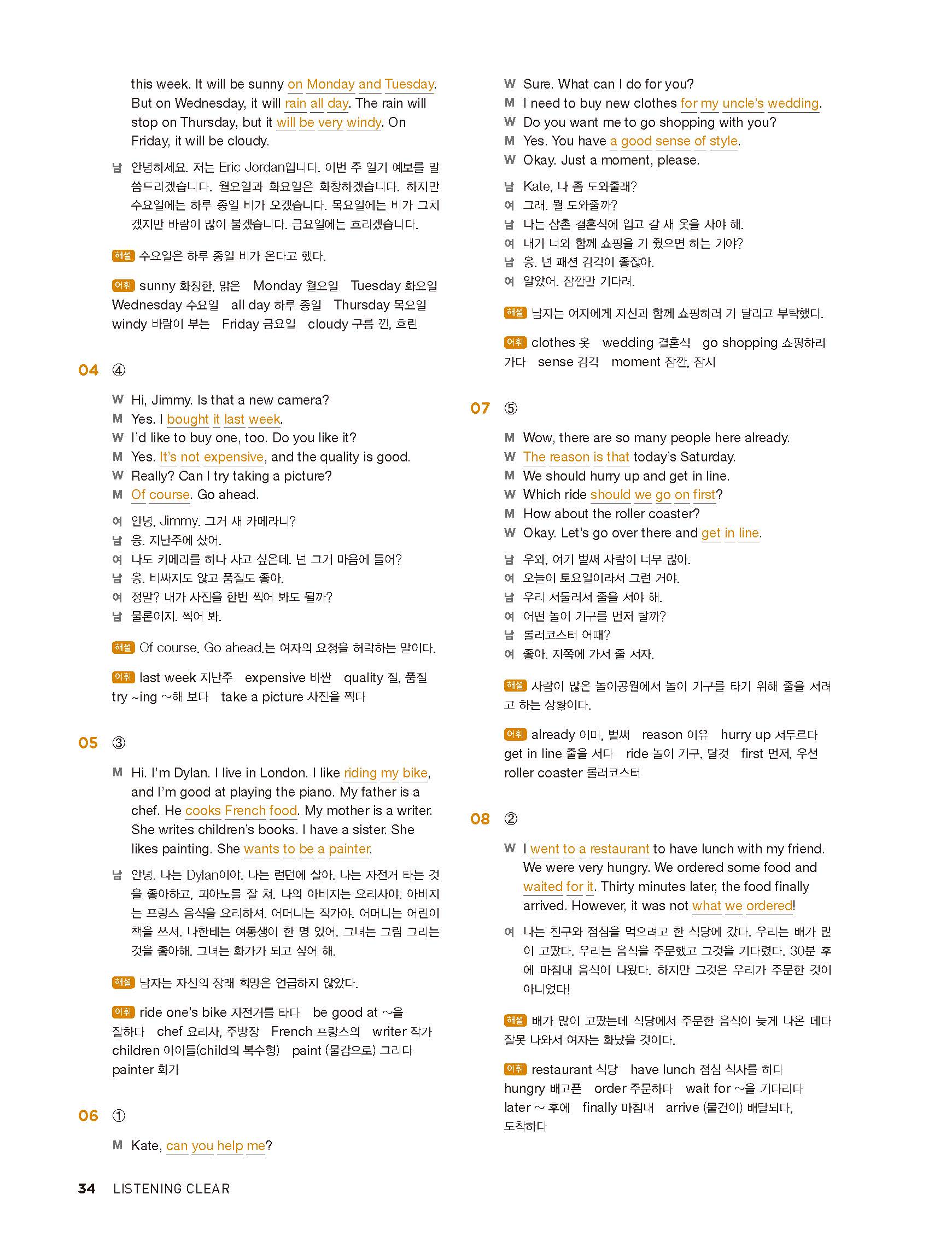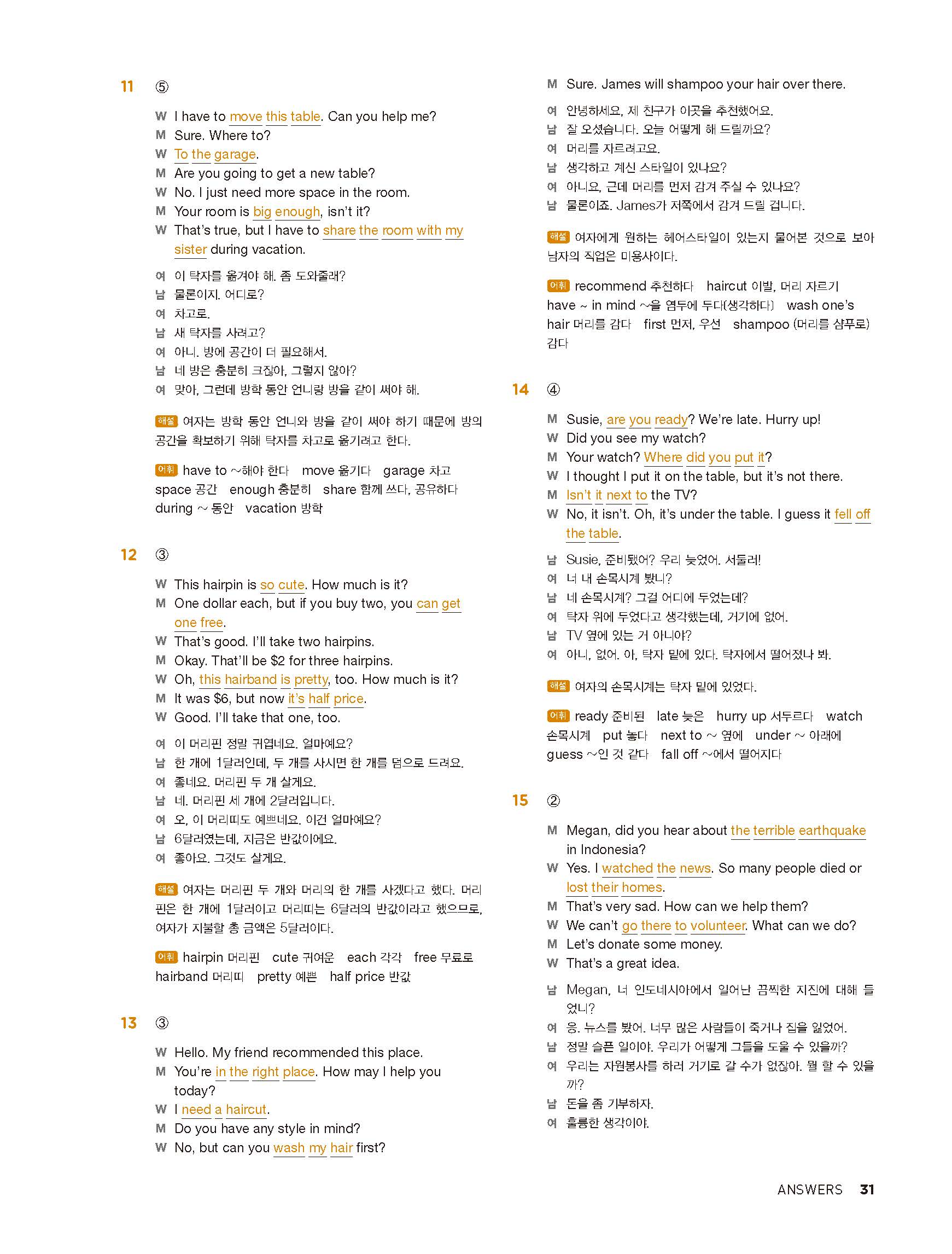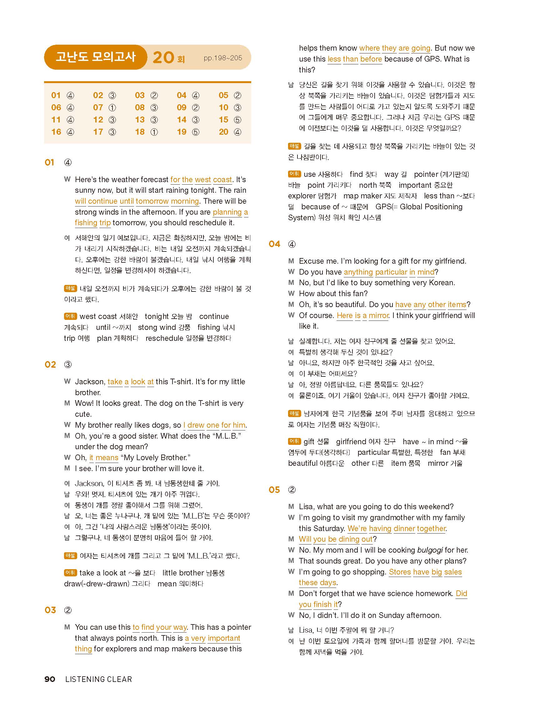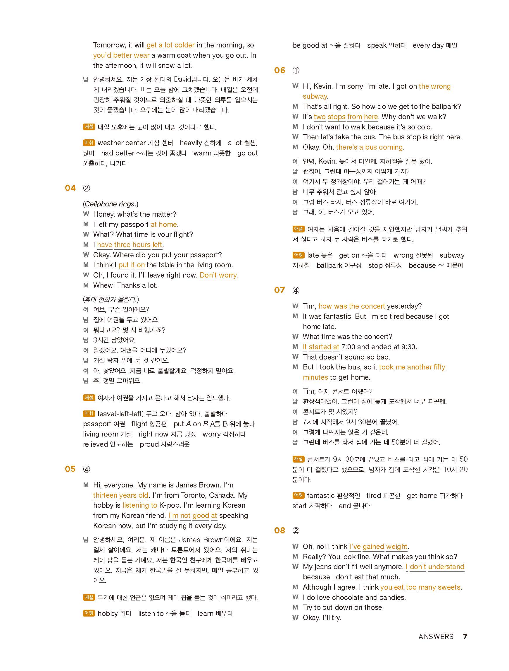 중학리스닝클리어 레벨1 답지 해설지 사진답지 빠른답지 모바일최적화