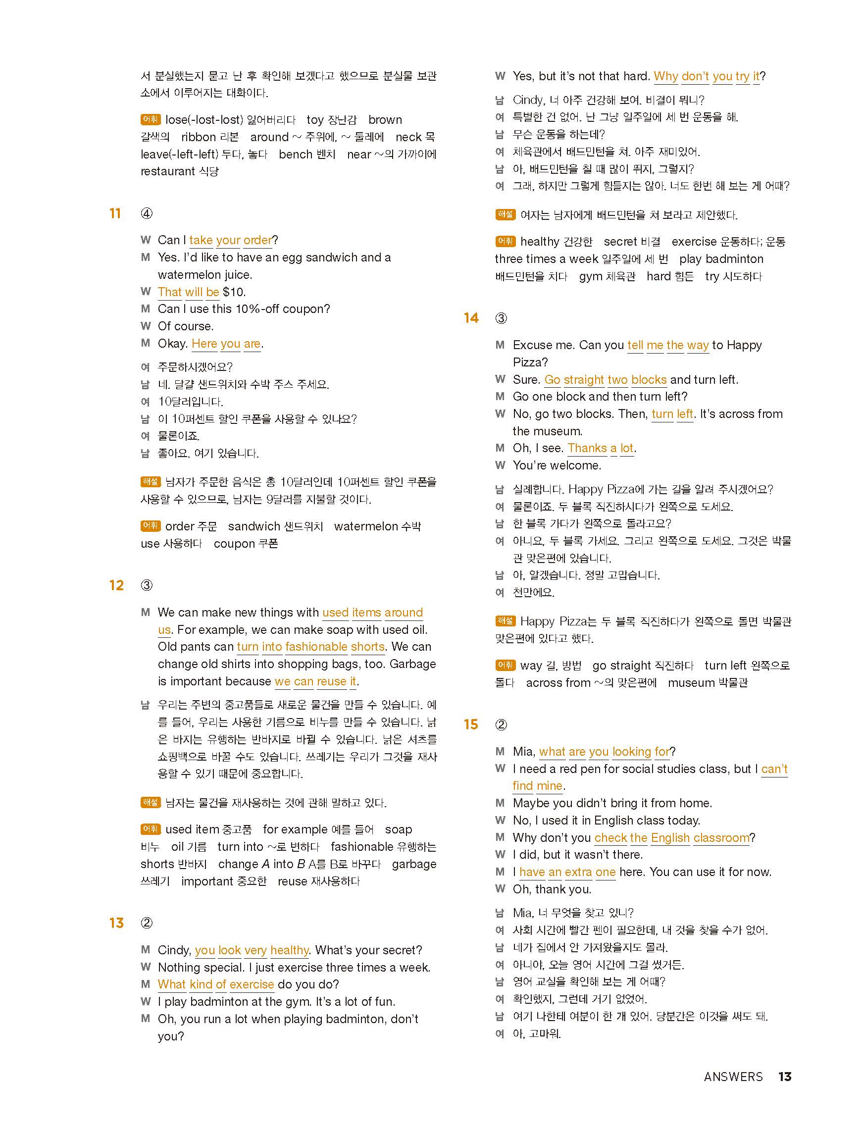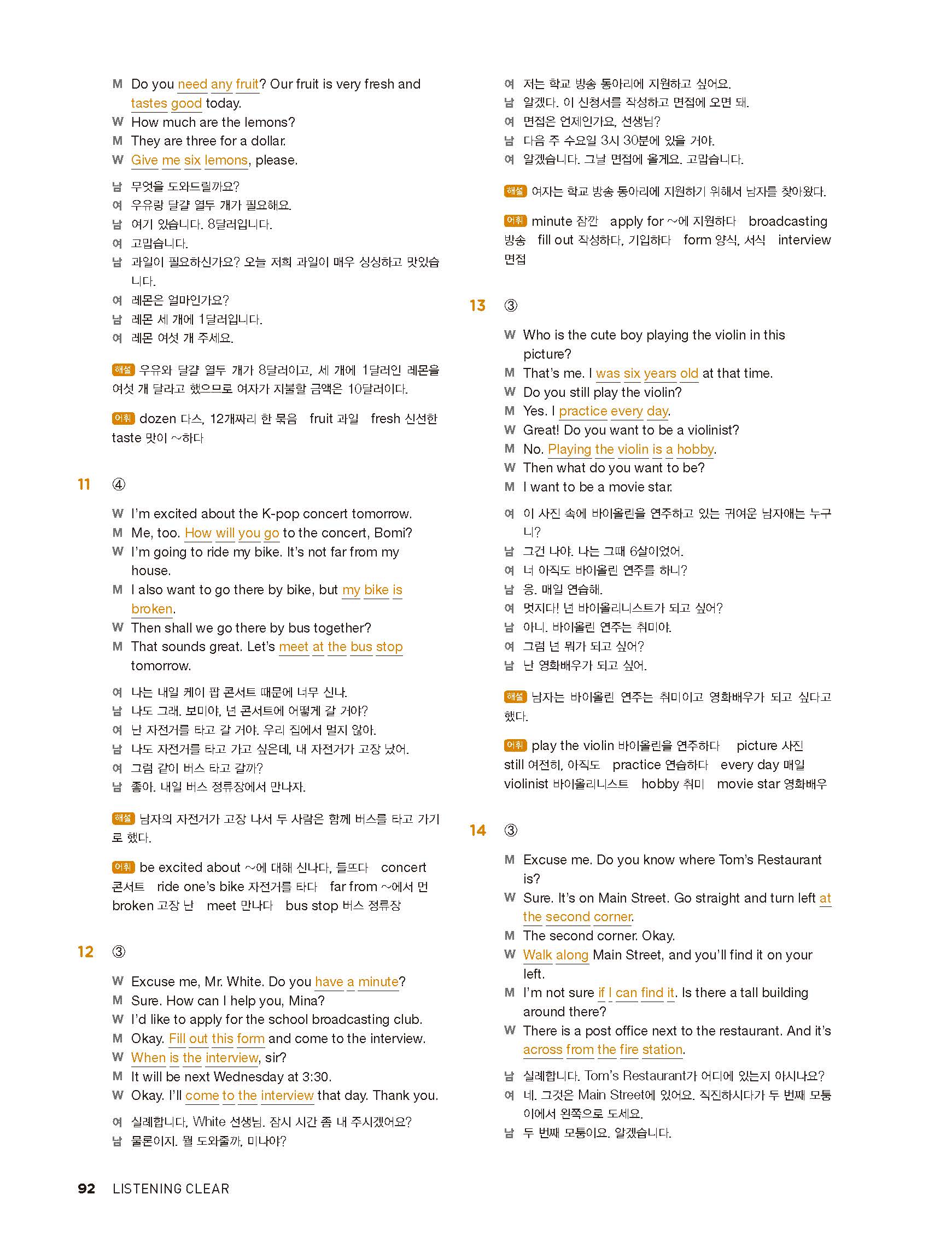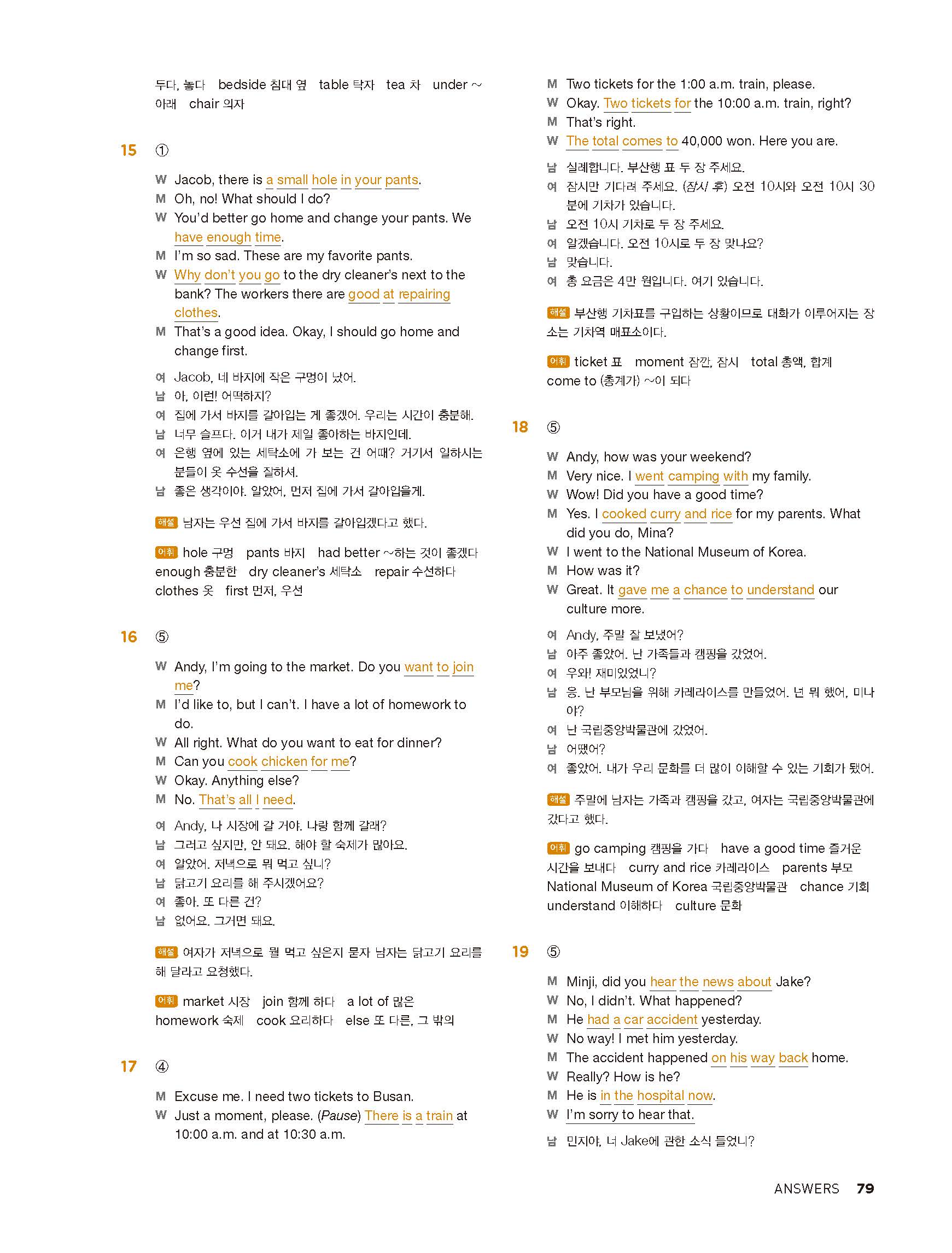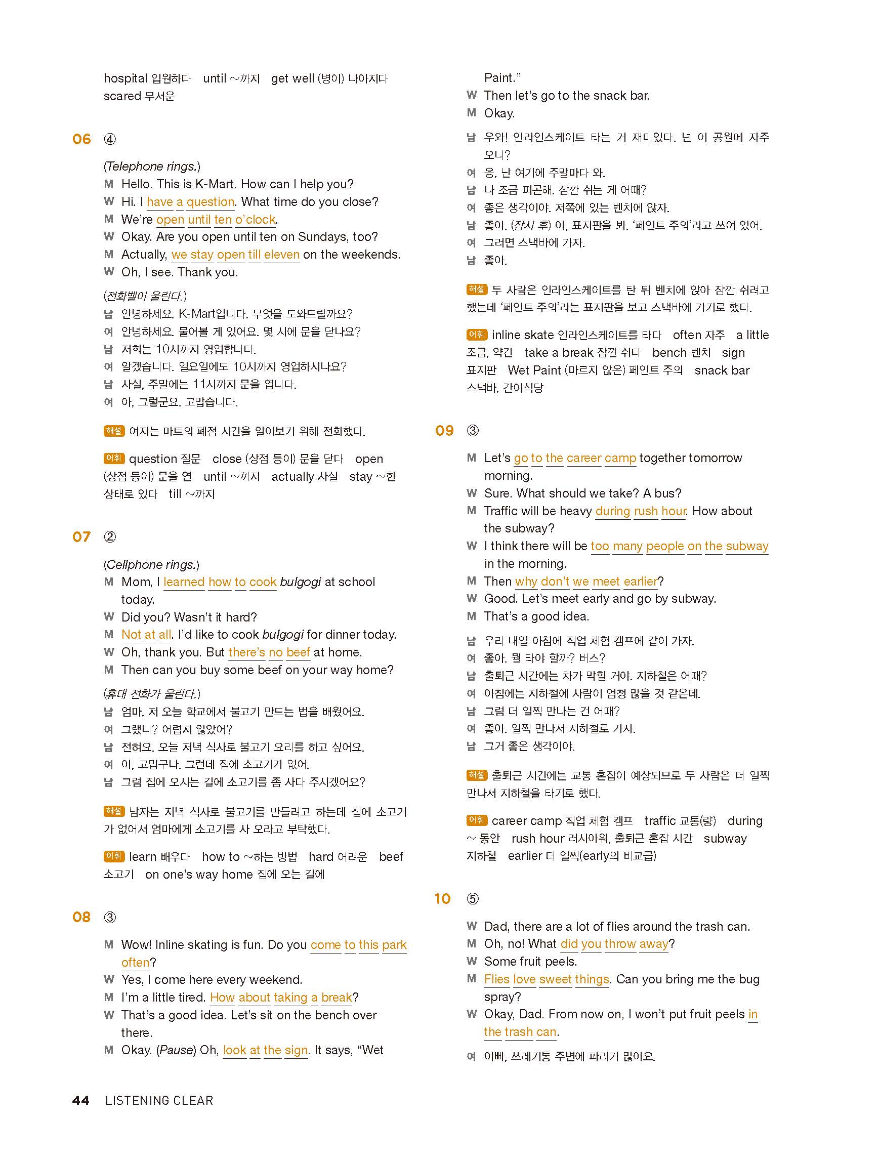 중학리스닝클리어 레벨1 답지 해설지 사진답지 빠른답지 모바일최적화