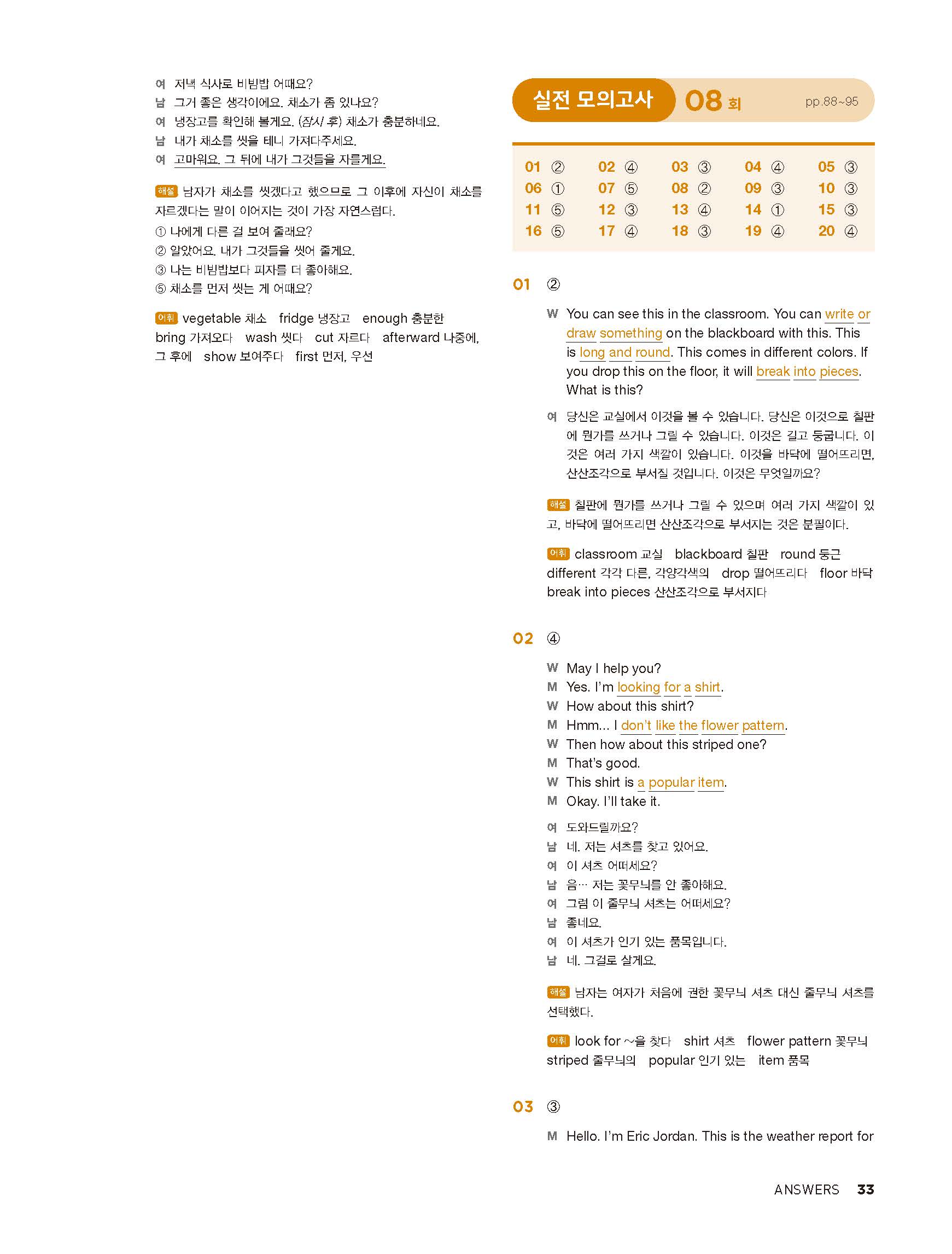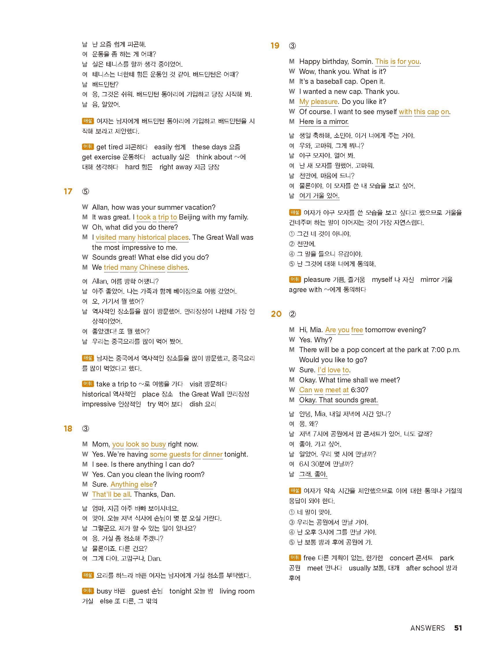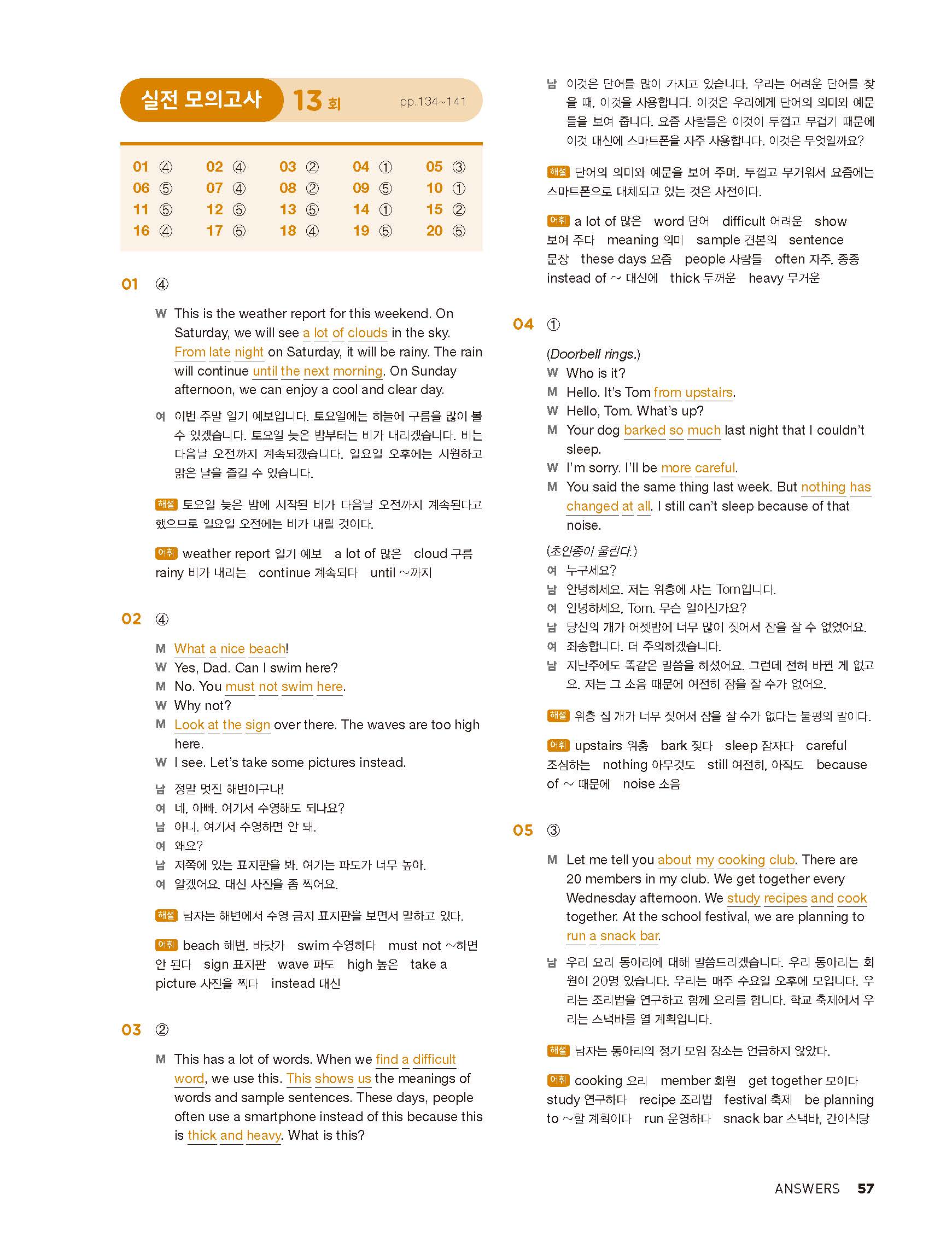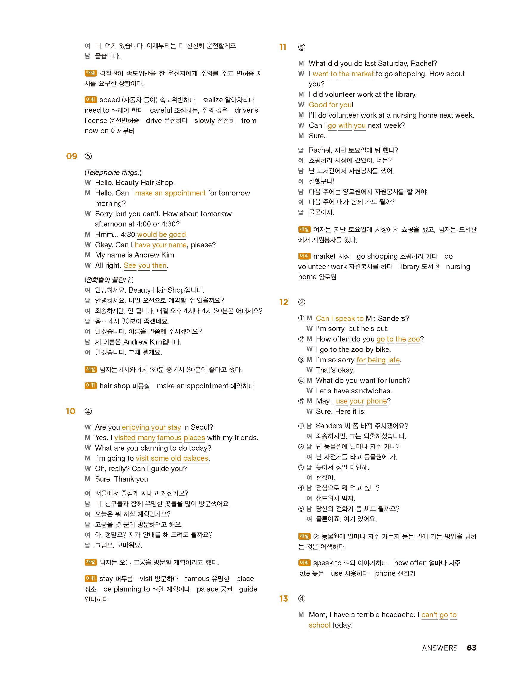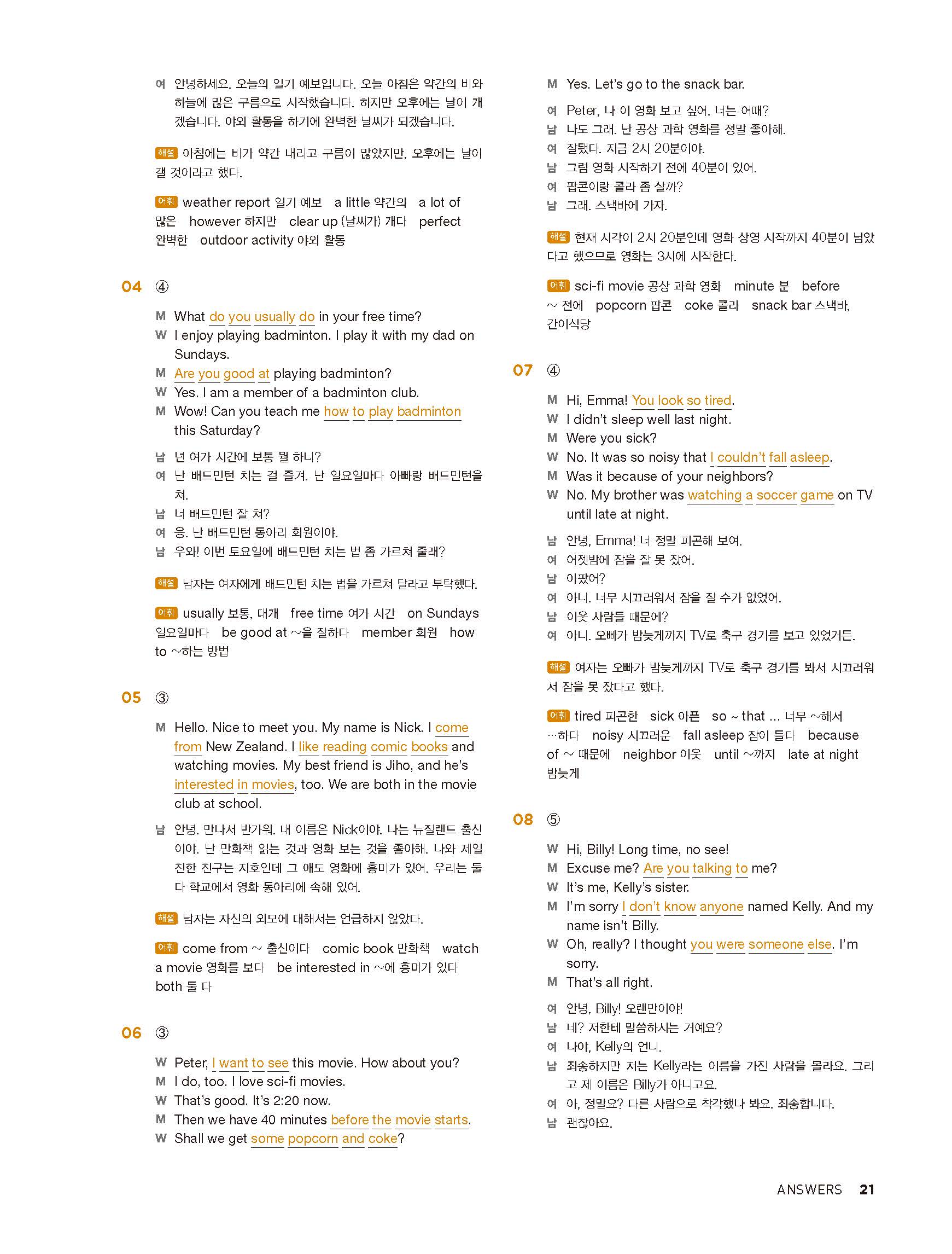 중학리스닝클리어 레벨1 답지 해설지 사진답지 빠른답지 모바일최적화
