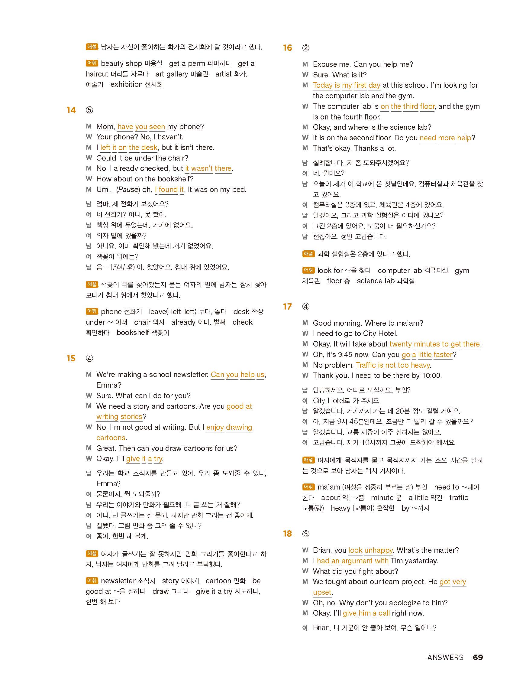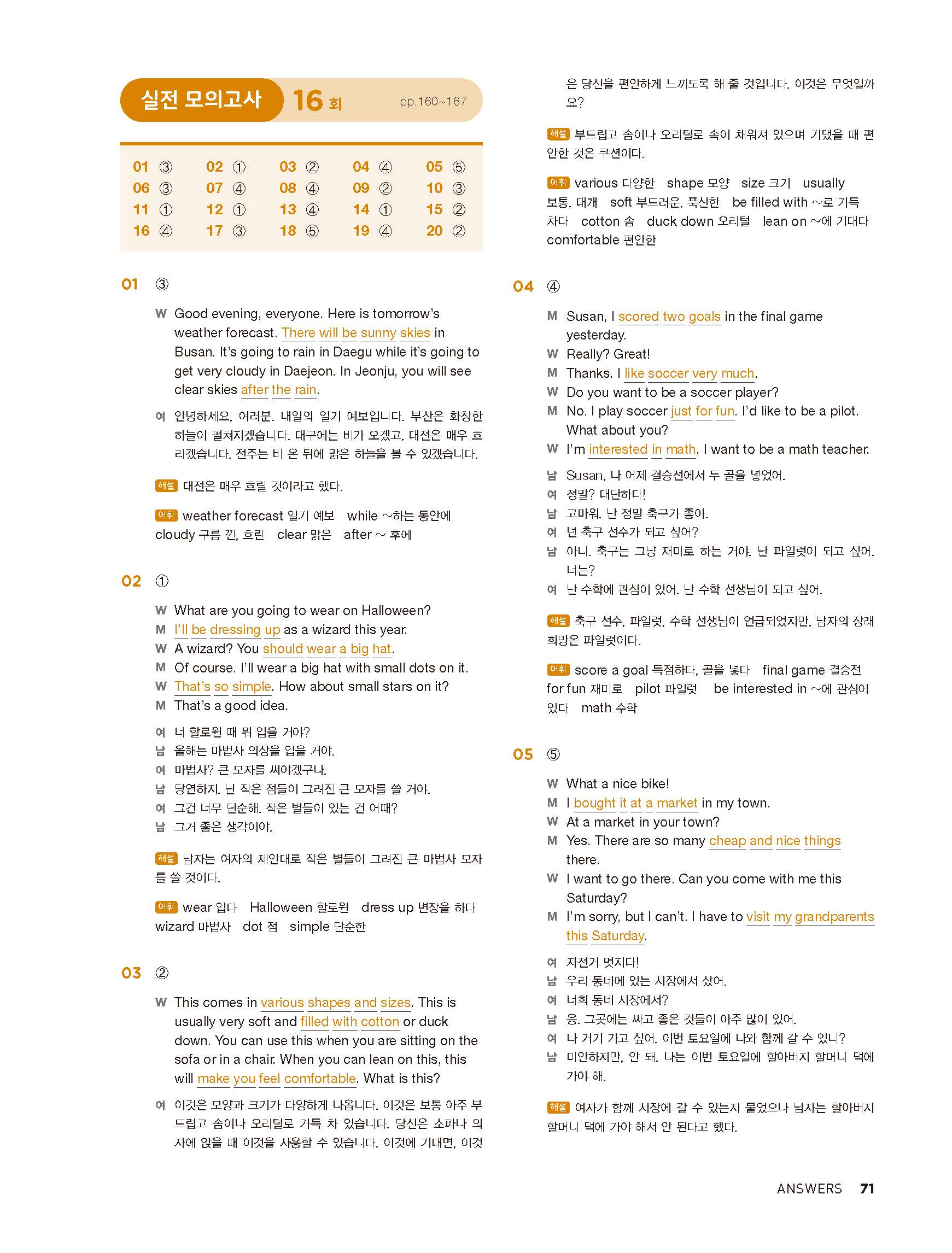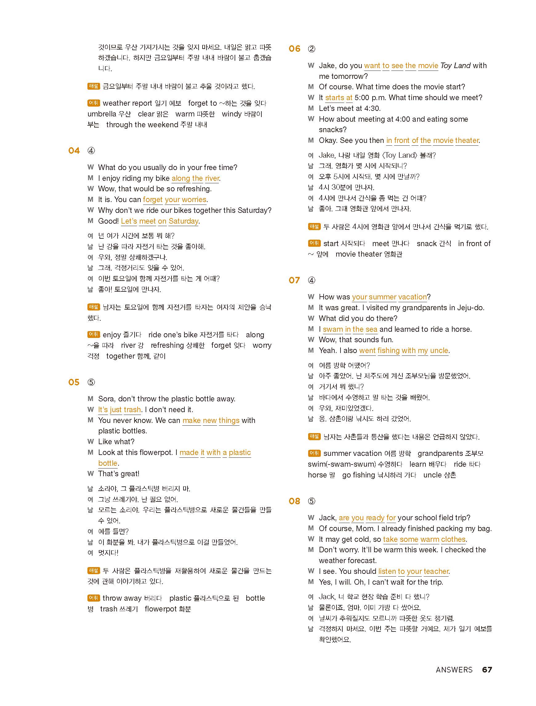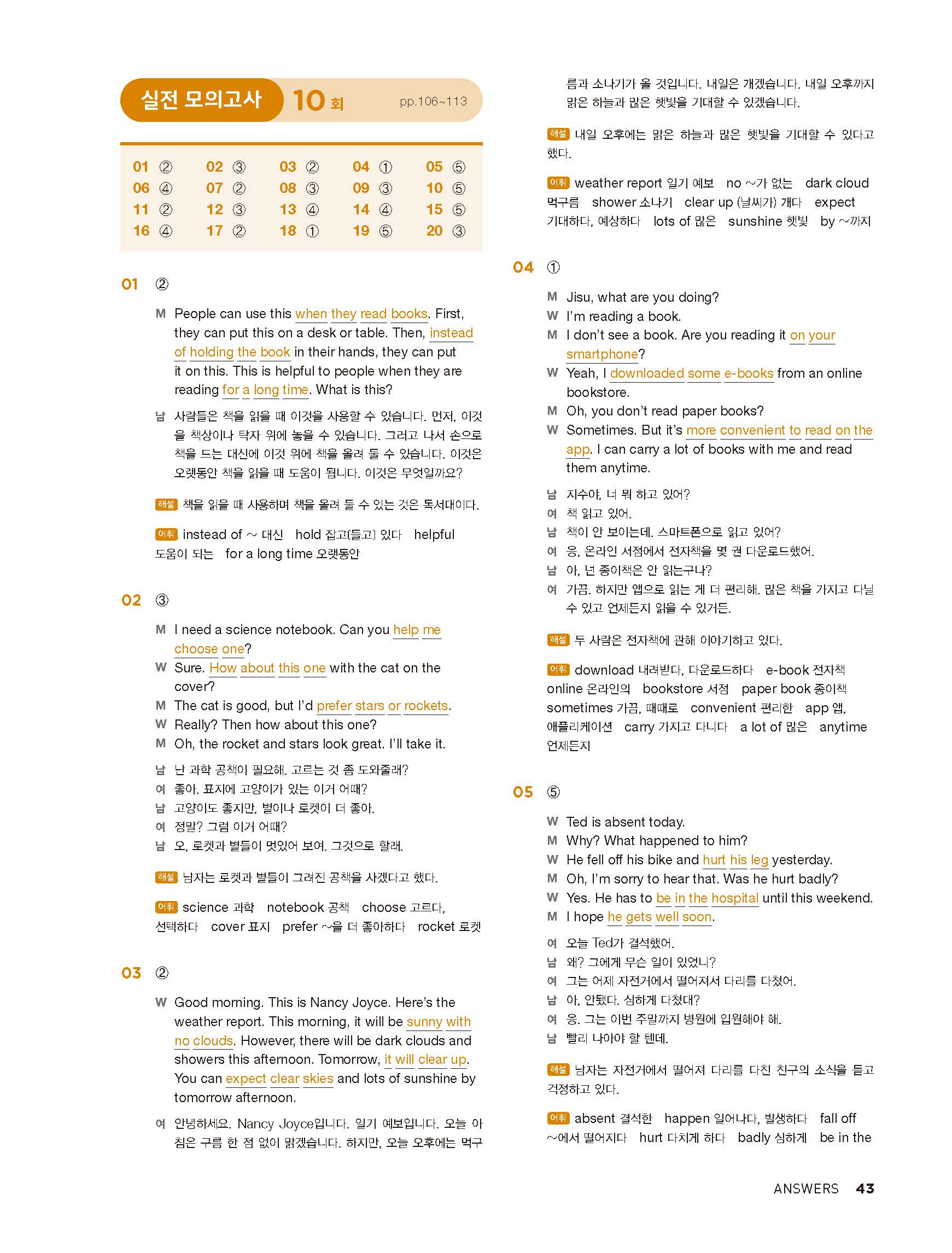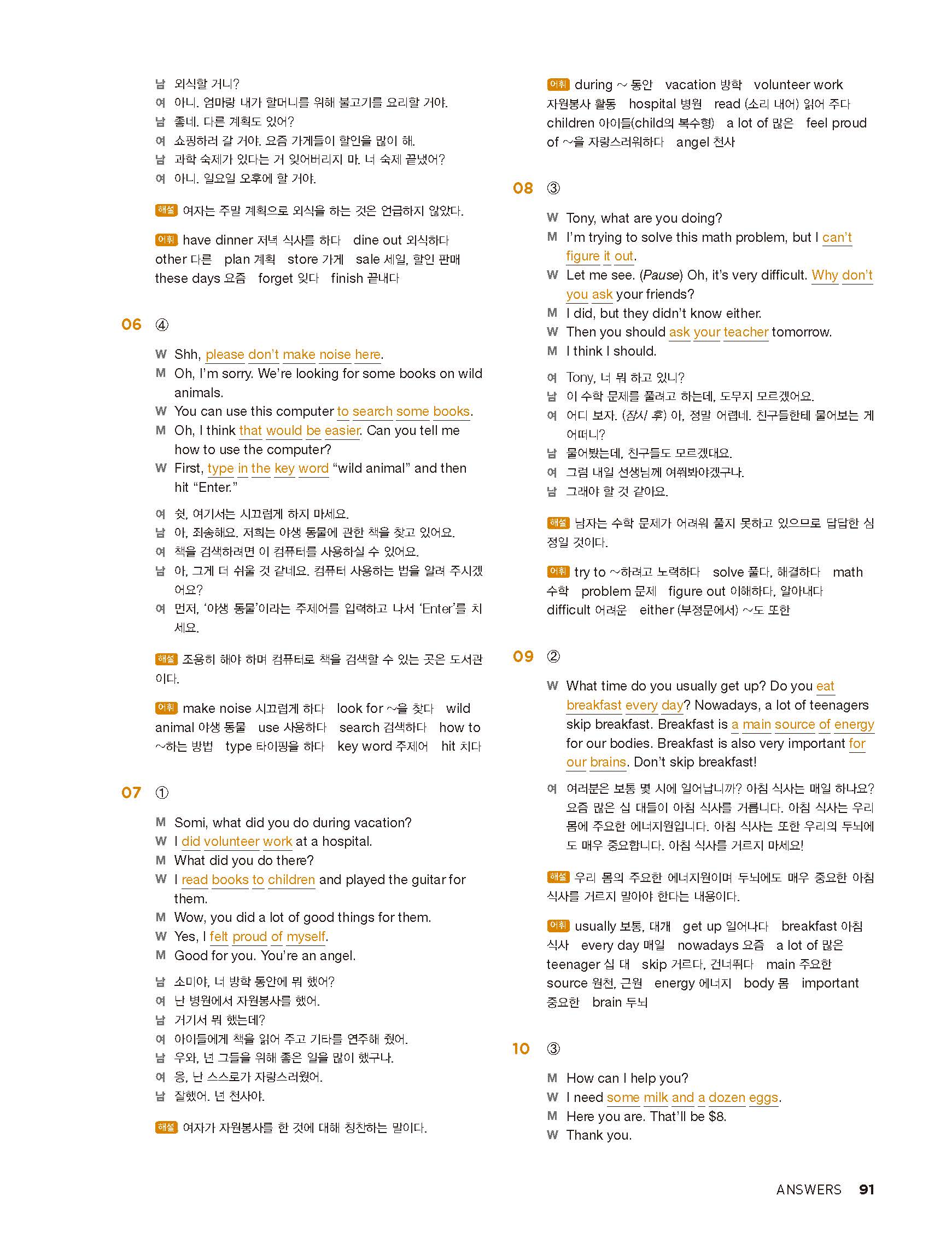 중학리스닝클리어 레벨1 답지 해설지 사진답지 빠른답지 모바일최적화