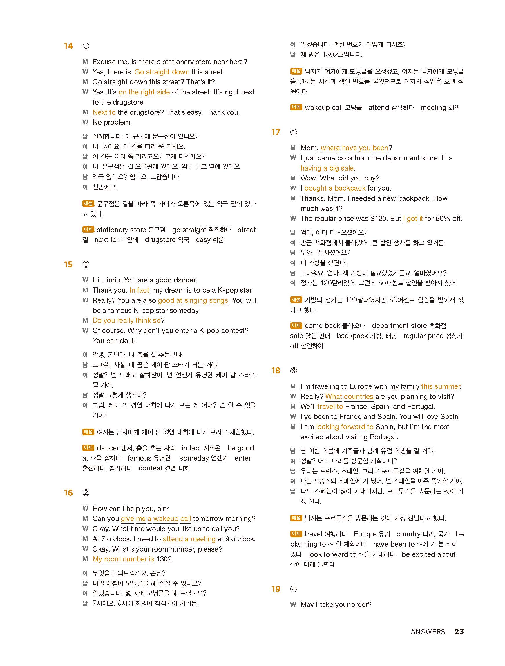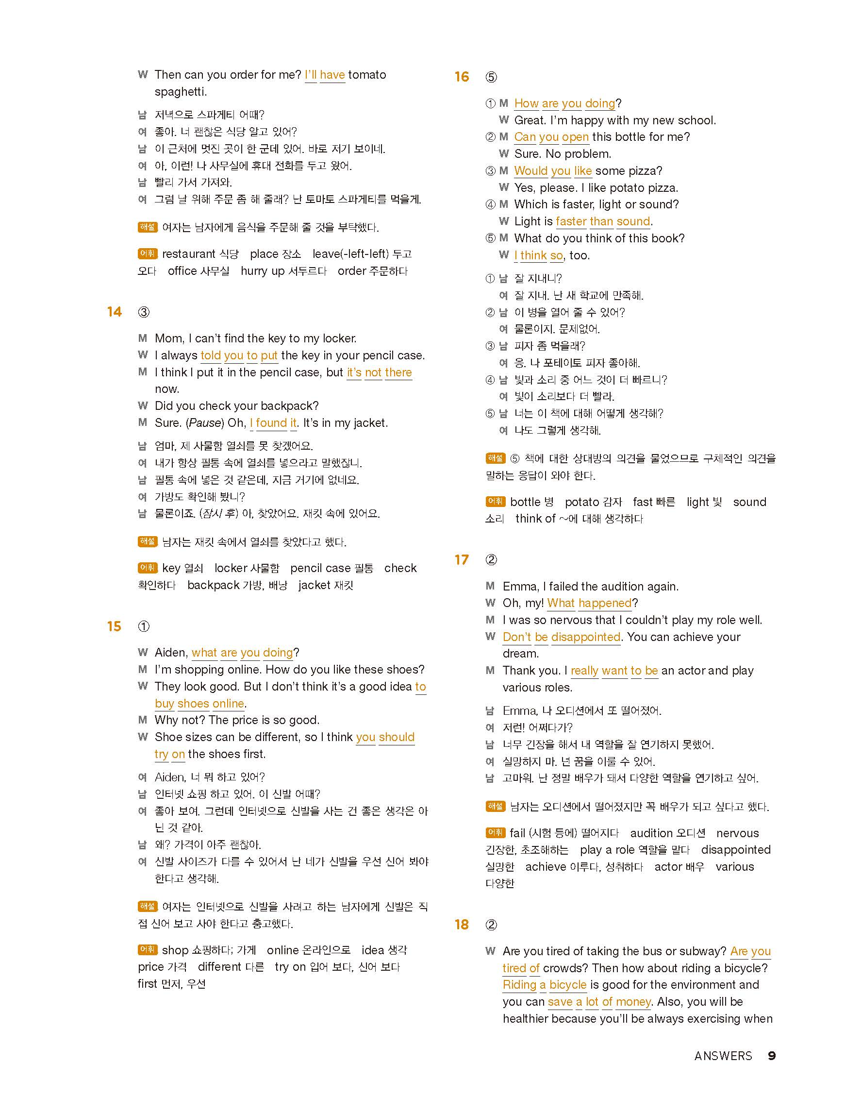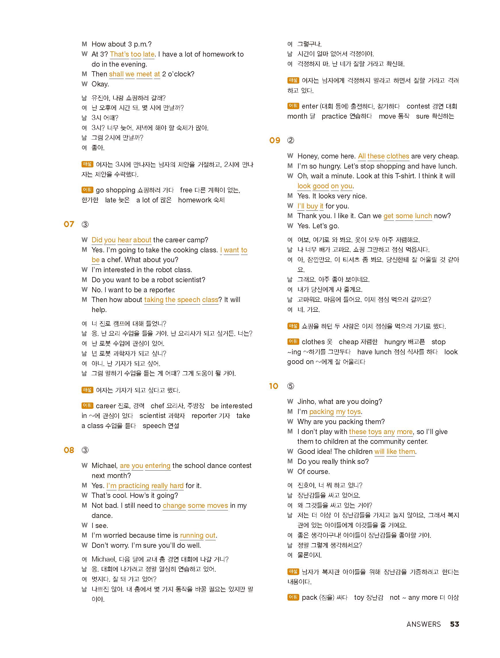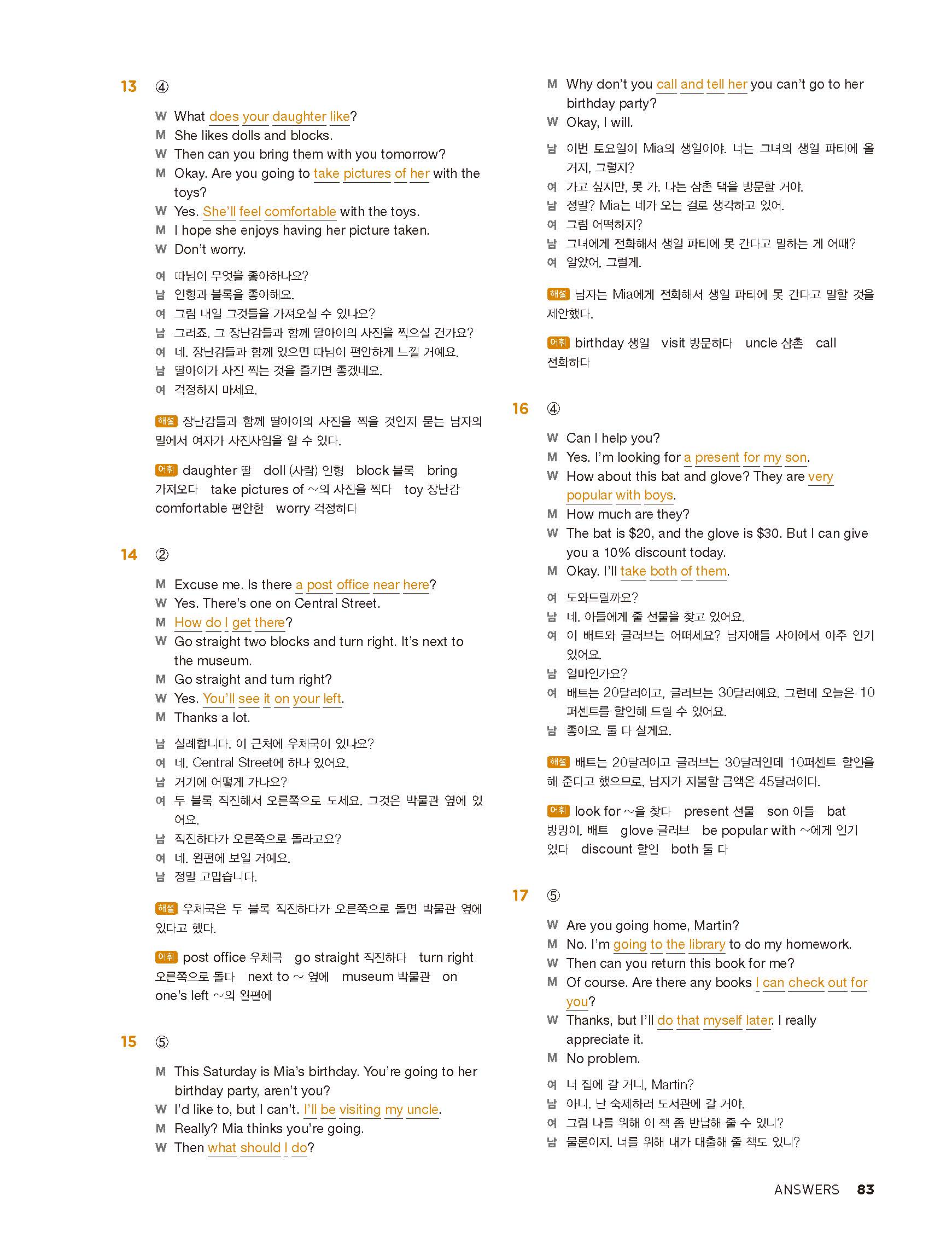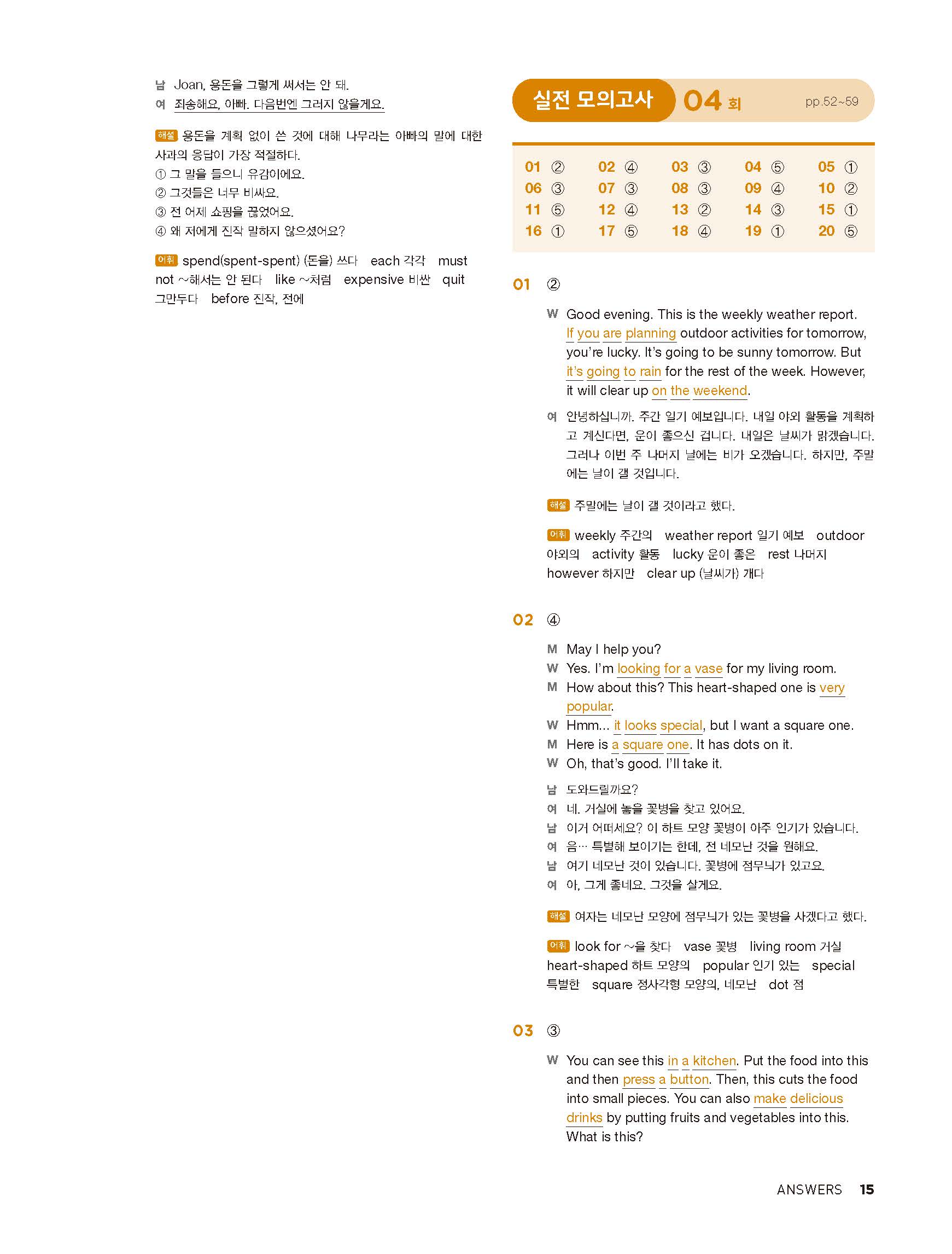 중학리스닝클리어 레벨1 답지 해설지 사진답지 빠른답지 모바일최적화