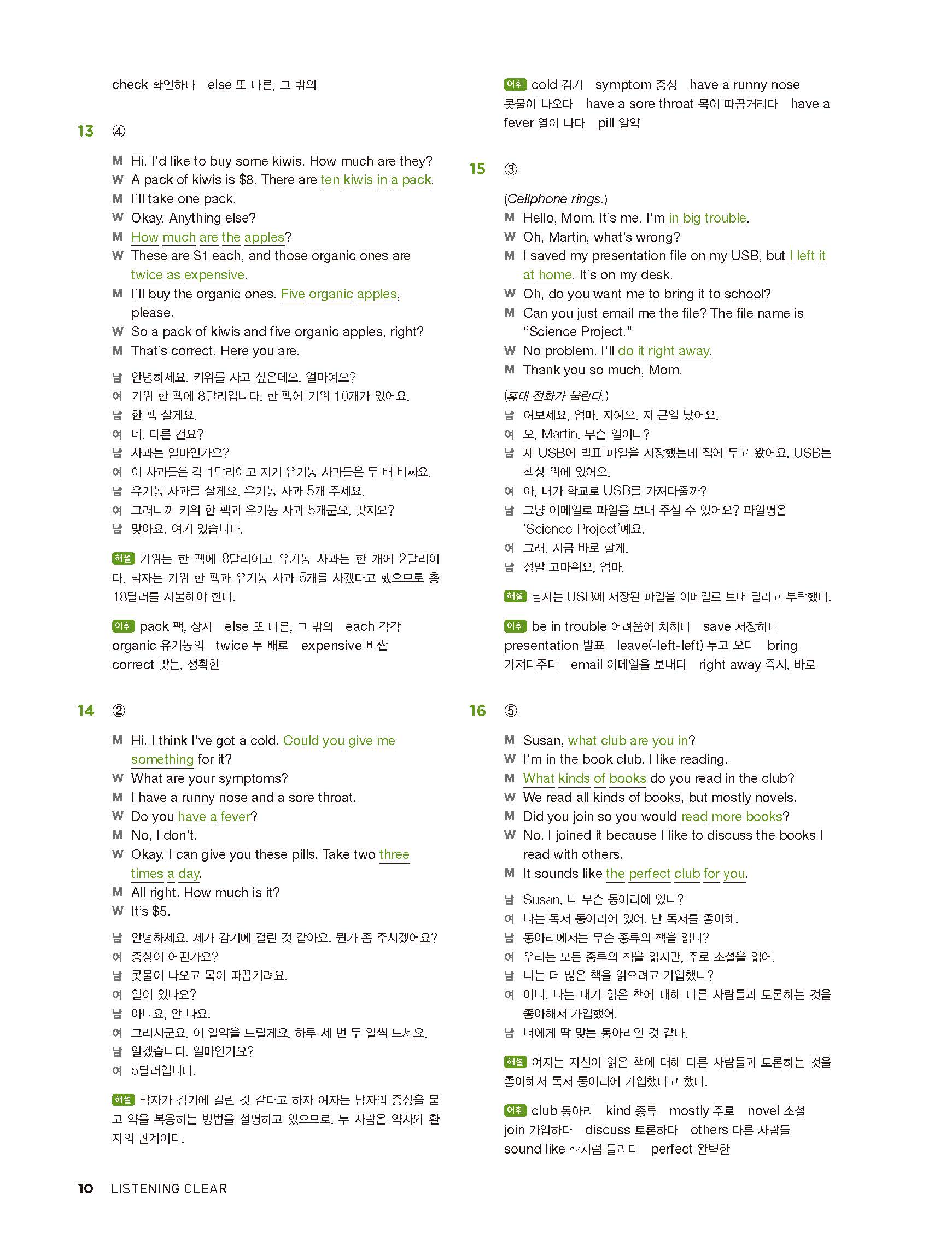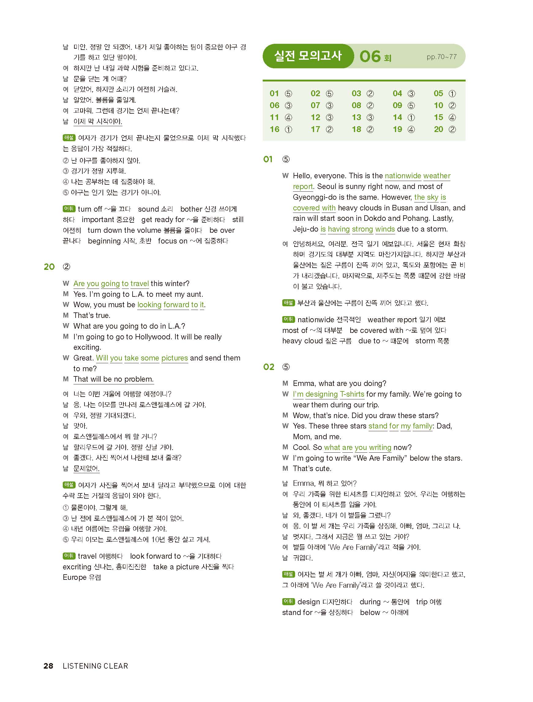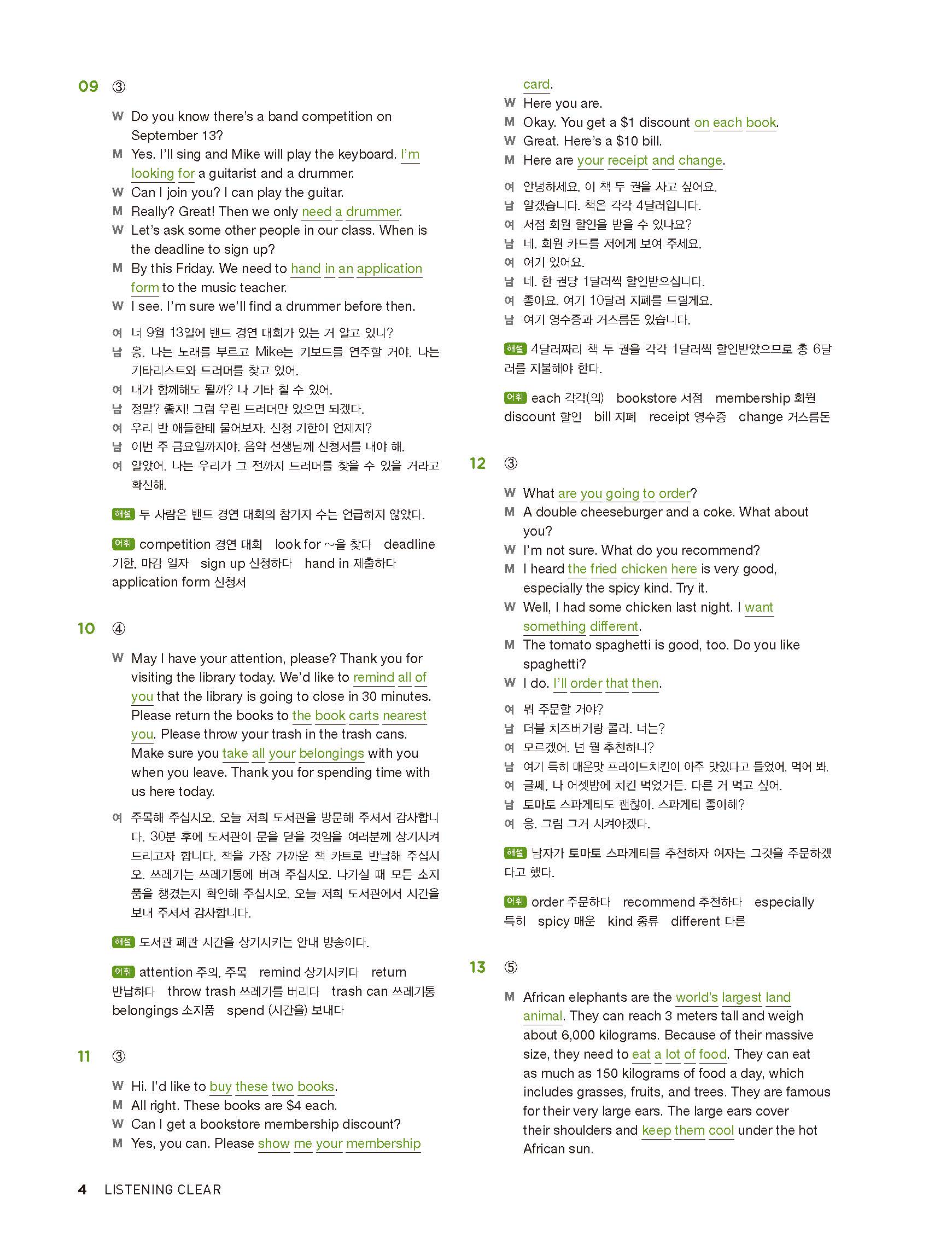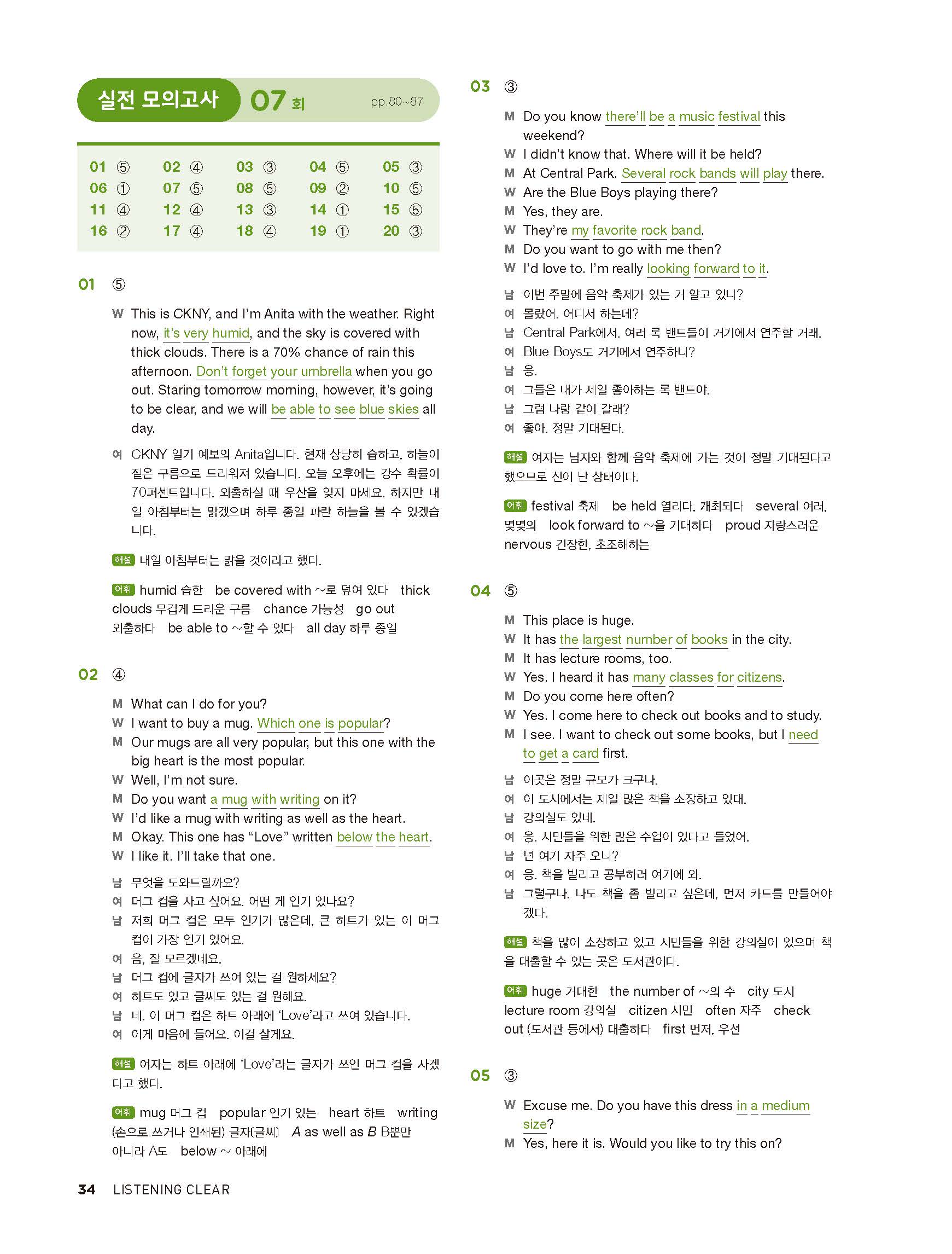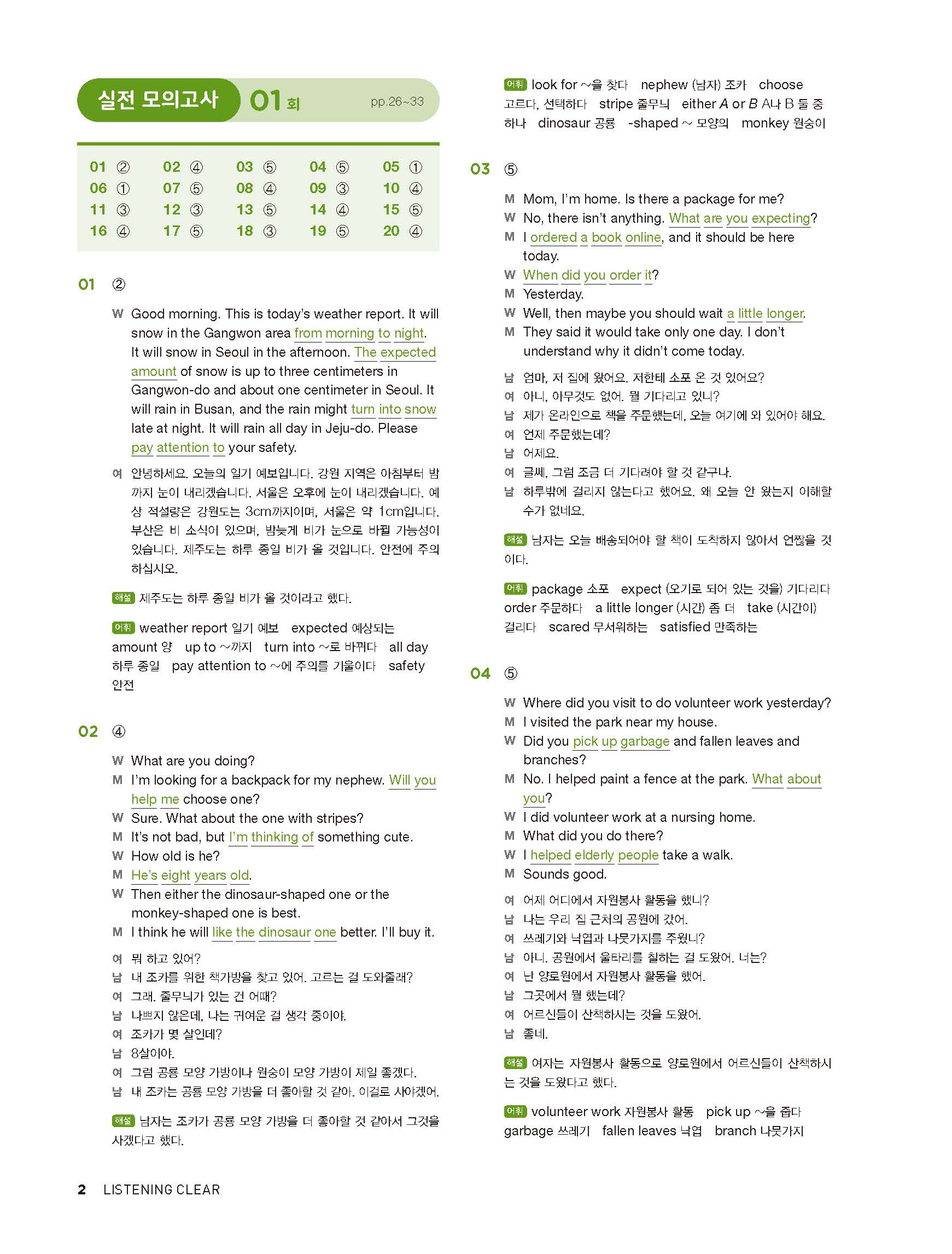 중학리스닝클리어 레벨2 답지 해설지 사진답지 빠른답지 모바일최적화
