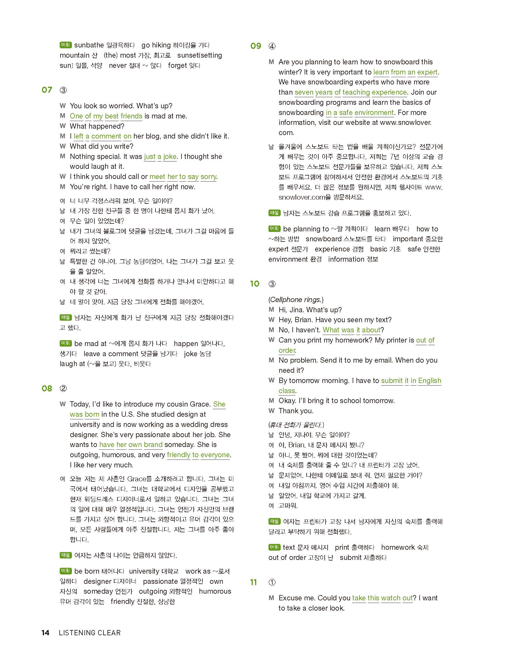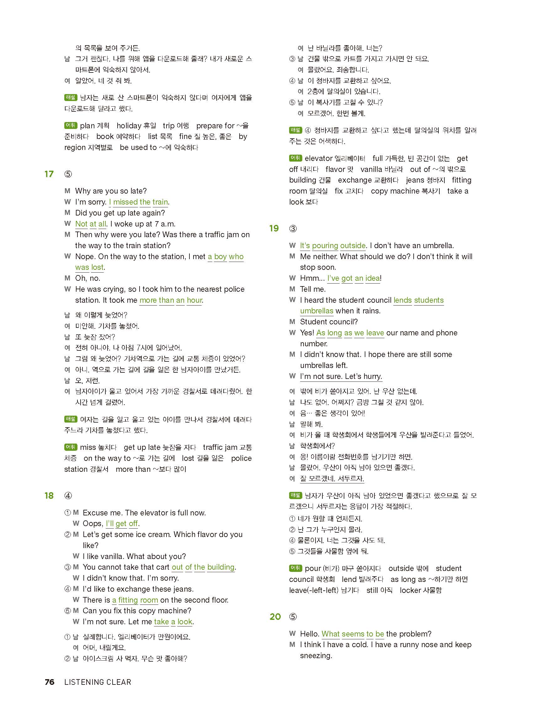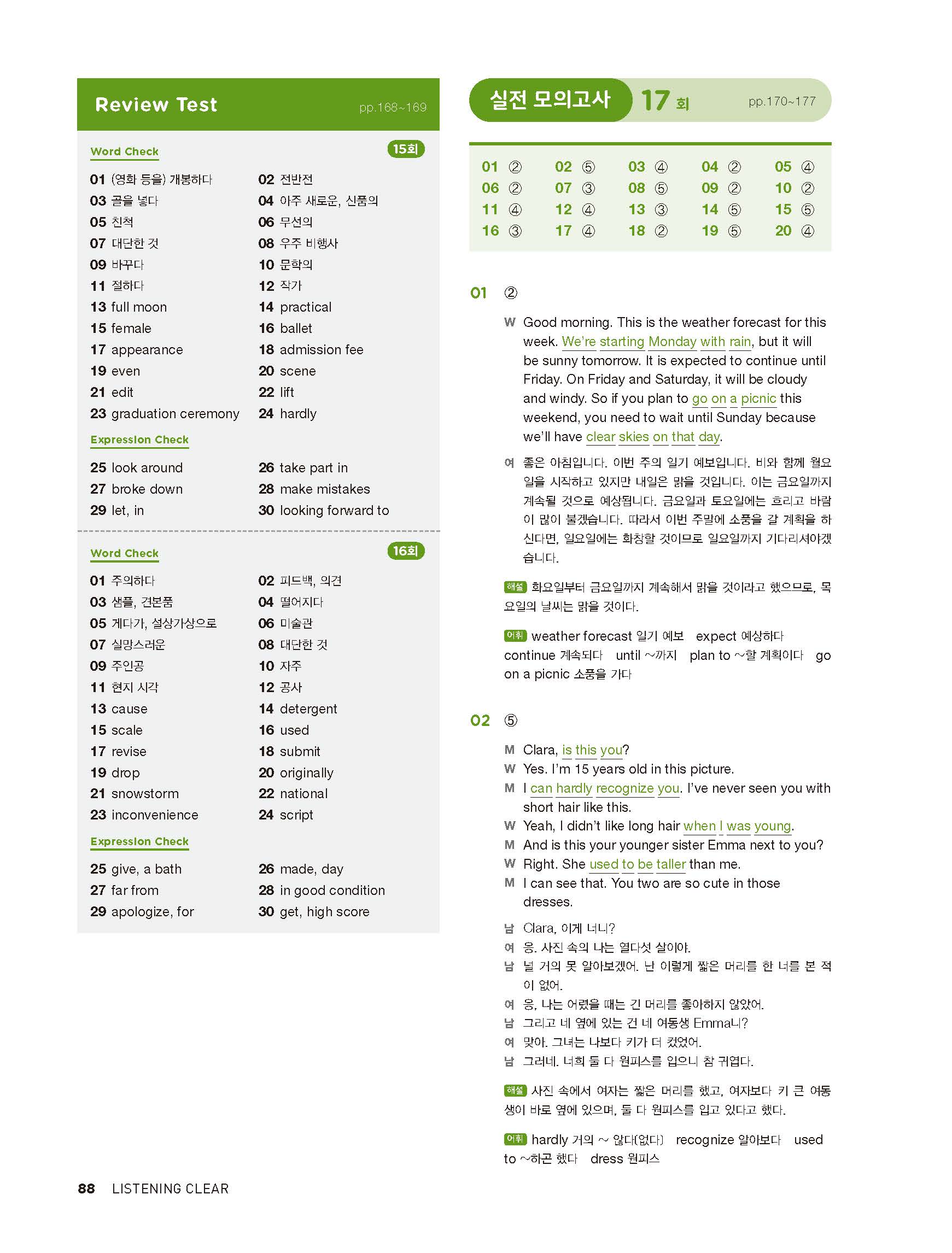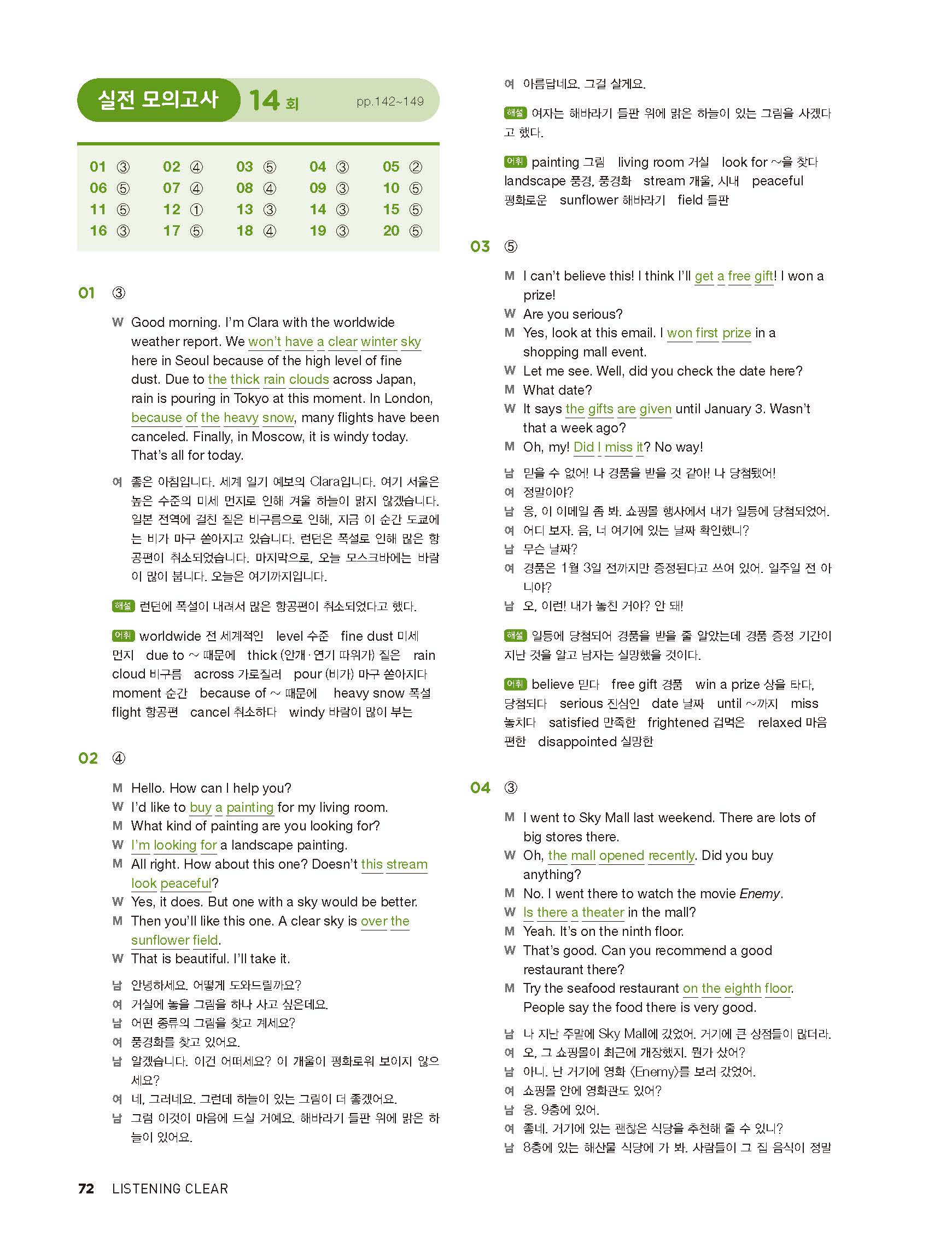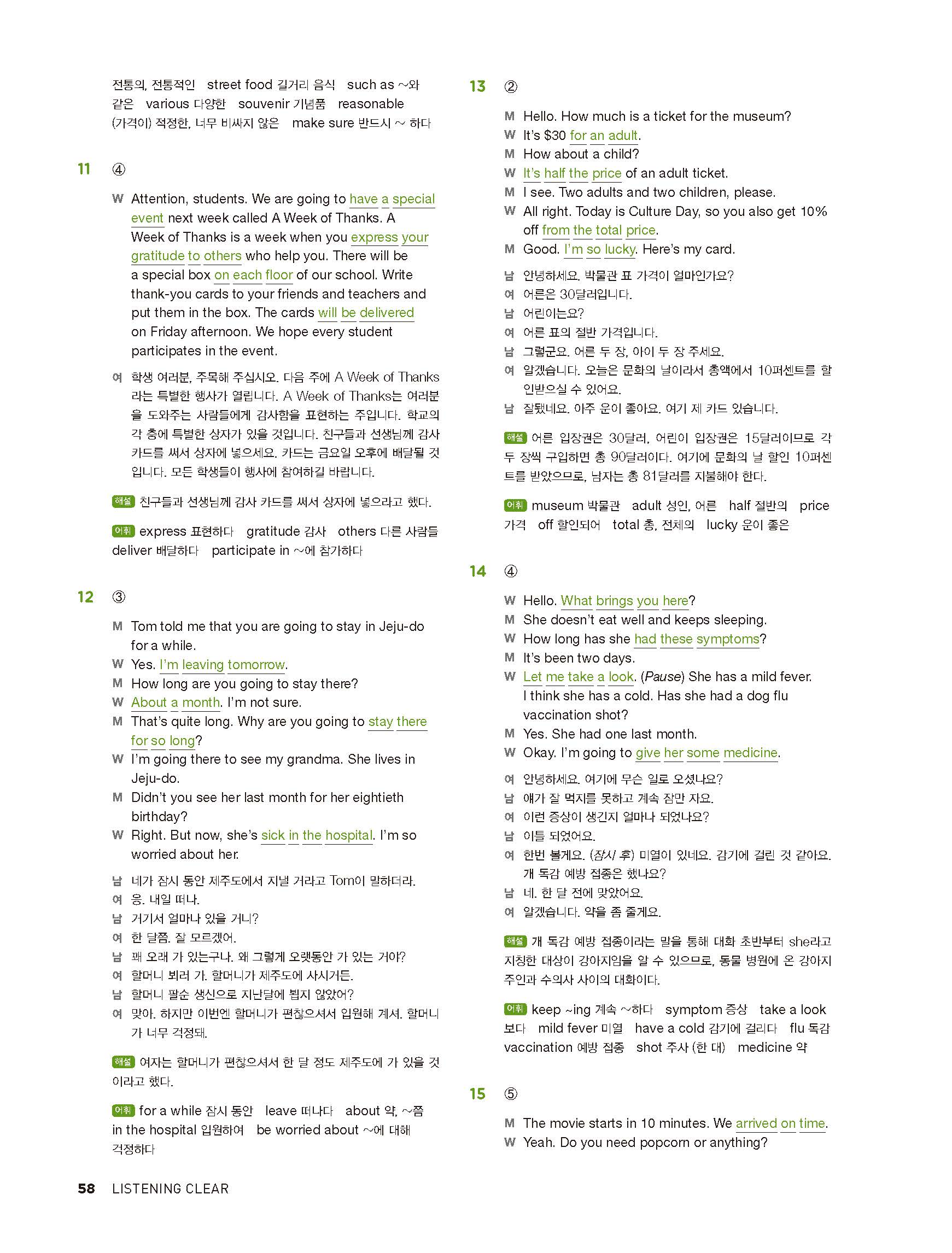 중학리스닝클리어 레벨2 답지 해설지 사진답지 빠른답지 모바일최적화