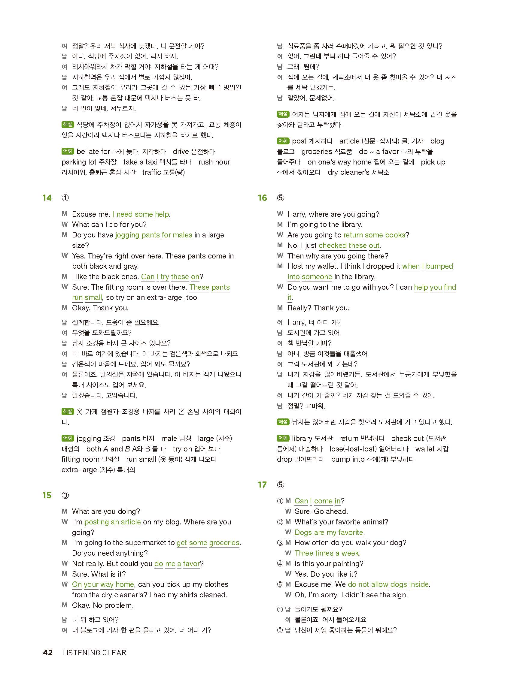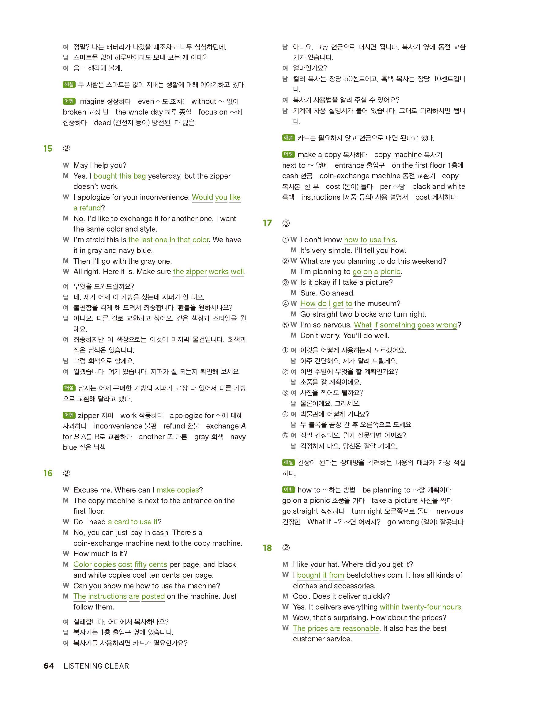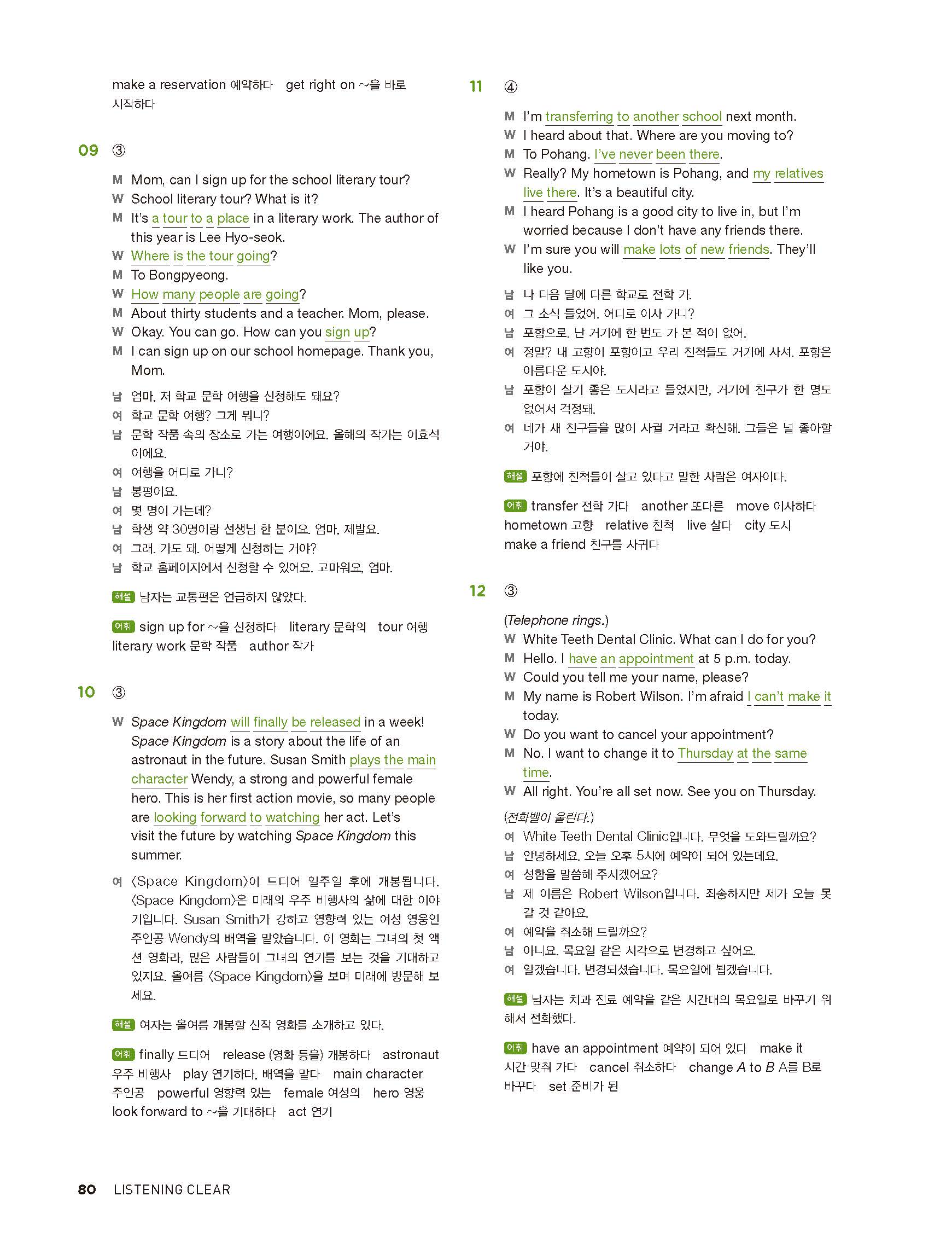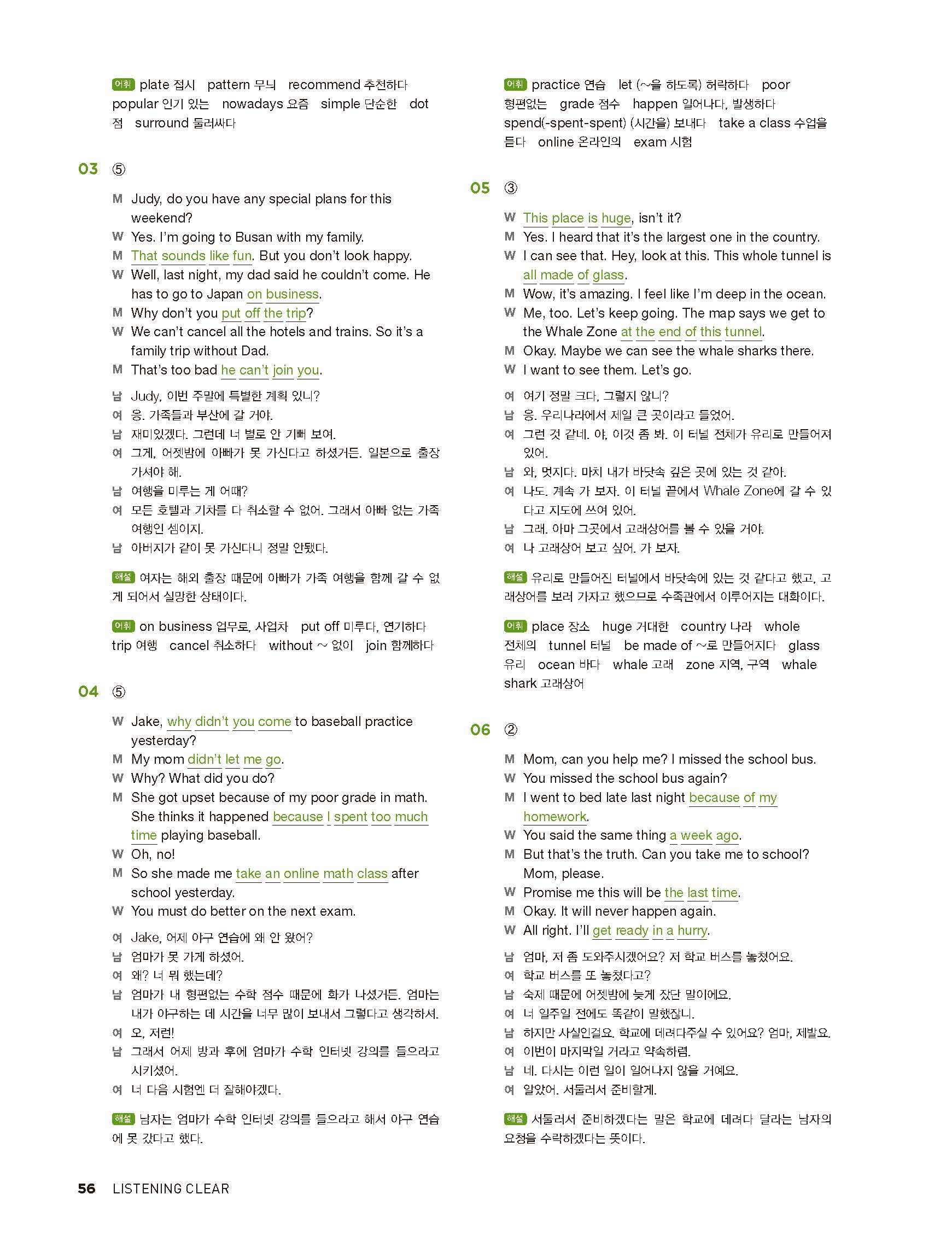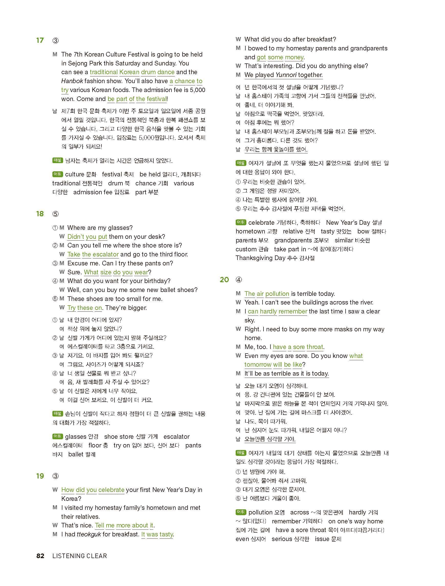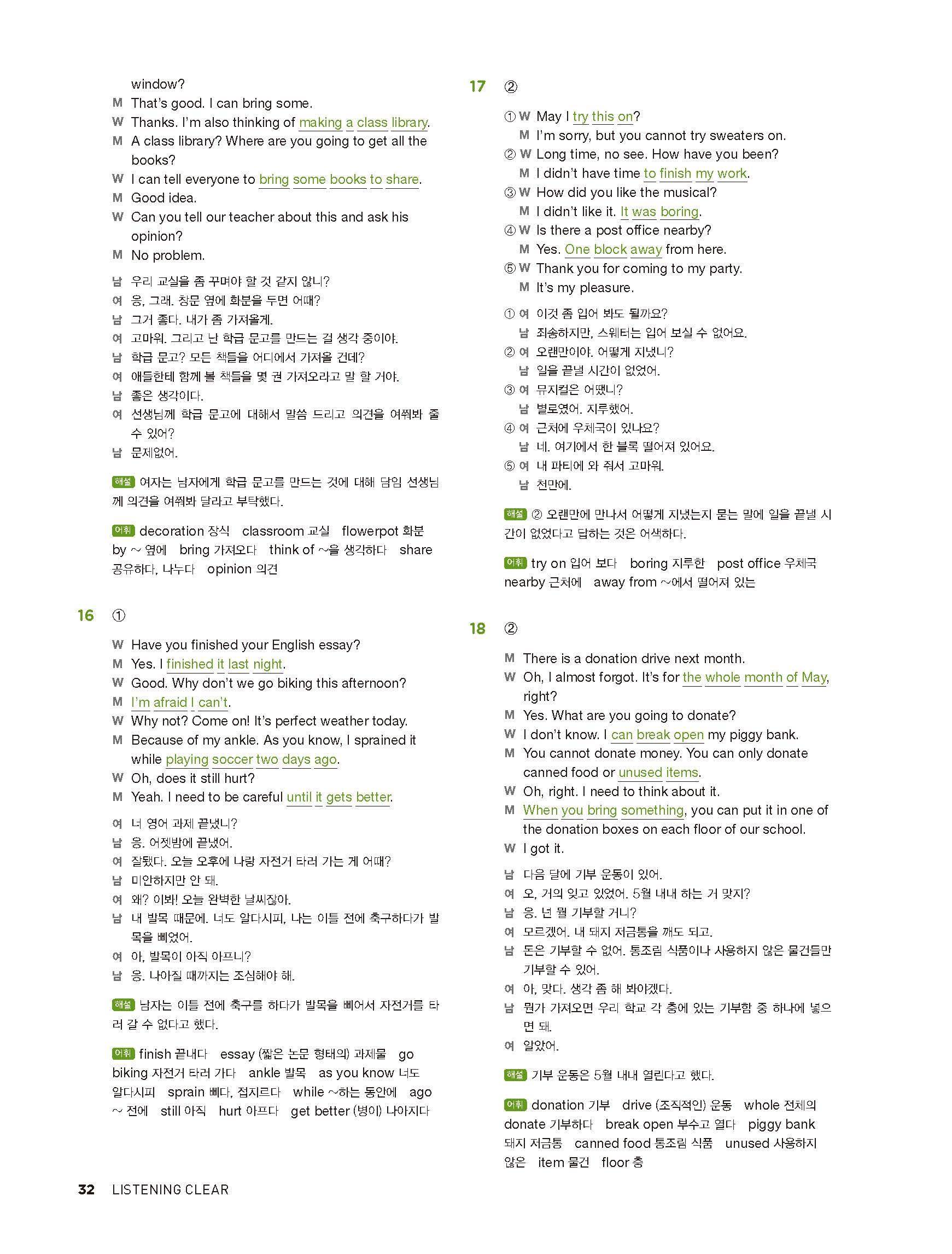 중학리스닝클리어 레벨2 답지 해설지 사진답지 빠른답지 모바일최적화