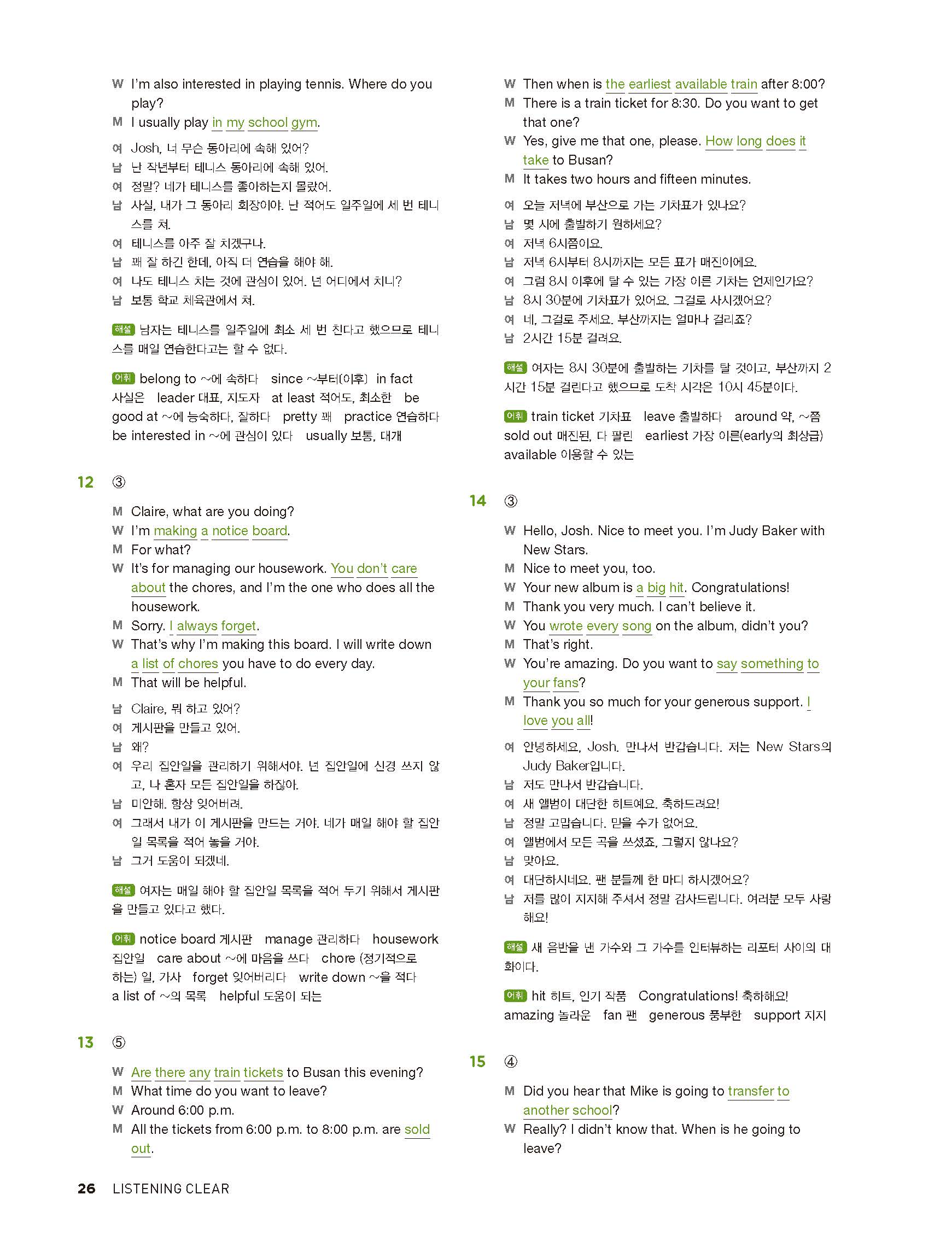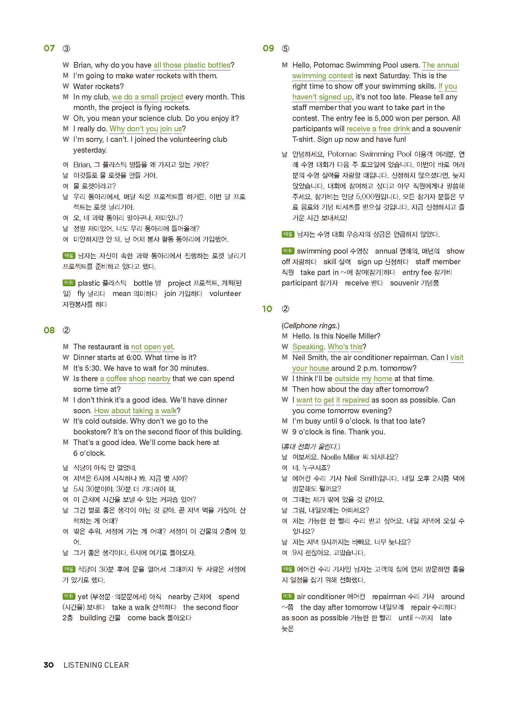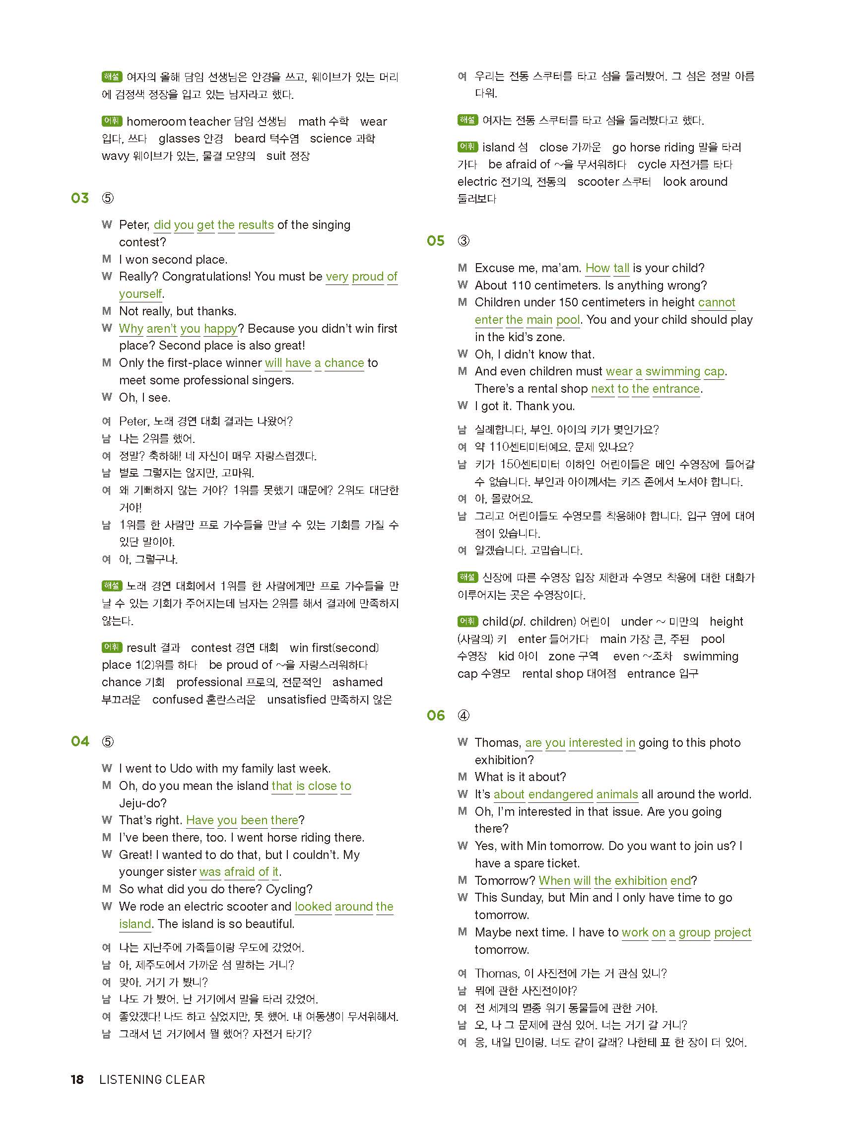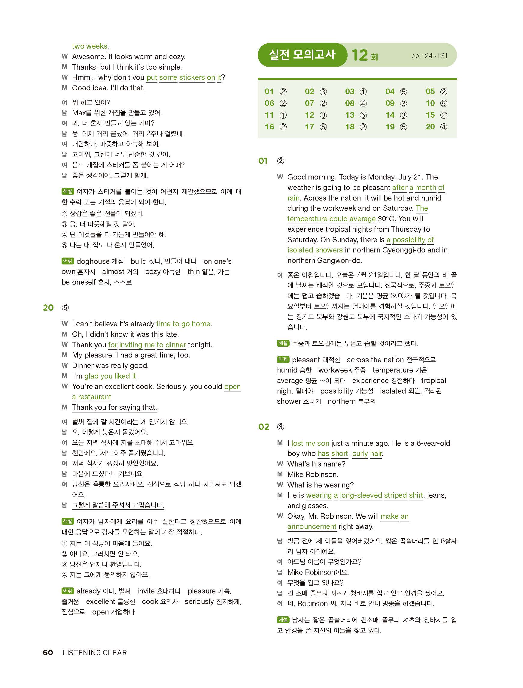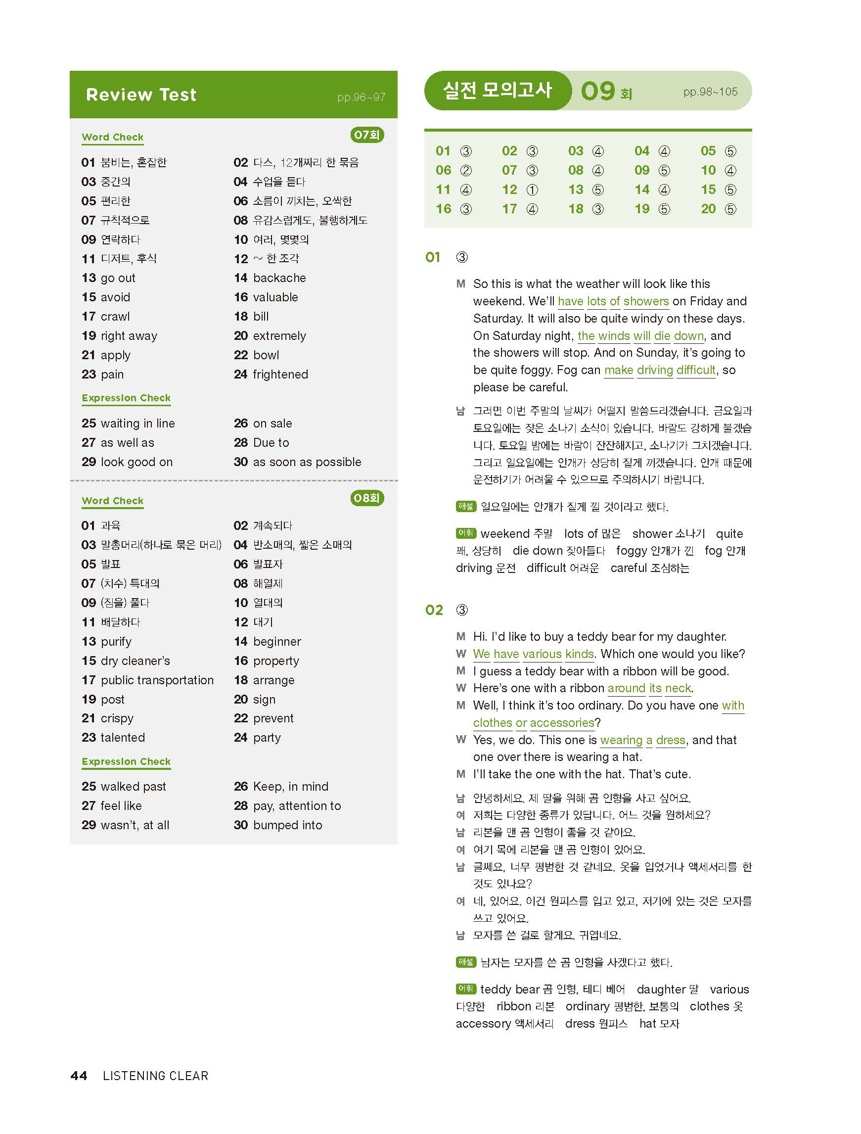 중학리스닝클리어 레벨2 답지 해설지 사진답지 빠른답지 모바일최적화