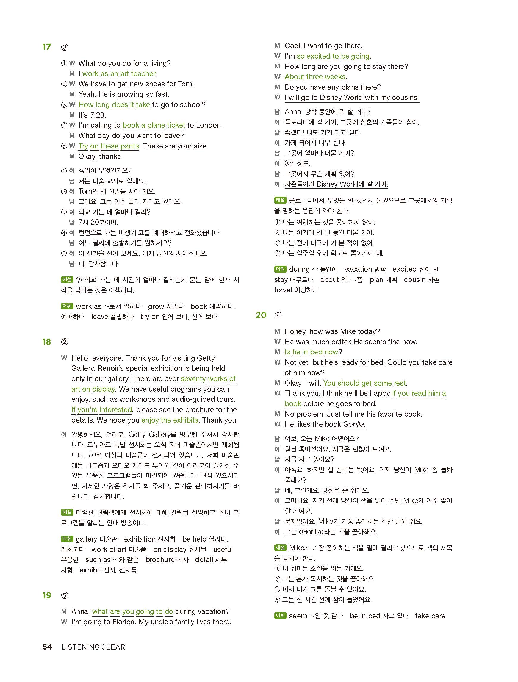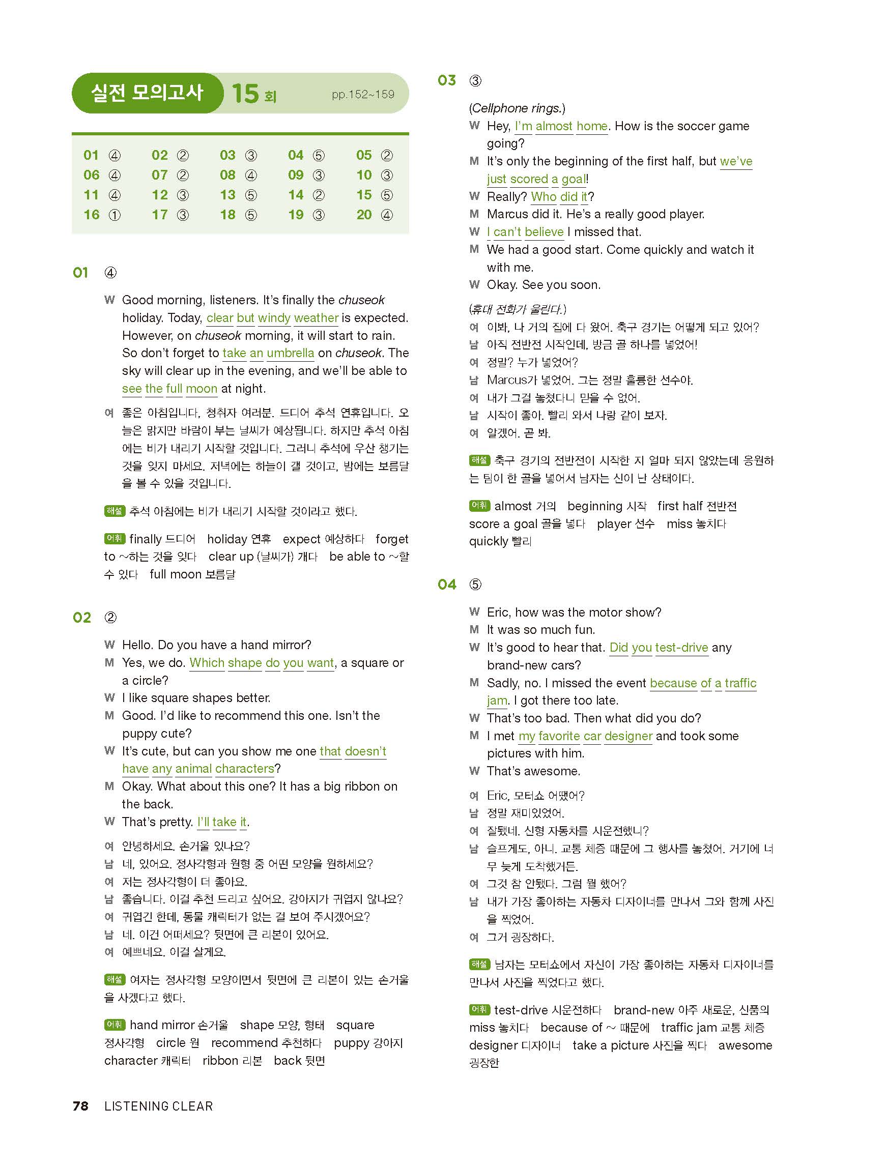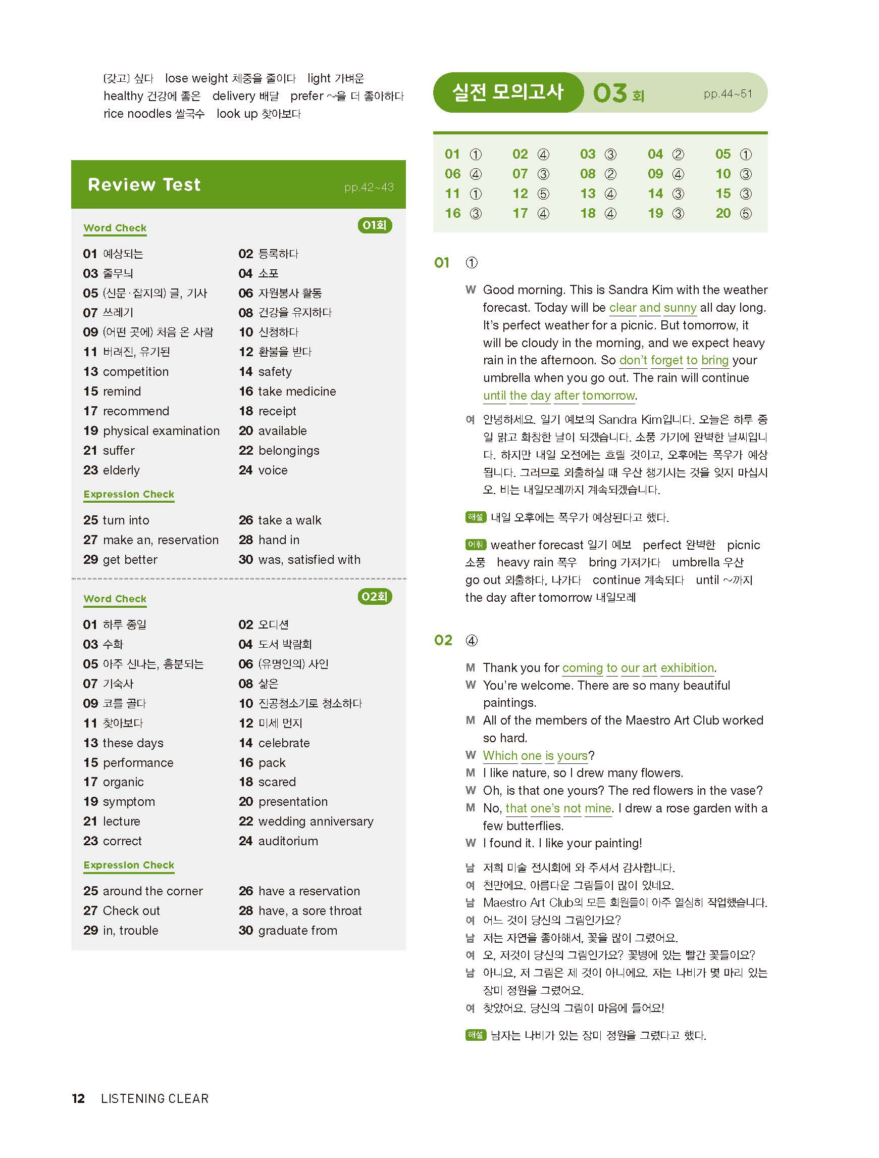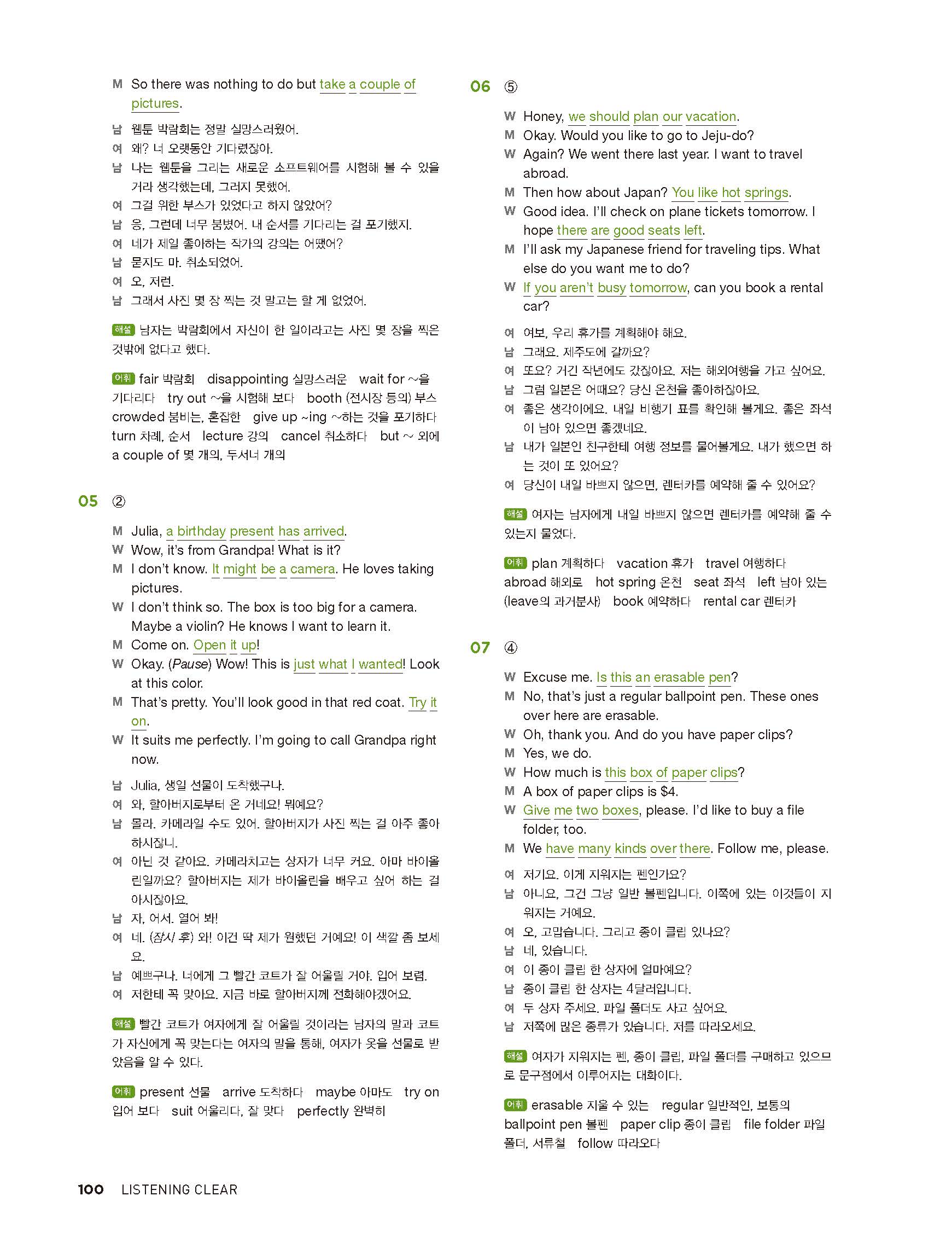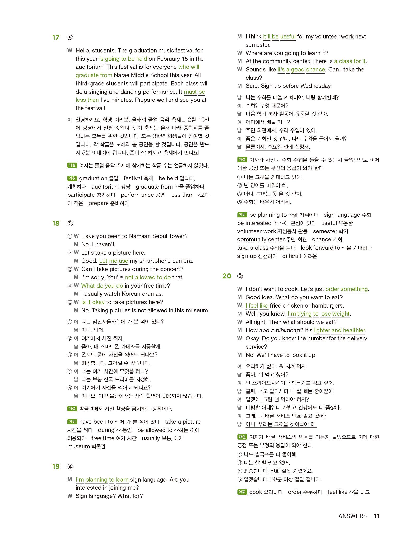 중학리스닝클리어 레벨2 답지 해설지 사진답지 빠른답지 모바일최적화