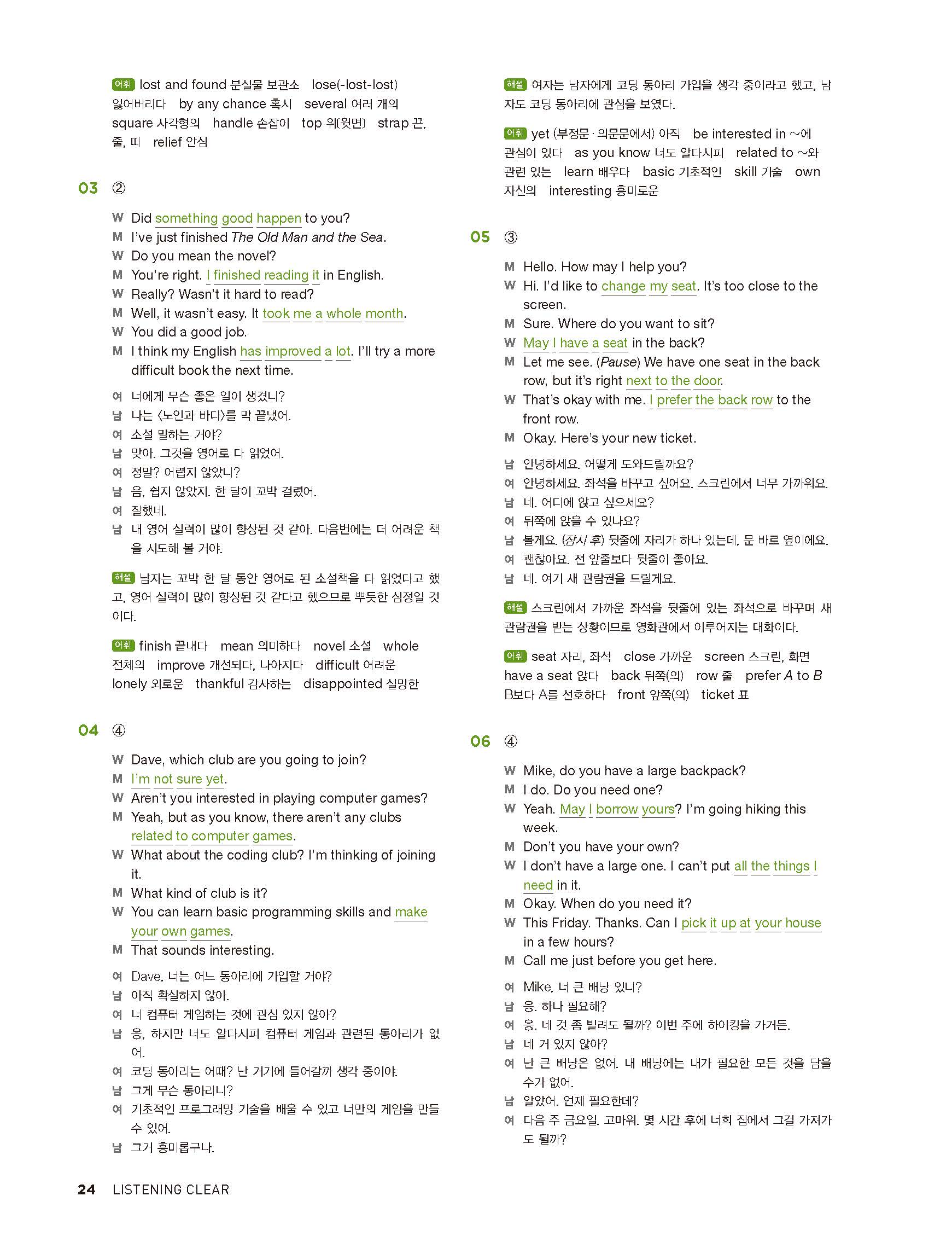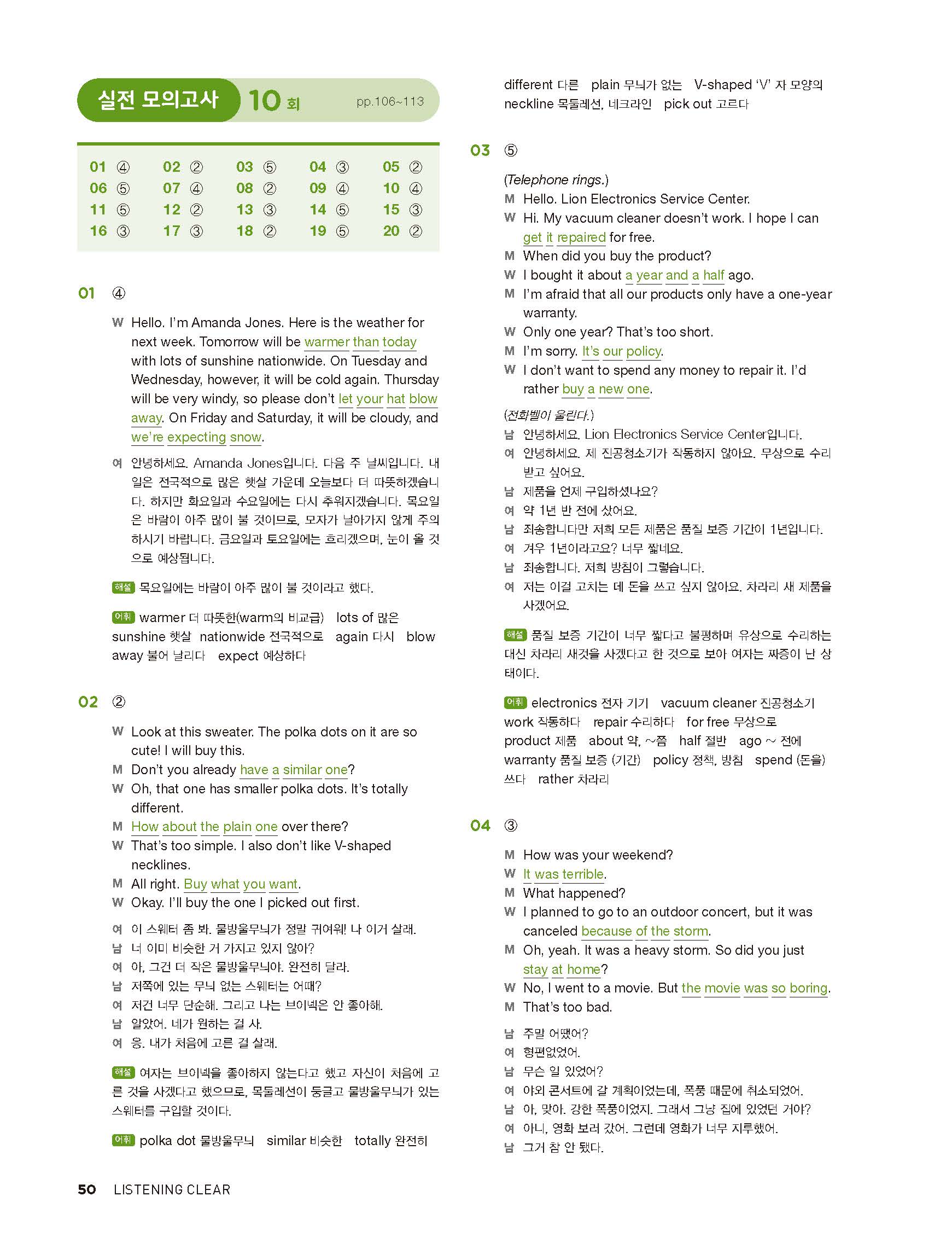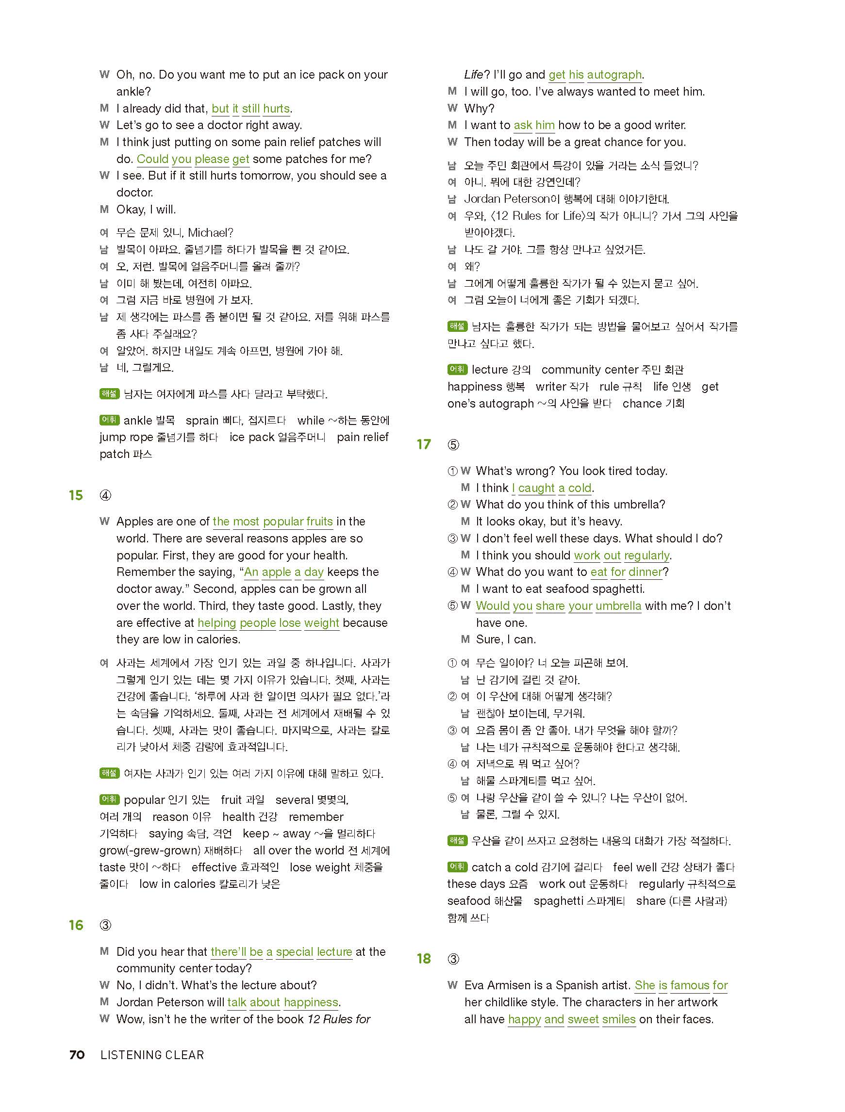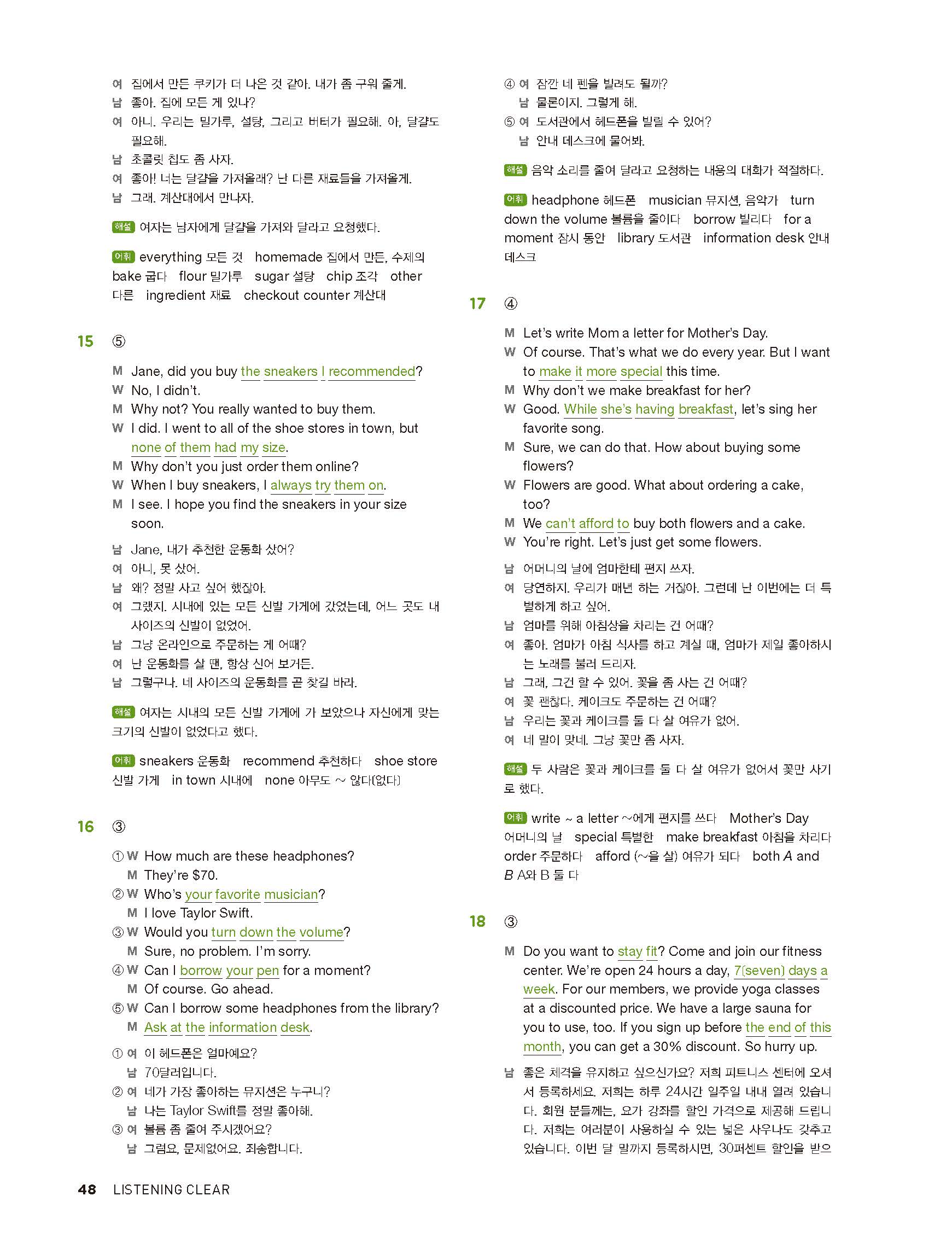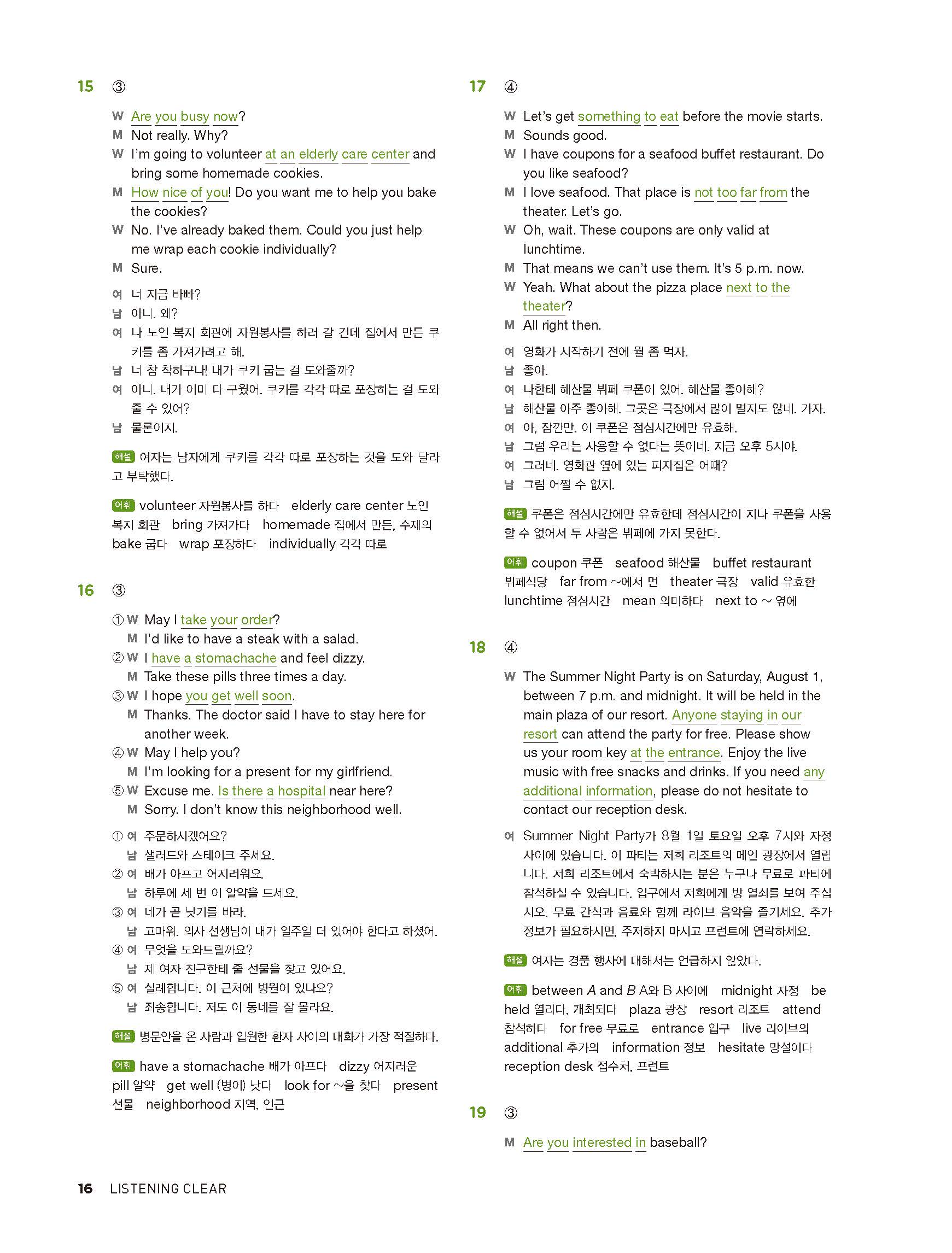 중학리스닝클리어 레벨2 답지 해설지 사진답지 빠른답지 모바일최적화