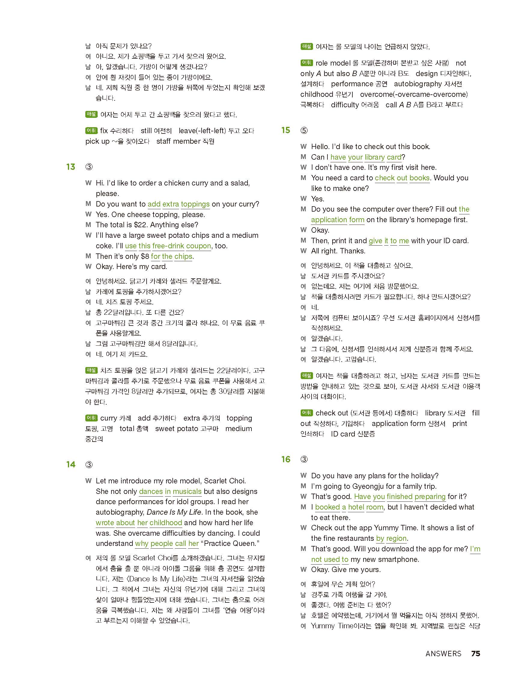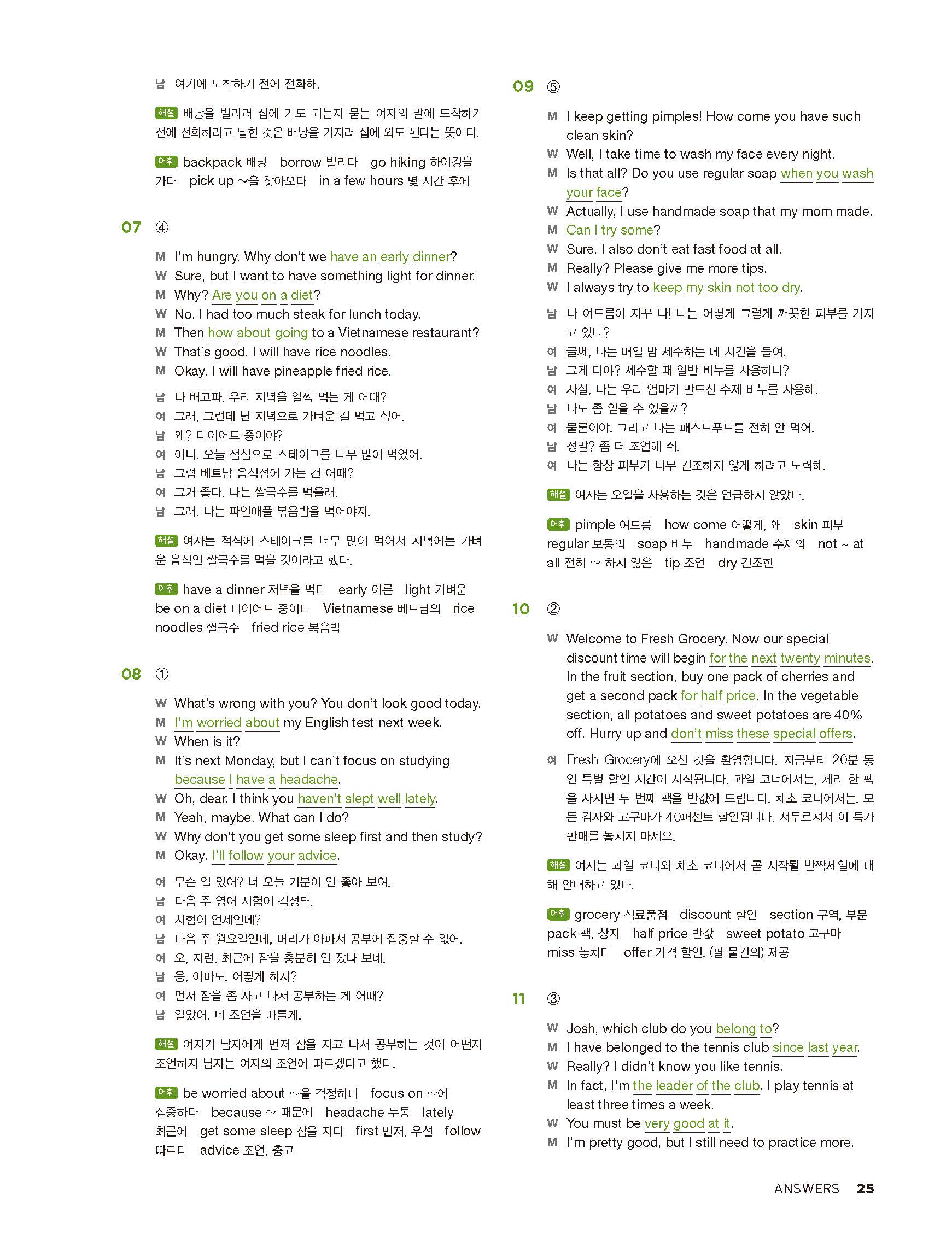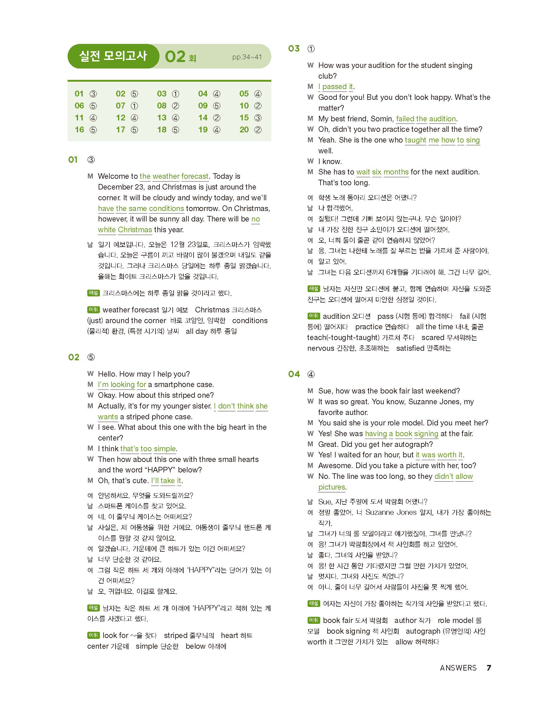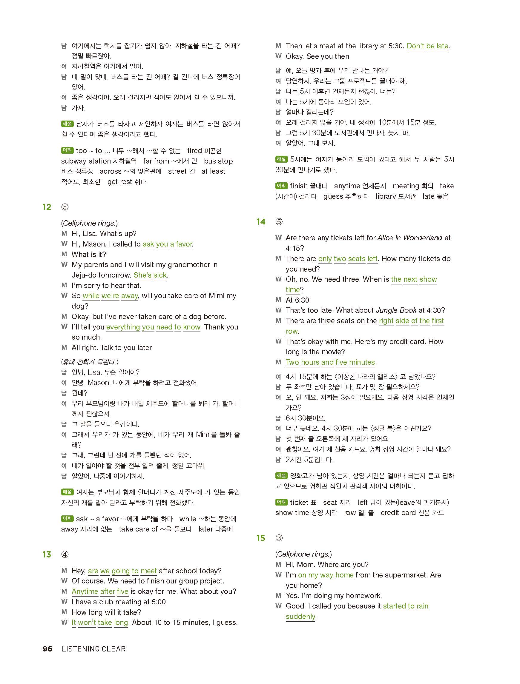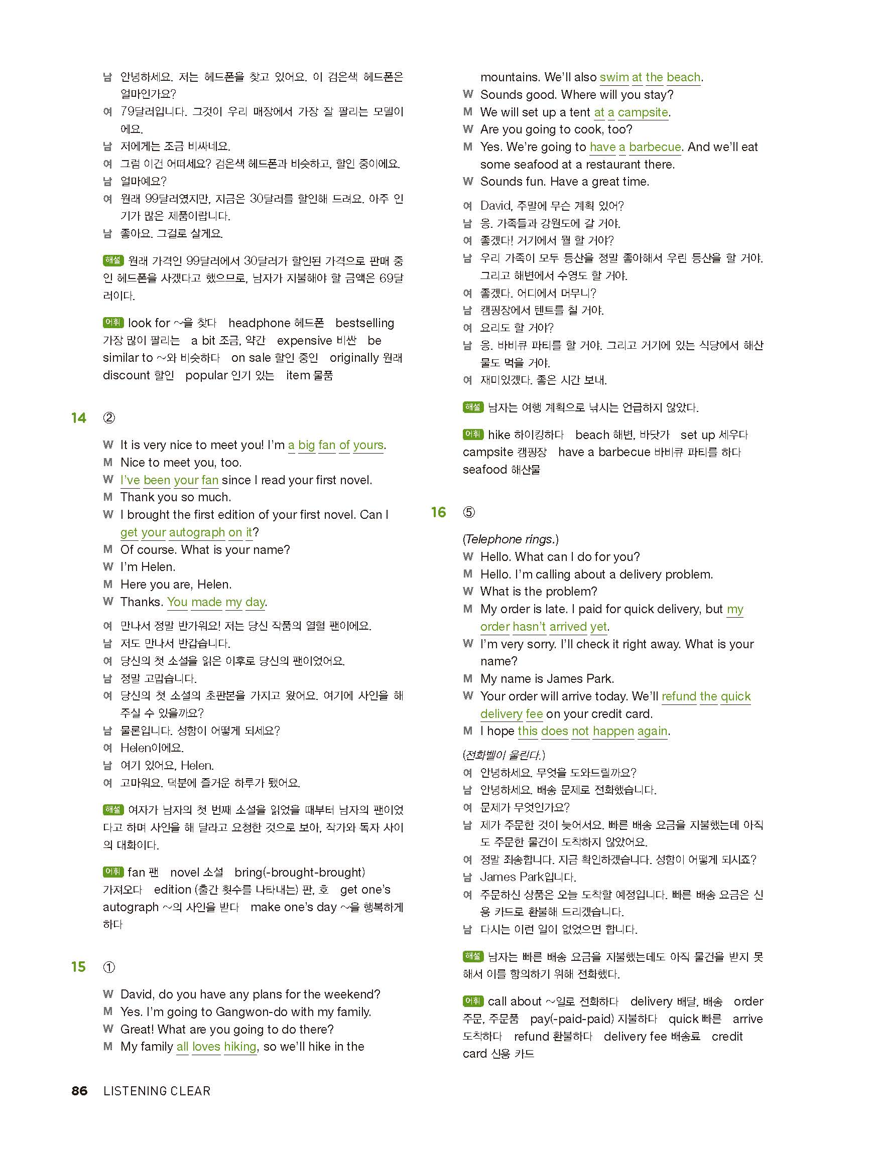 중학리스닝클리어 레벨2 답지 해설지 사진답지 빠른답지 모바일최적화
