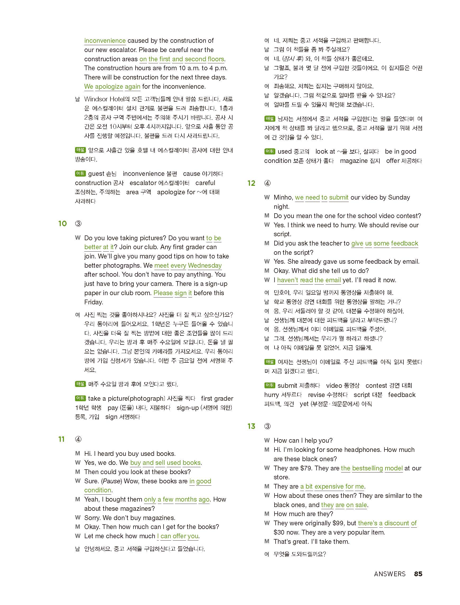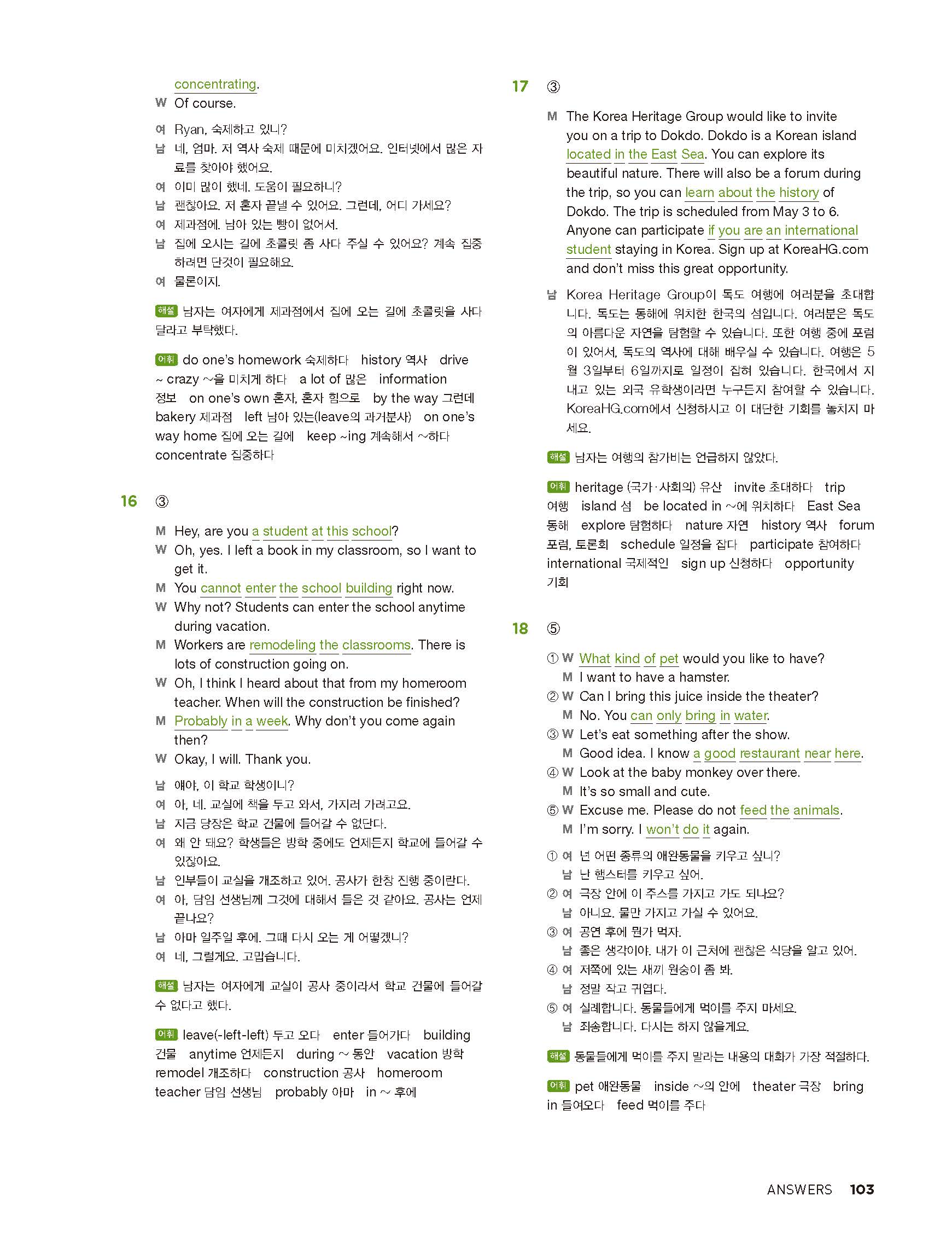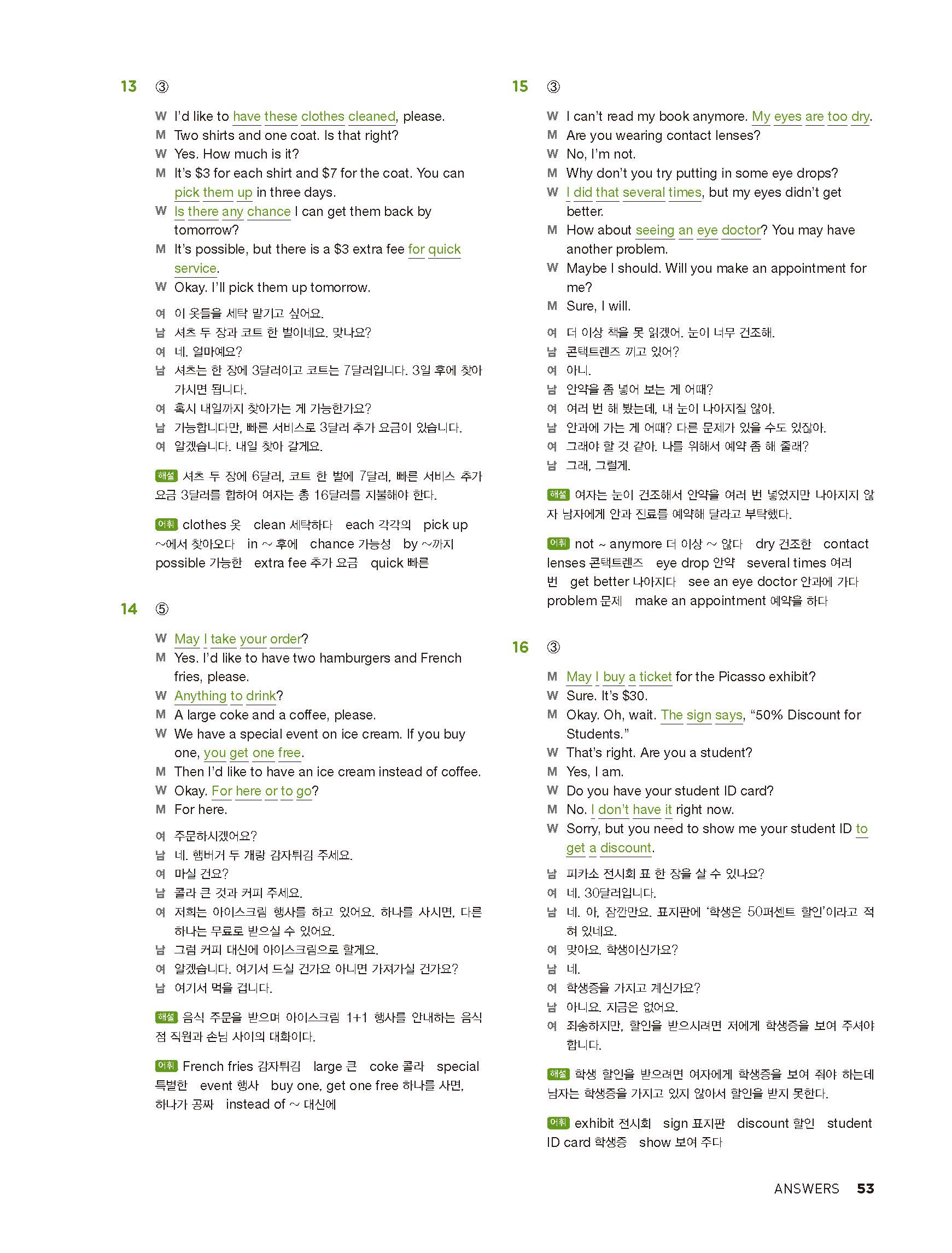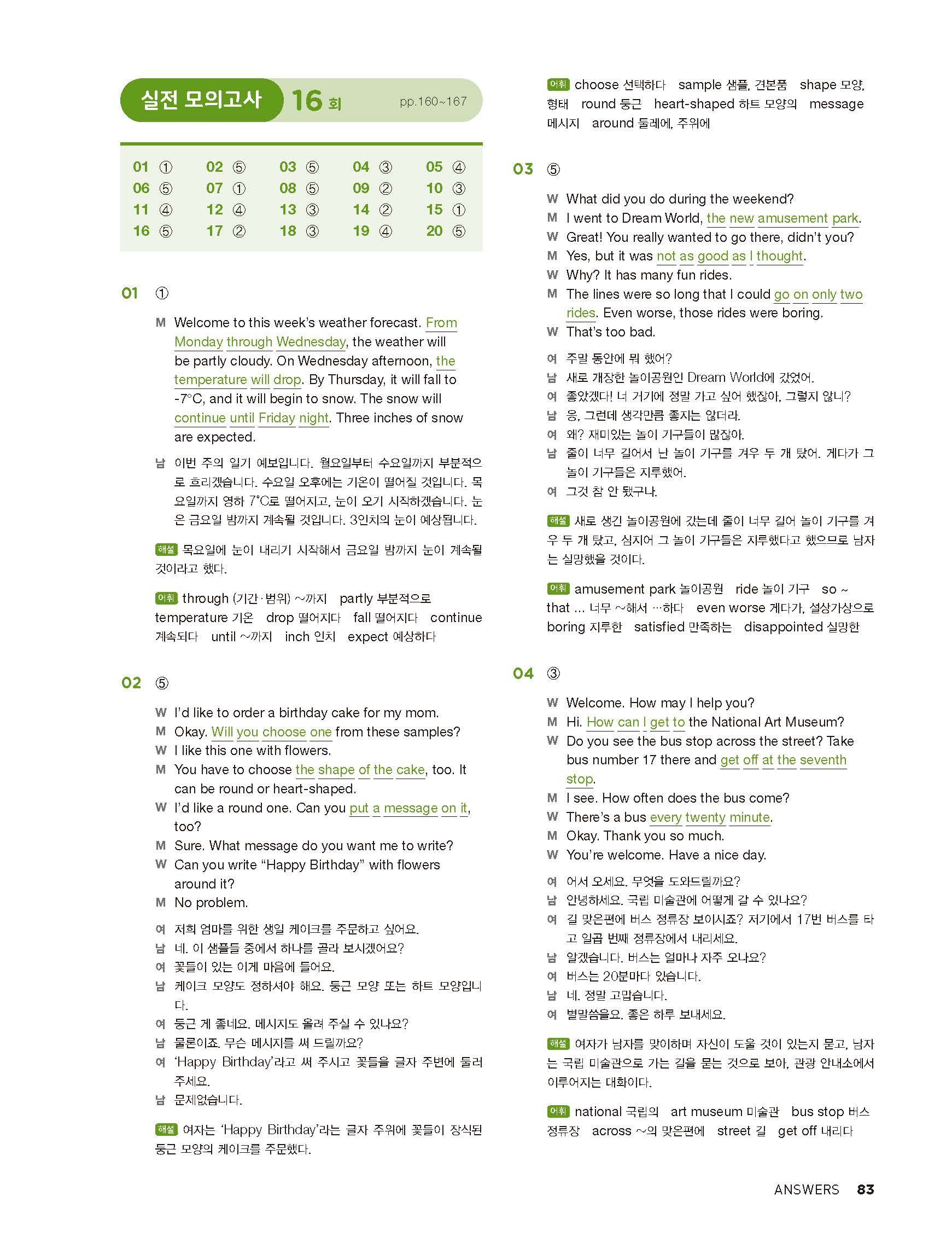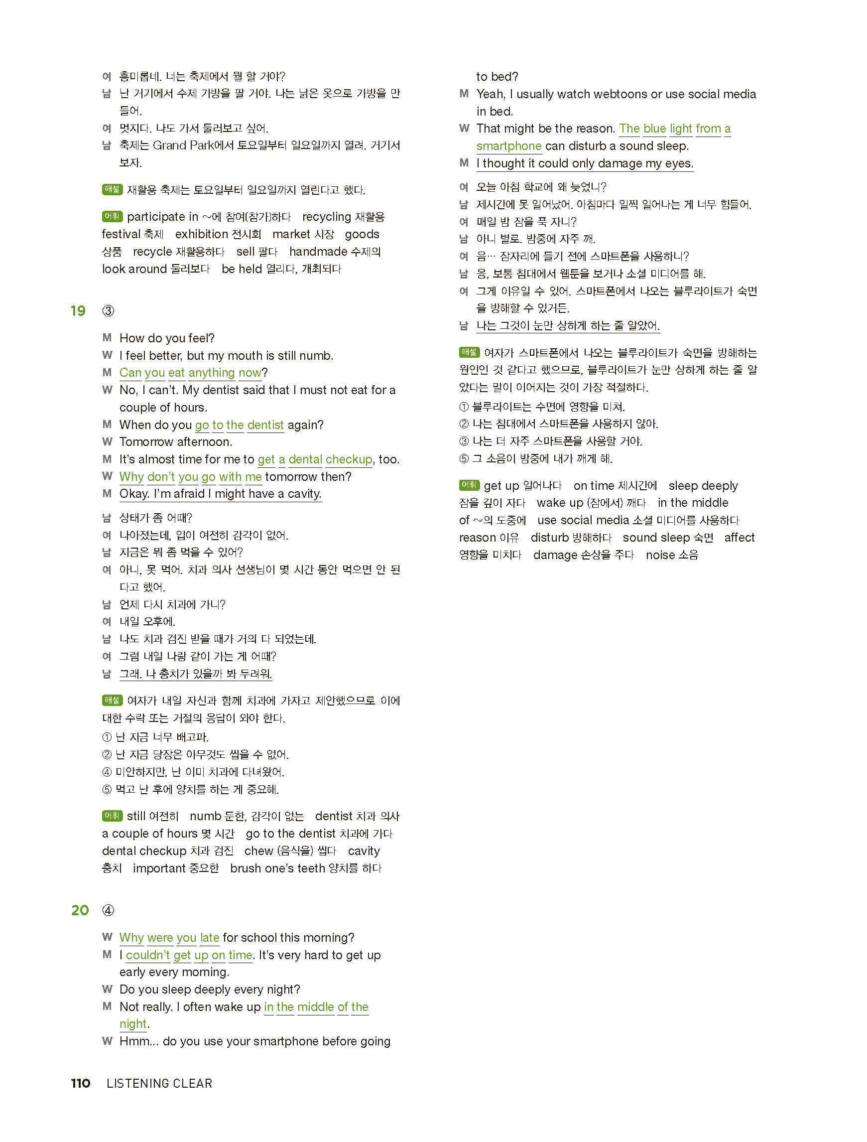 중학리스닝클리어 레벨2 답지 해설지 사진답지 빠른답지 모바일최적화