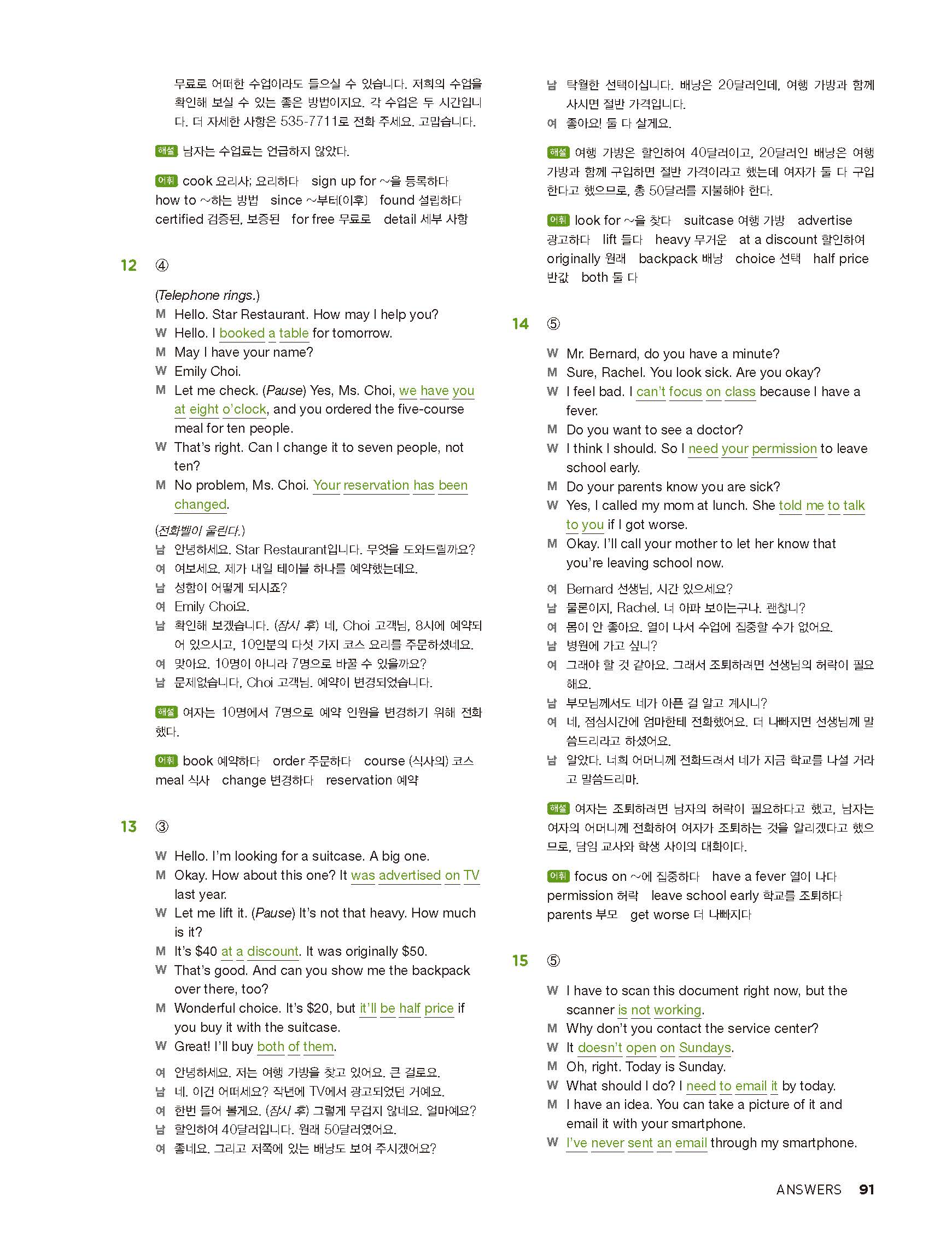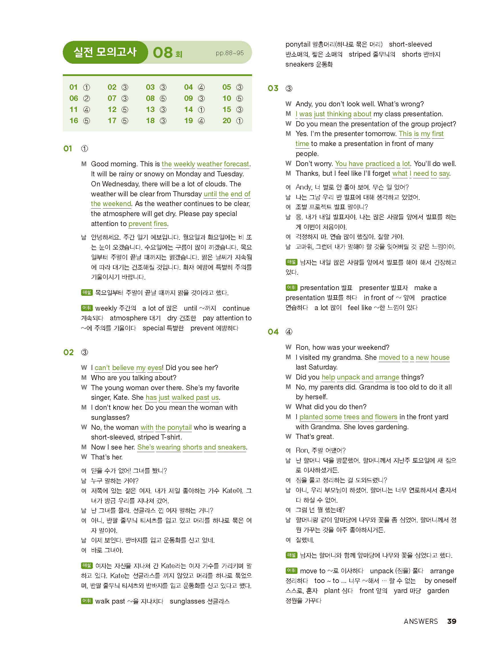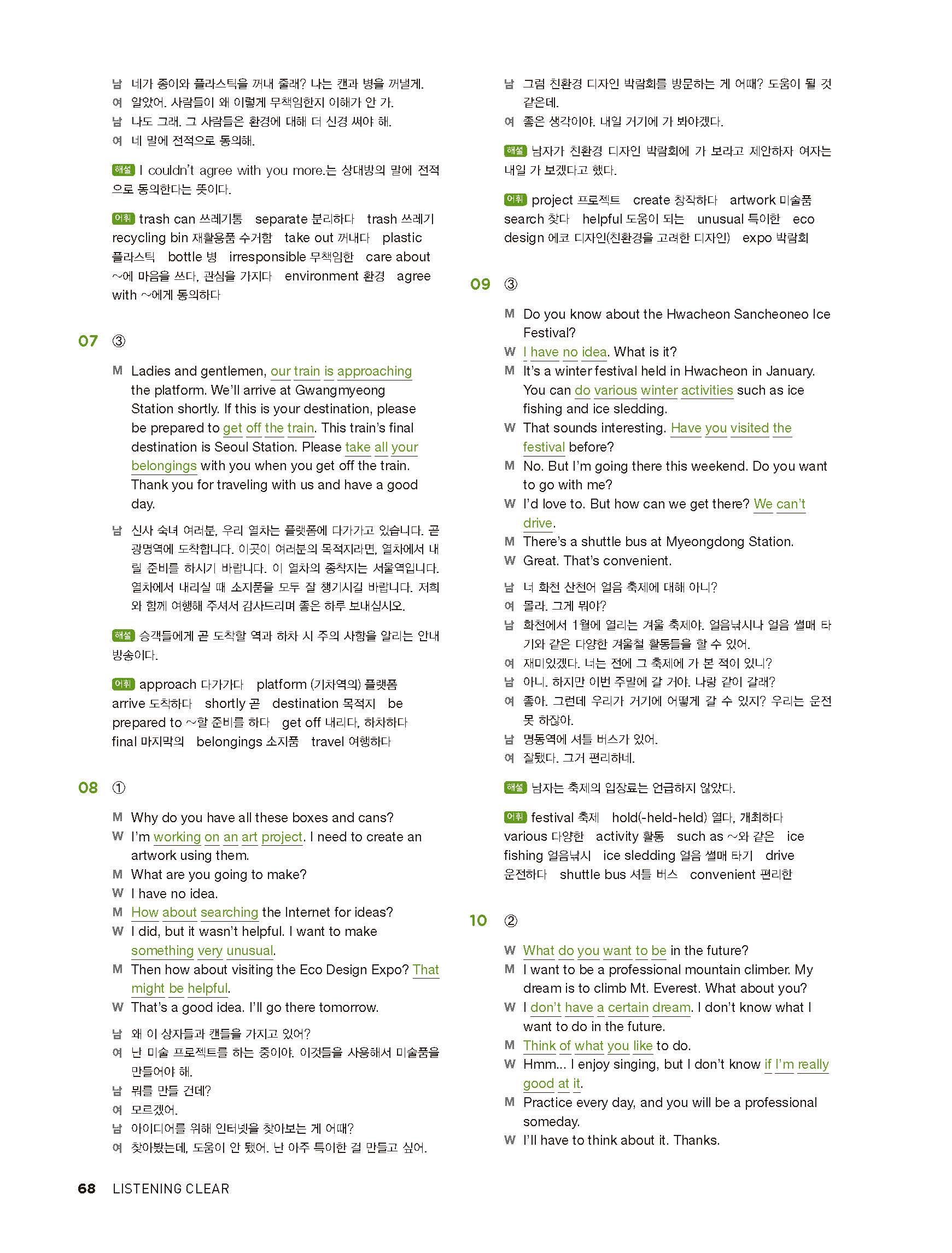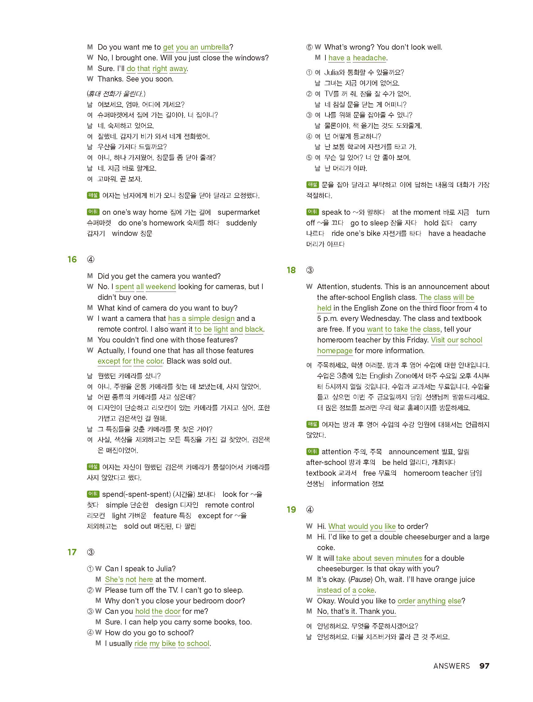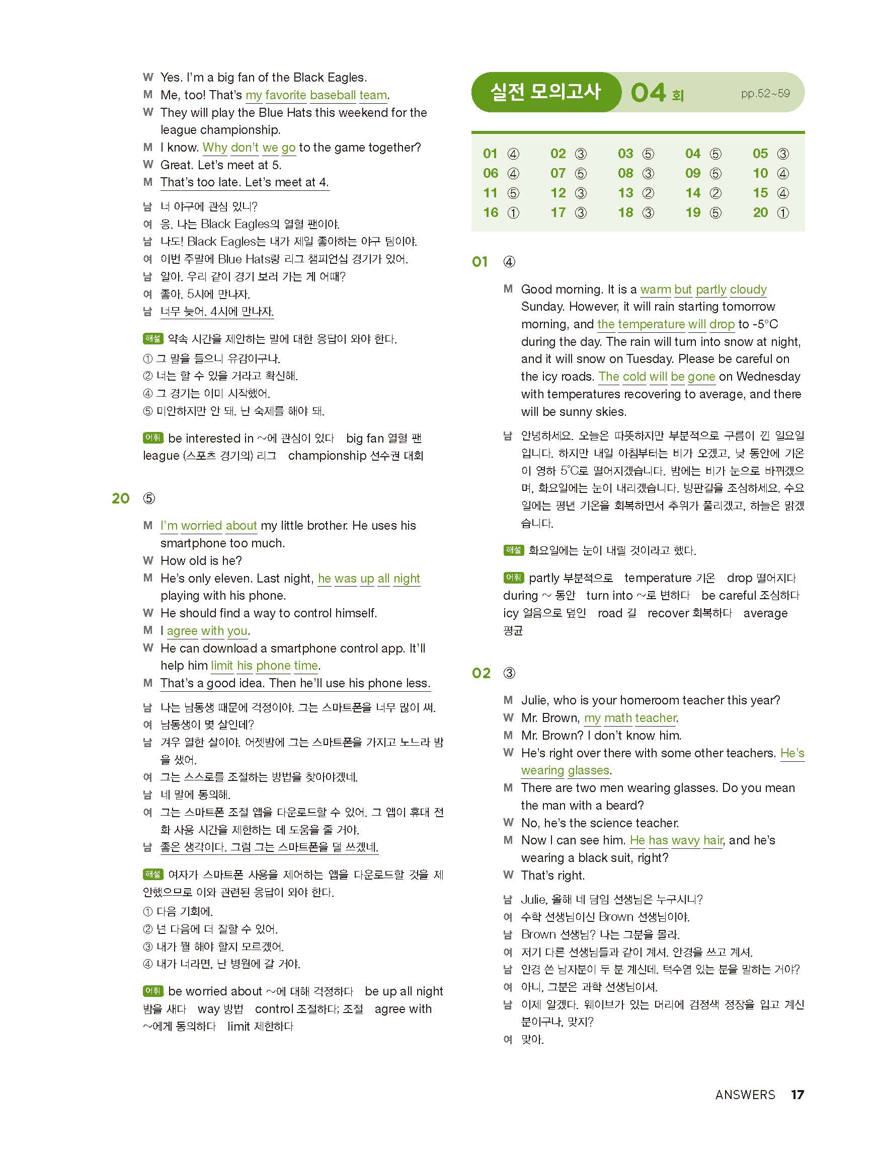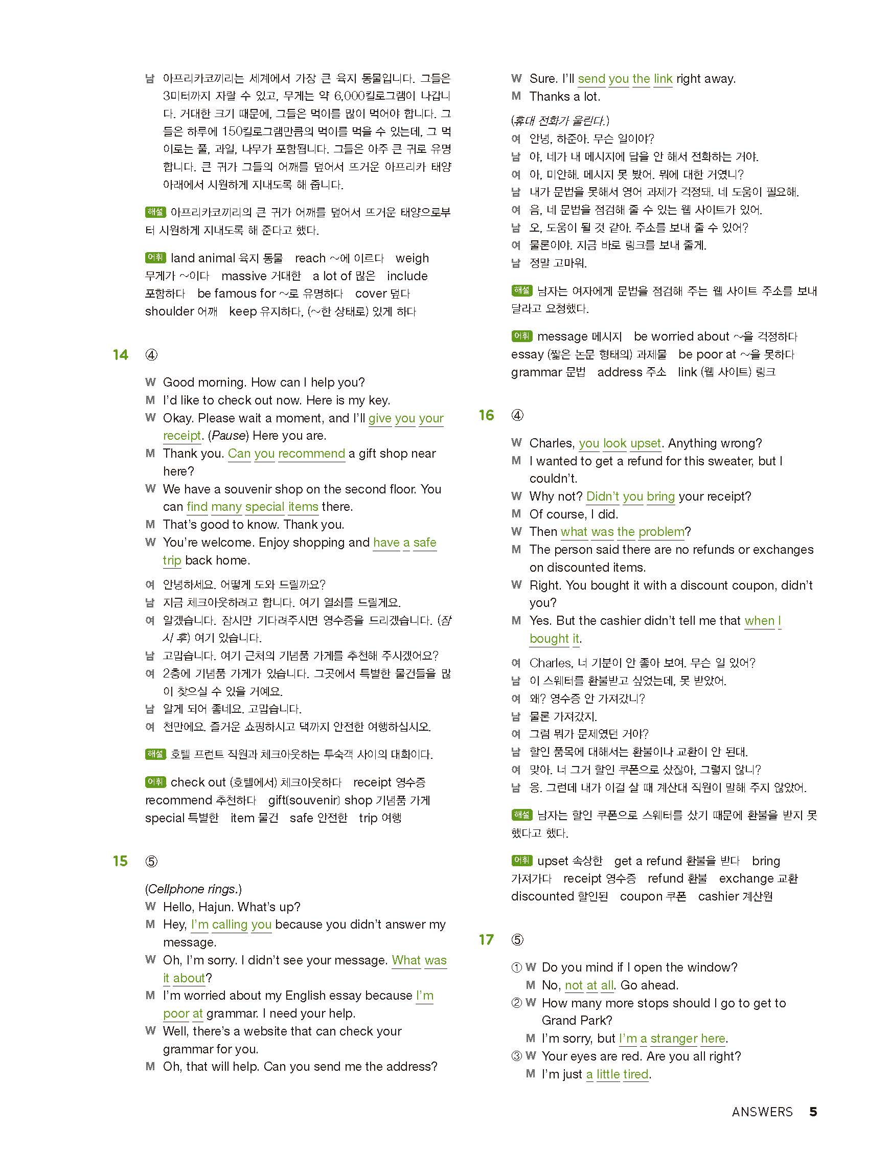 중학리스닝클리어 레벨2 답지 해설지 사진답지 빠른답지 모바일최적화