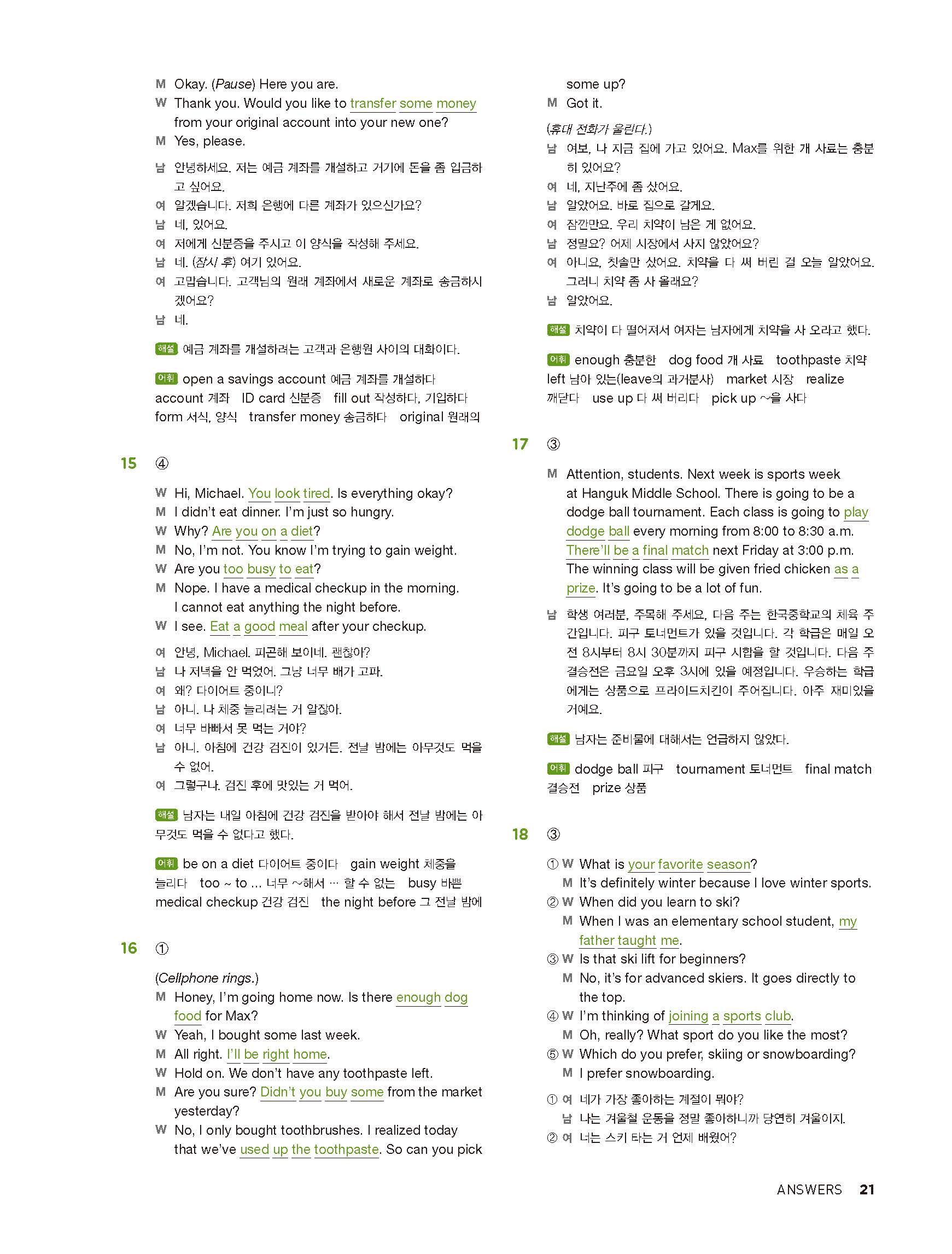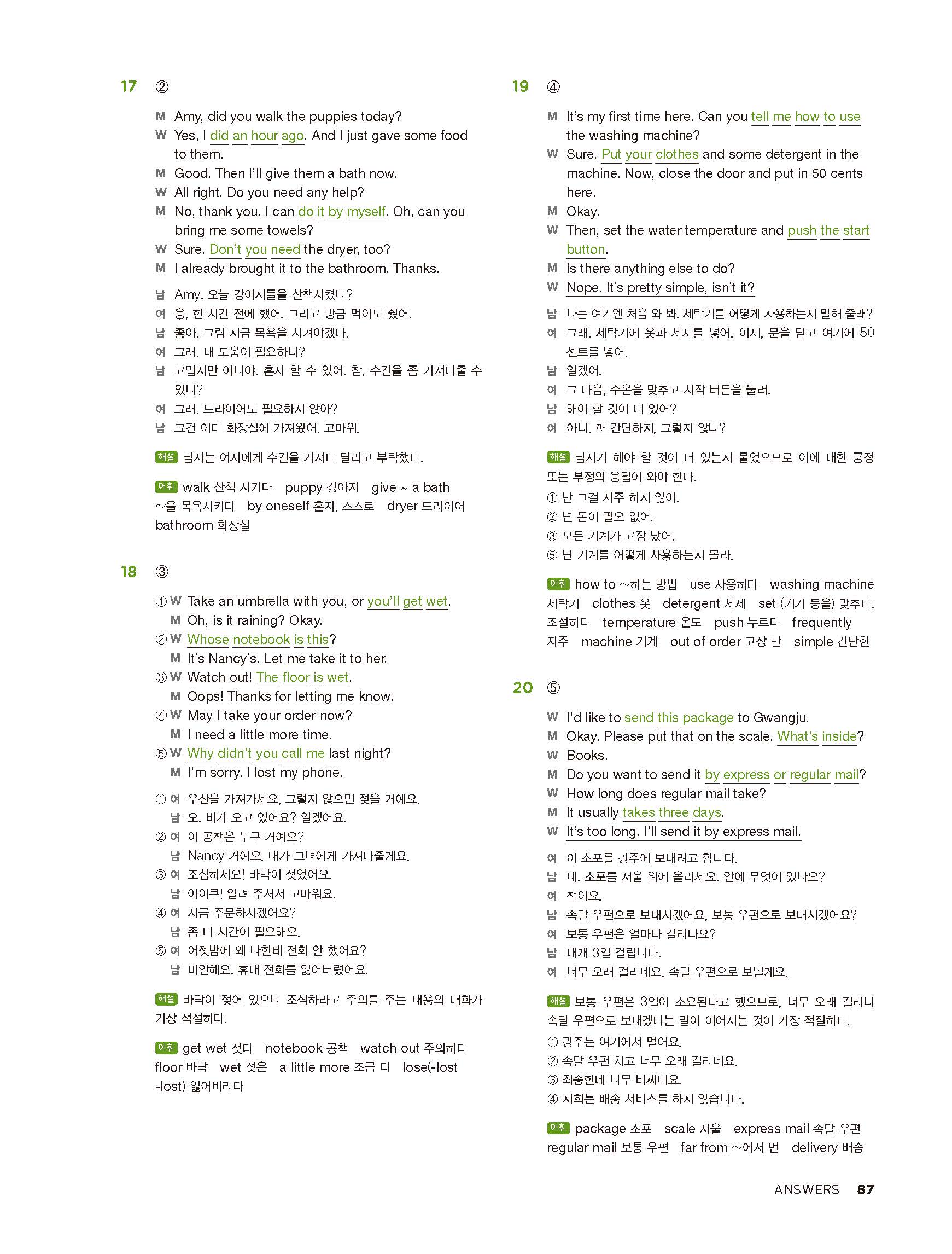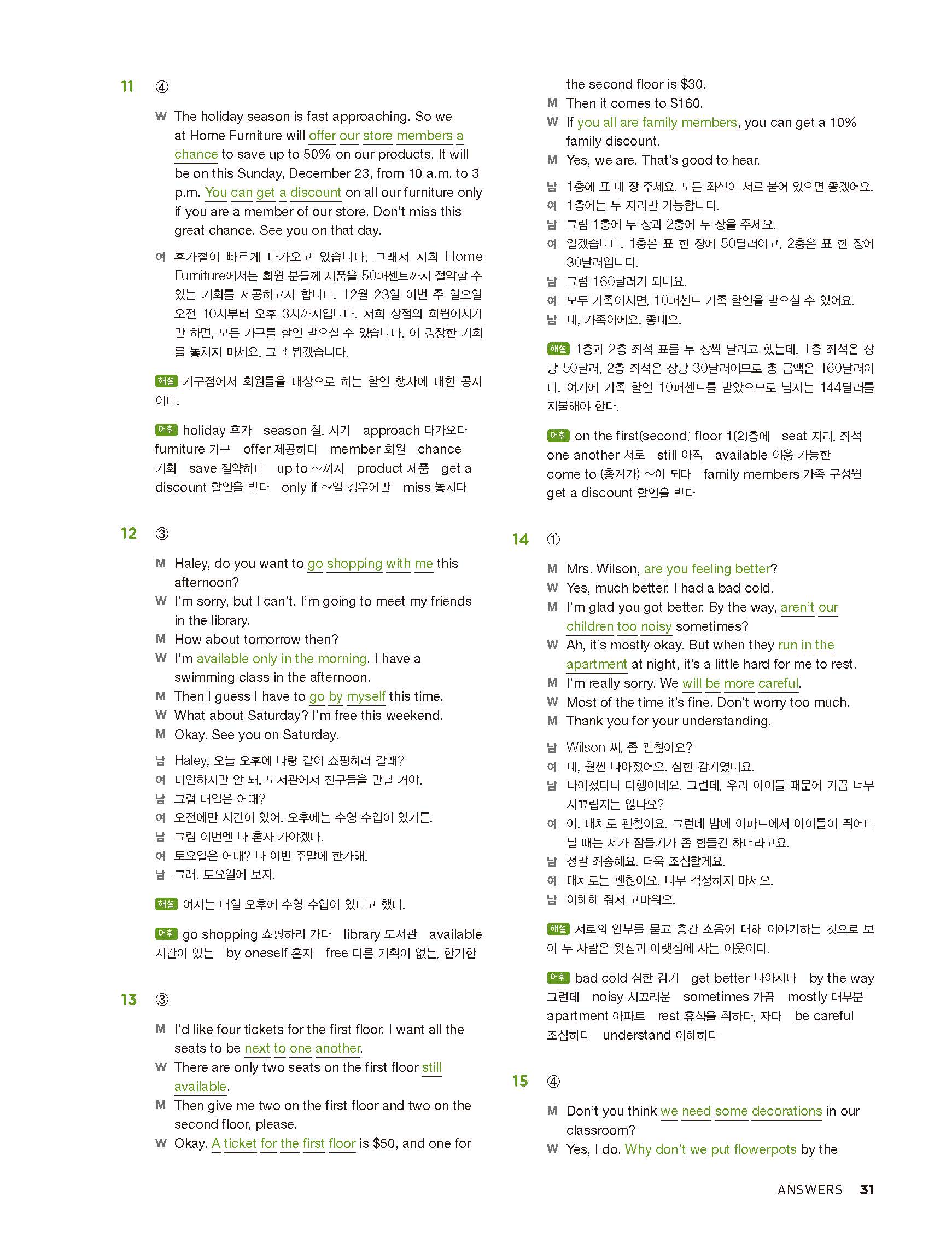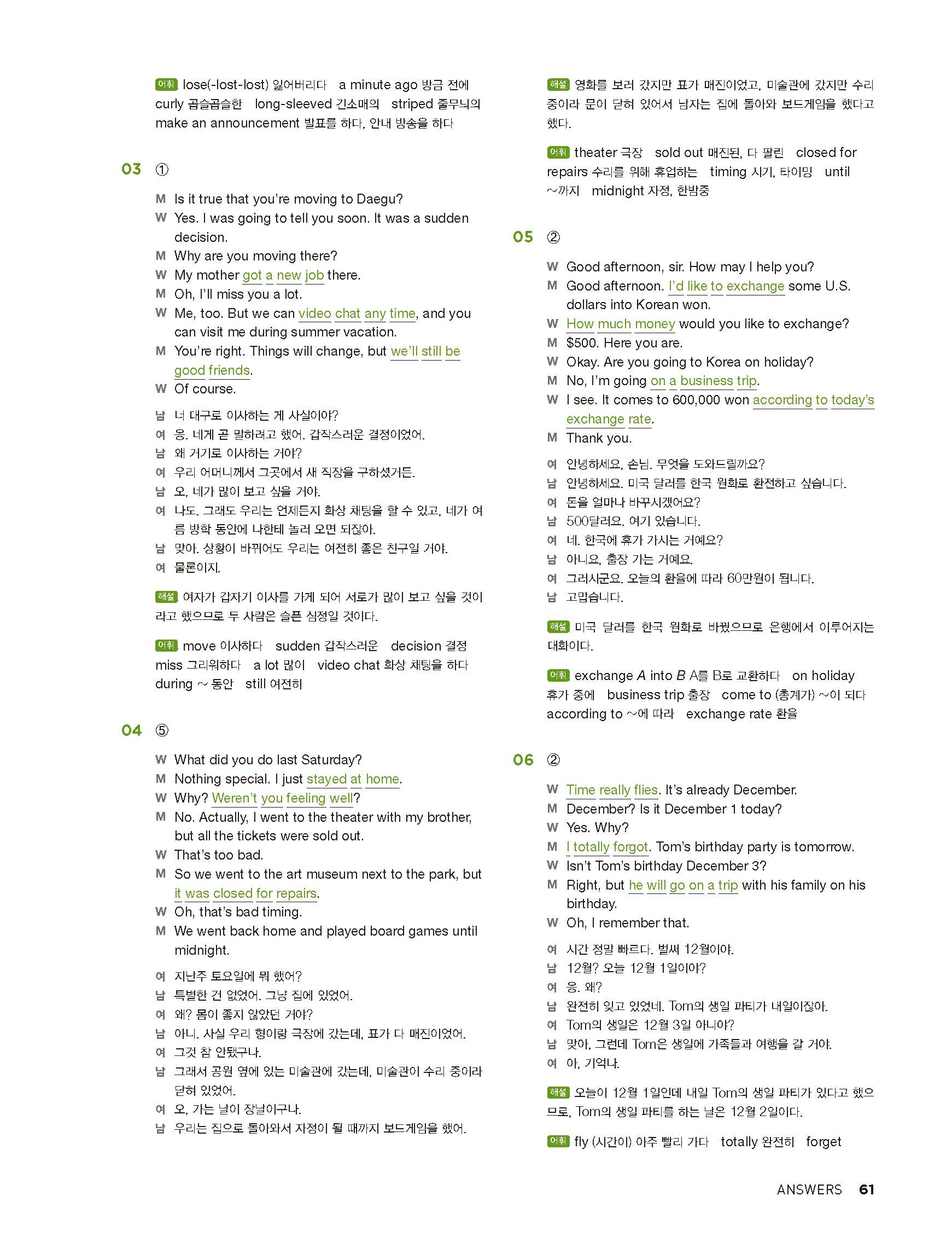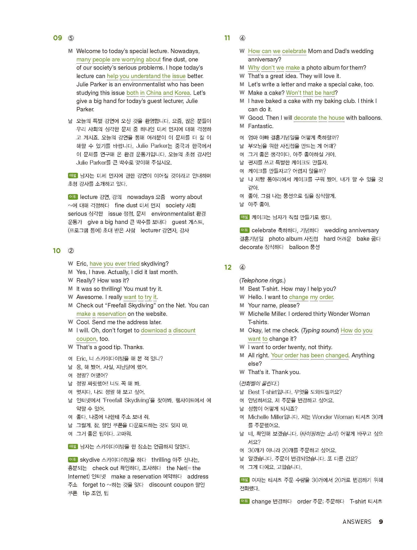 중학리스닝클리어 레벨2 답지 해설지 사진답지 빠른답지 모바일최적화