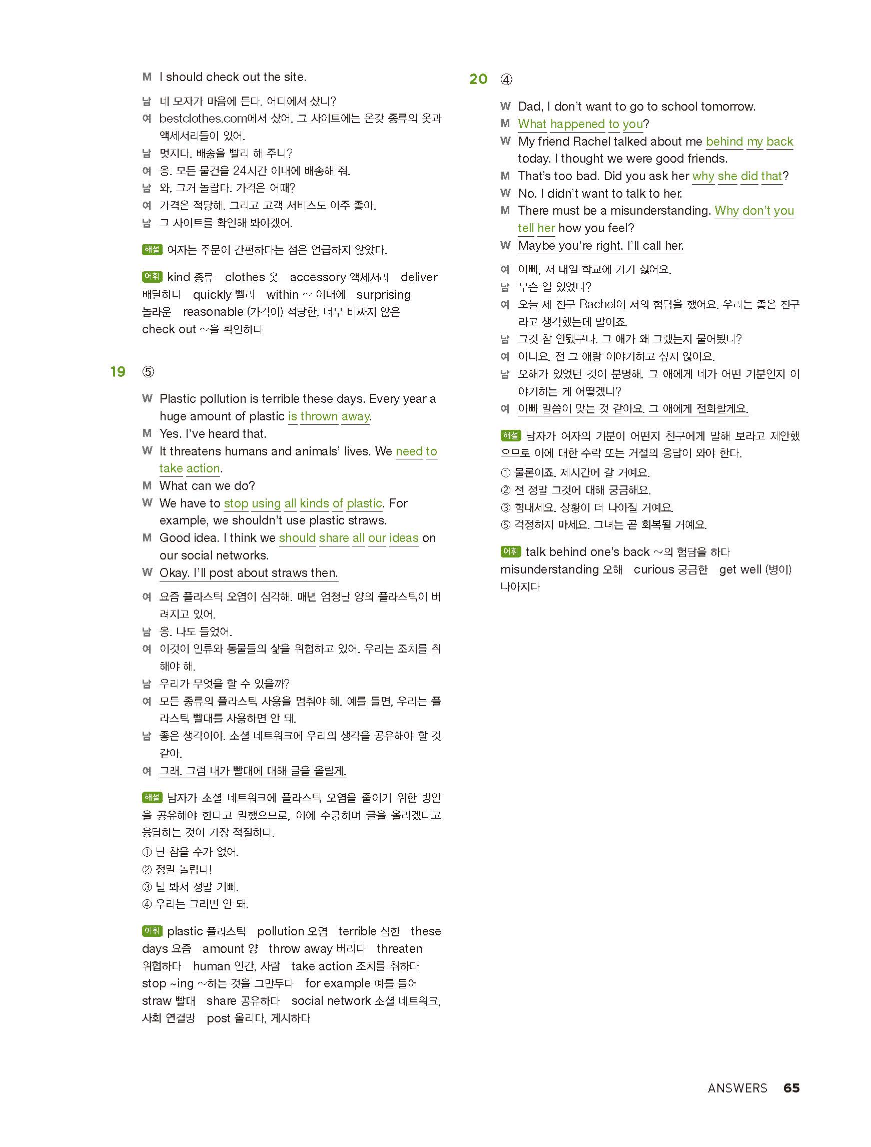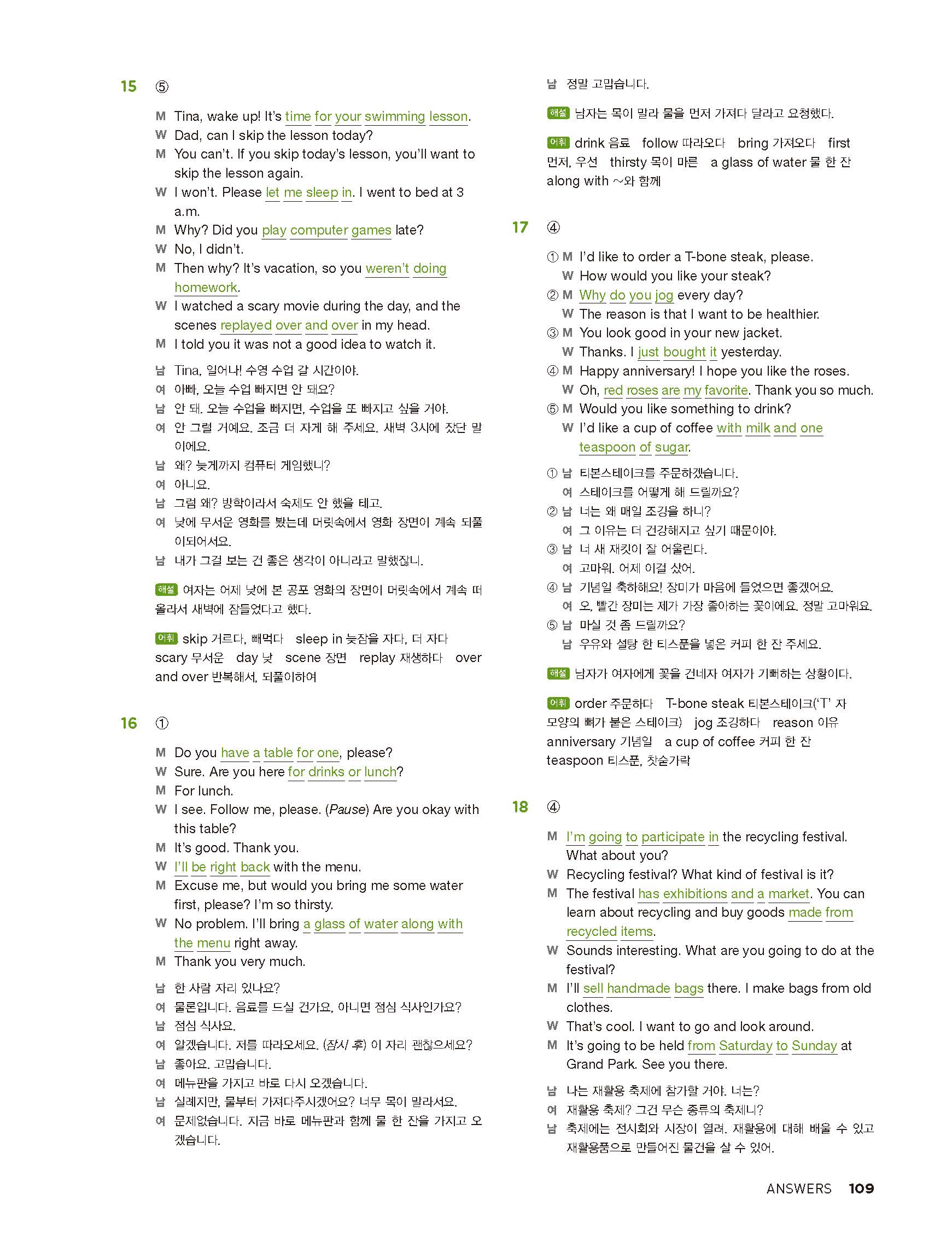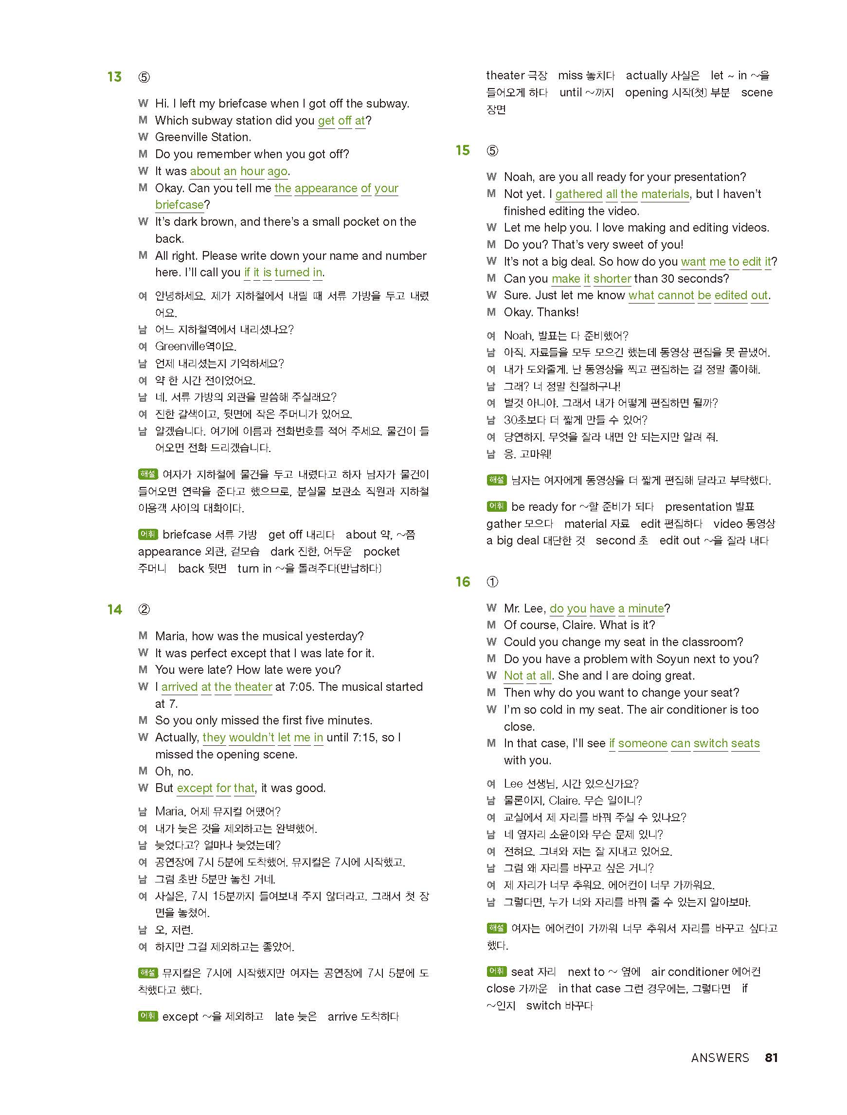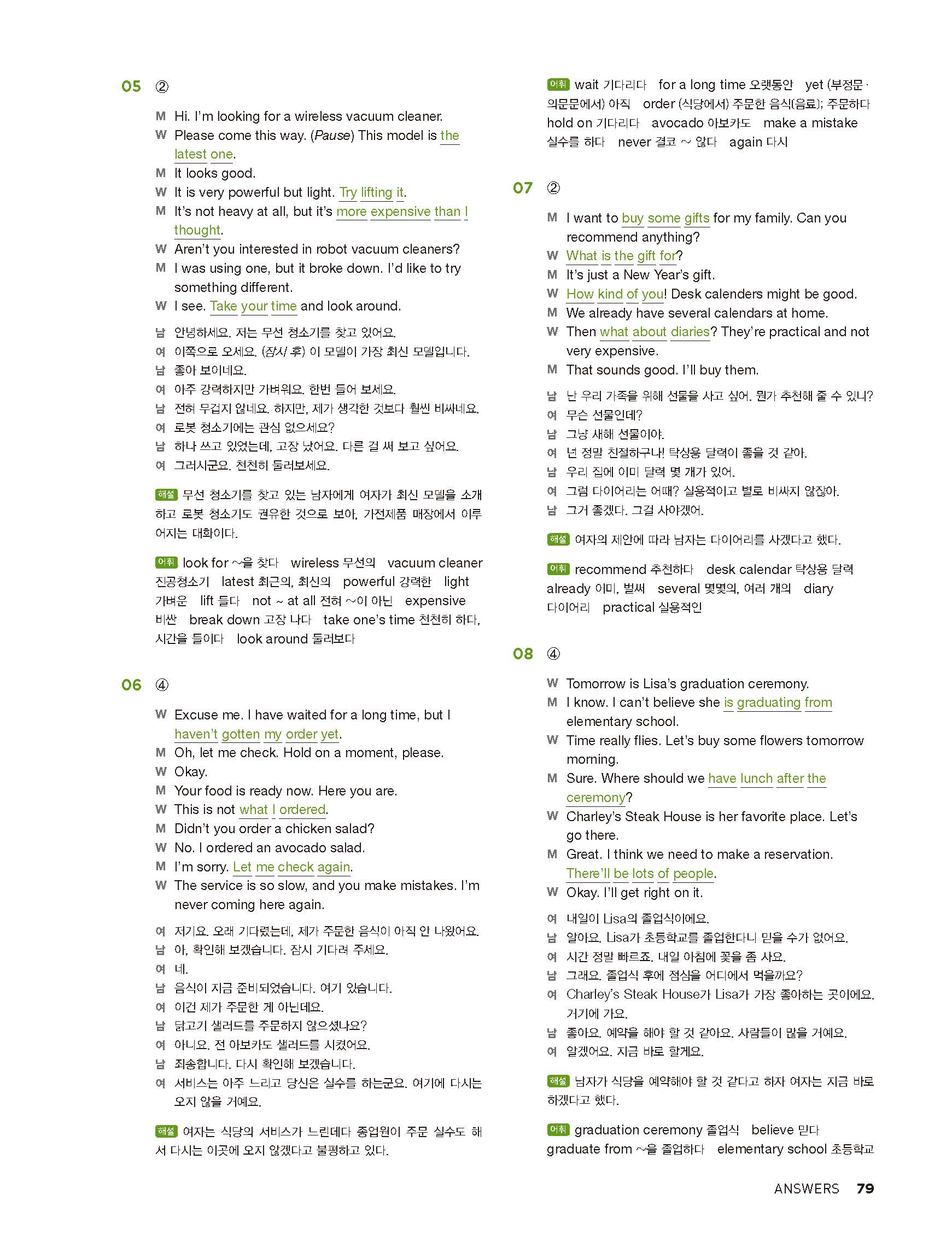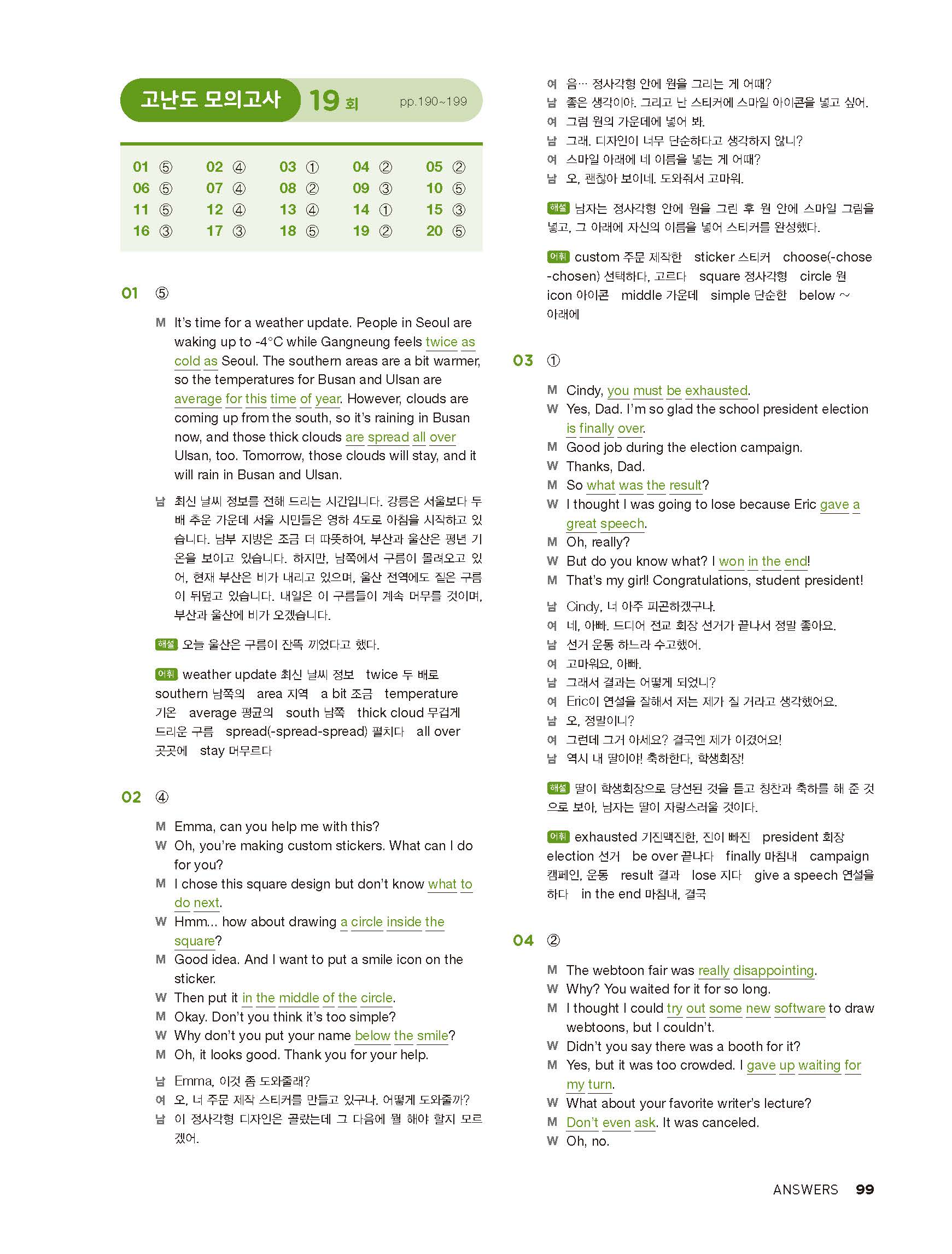 중학리스닝클리어 레벨2 답지 해설지 사진답지 빠른답지 모바일최적화