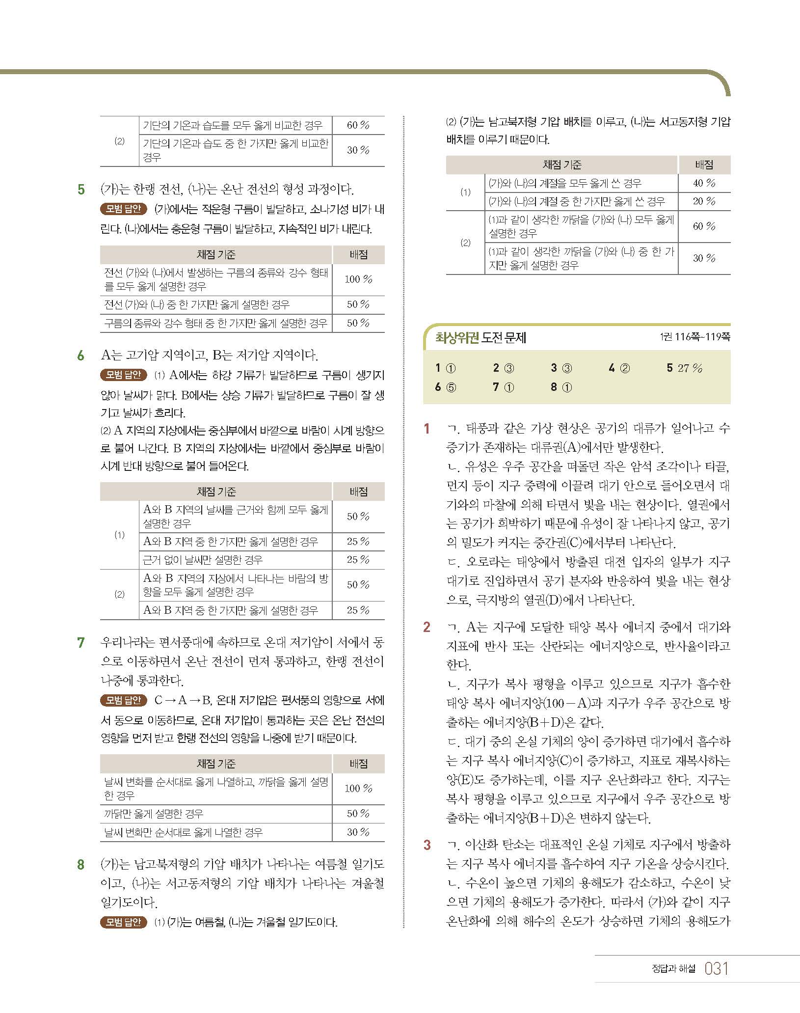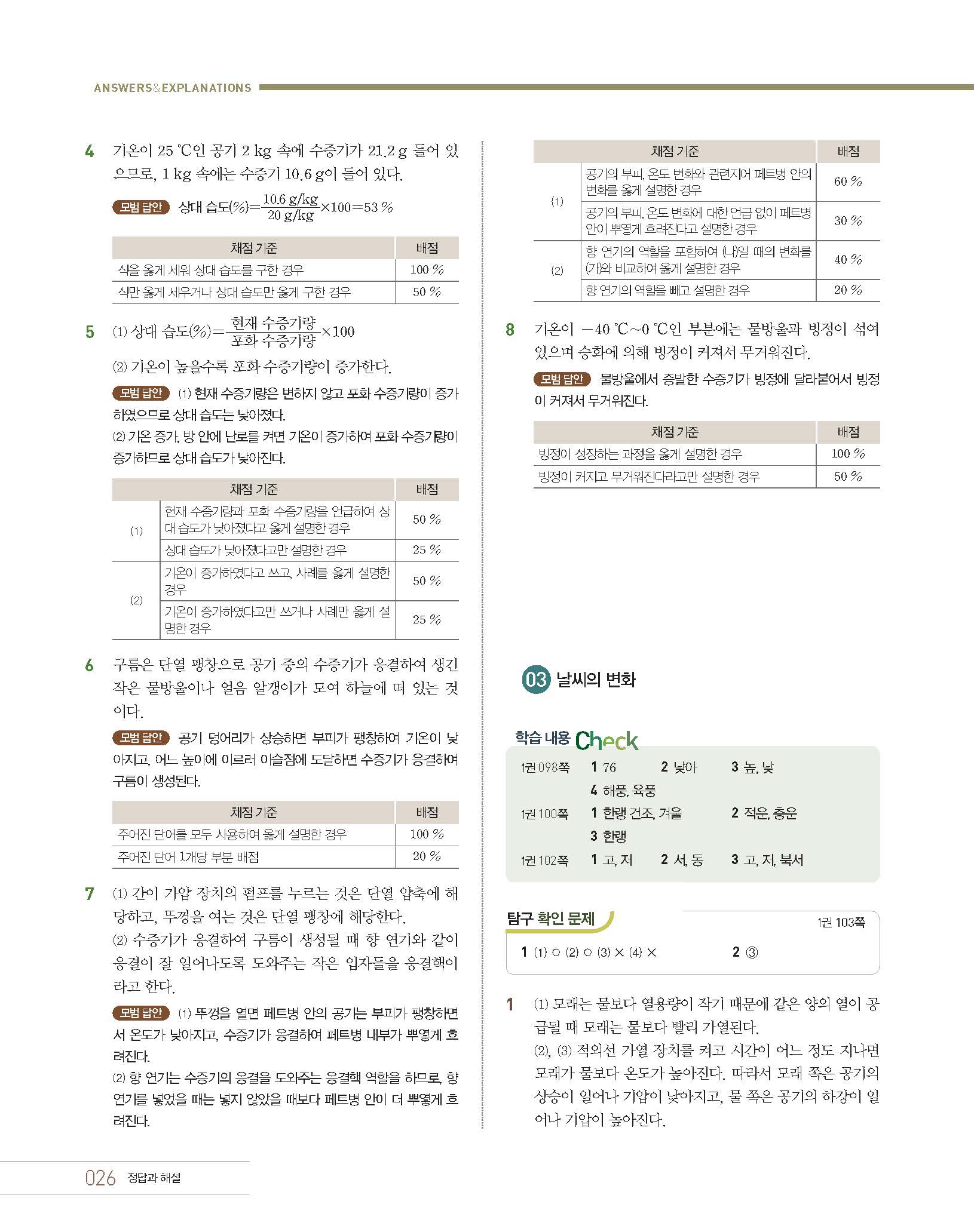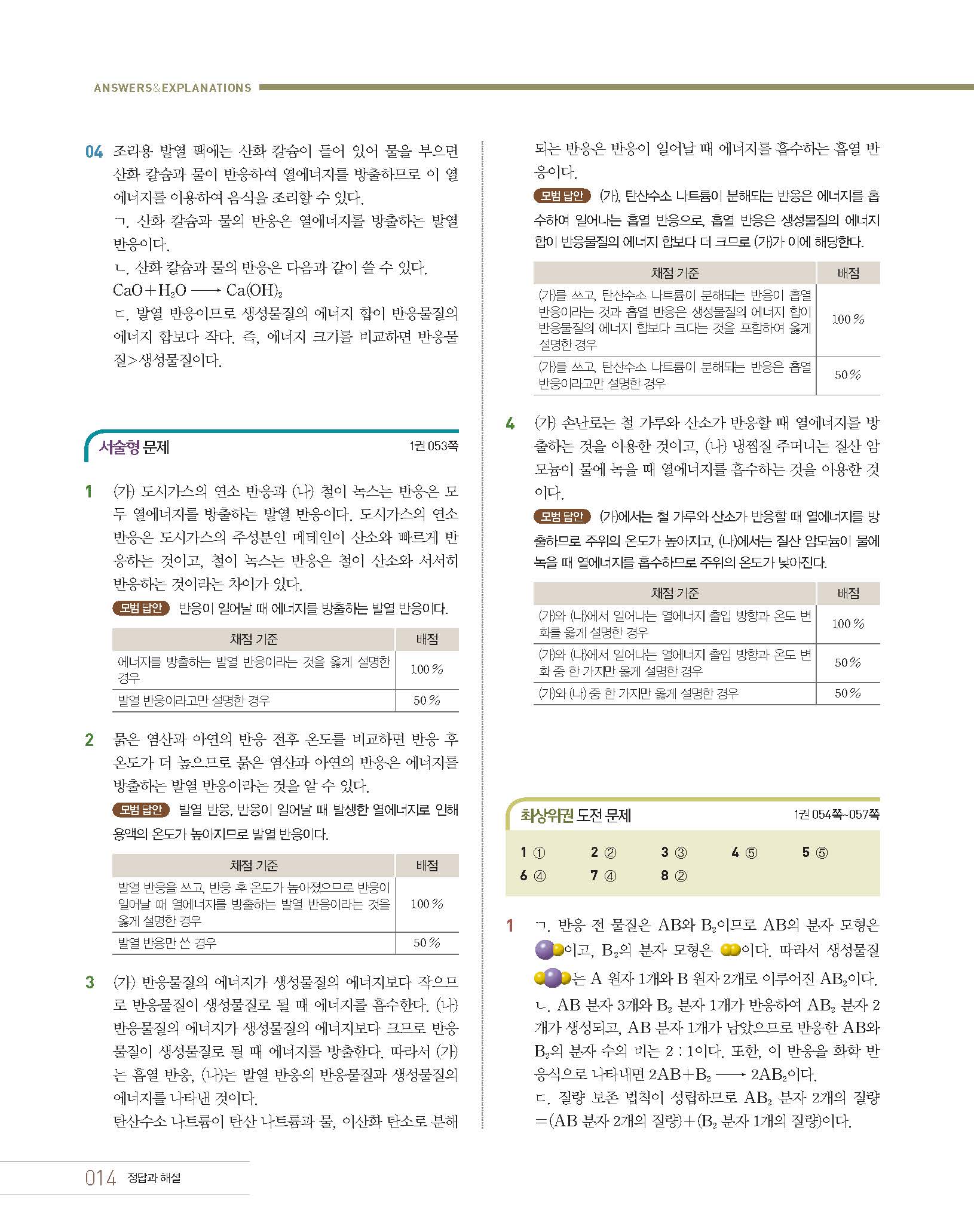 중등하이탑 과학 중3 답지 해설지 사진답지 빠른답지 모바일최적화