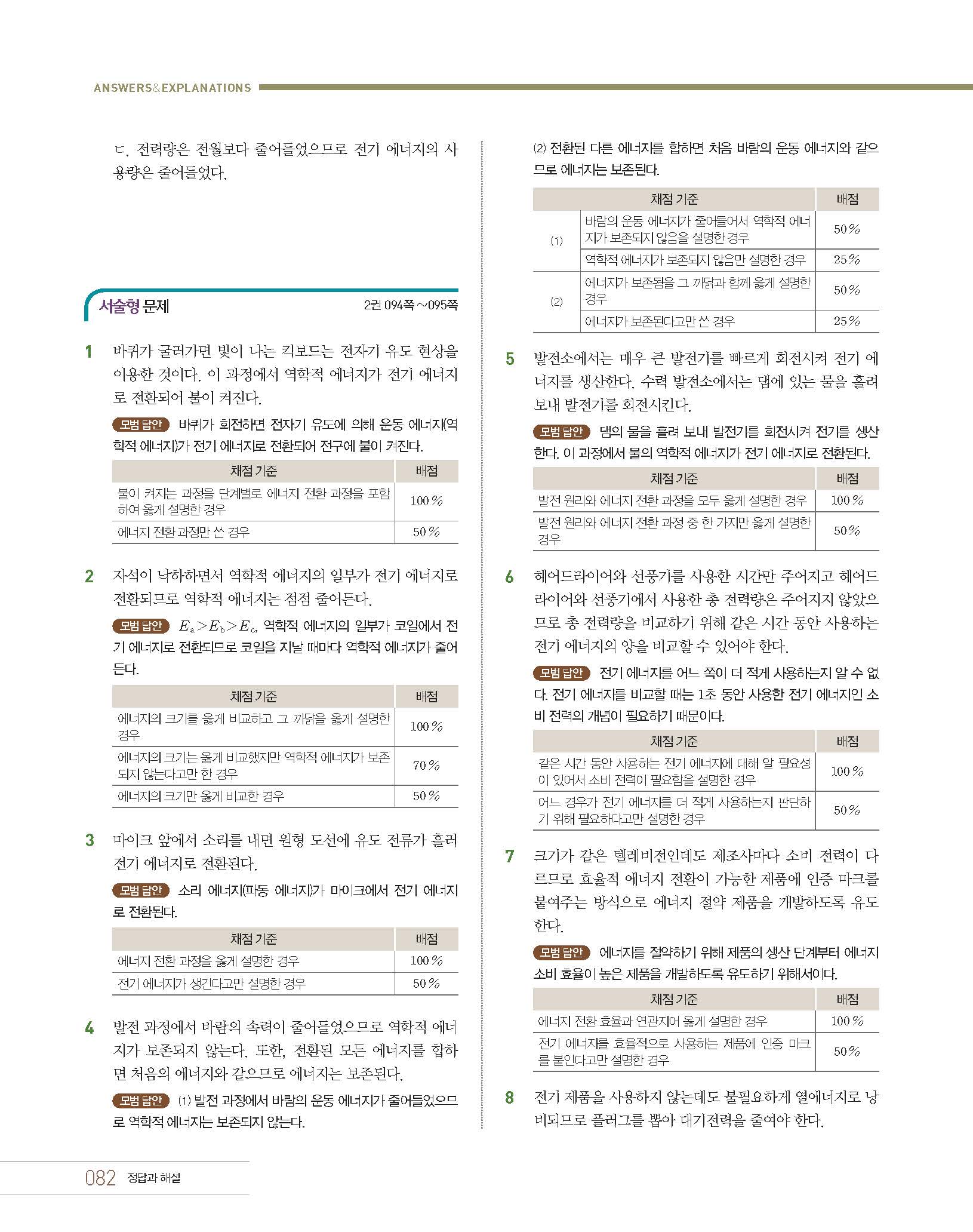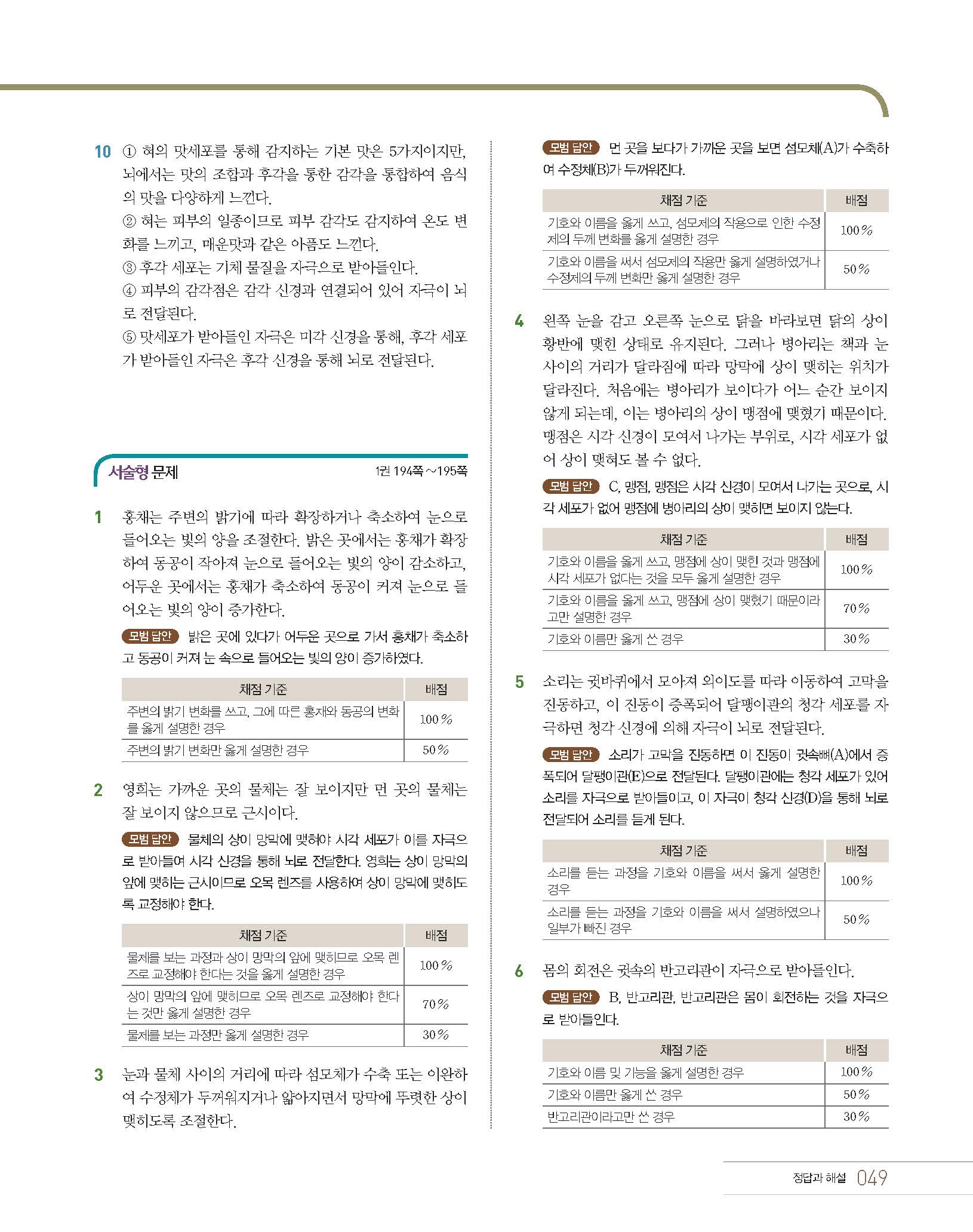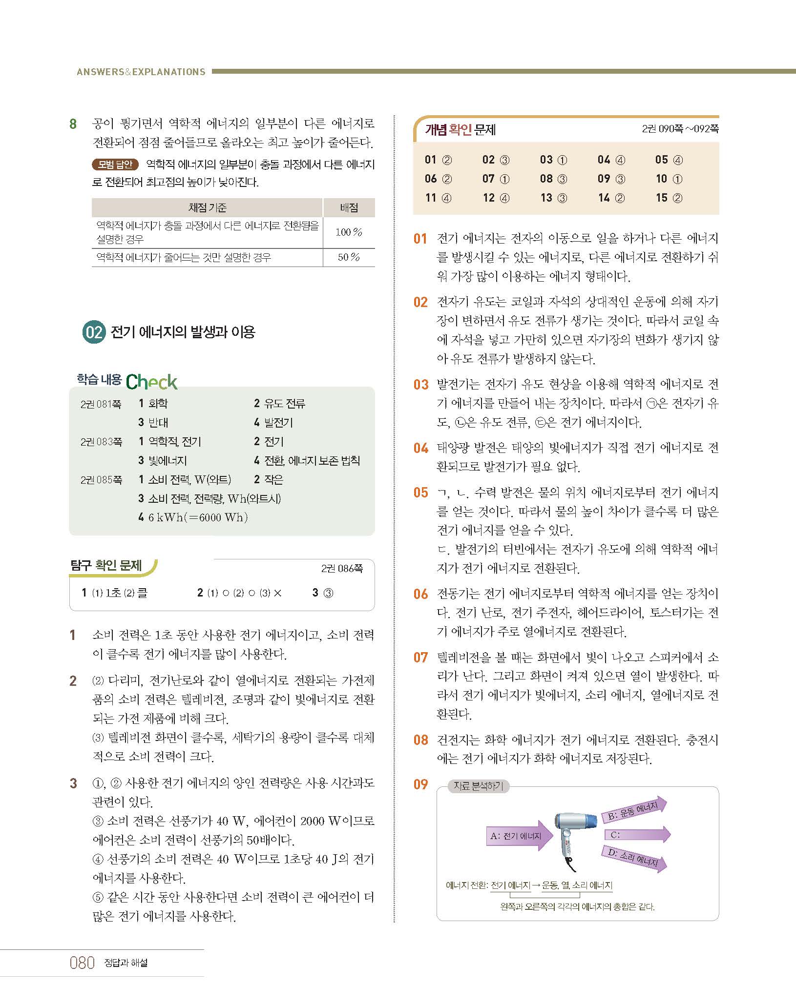 중등하이탑 과학 중3 답지 해설지 사진답지 빠른답지 모바일최적화