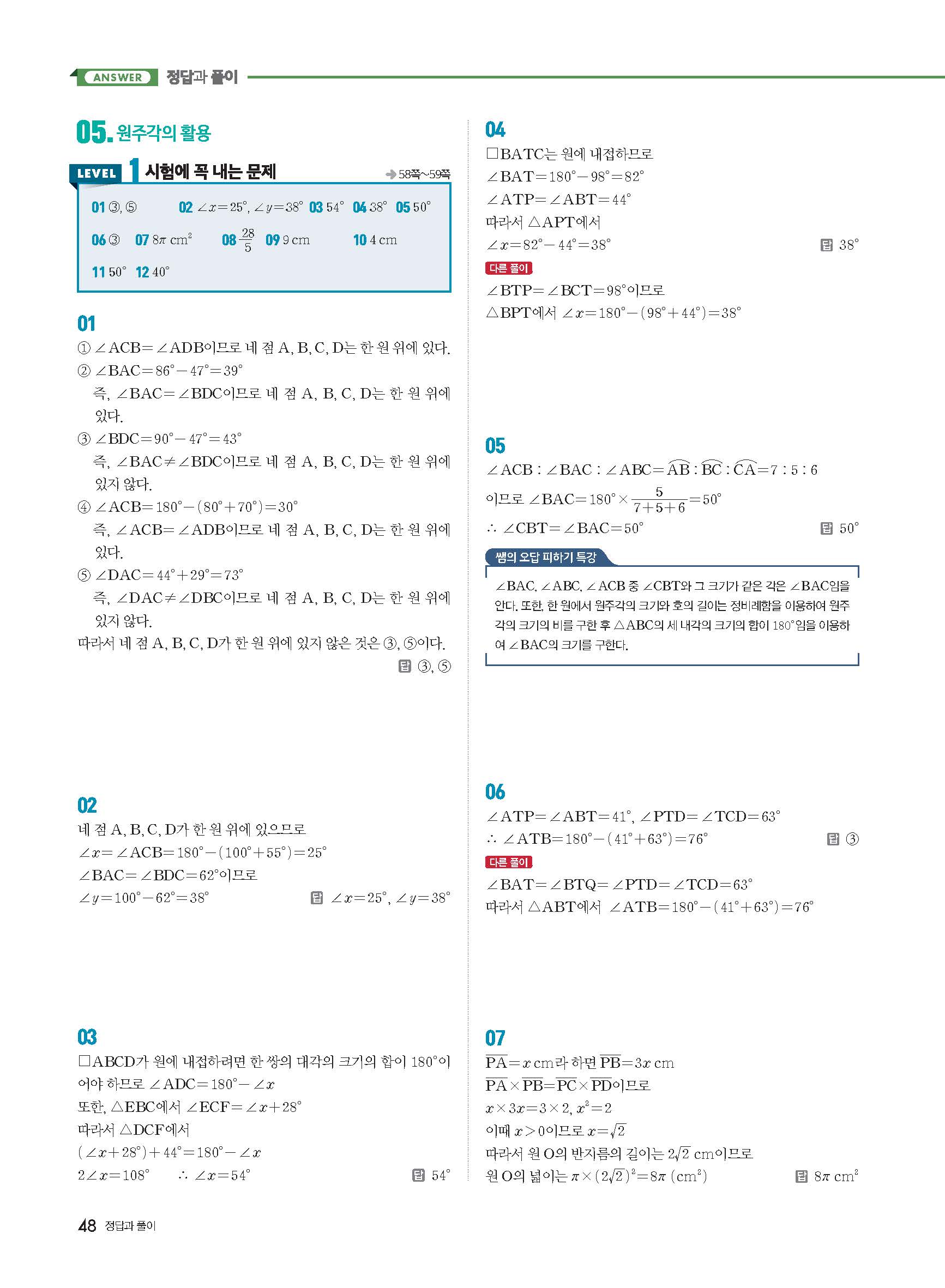 절대등급 중학수학 3-2 중3하 답지 해설지 사진답지 빠른답지 모바일최적화