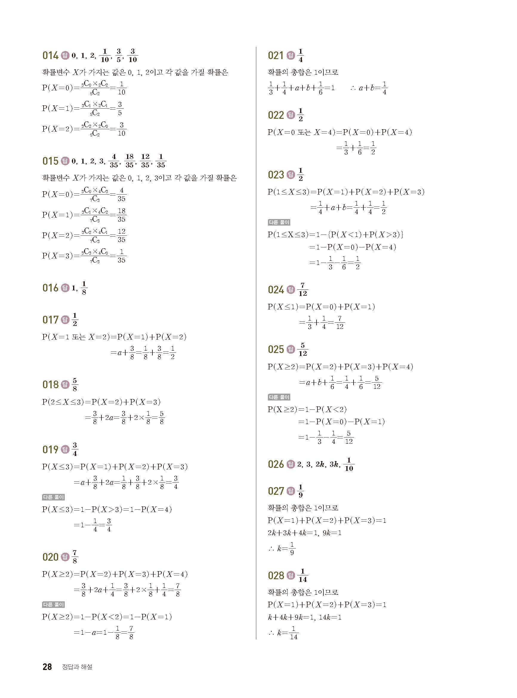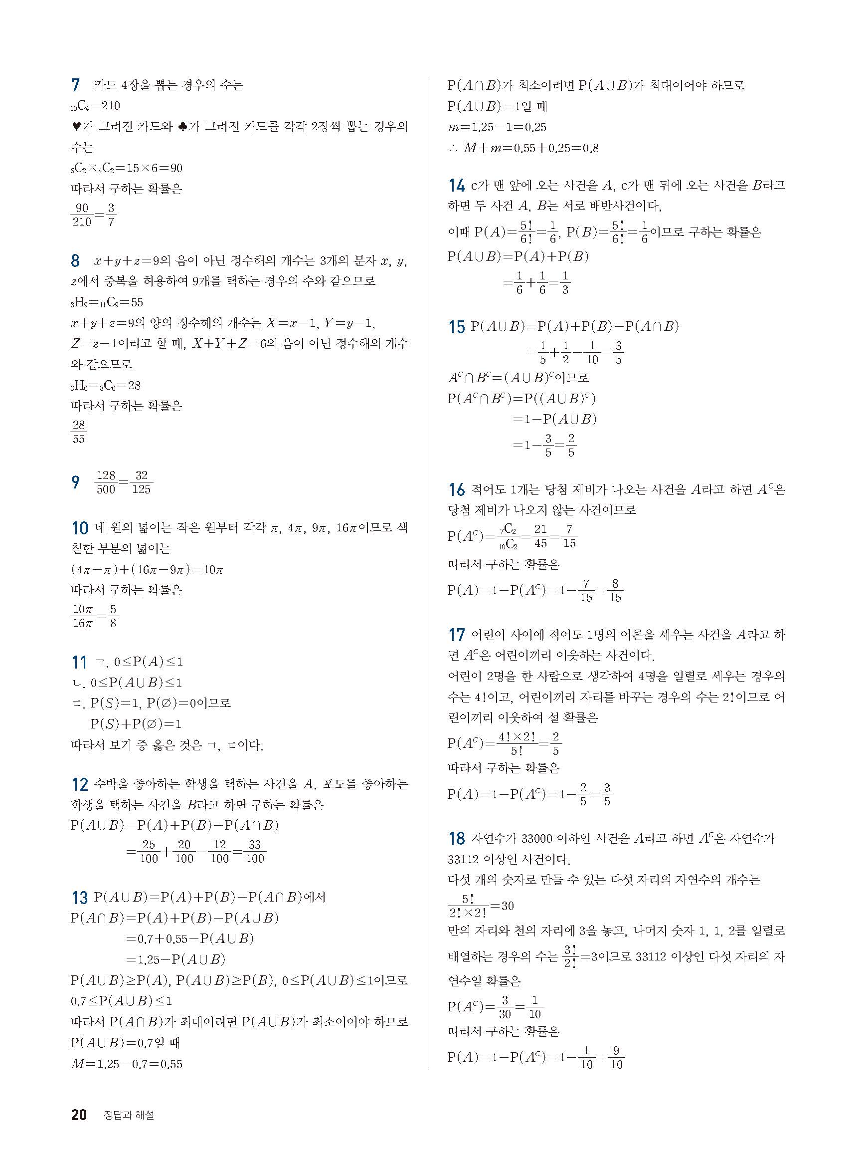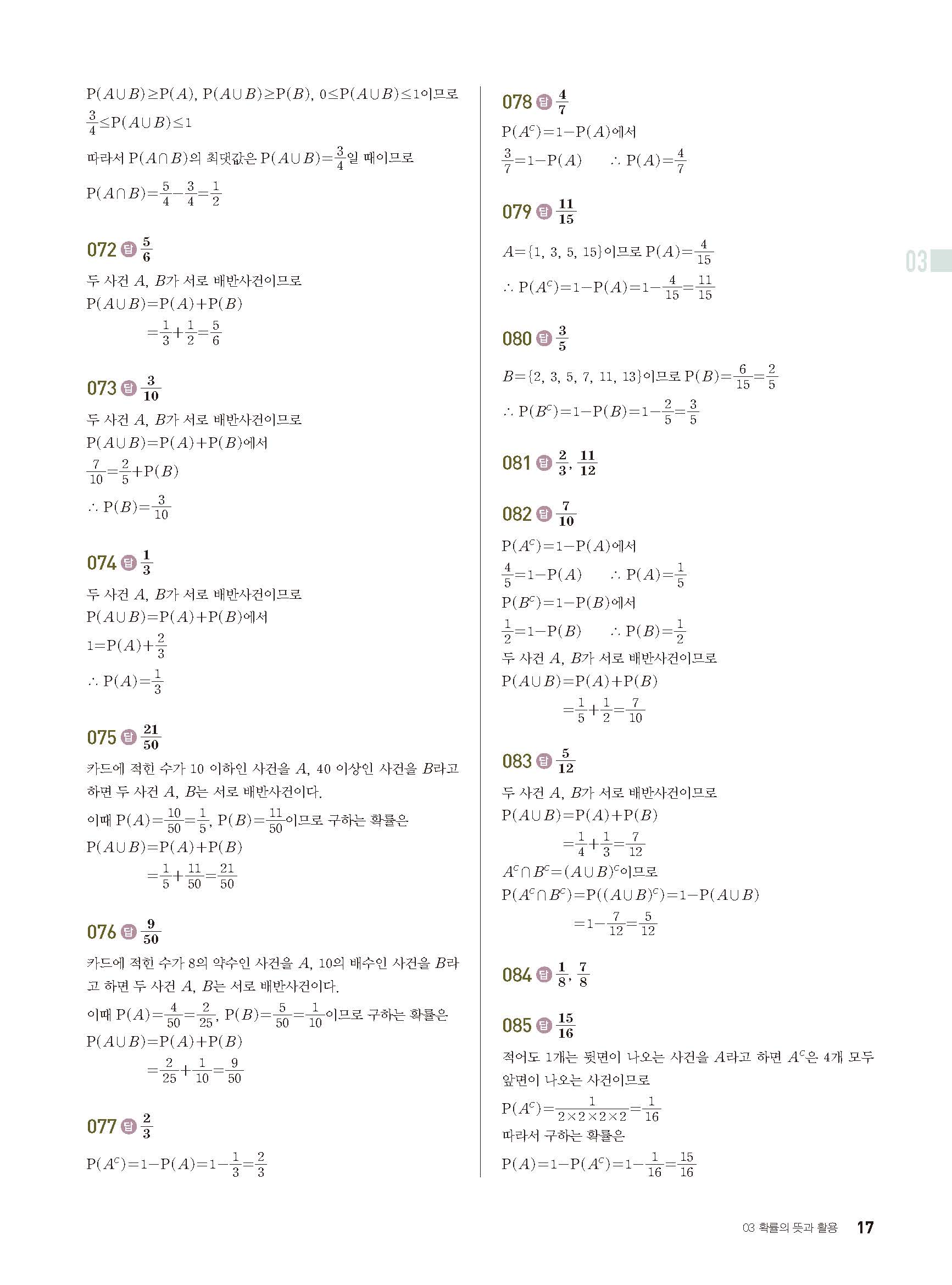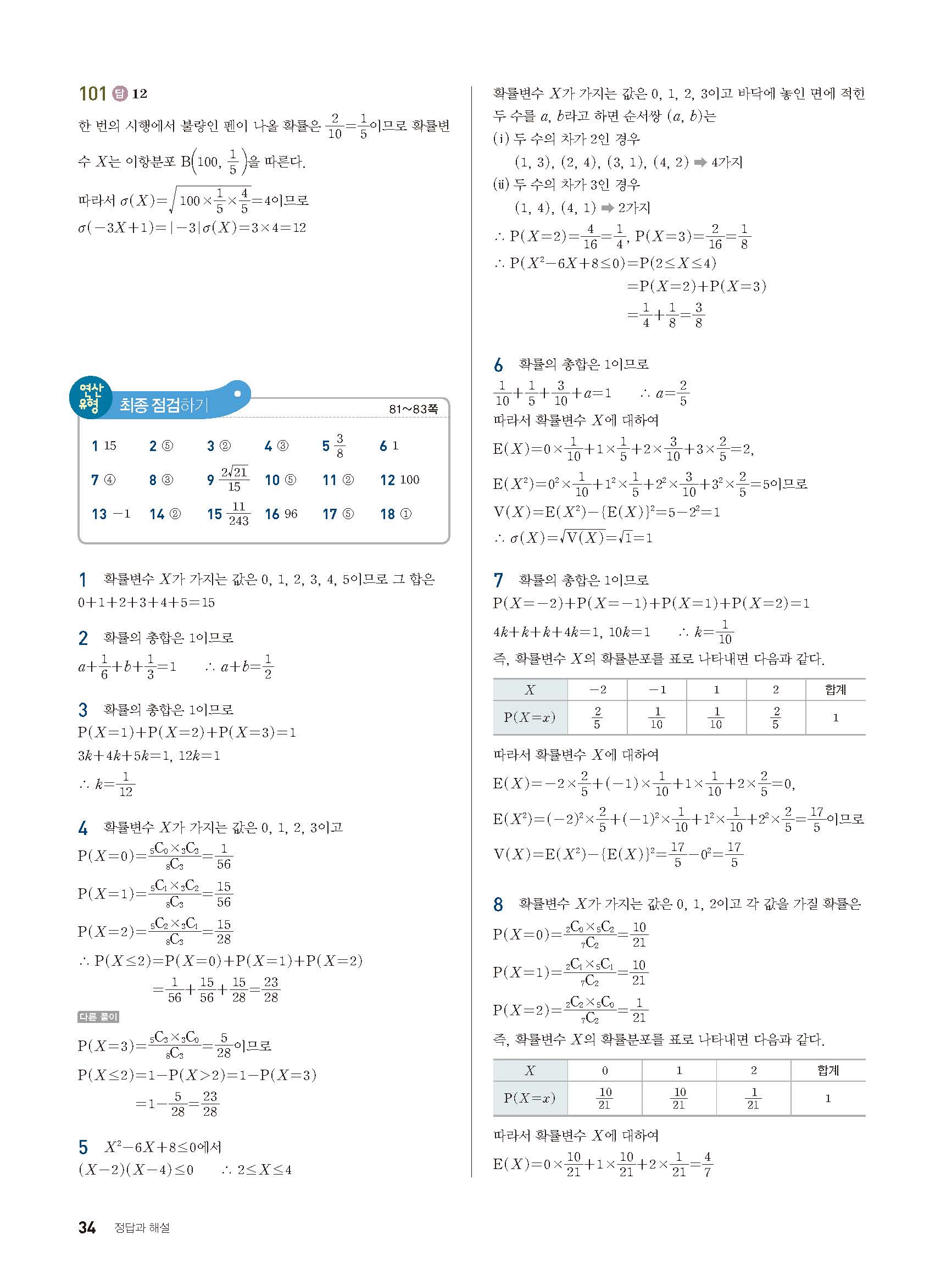 만렙AM 확률과통계 답지 해설 사진답지 빠른답지 모바일최적화