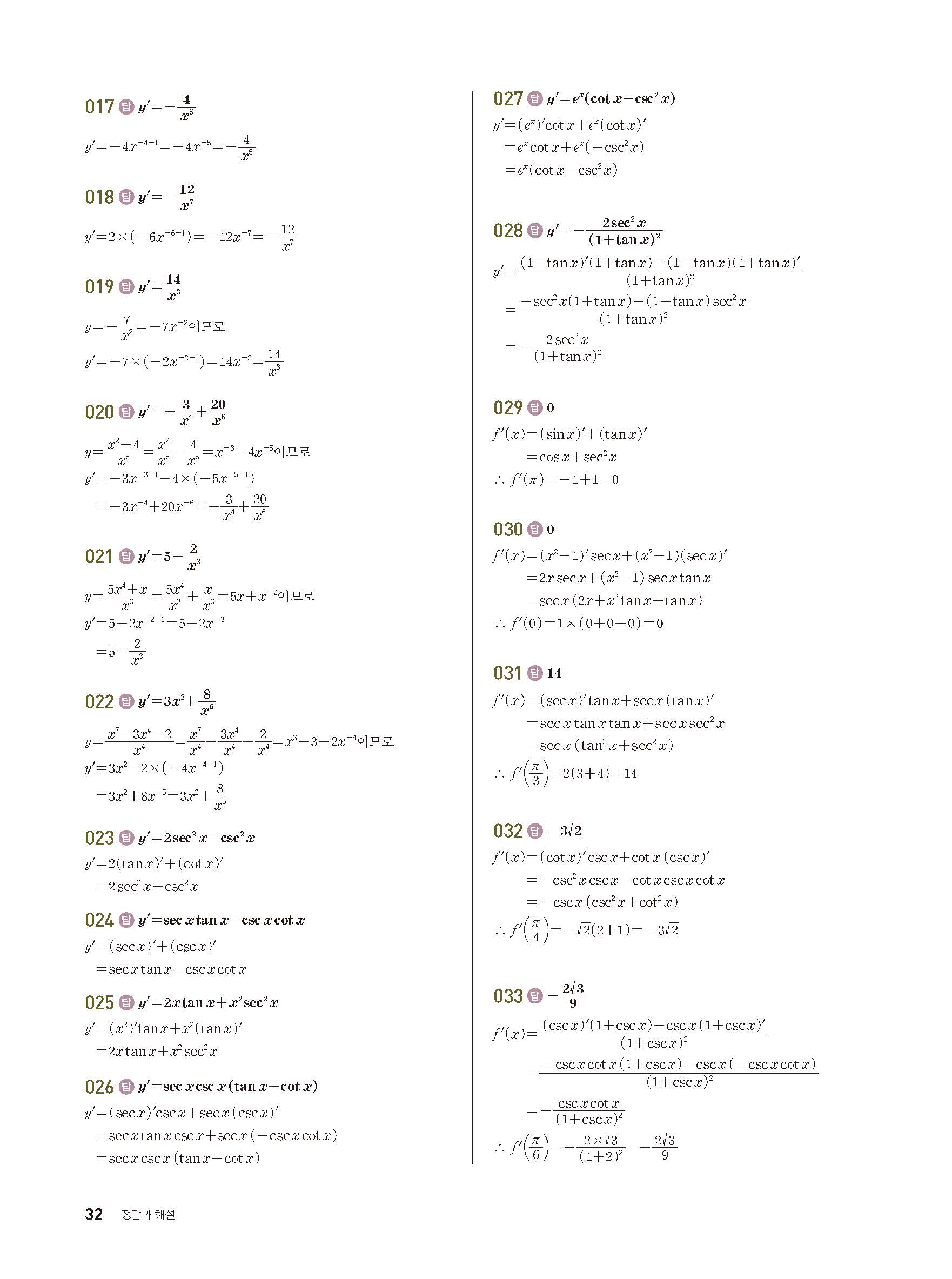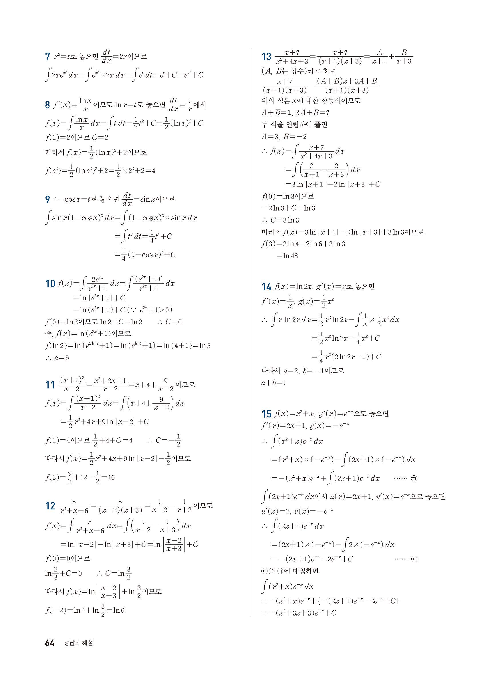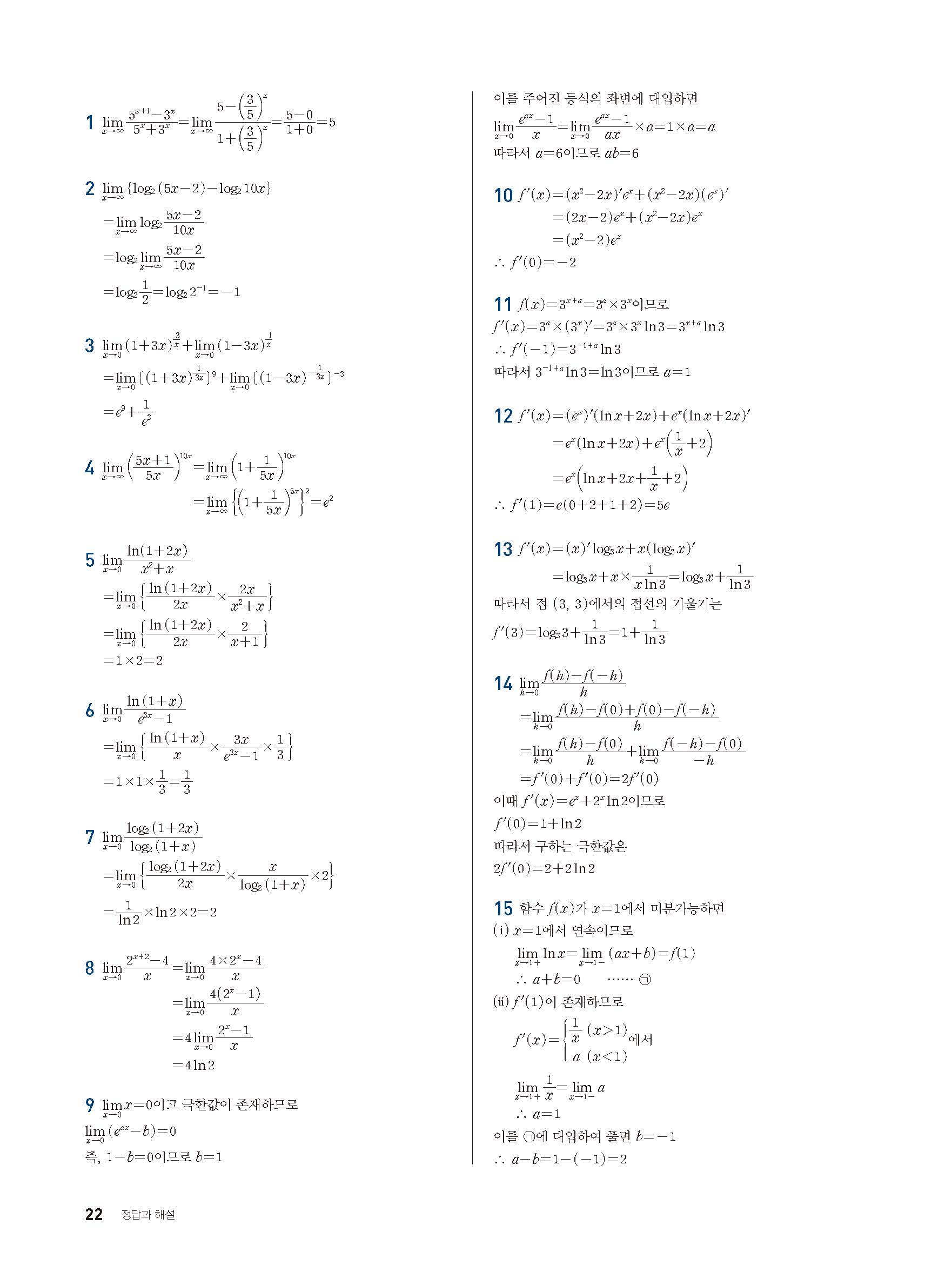 만렙AM 미적분 답지 해설 사진답지 빠른답지 모바일최적화