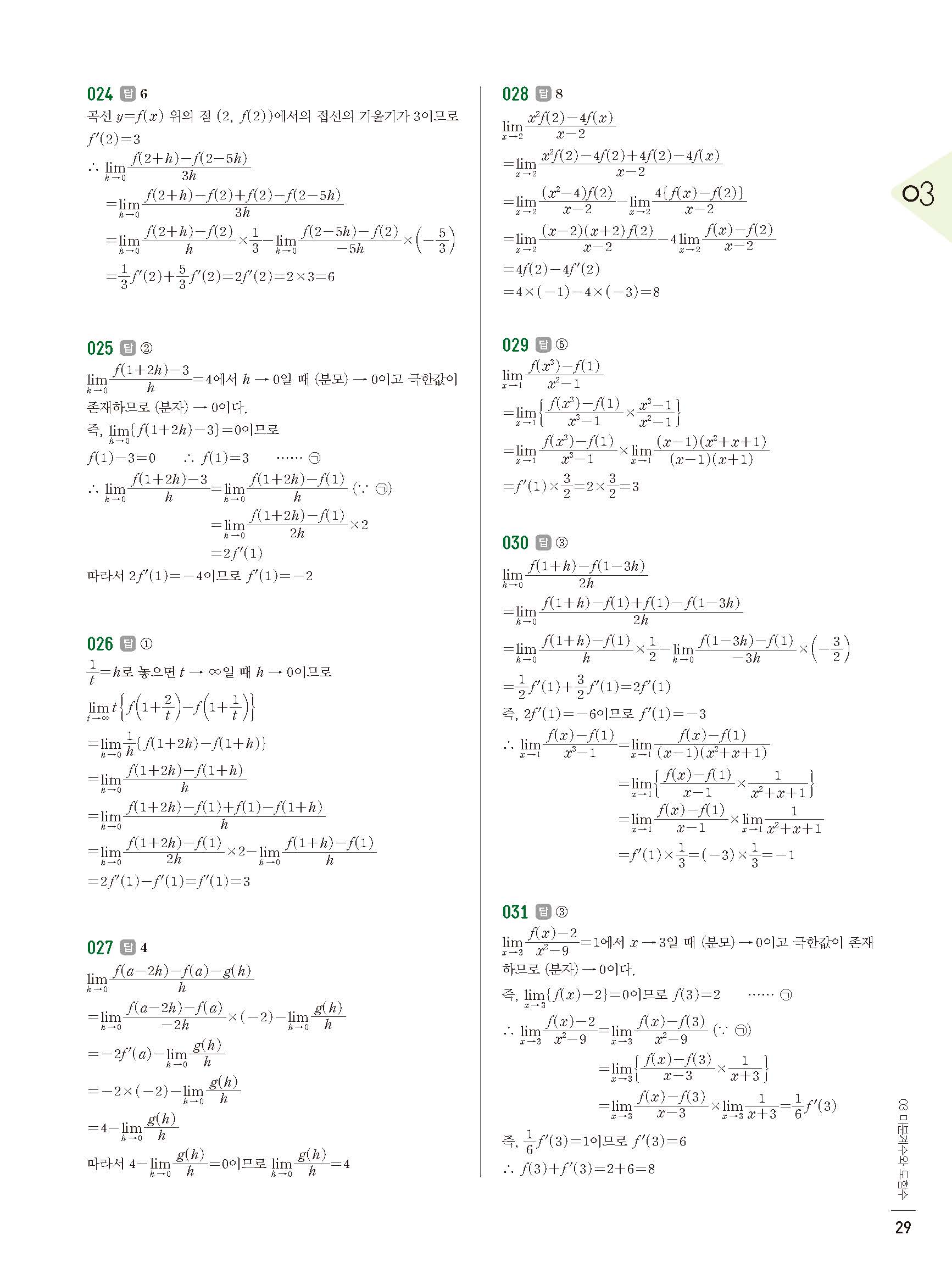 만렙PM 수학2 답지 해설 사진답지 빠른답지 모바일최적화