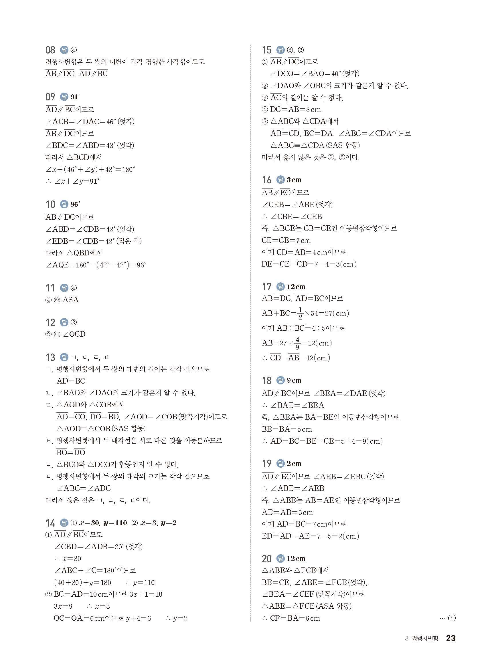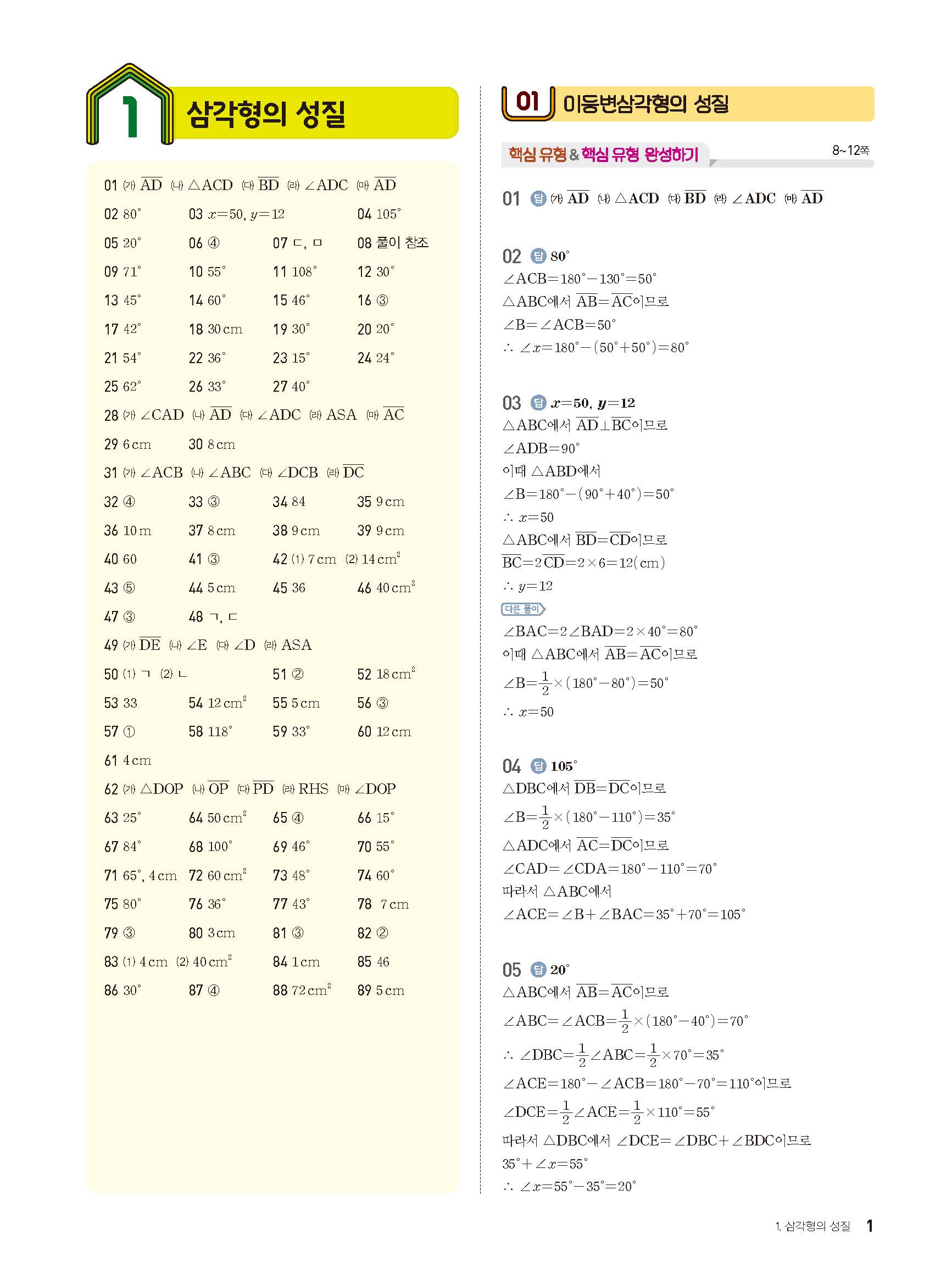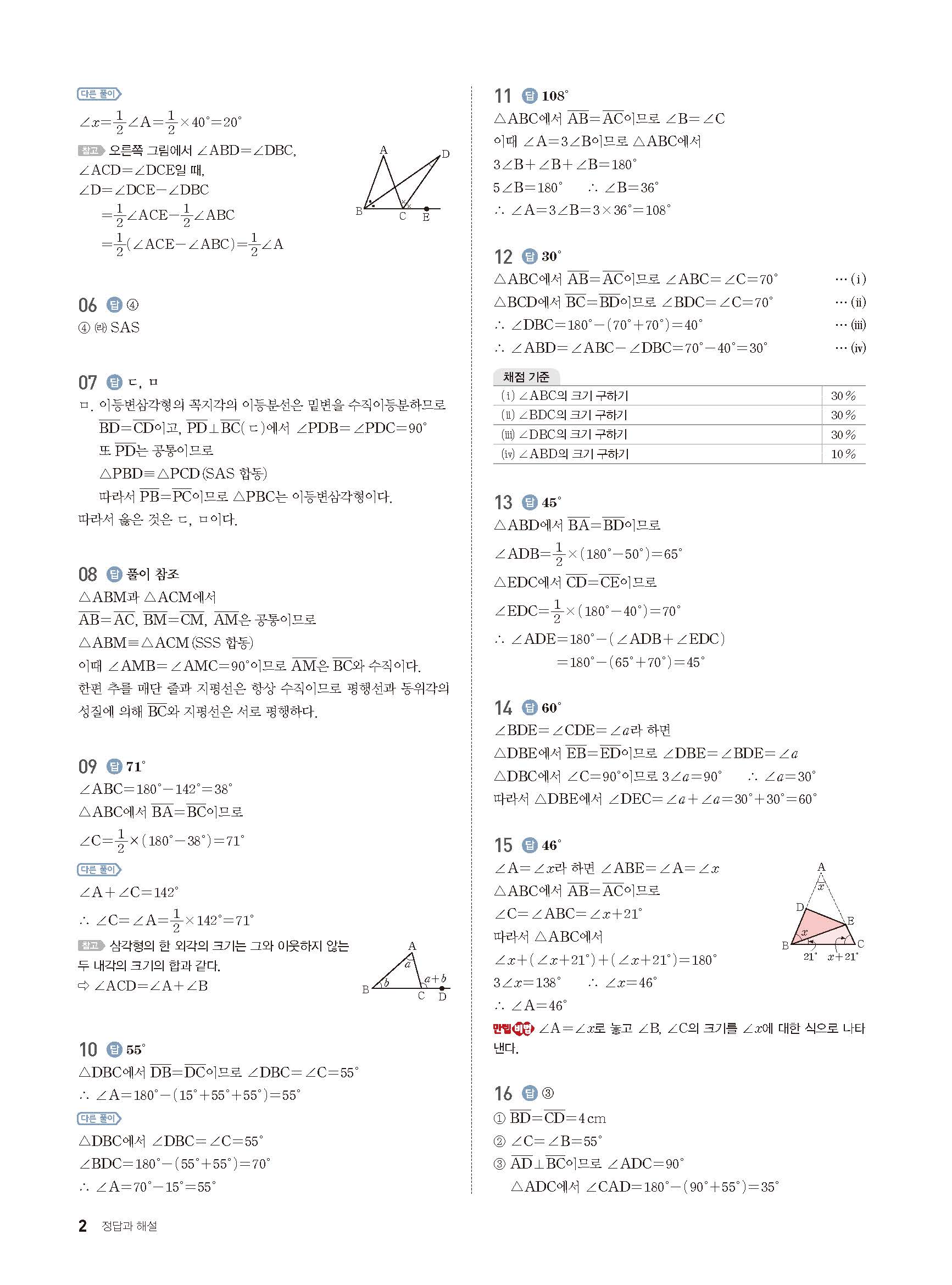 | 천재교육 이준열 중2 수학교과서 답지 | |