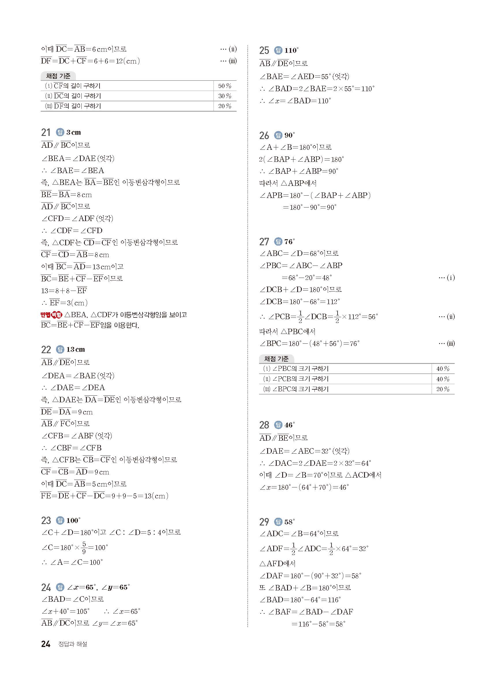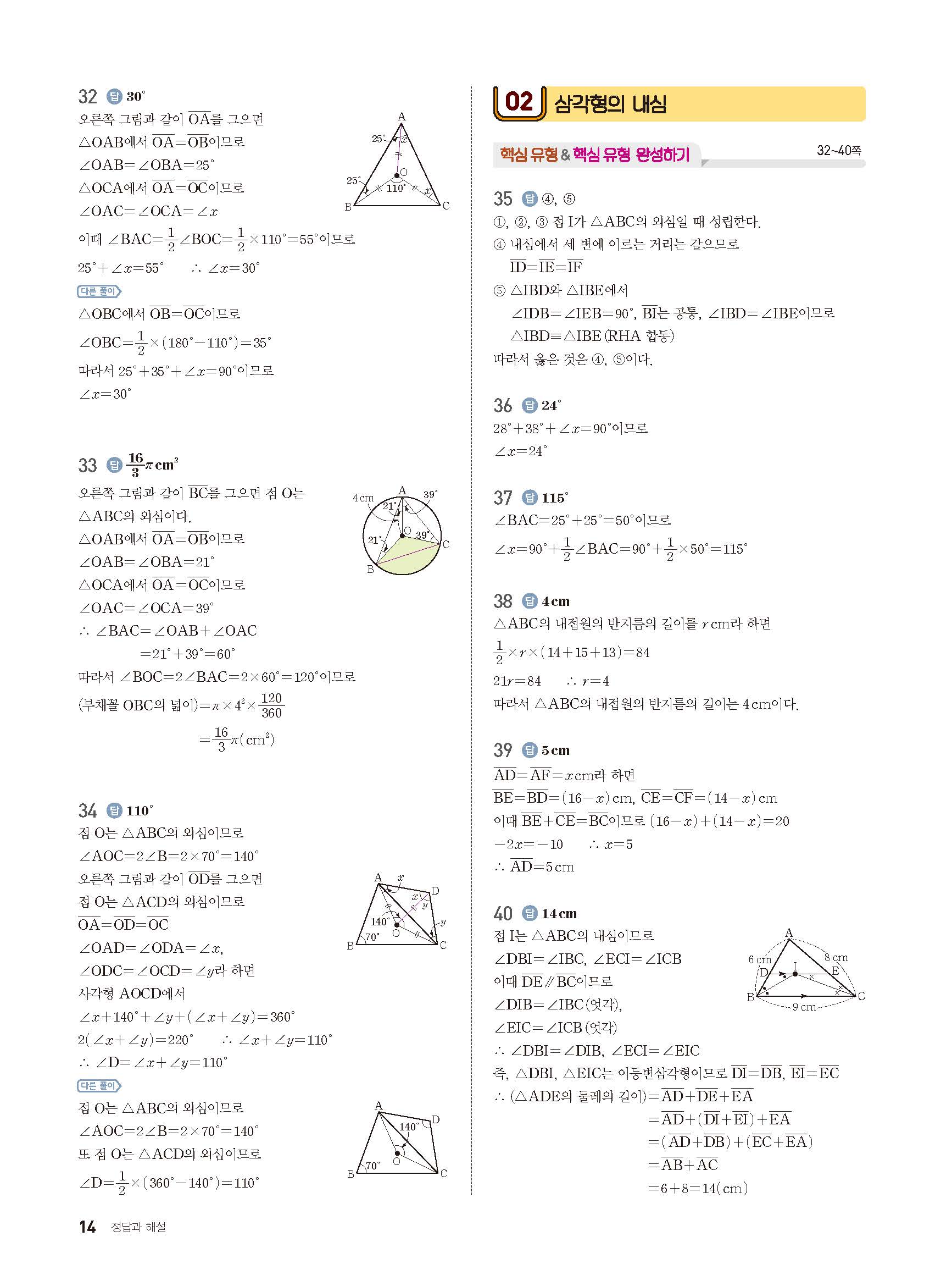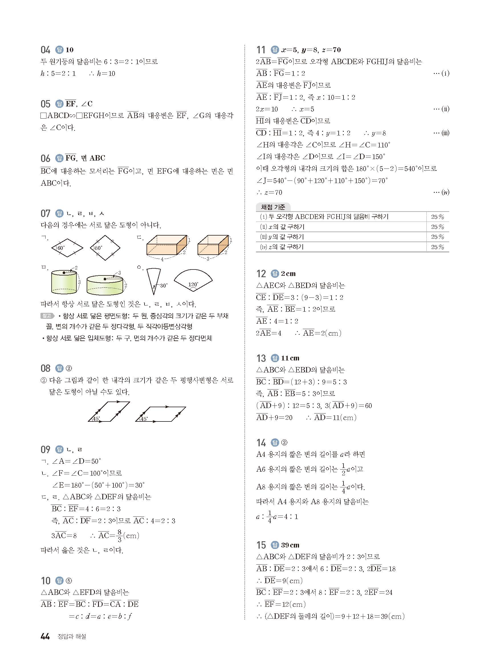 | 천재교육 이준열 중2 수학교과서 답지 | |