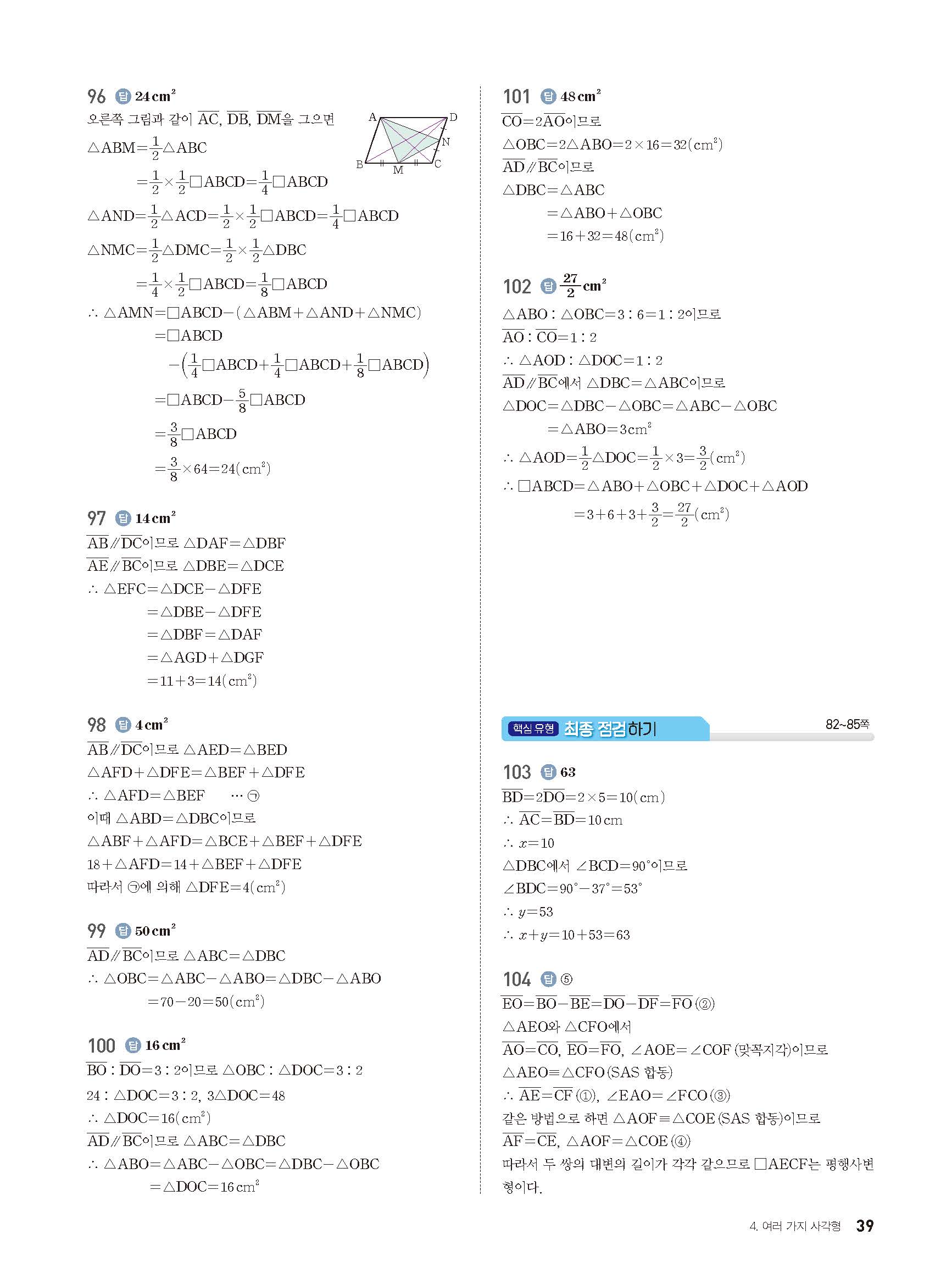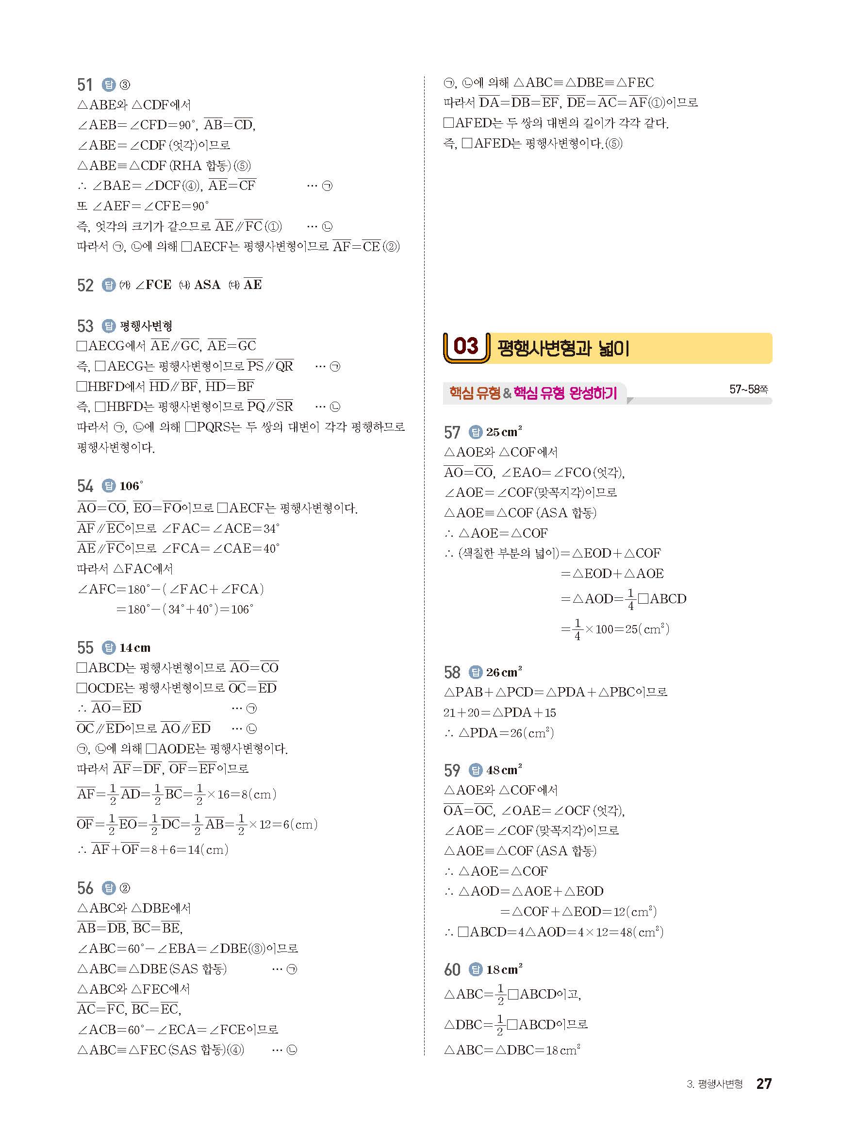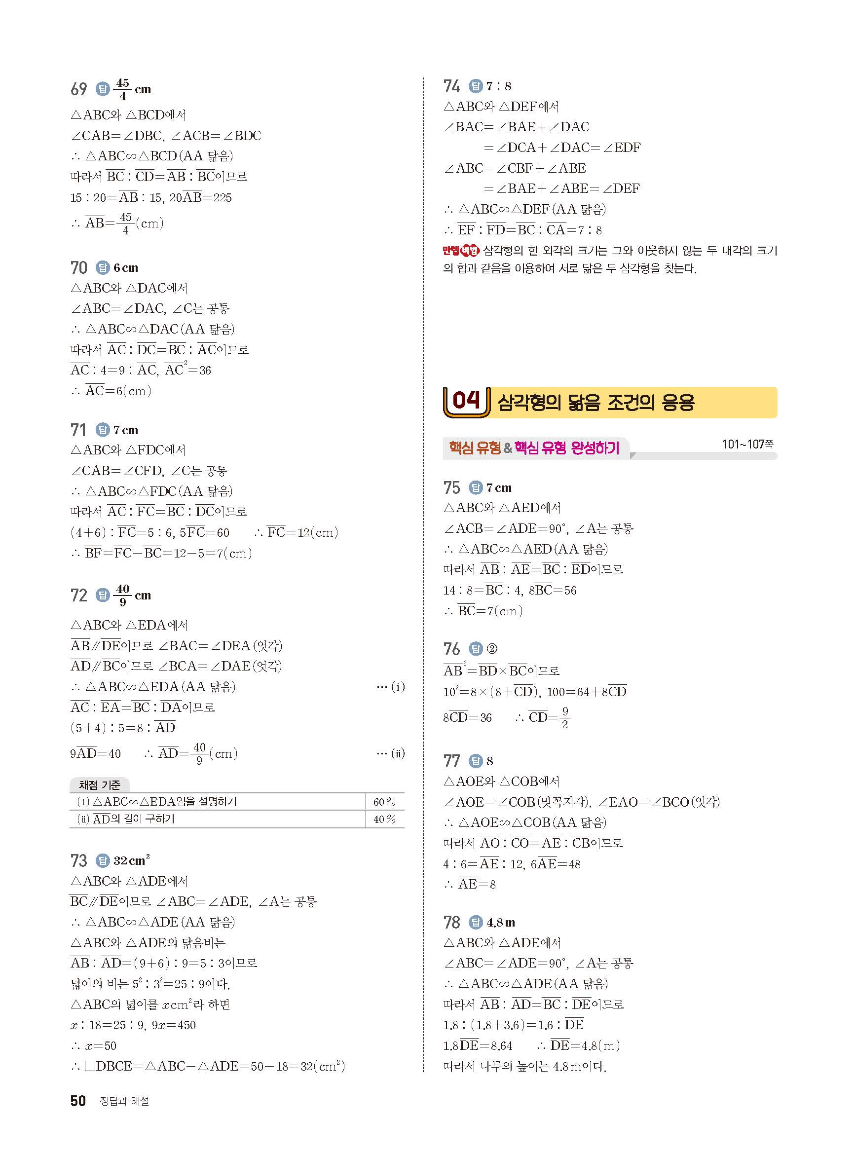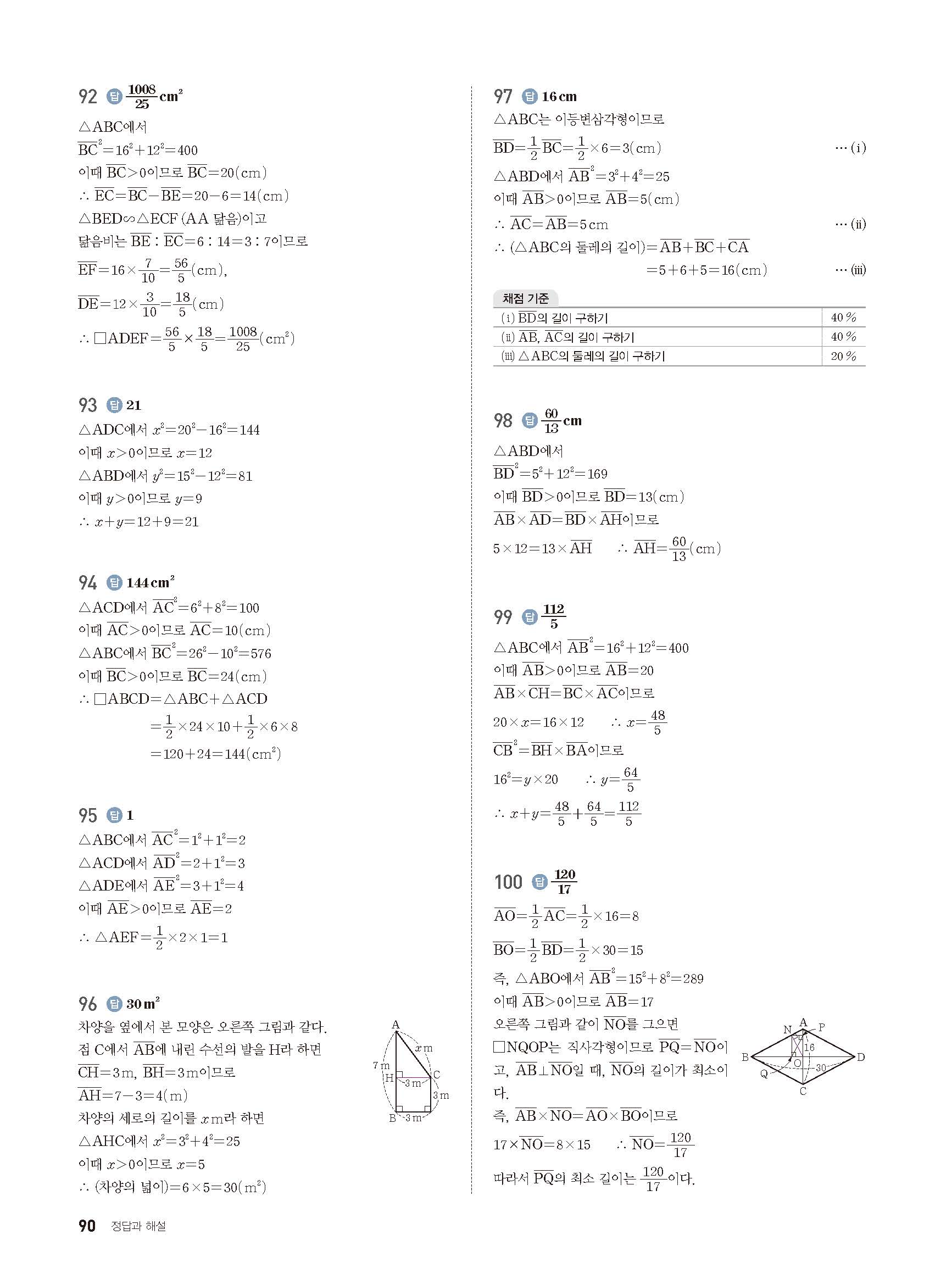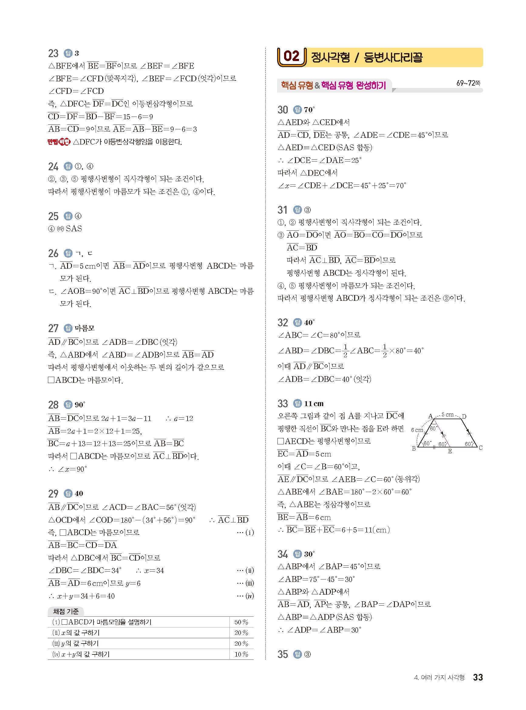 만렙 PM중등수학 중2하 2-2 답지 해설지 사진답지 빠른답지 모바일최적화
