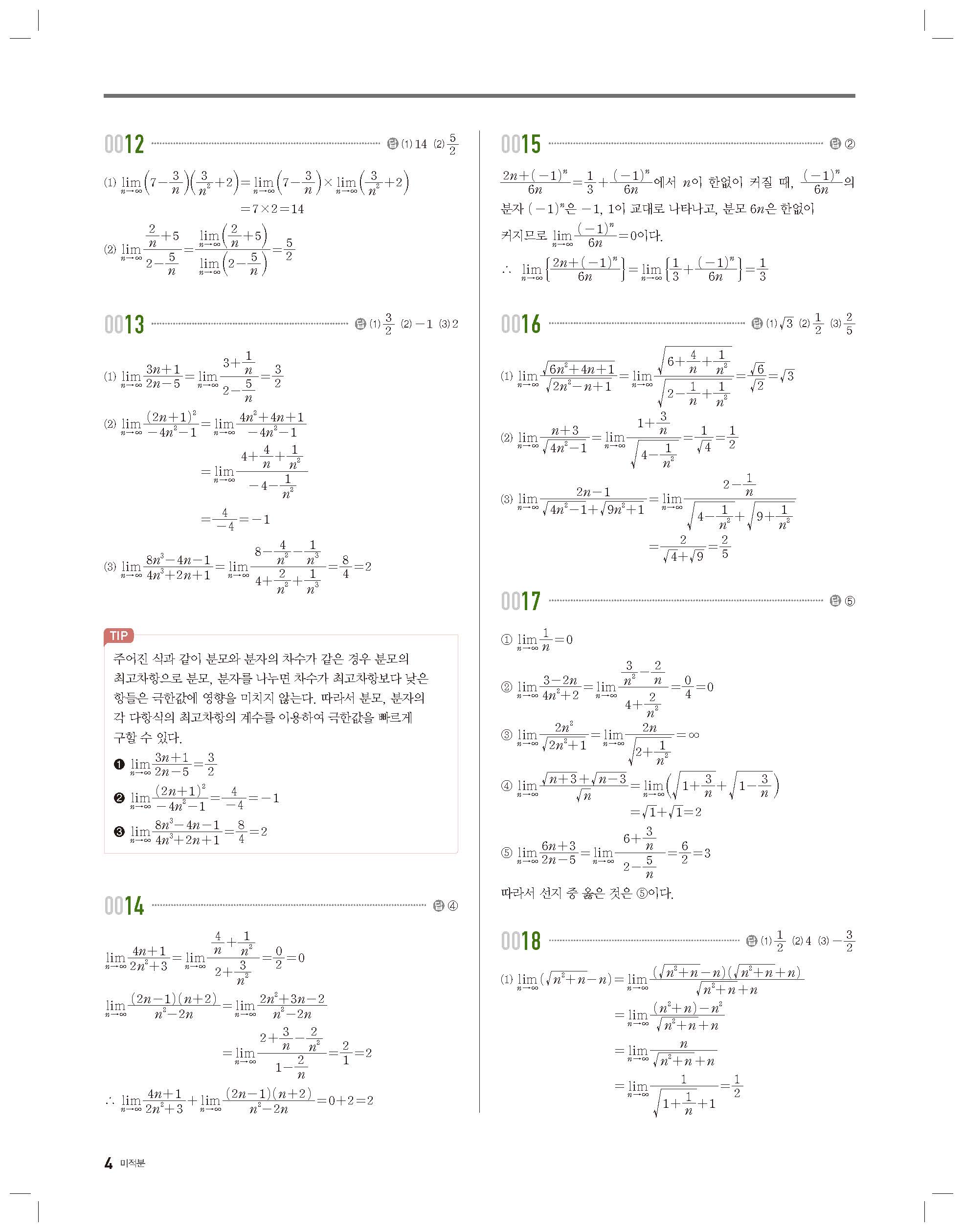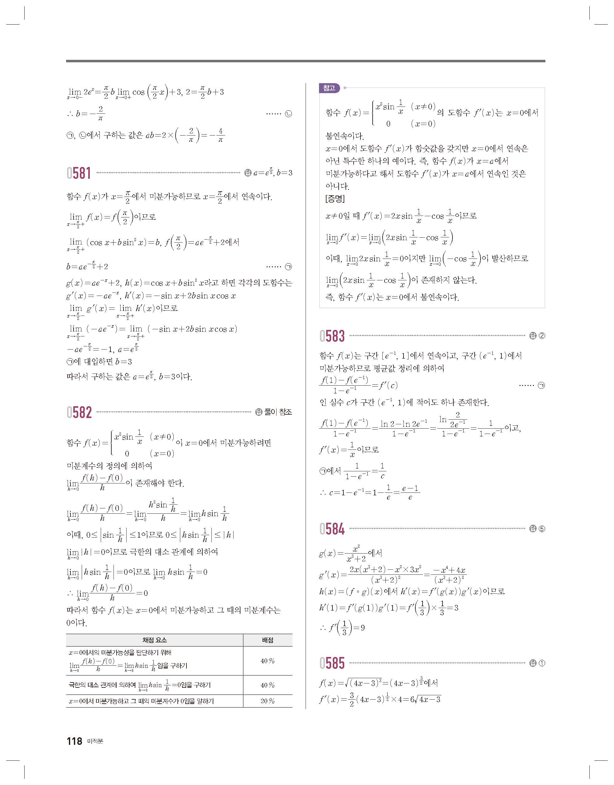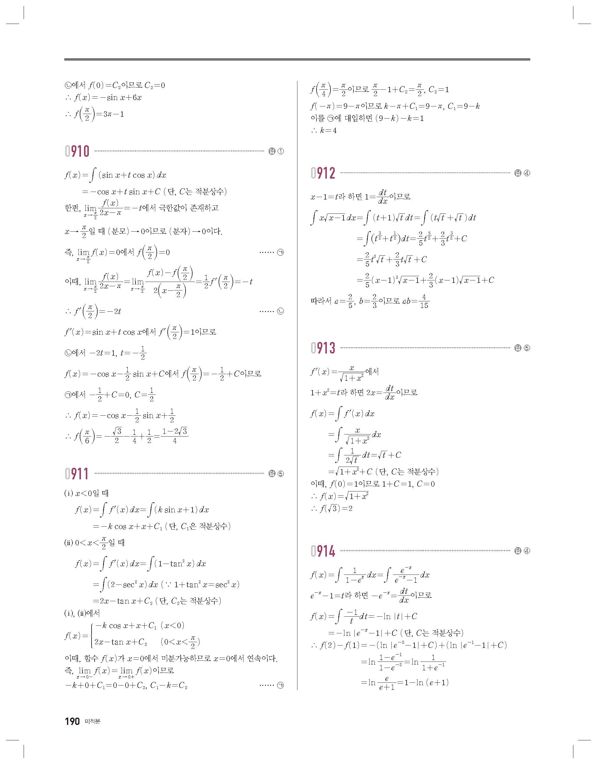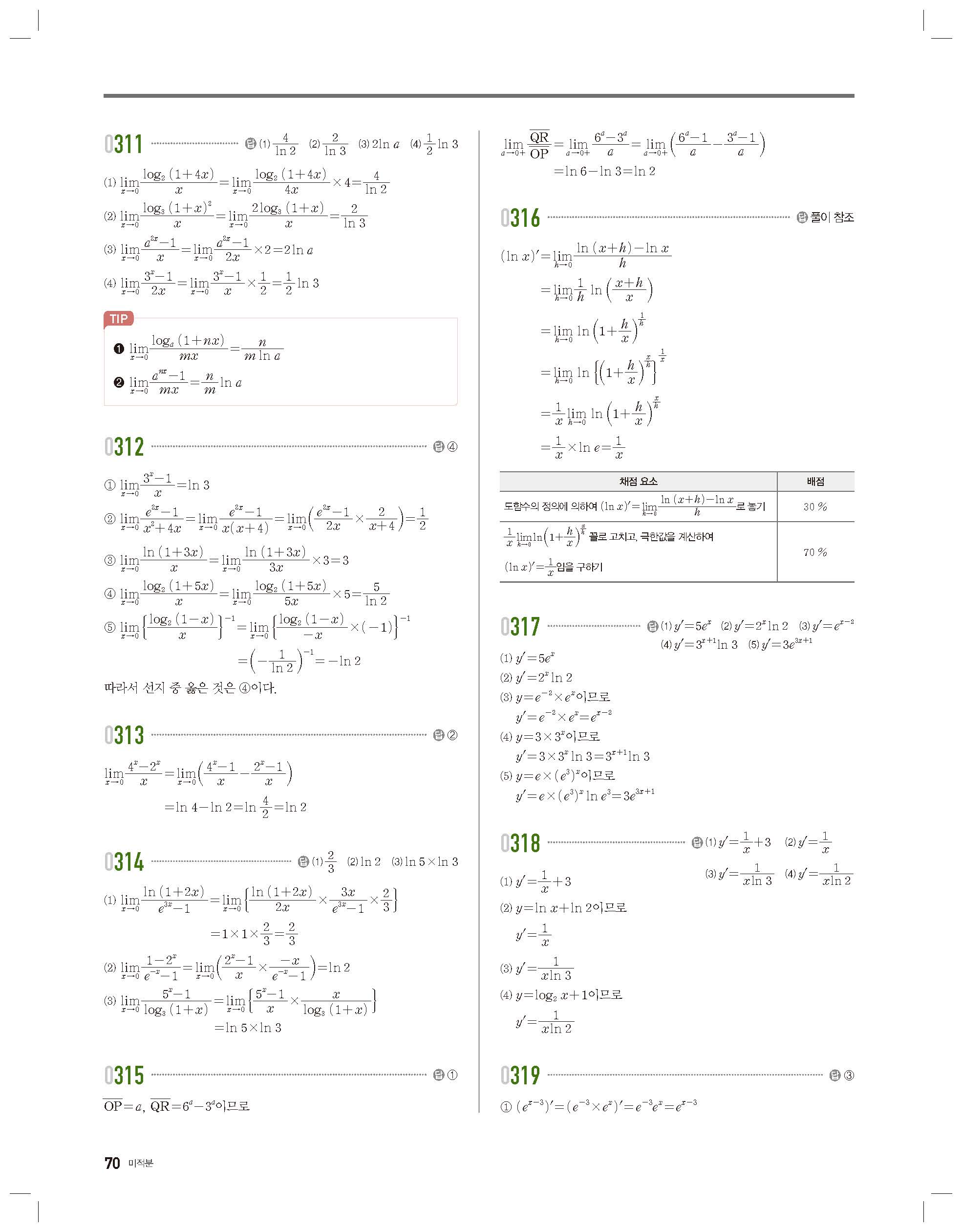 고쟁이 미적분 답지 해설 사진답지 빠른답지 모바일최적화