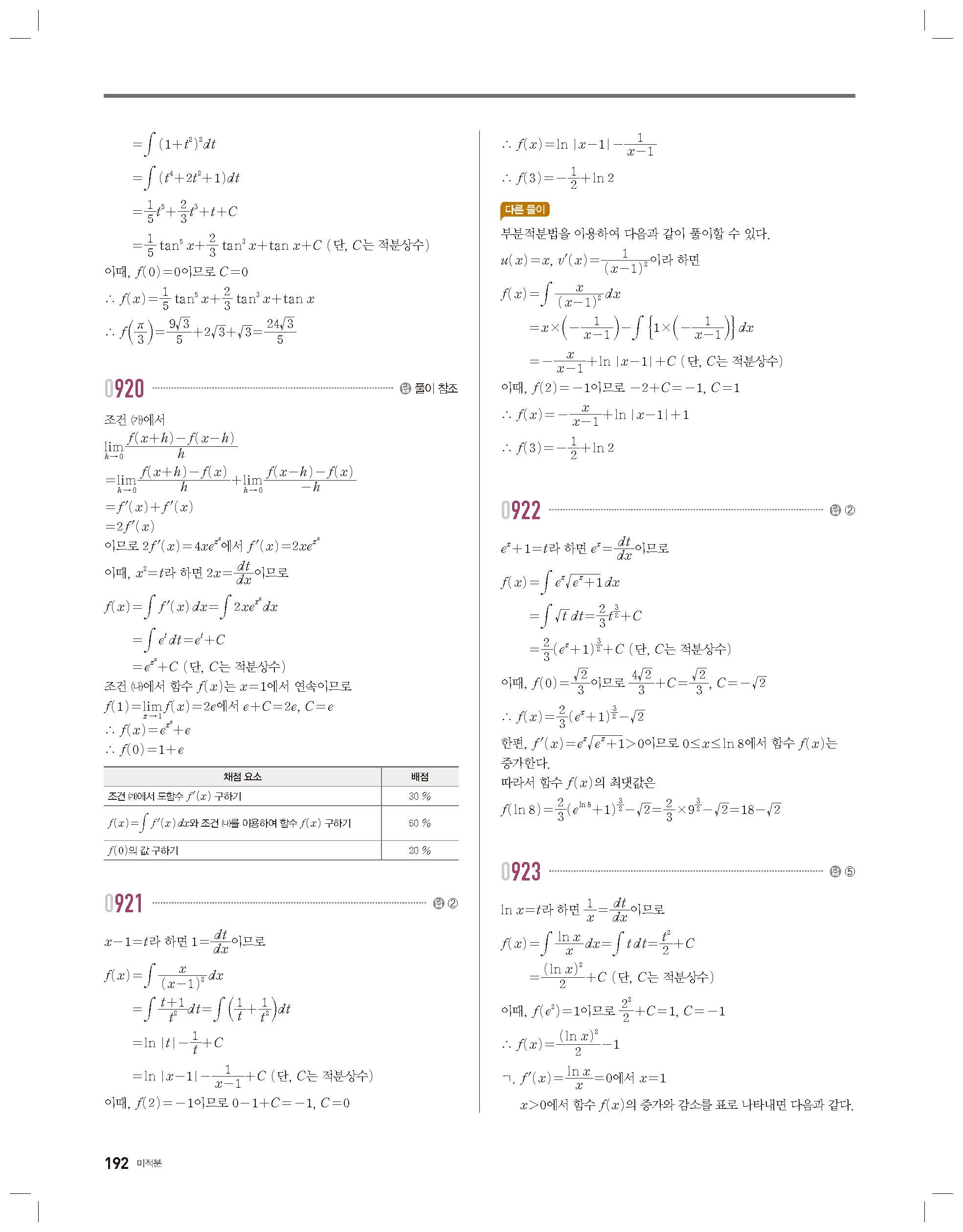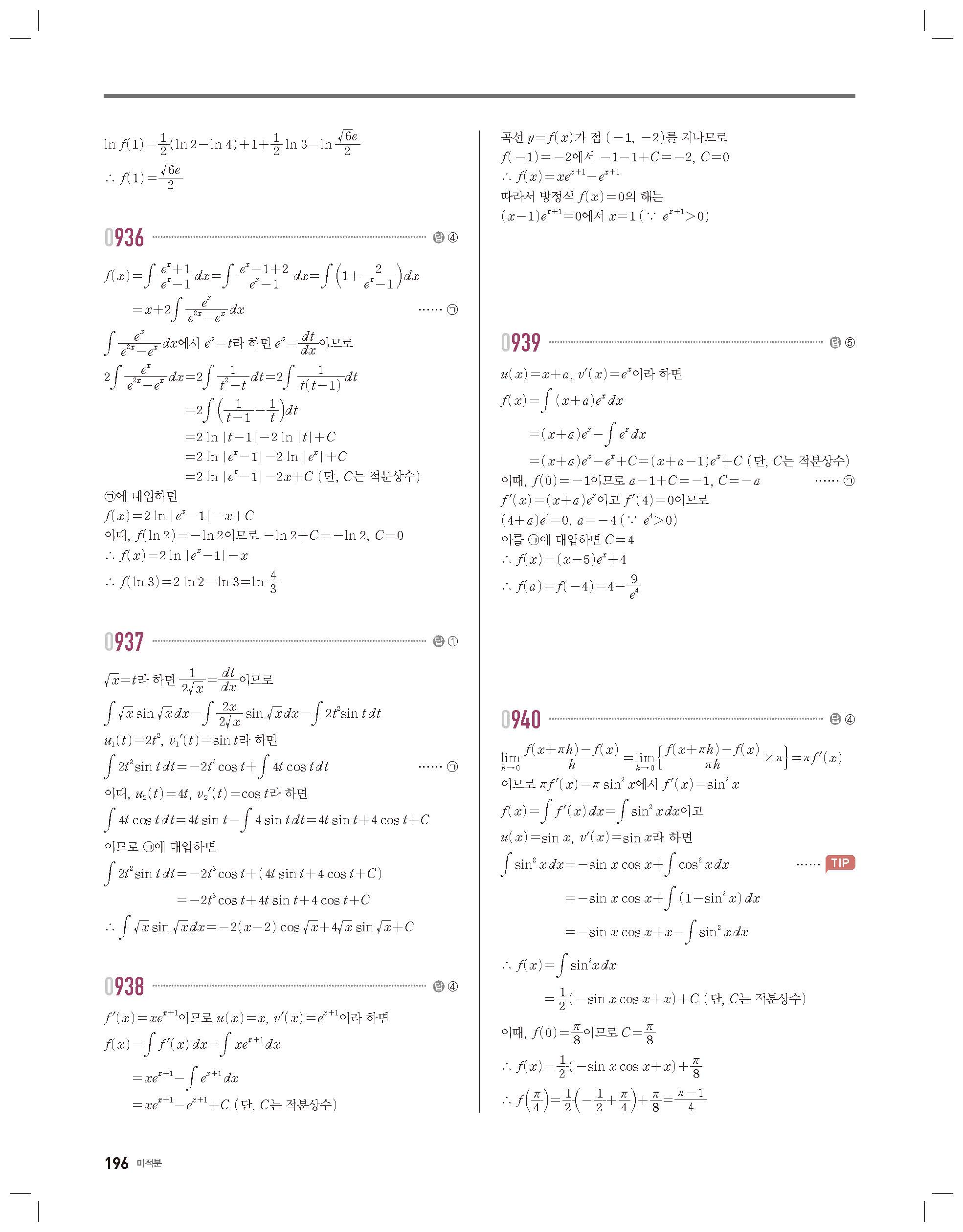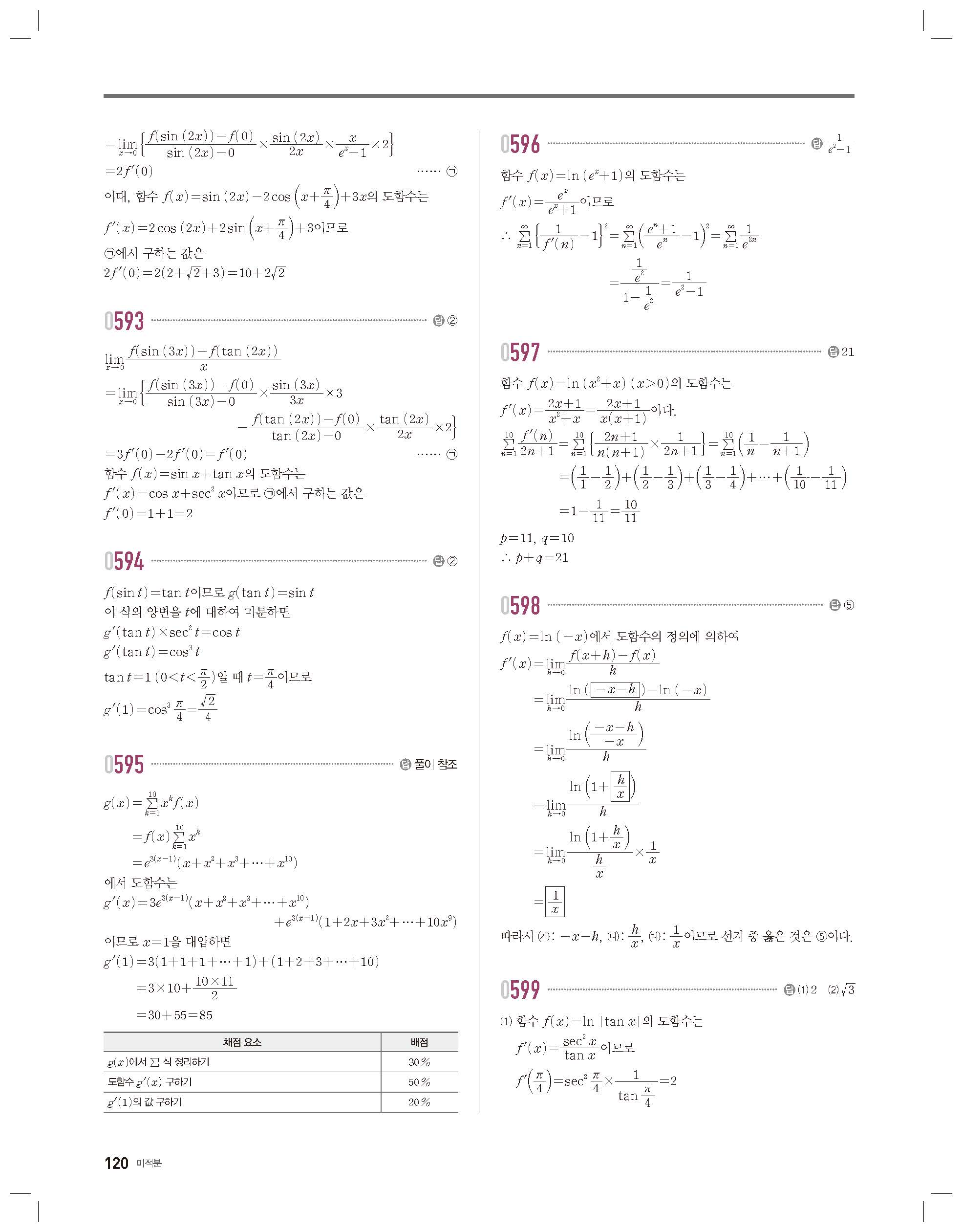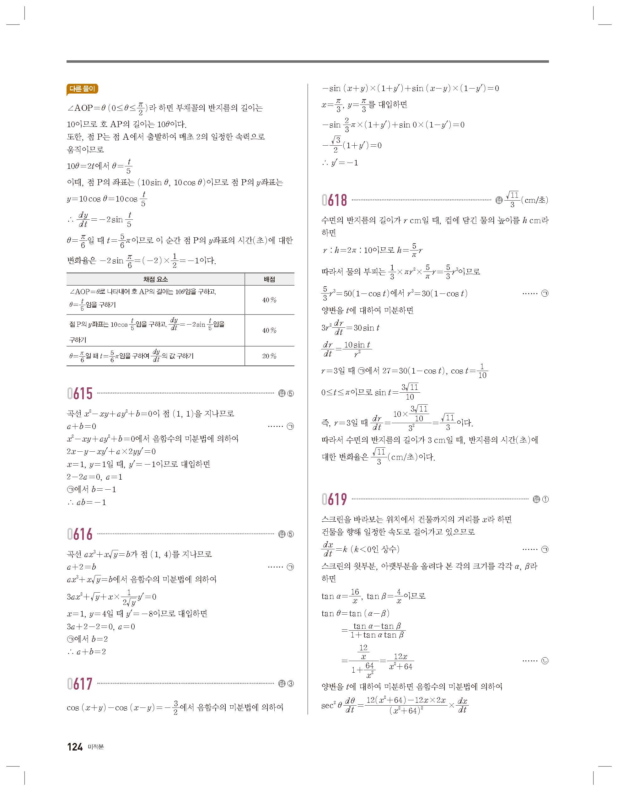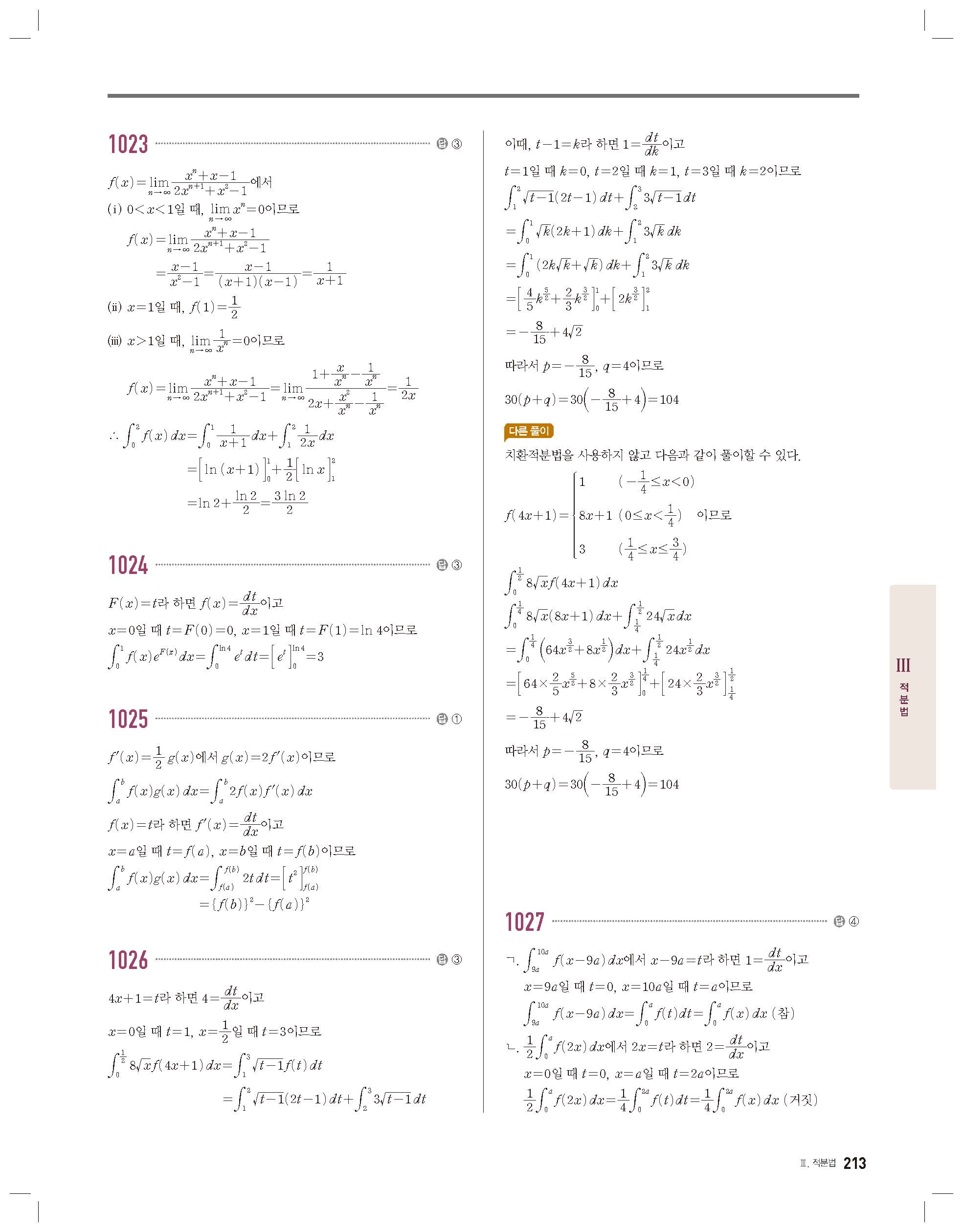 고쟁이 미적분 답지 해설 사진답지 빠른답지 모바일최적화