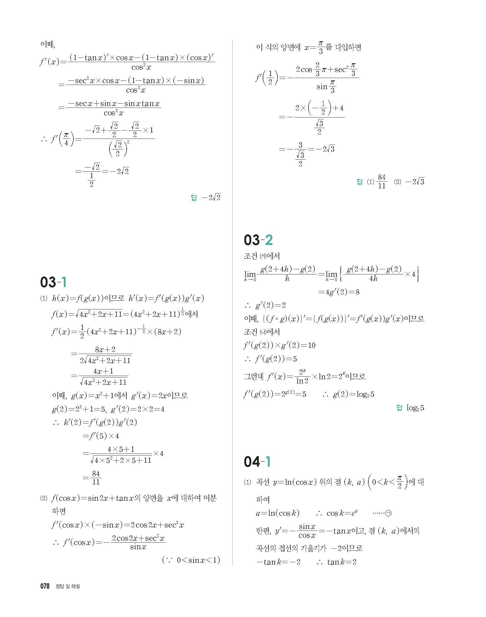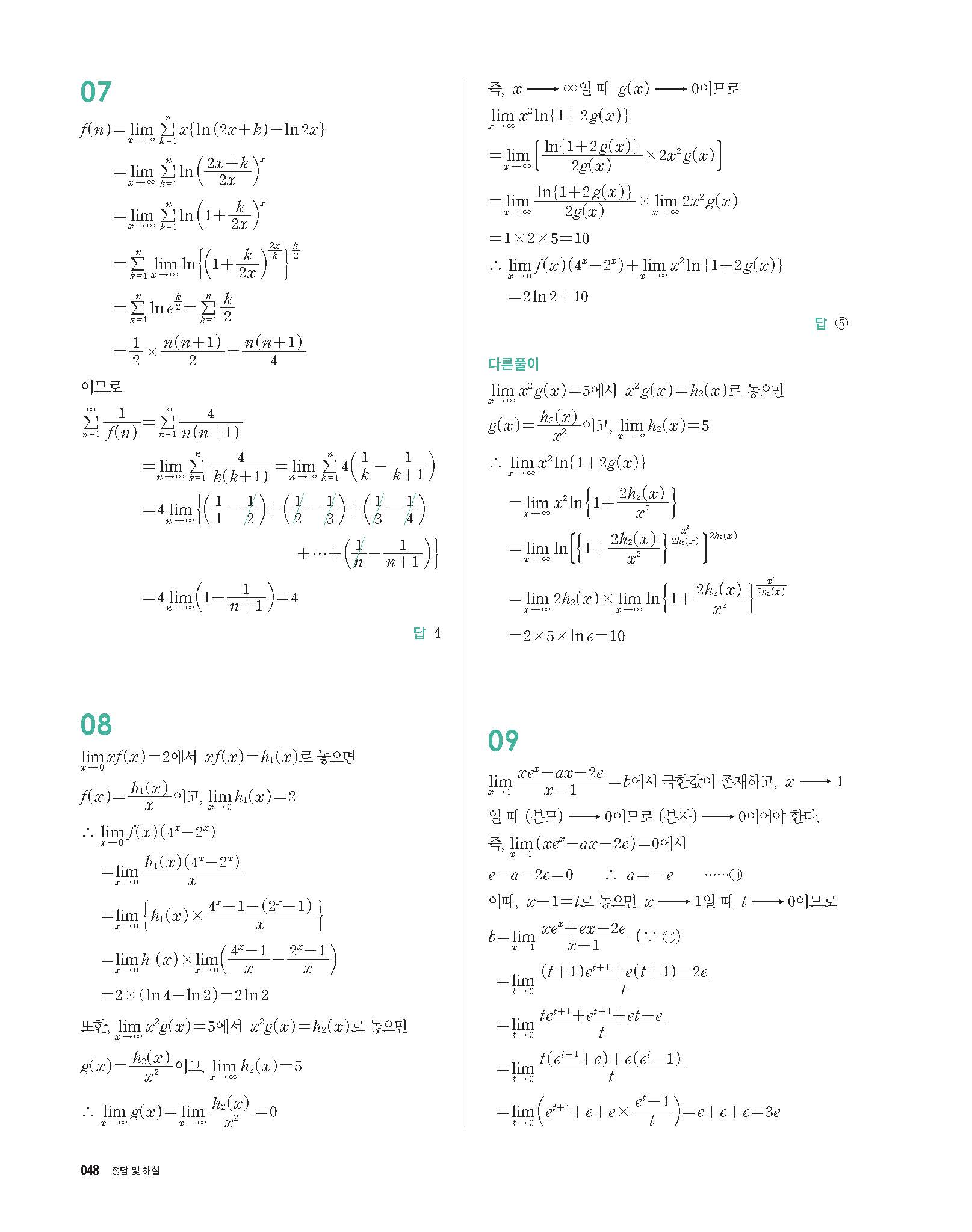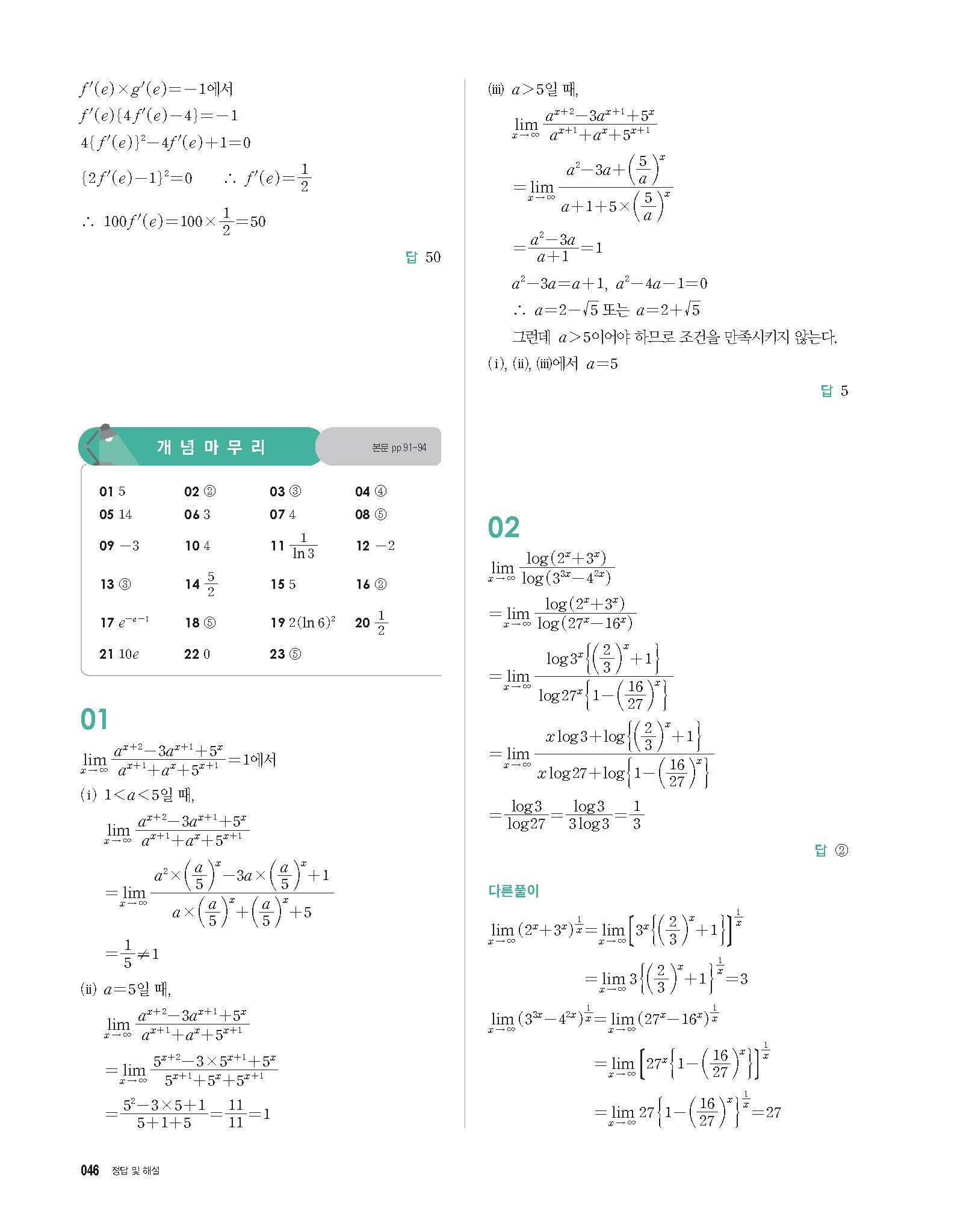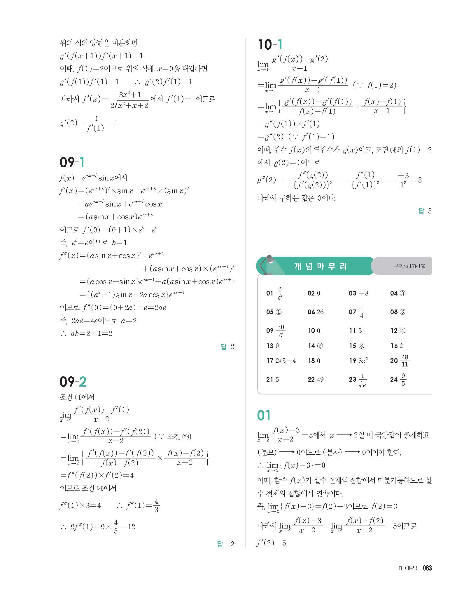 블랙라벨 더개념 미적분 답지 사진답지 빠른답지 모바일최적화