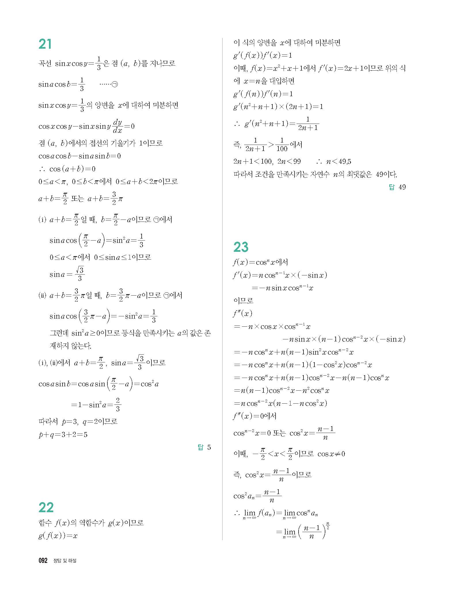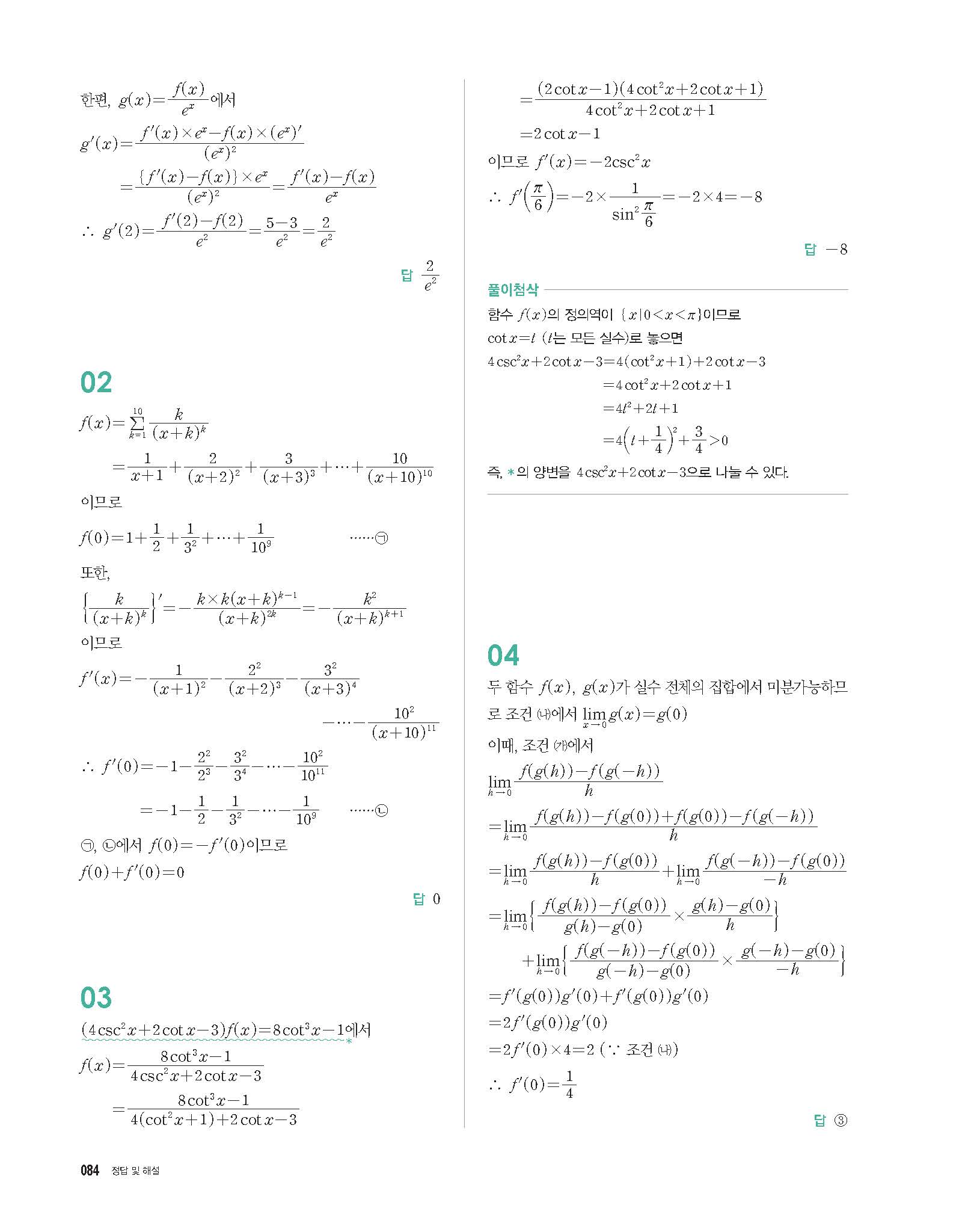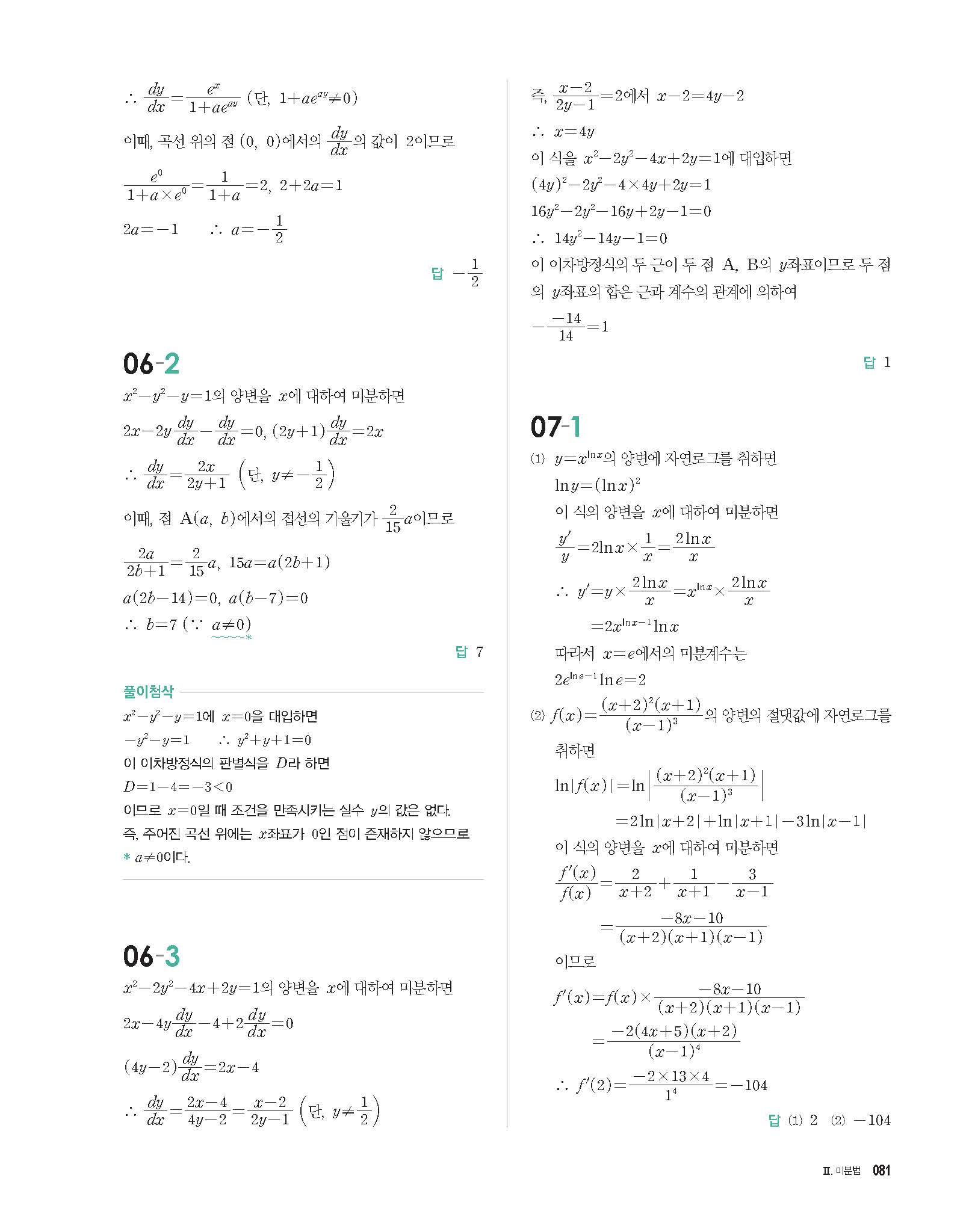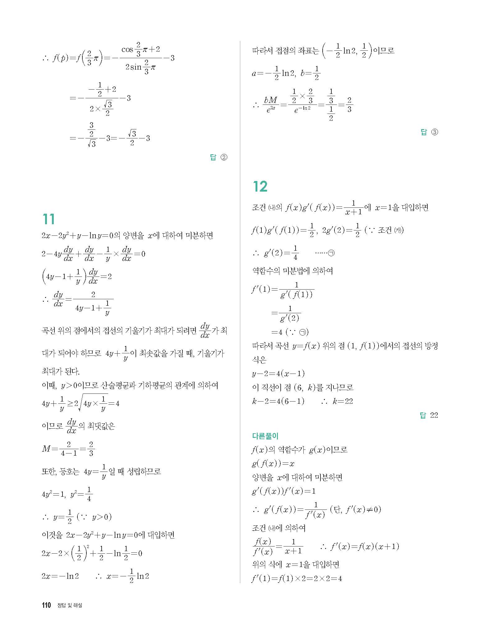 블랙라벨 더개념 미적분 답지 사진답지 빠른답지 모바일최적화