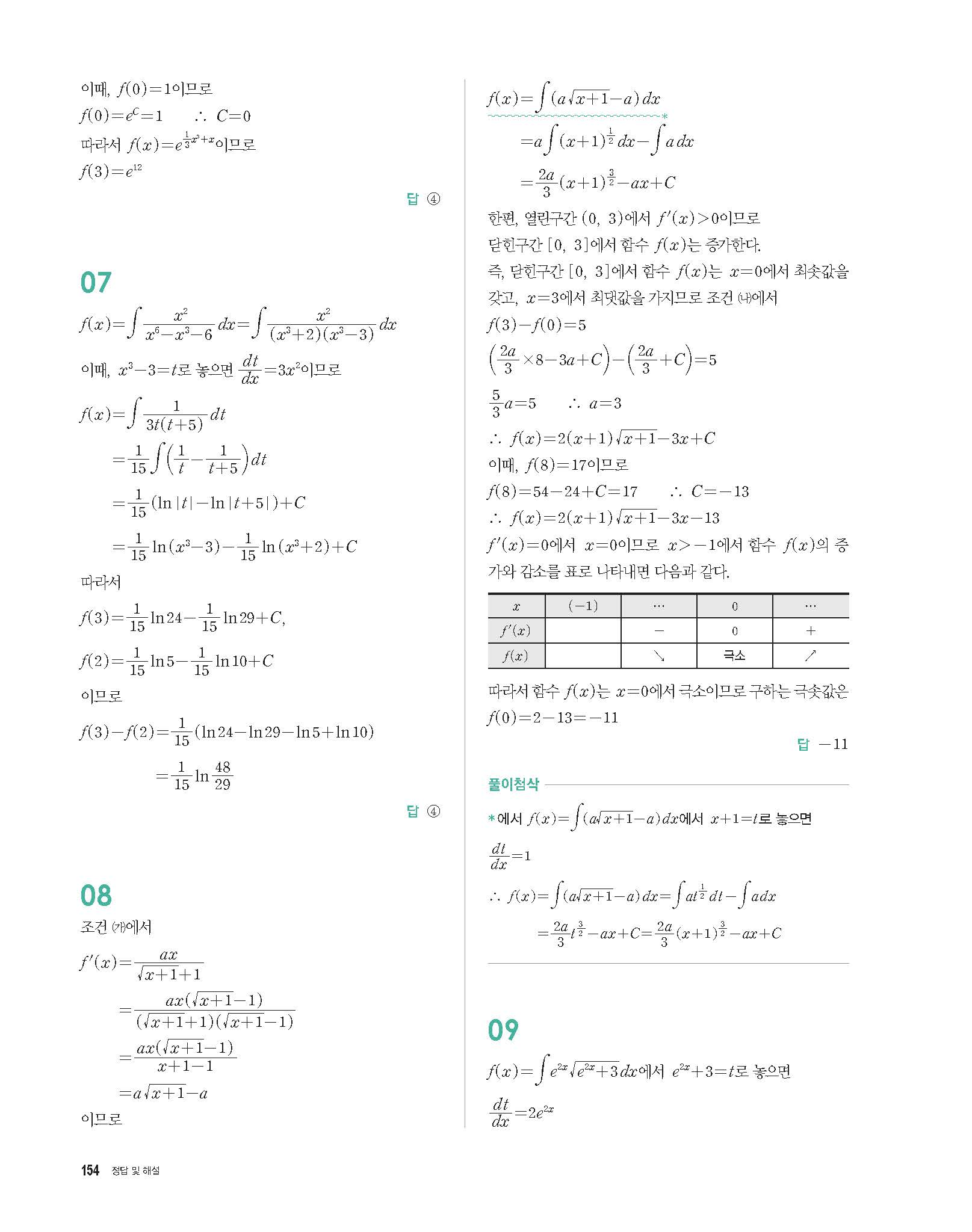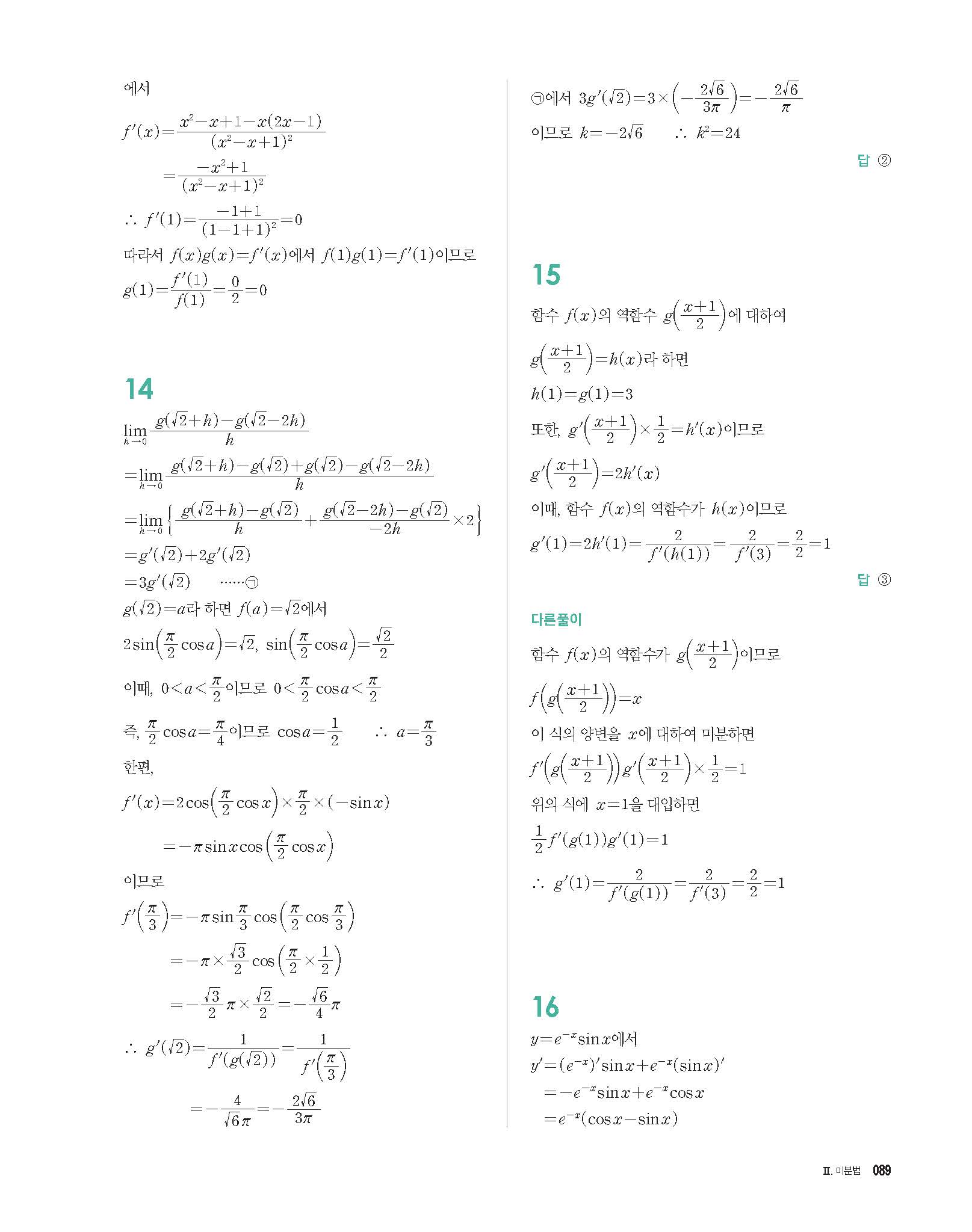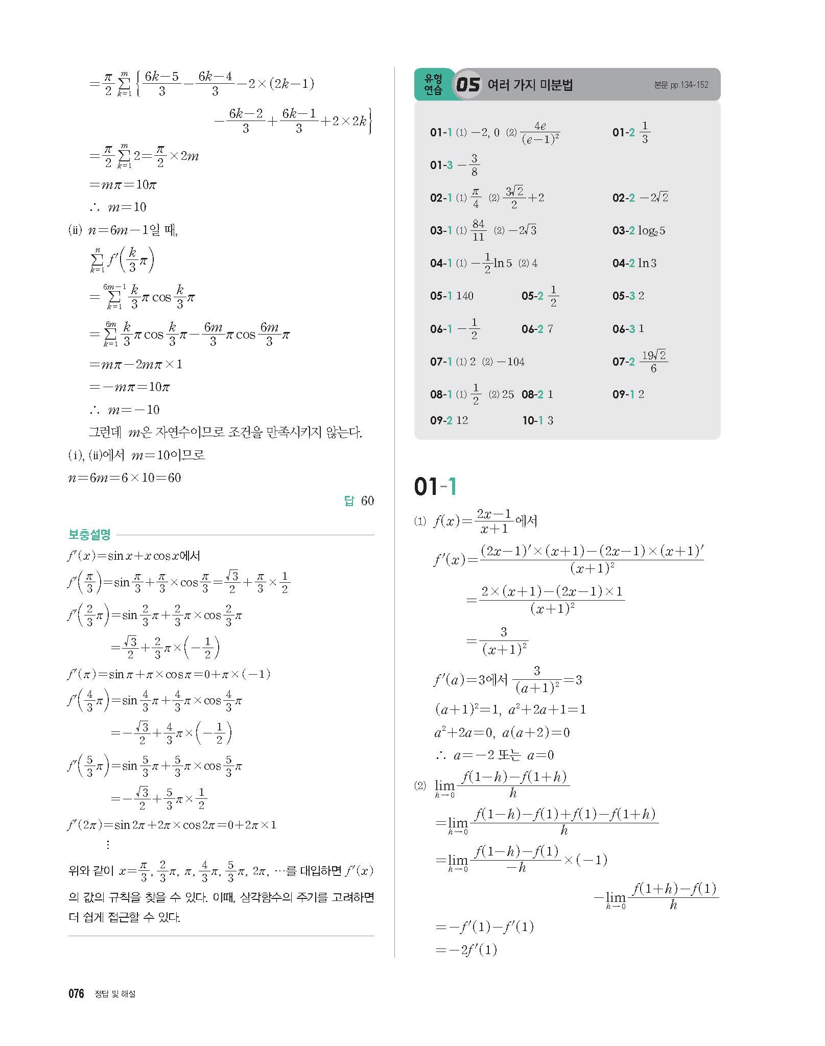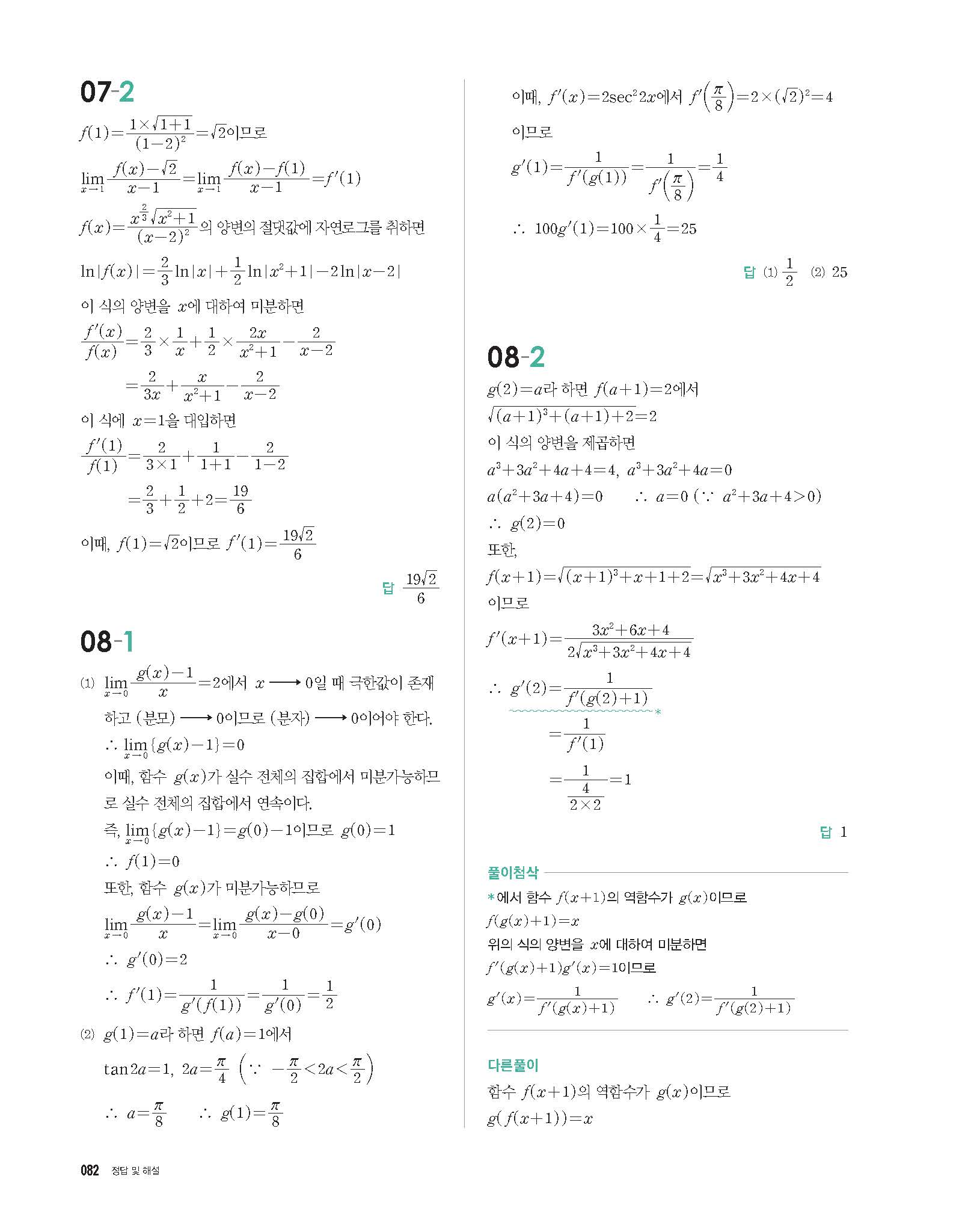 블랙라벨 더개념 미적분 답지 사진답지 빠른답지 모바일최적화