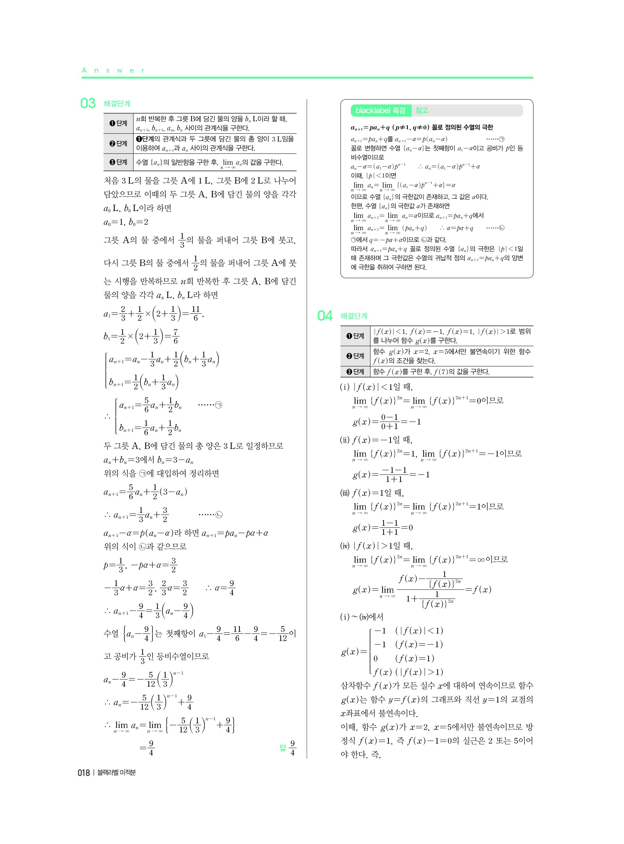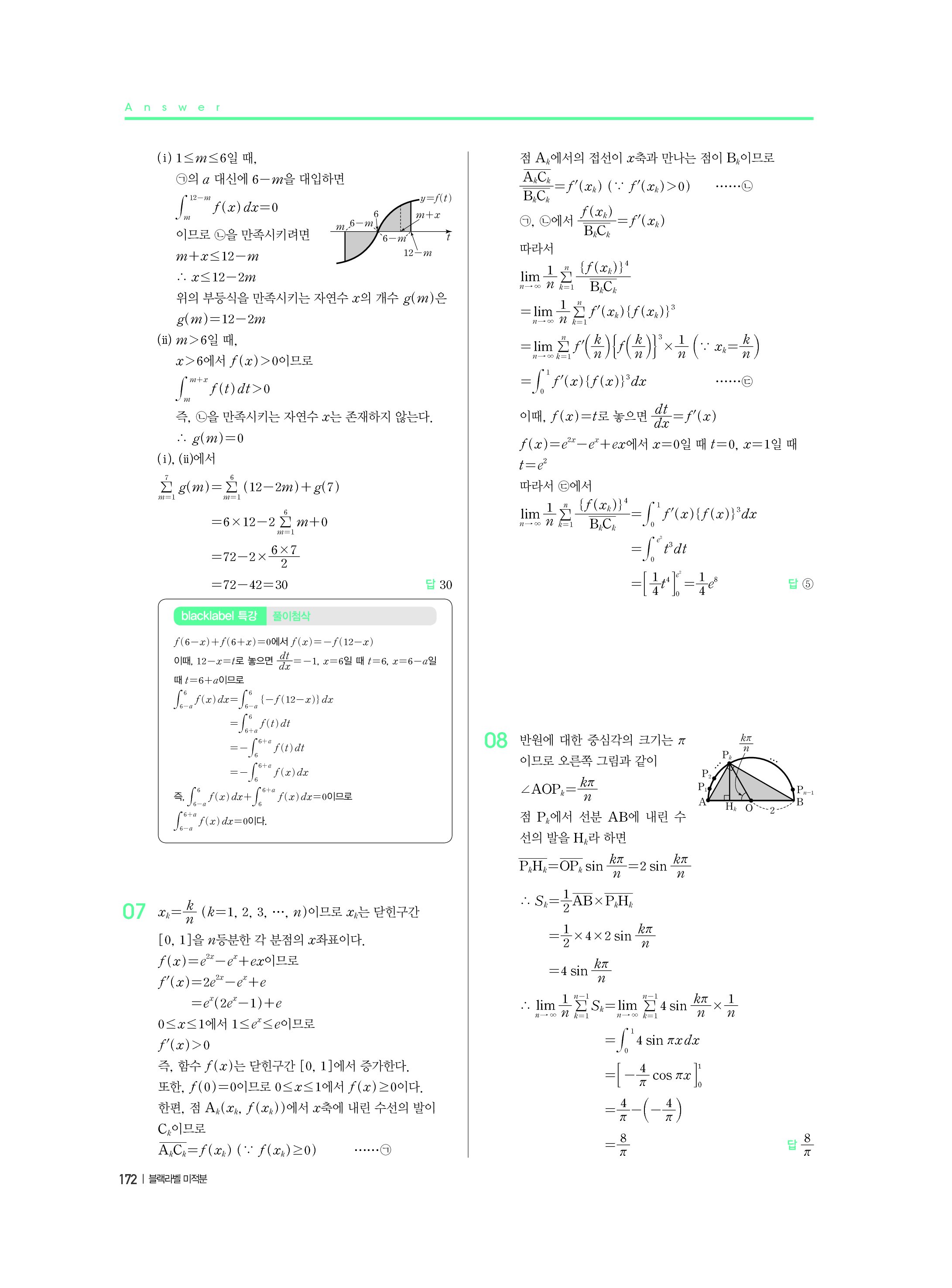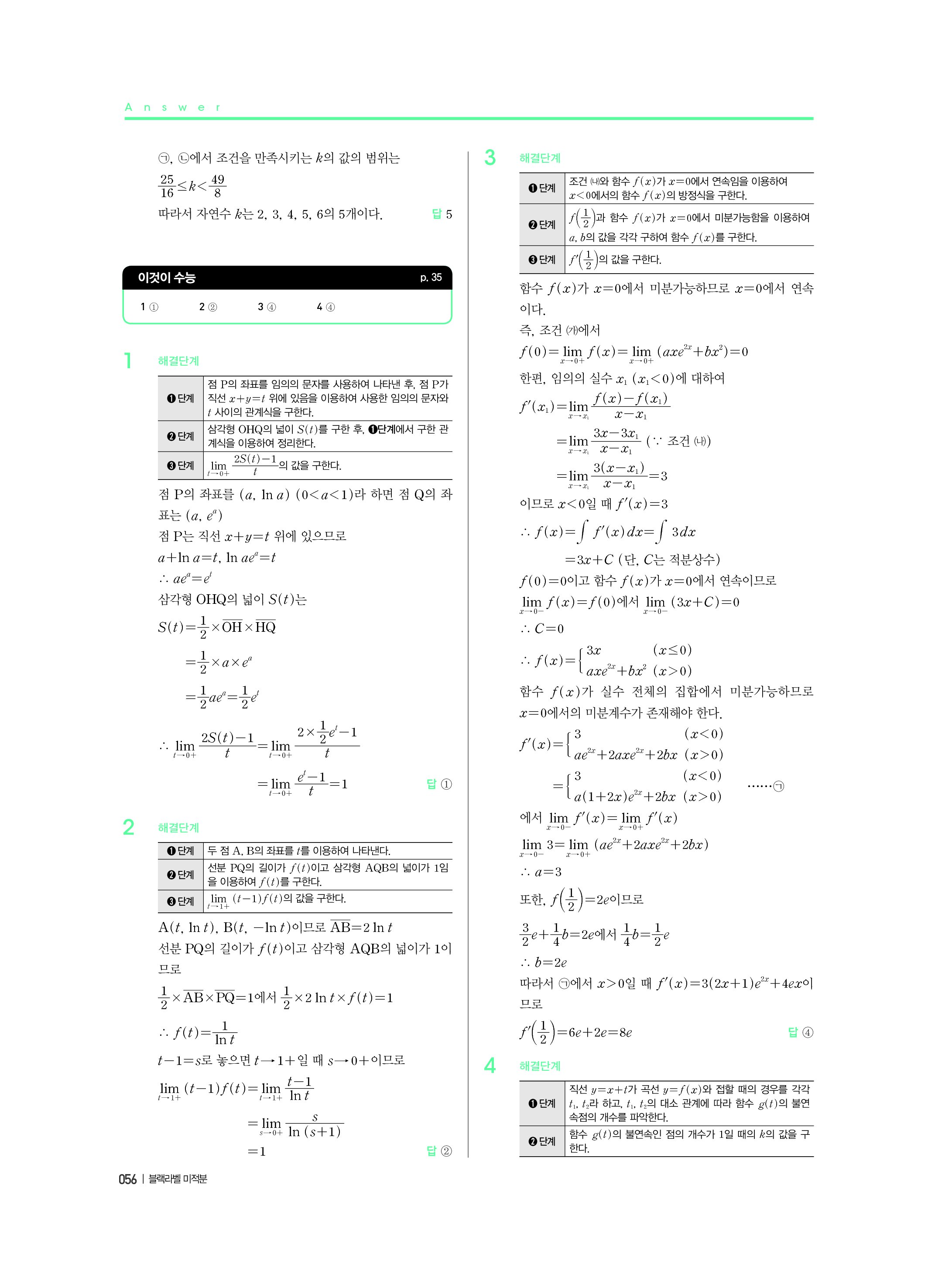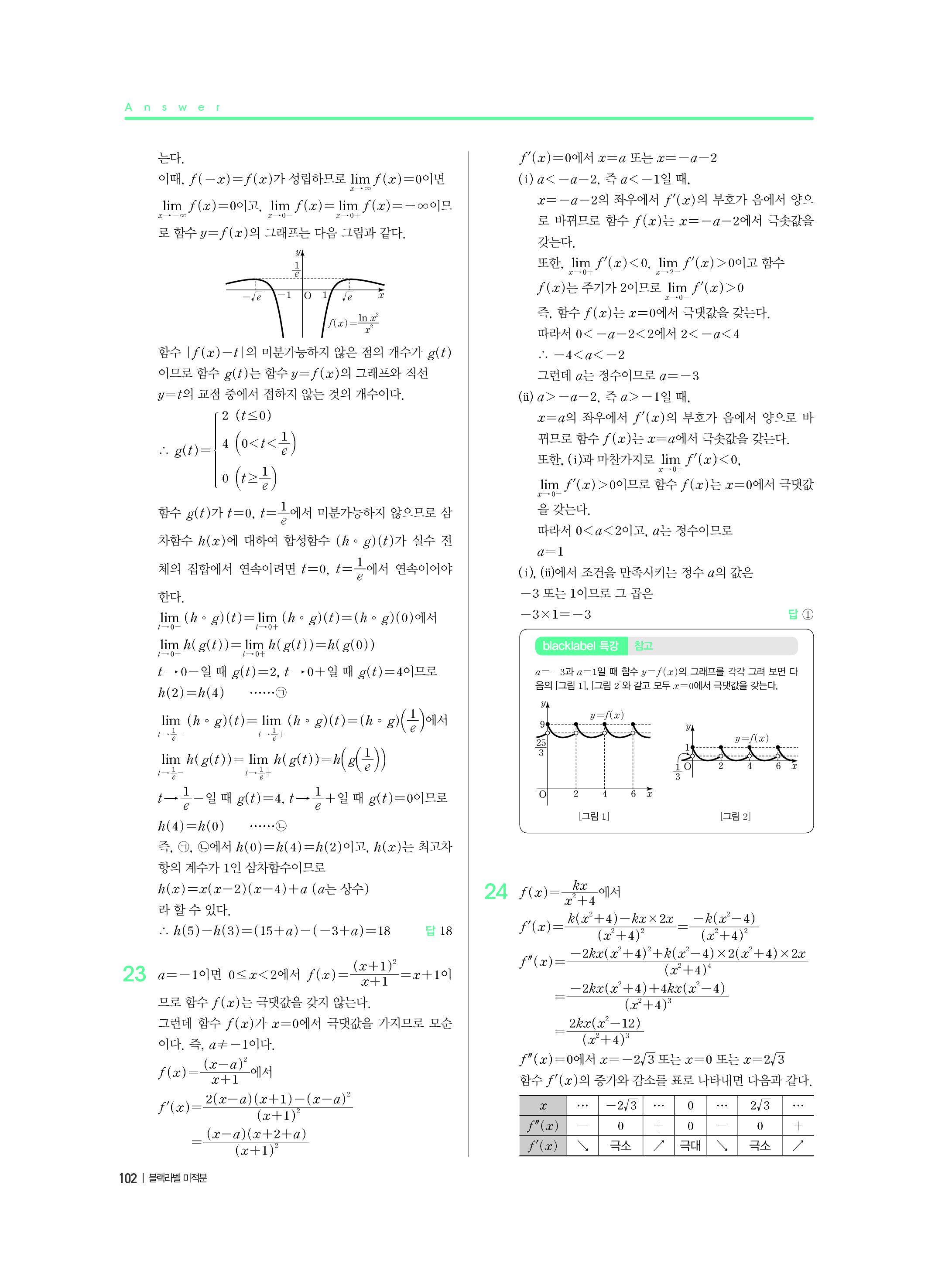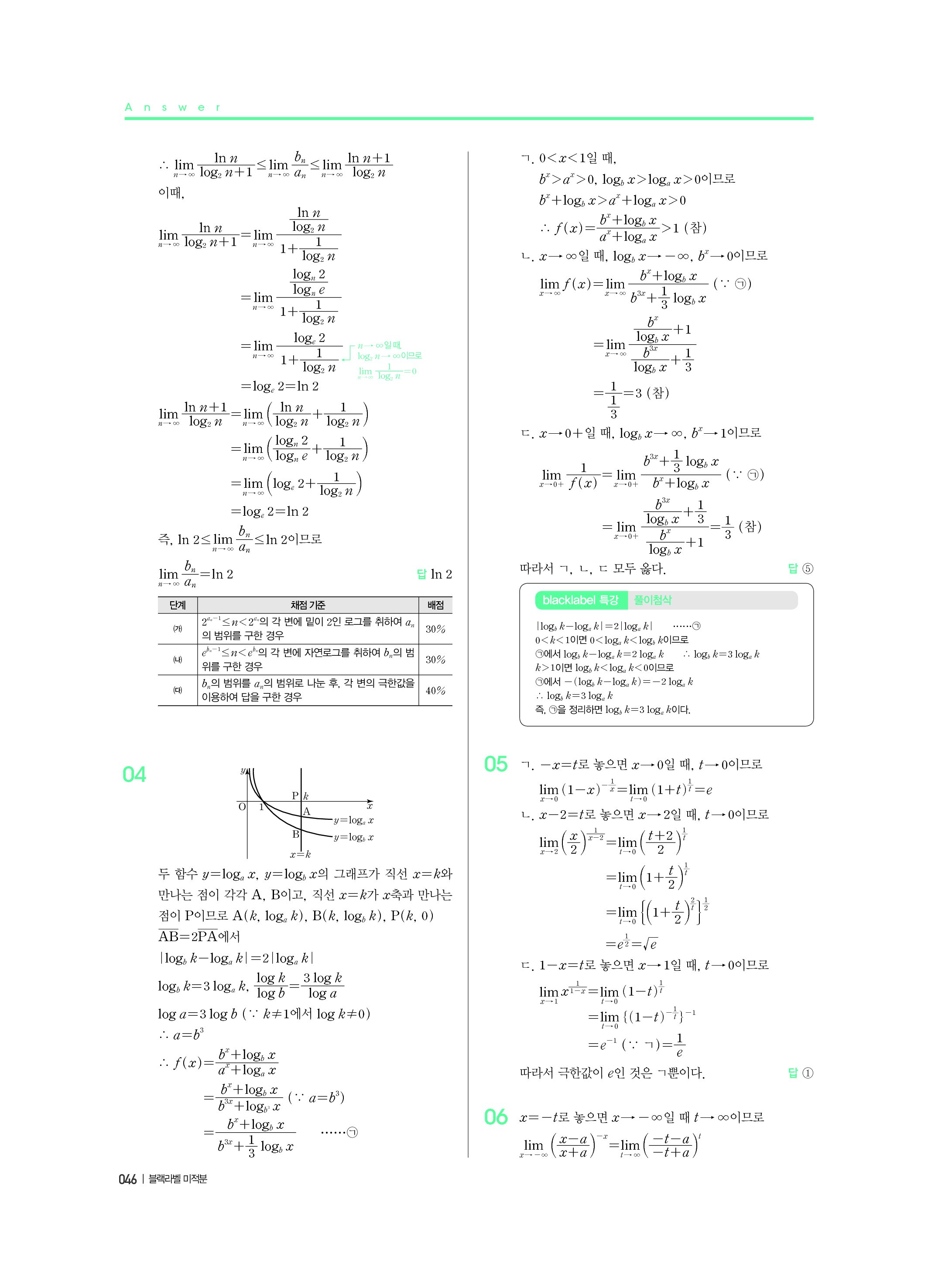 블랙라벨 미적분 답지 해설 사진답지 빠른답지 모바일최적화
