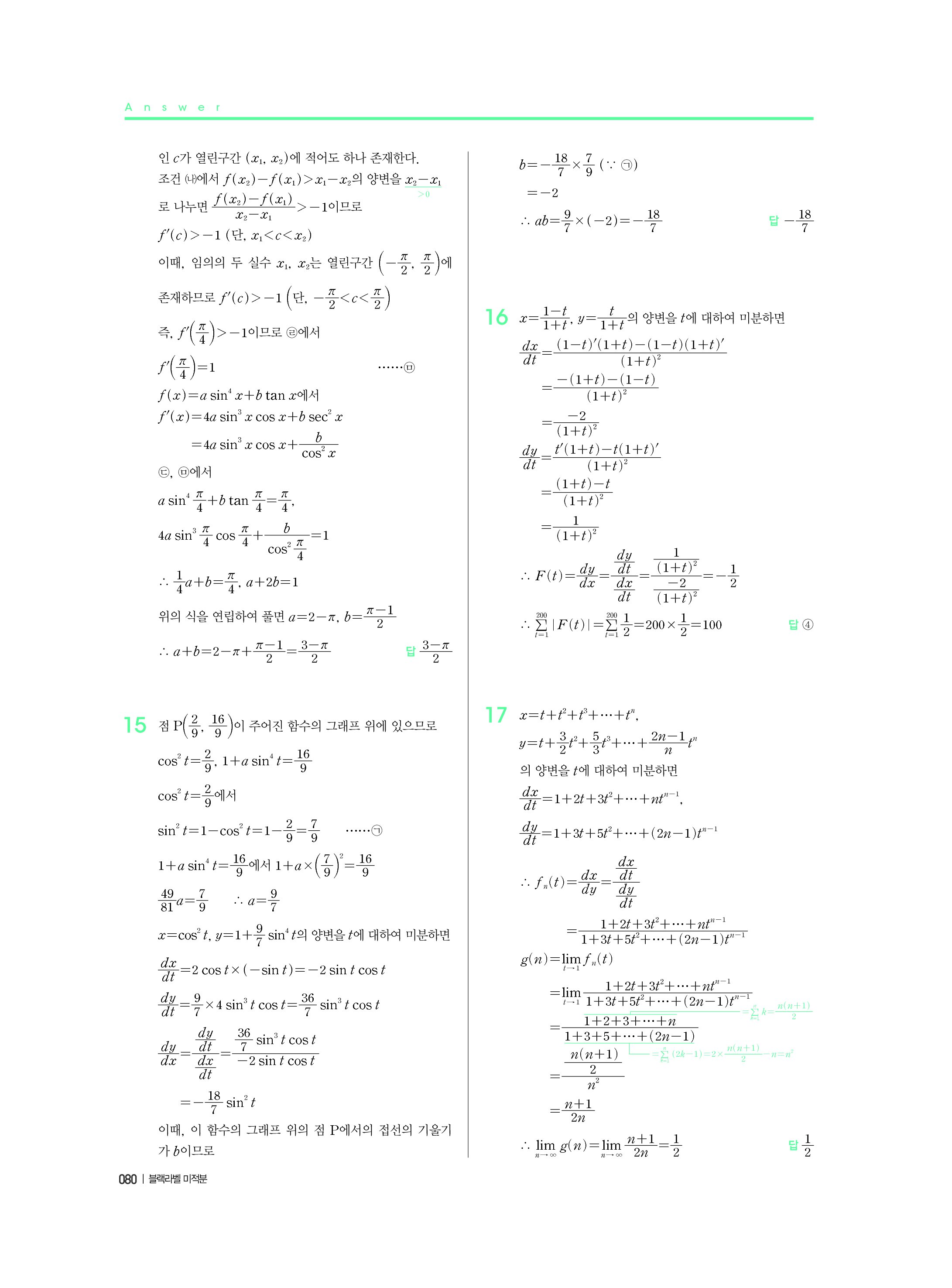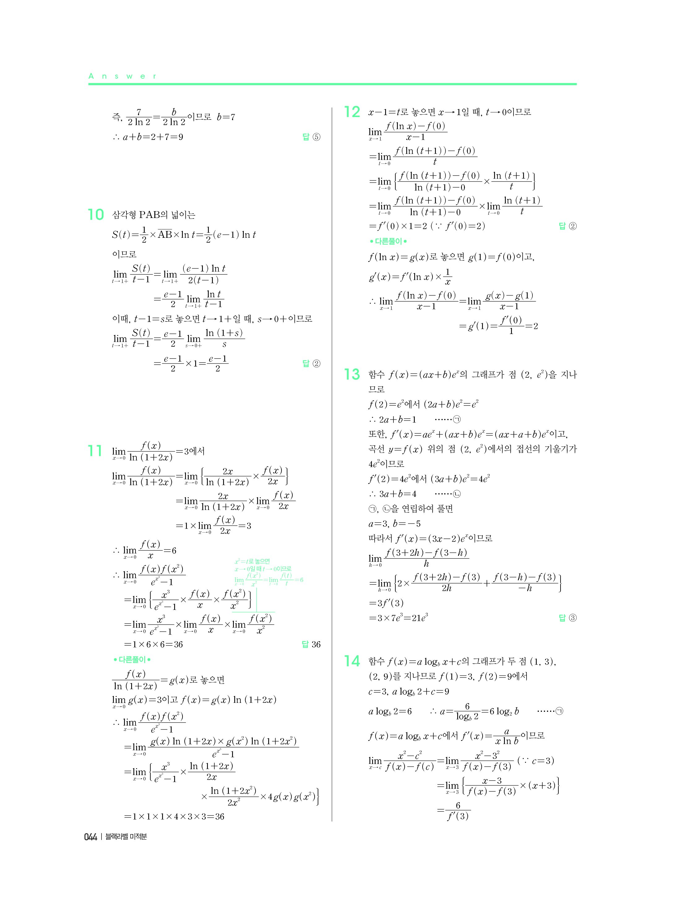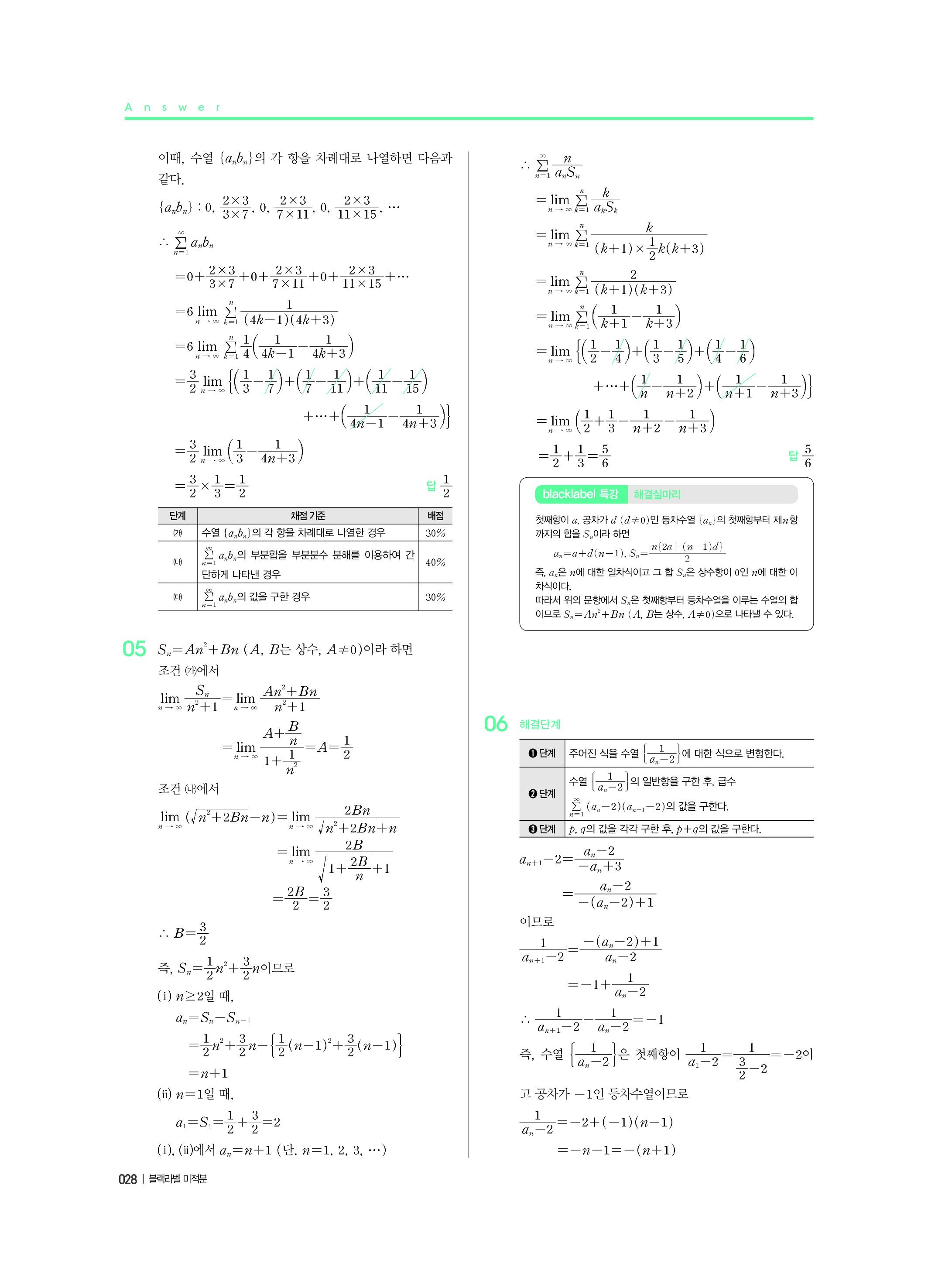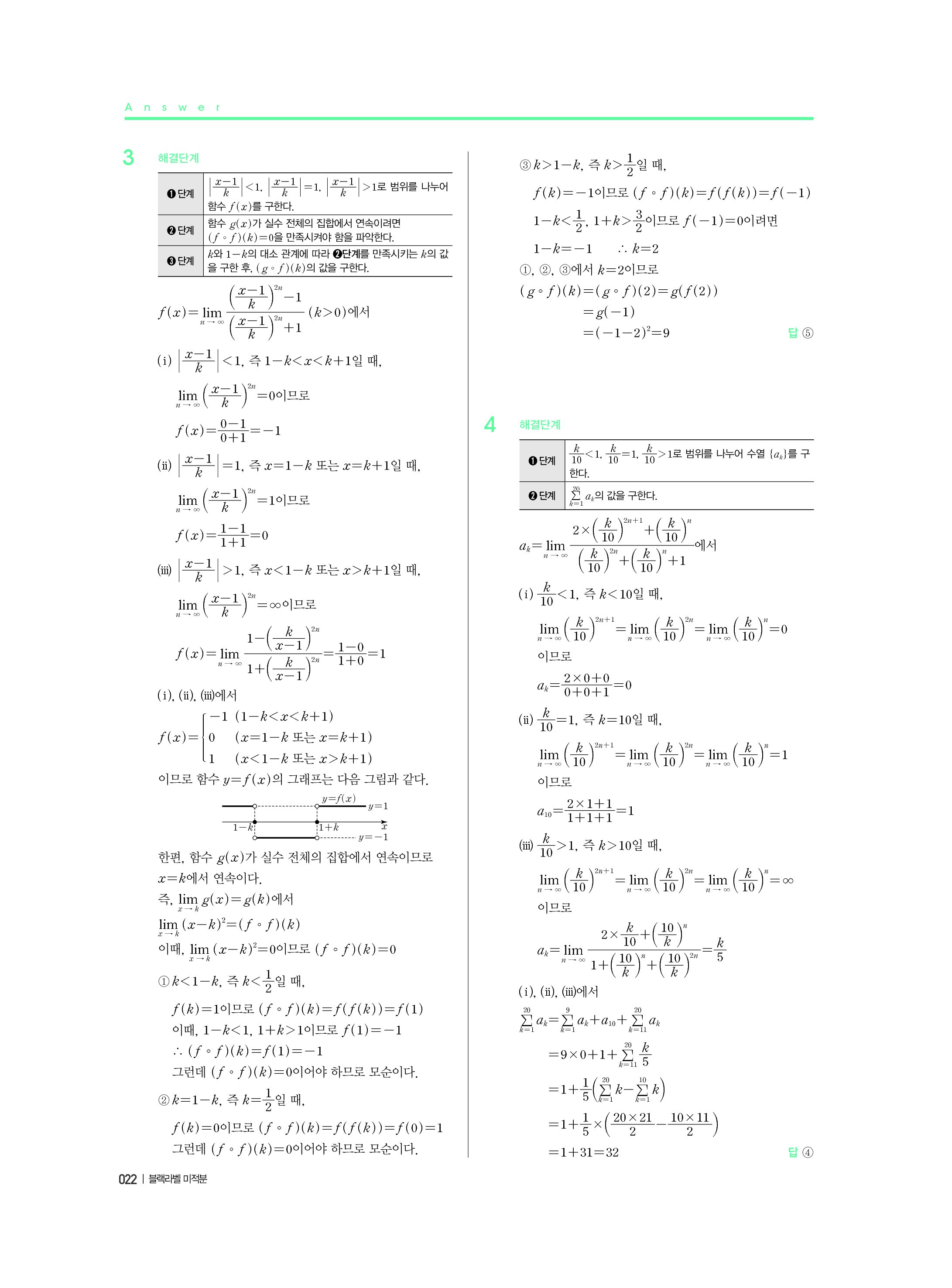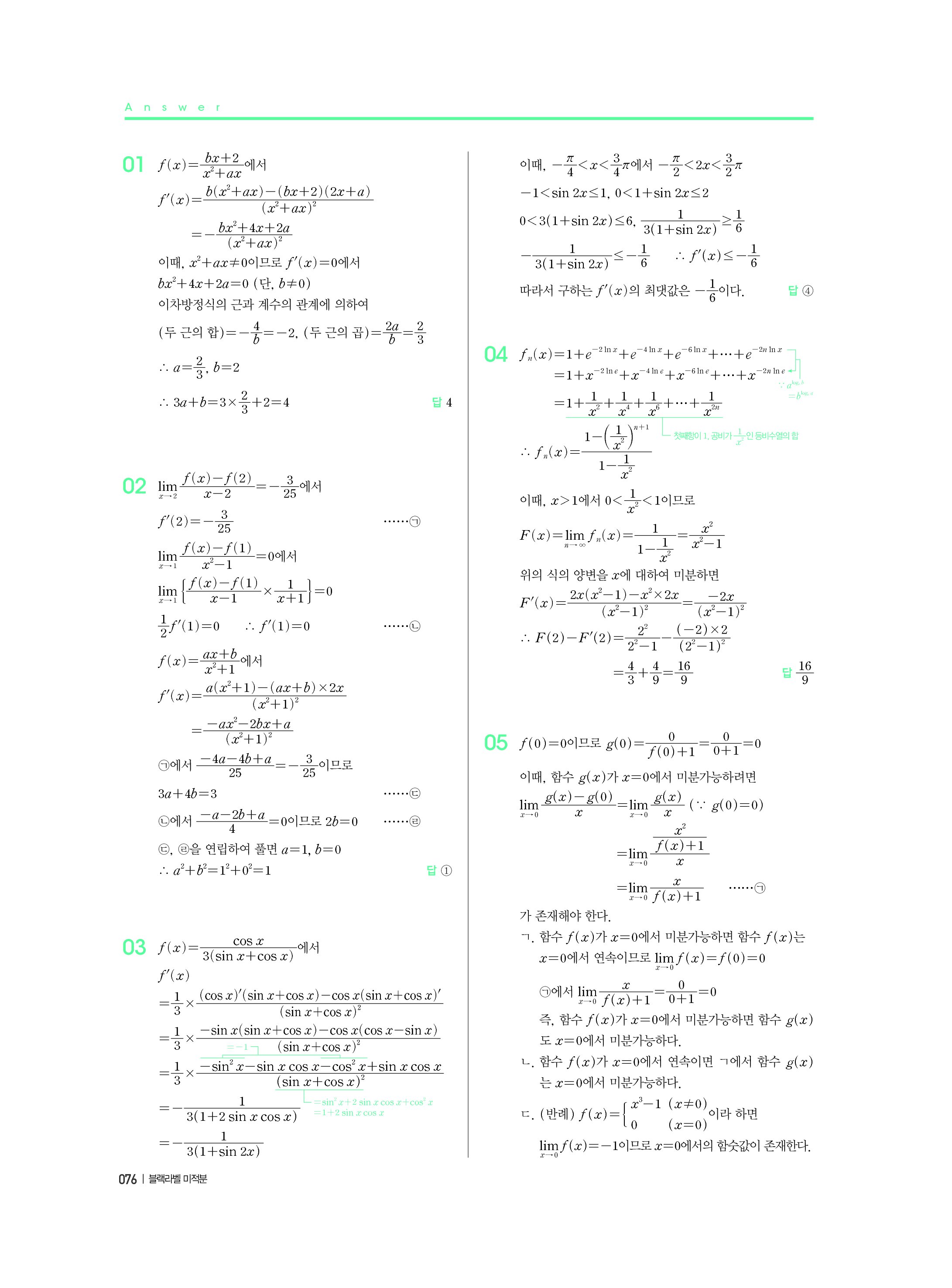 블랙라벨 미적분 답지 해설 사진답지 빠른답지 모바일최적화