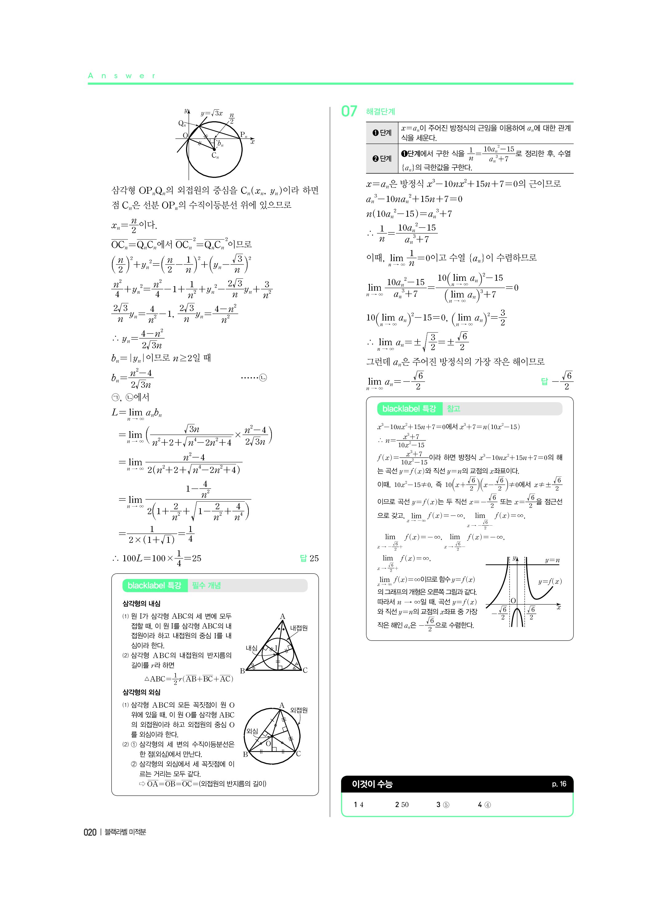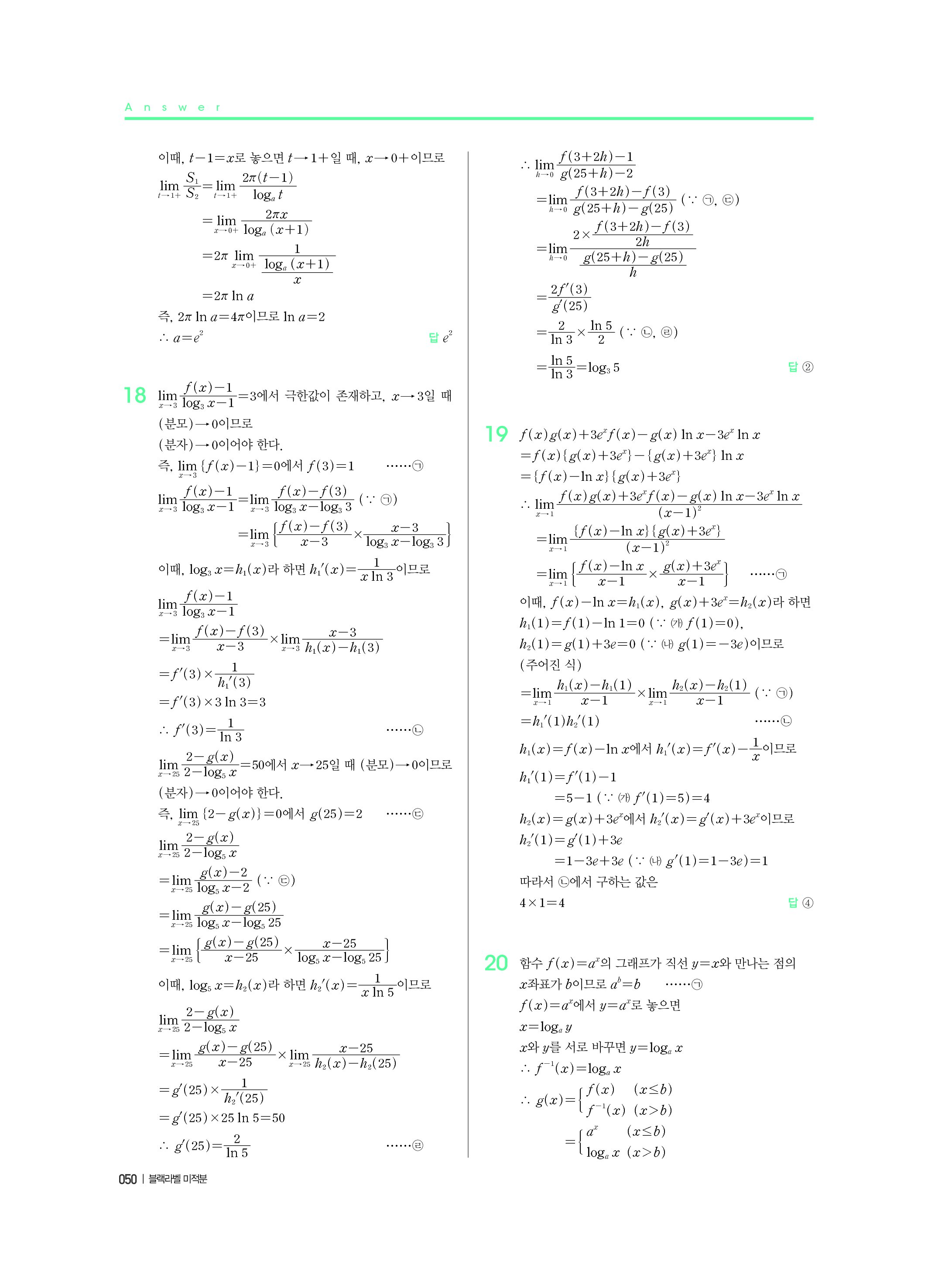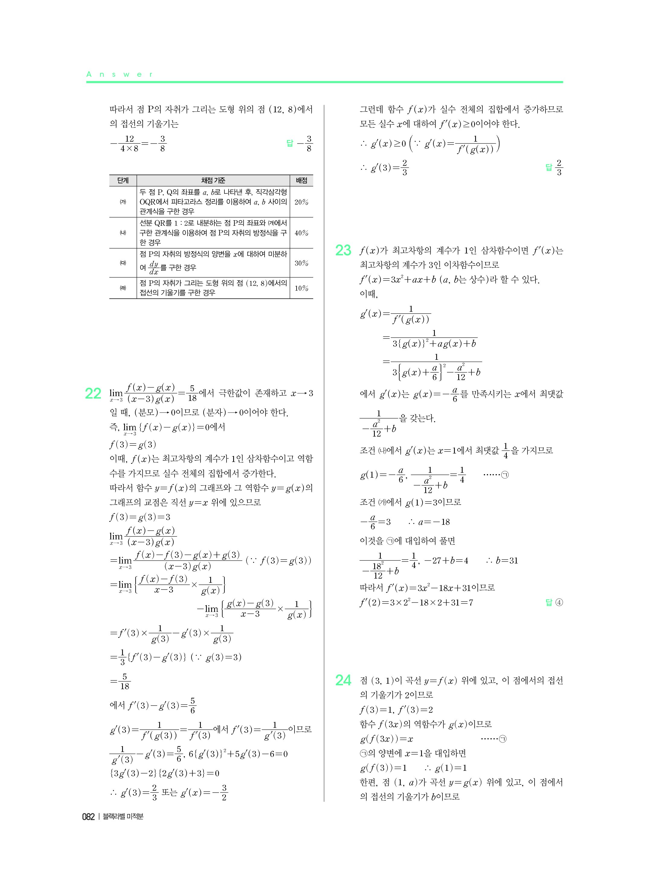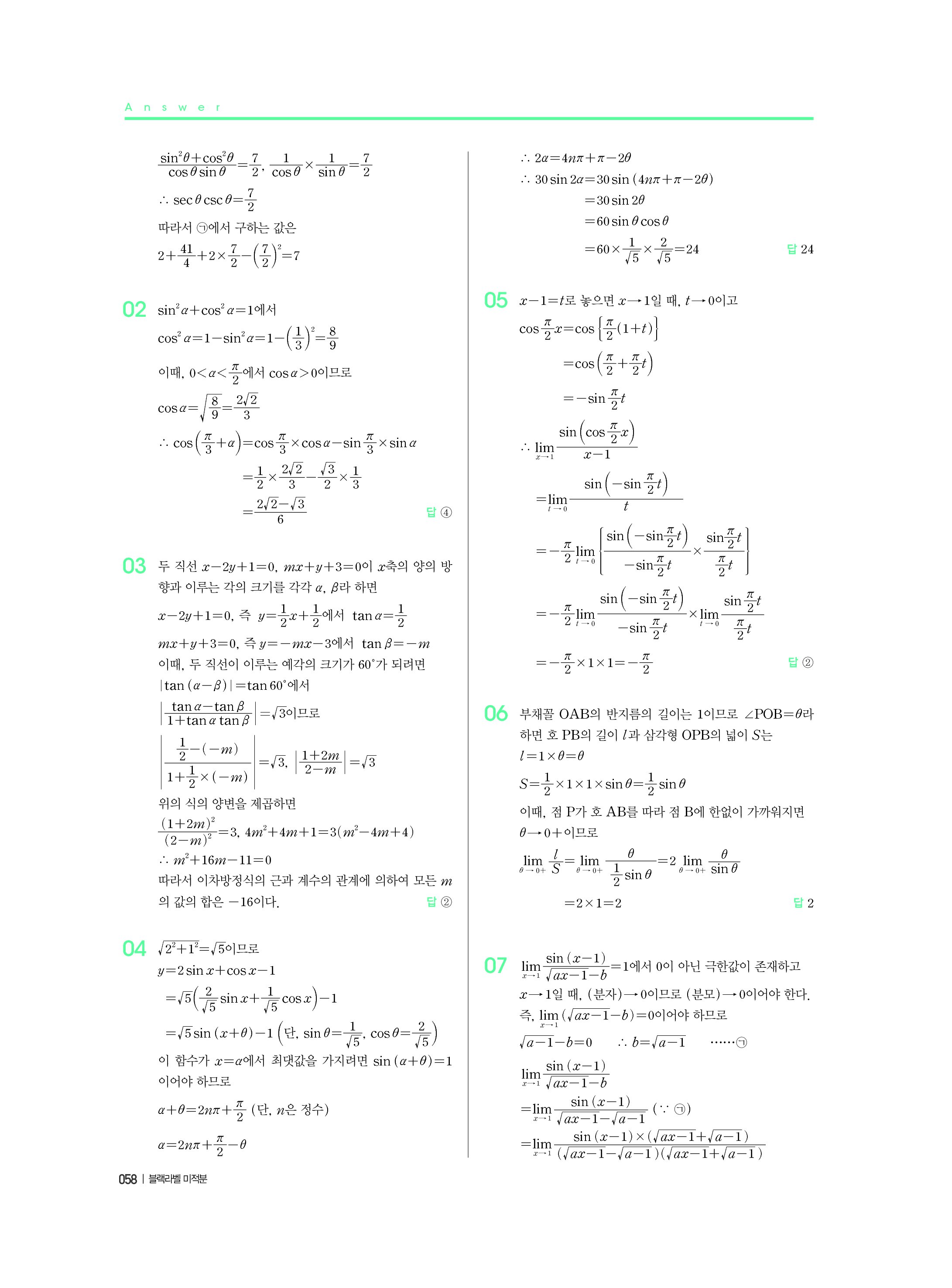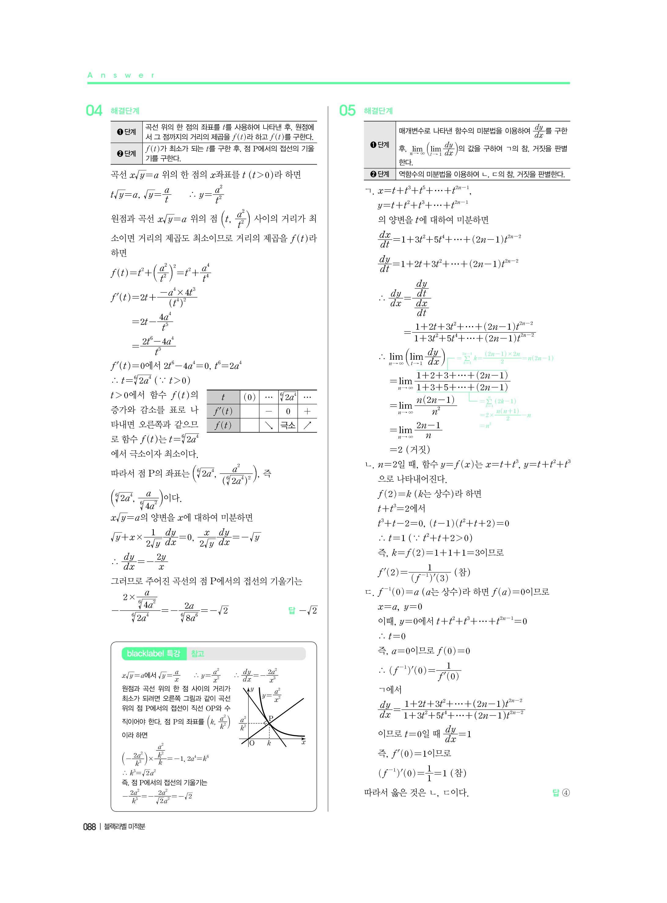 블랙라벨 미적분 답지 해설 사진답지 빠른답지 모바일최적화