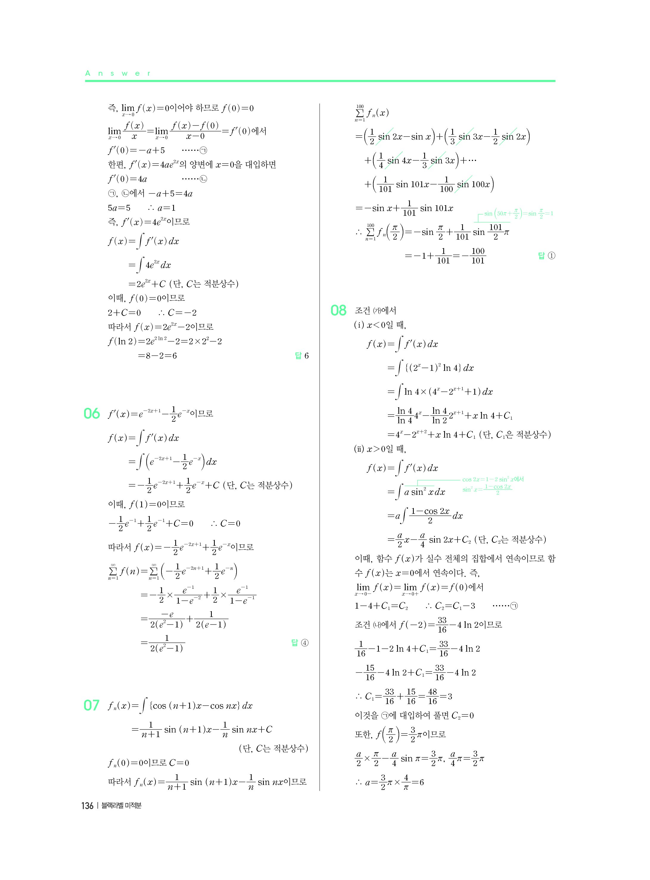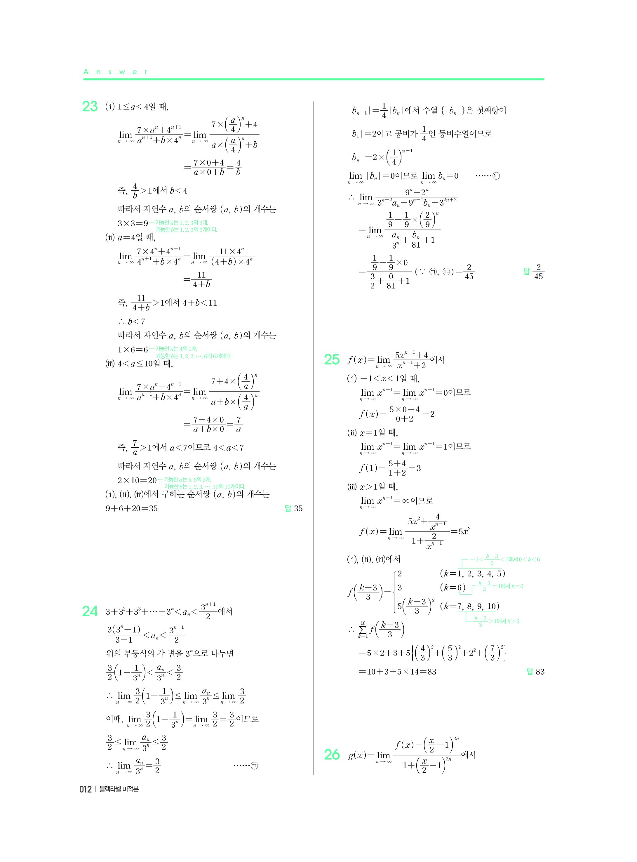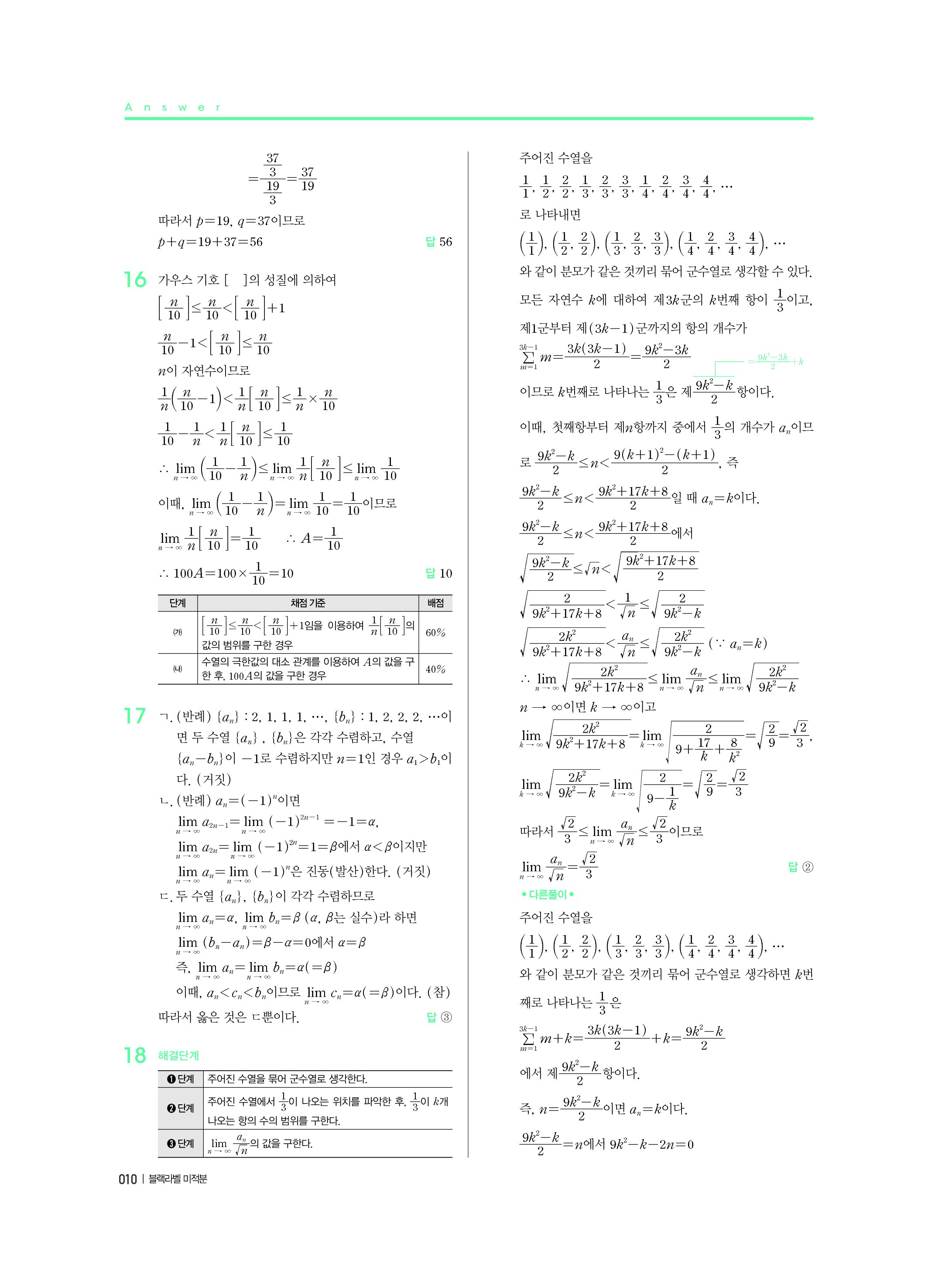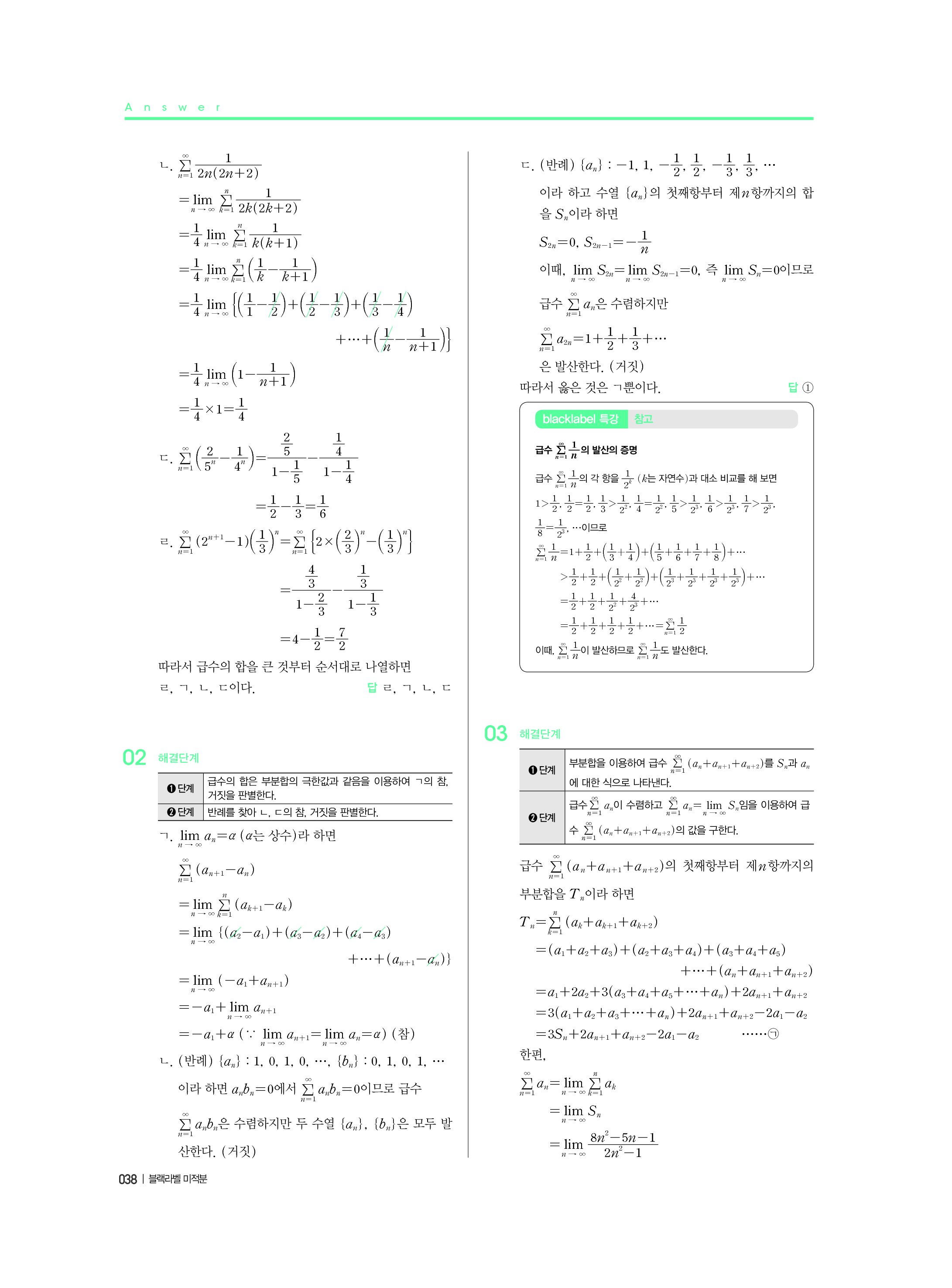 블랙라벨 미적분 답지 해설 사진답지 빠른답지 모바일최적화