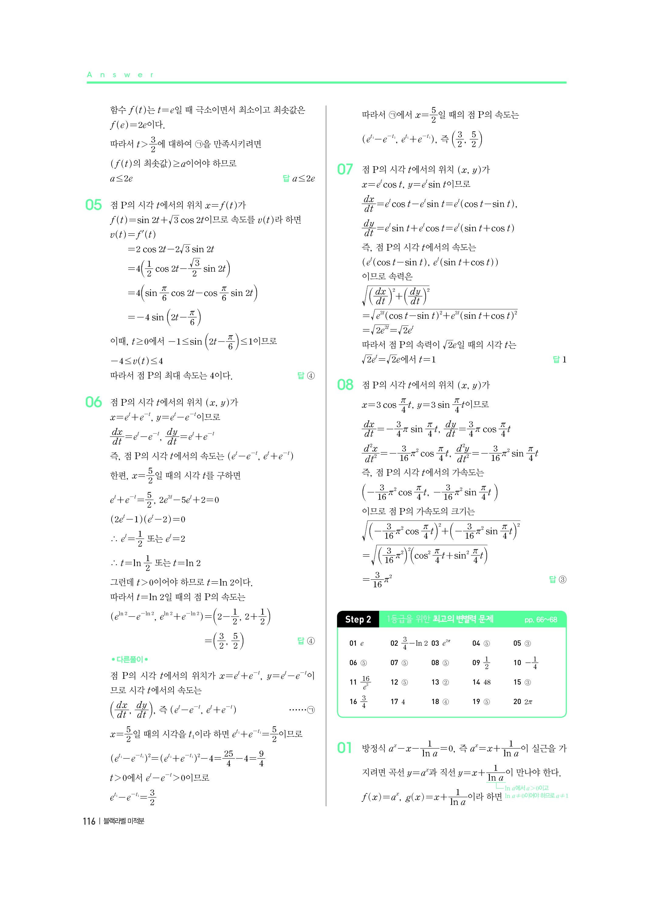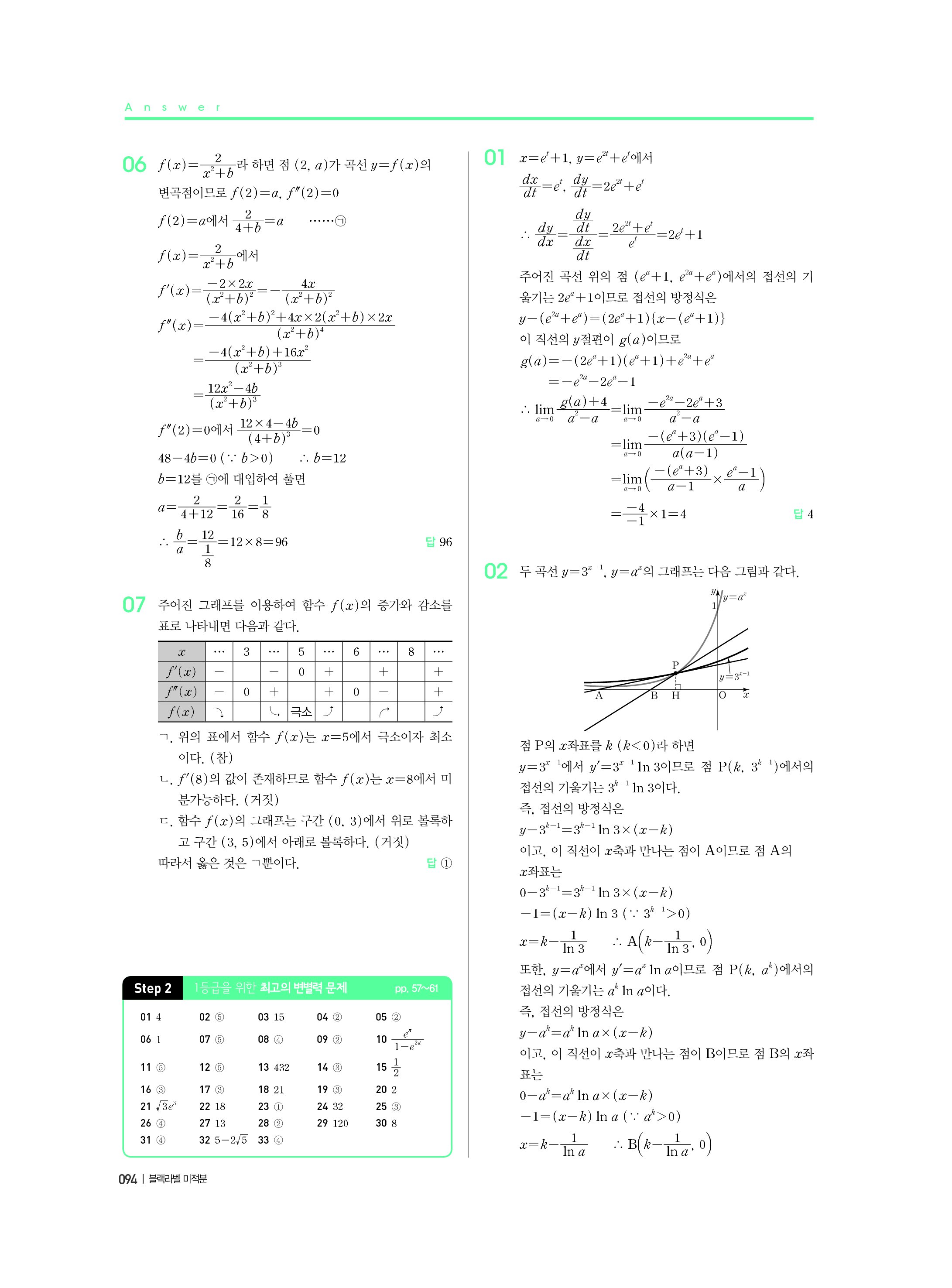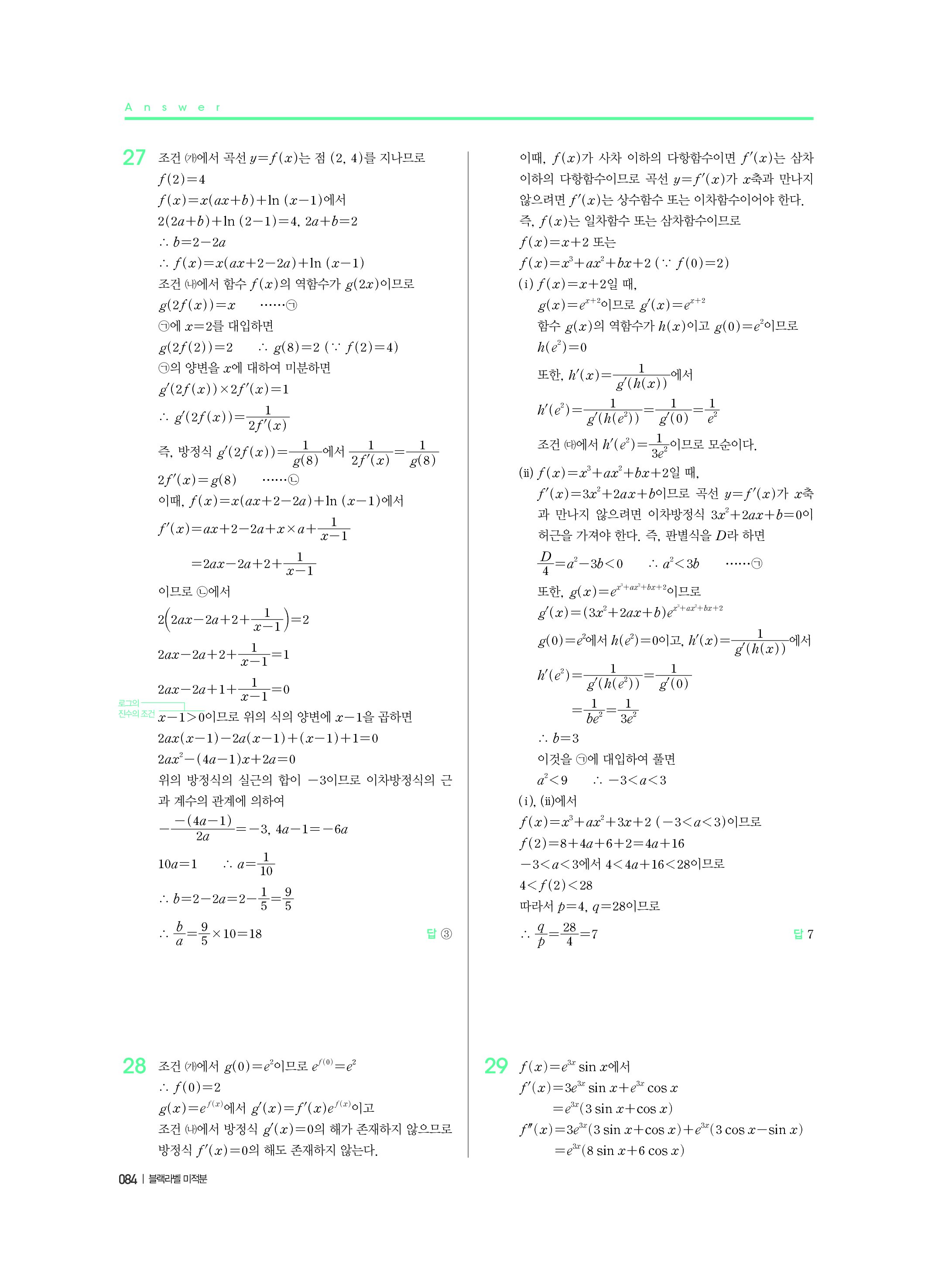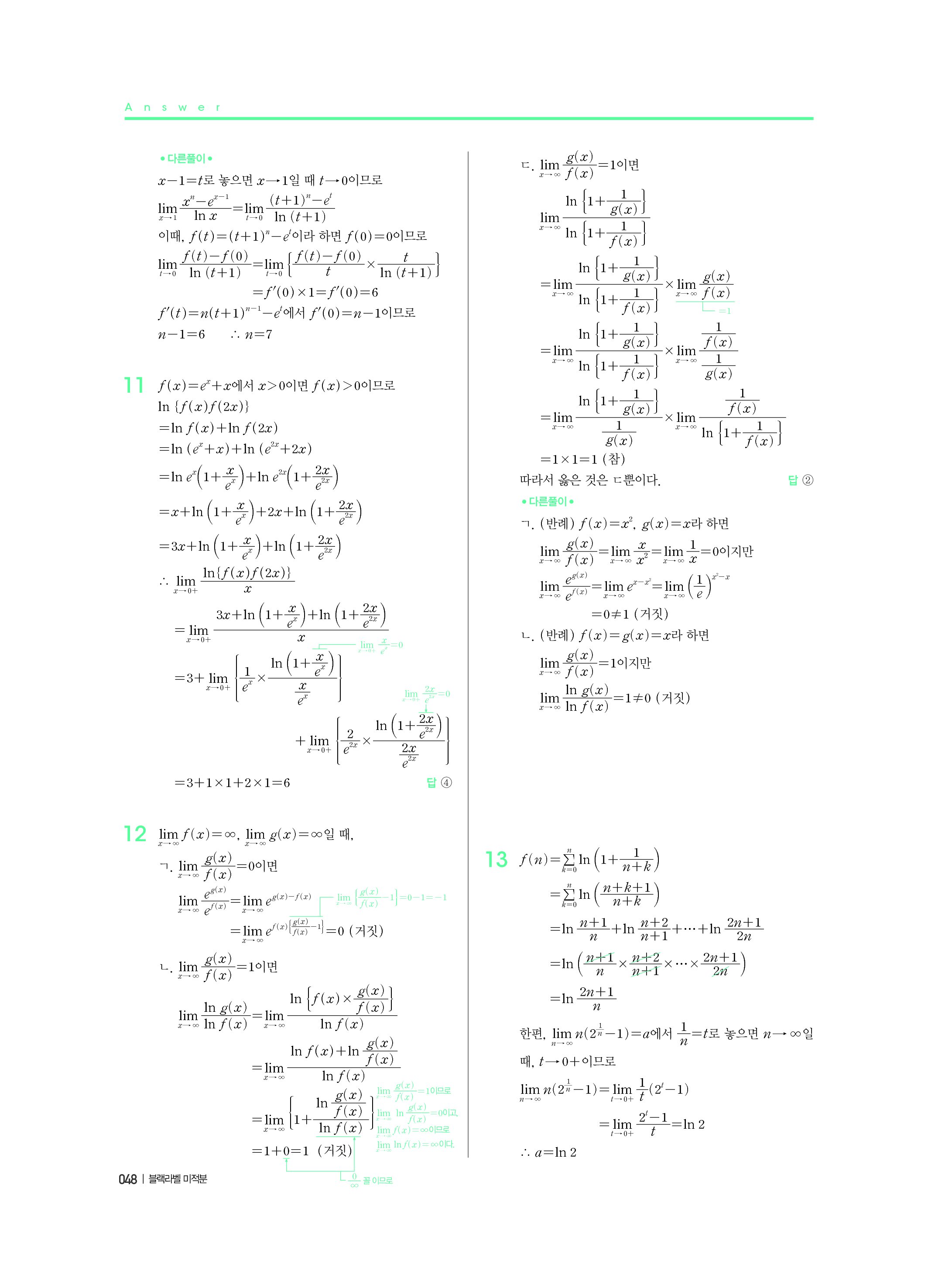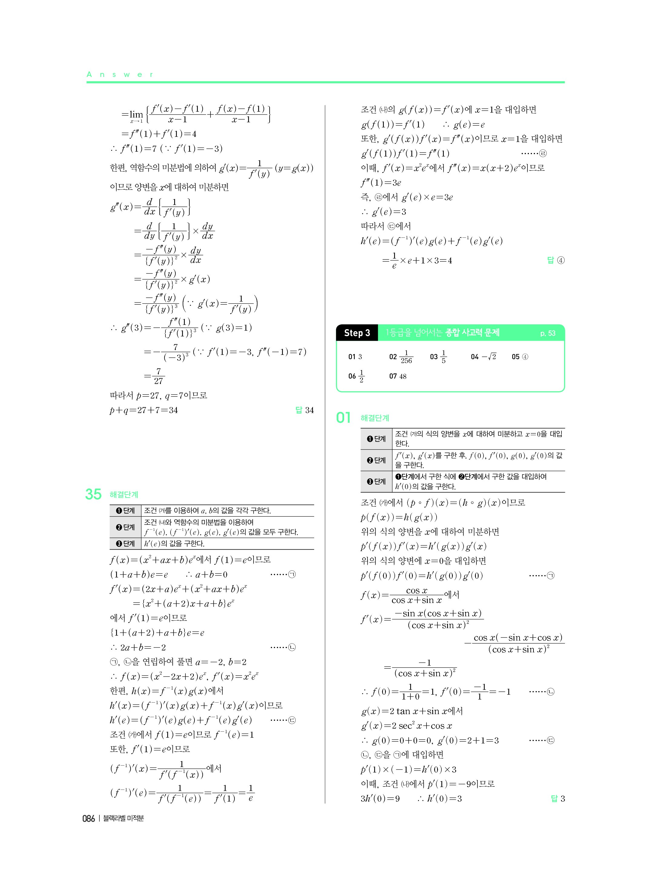 블랙라벨 미적분 답지 해설 사진답지 빠른답지 모바일최적화