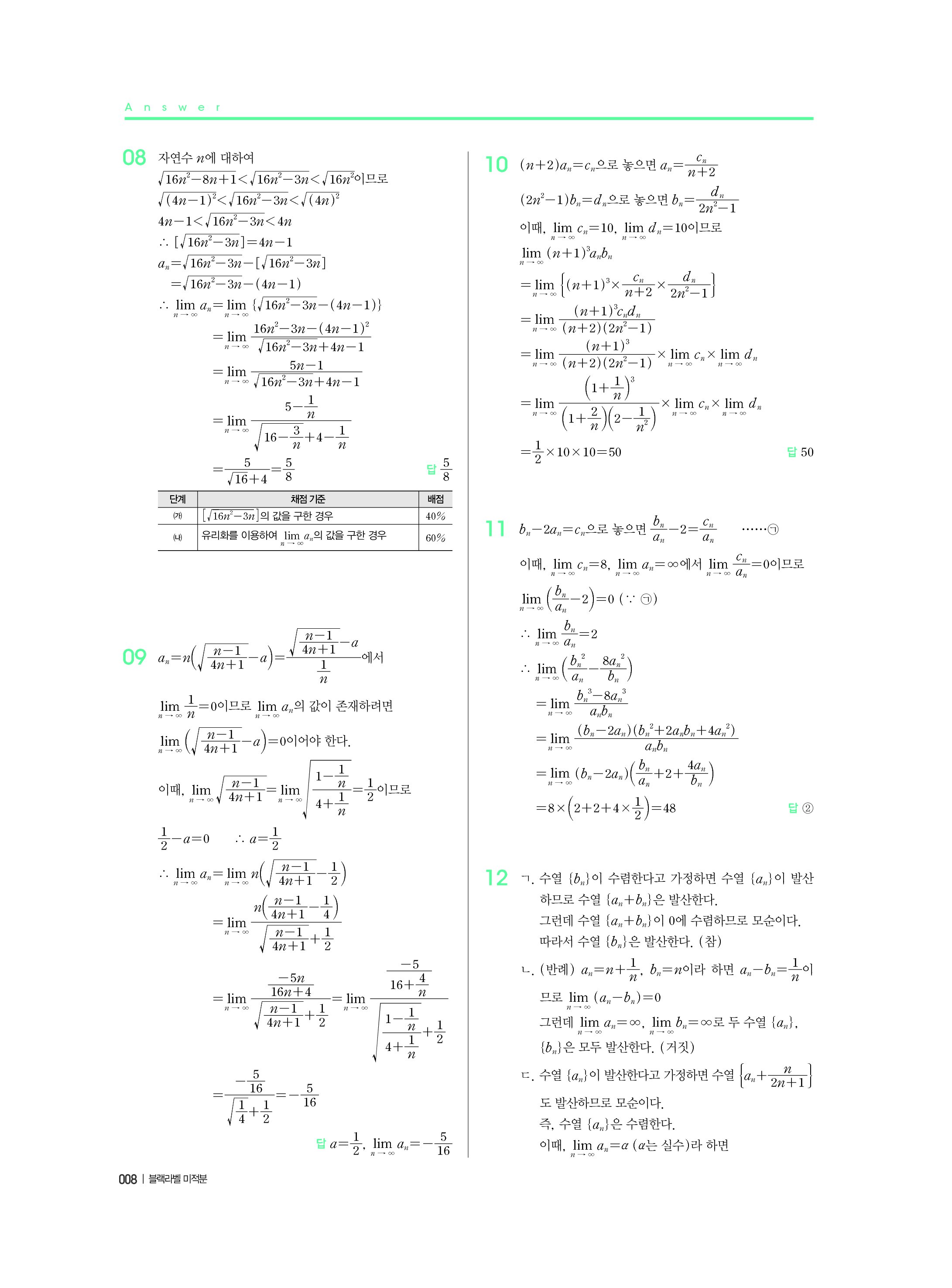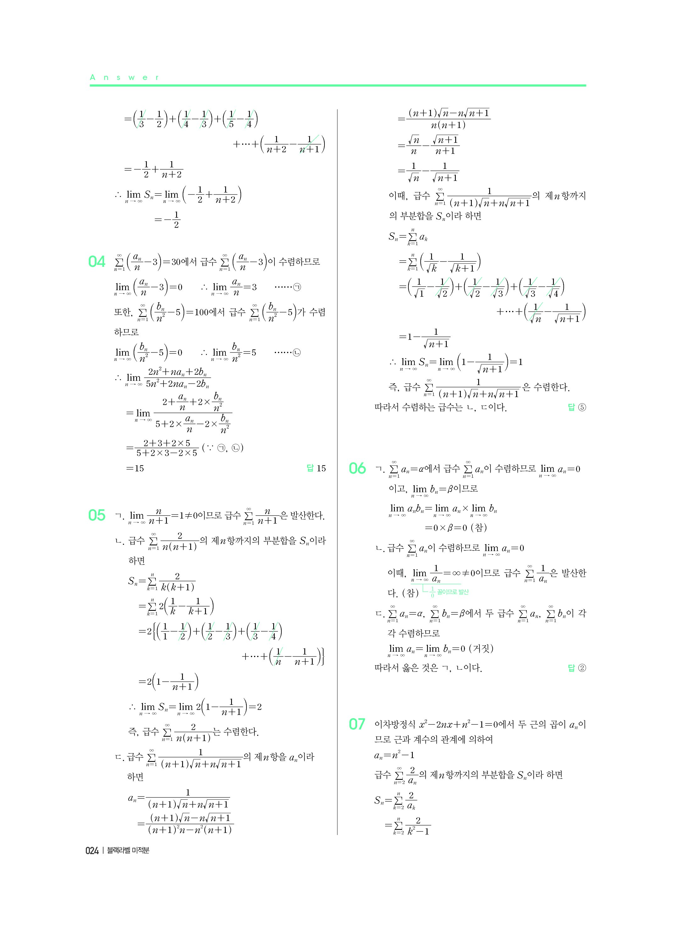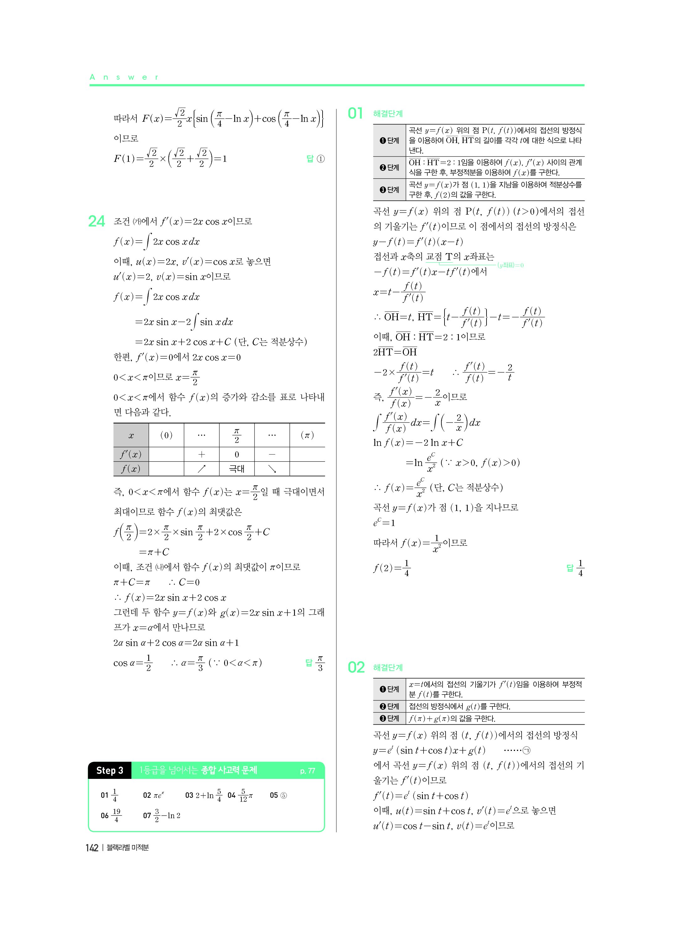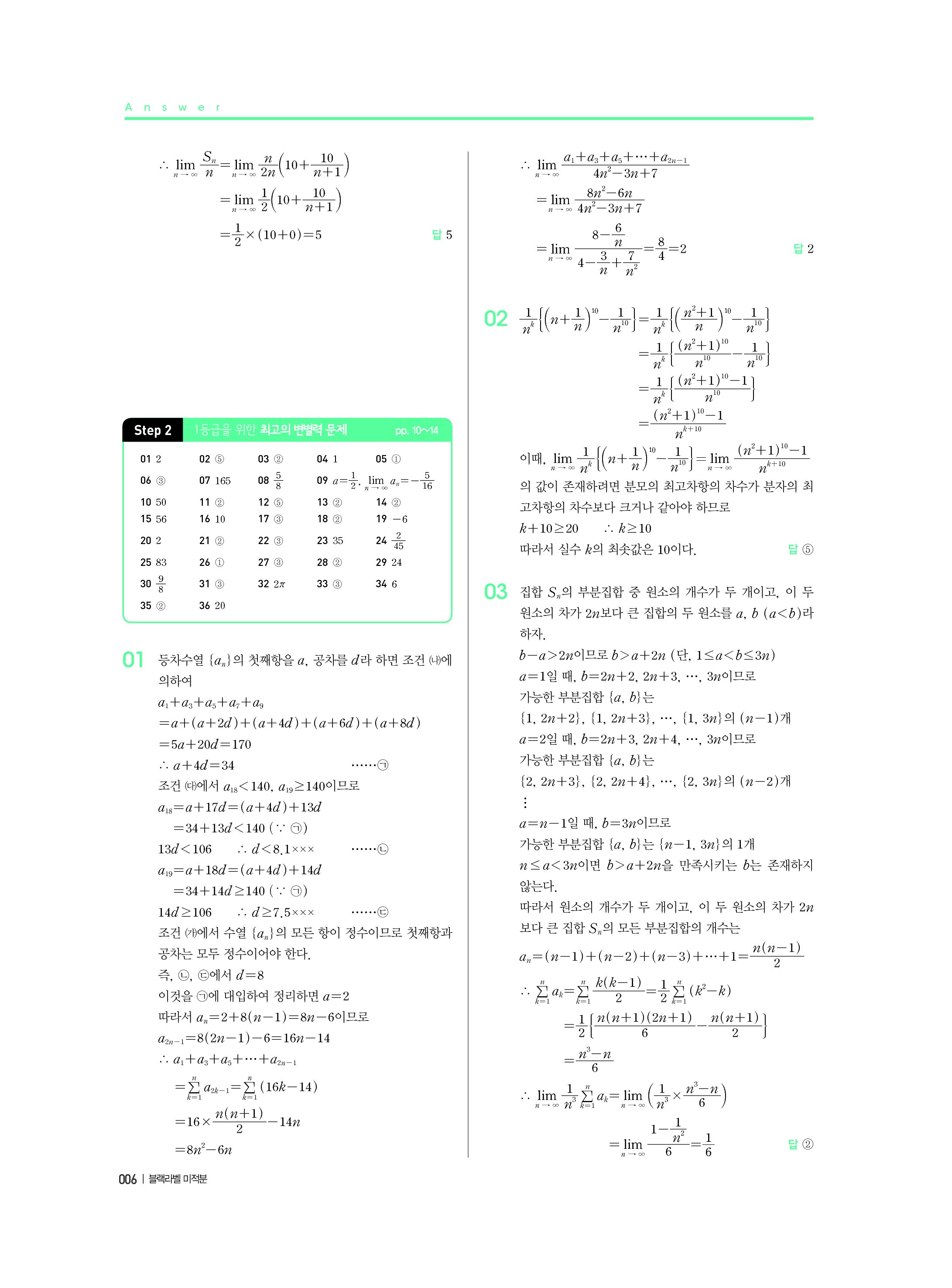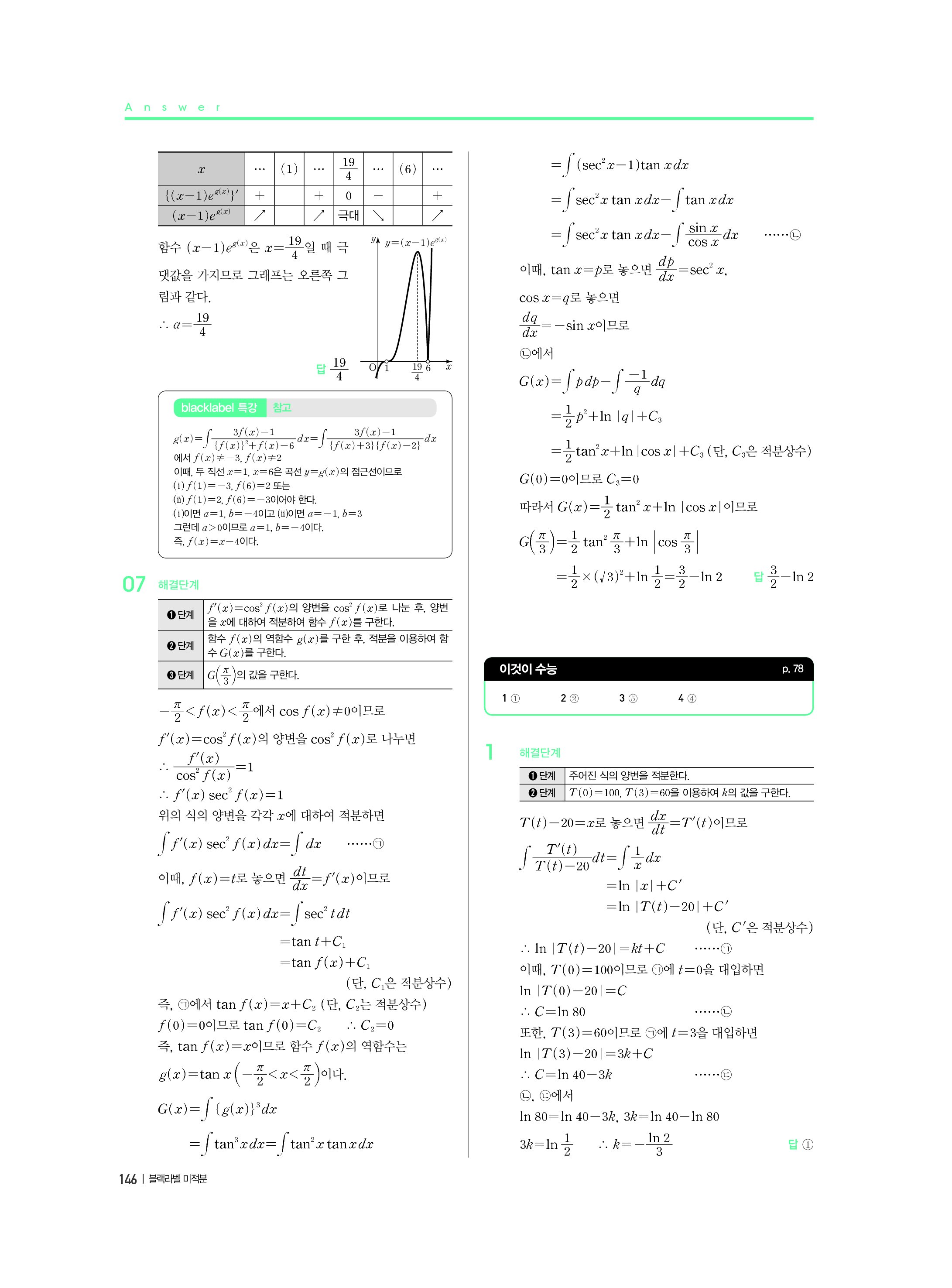 블랙라벨 미적분 답지 해설 사진답지 빠른답지 모바일최적화