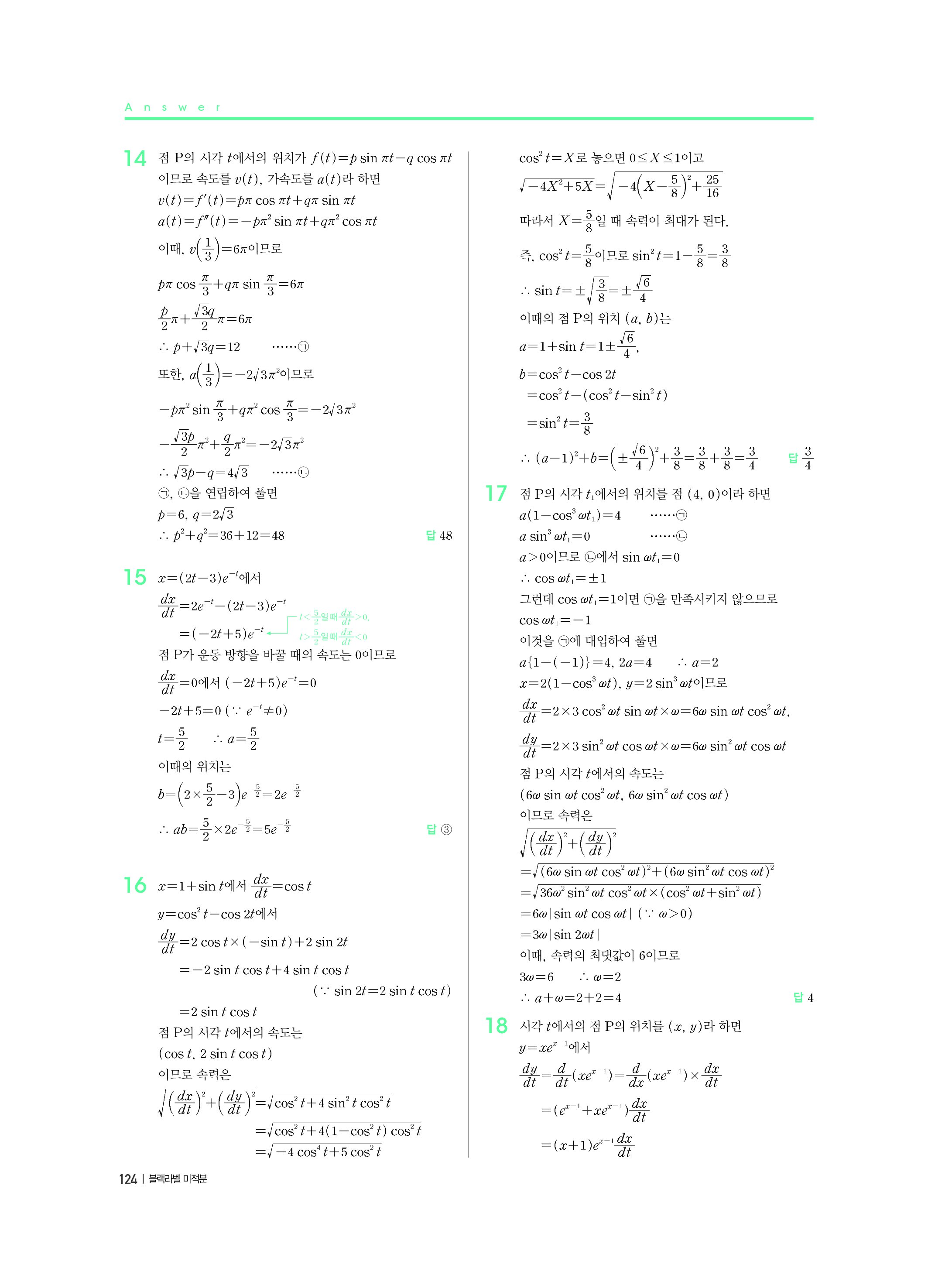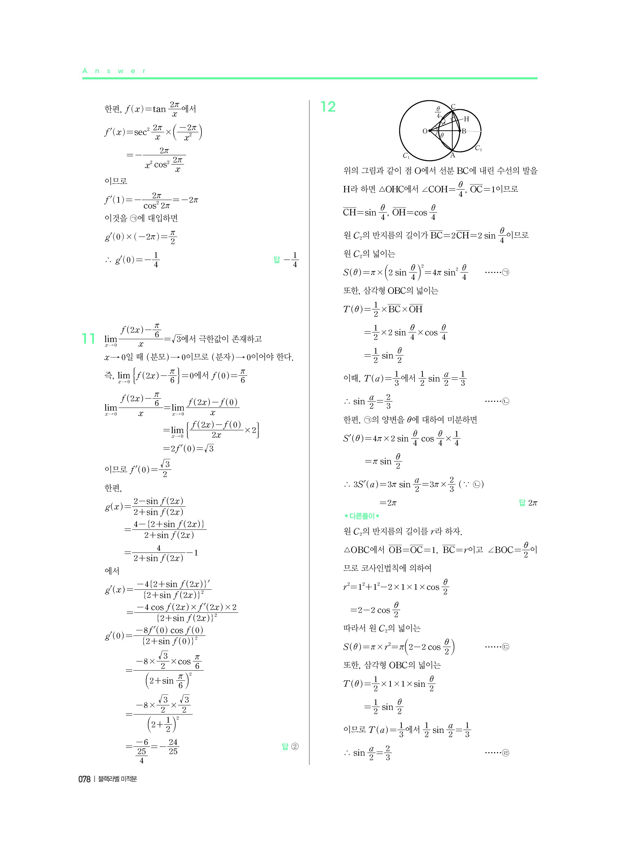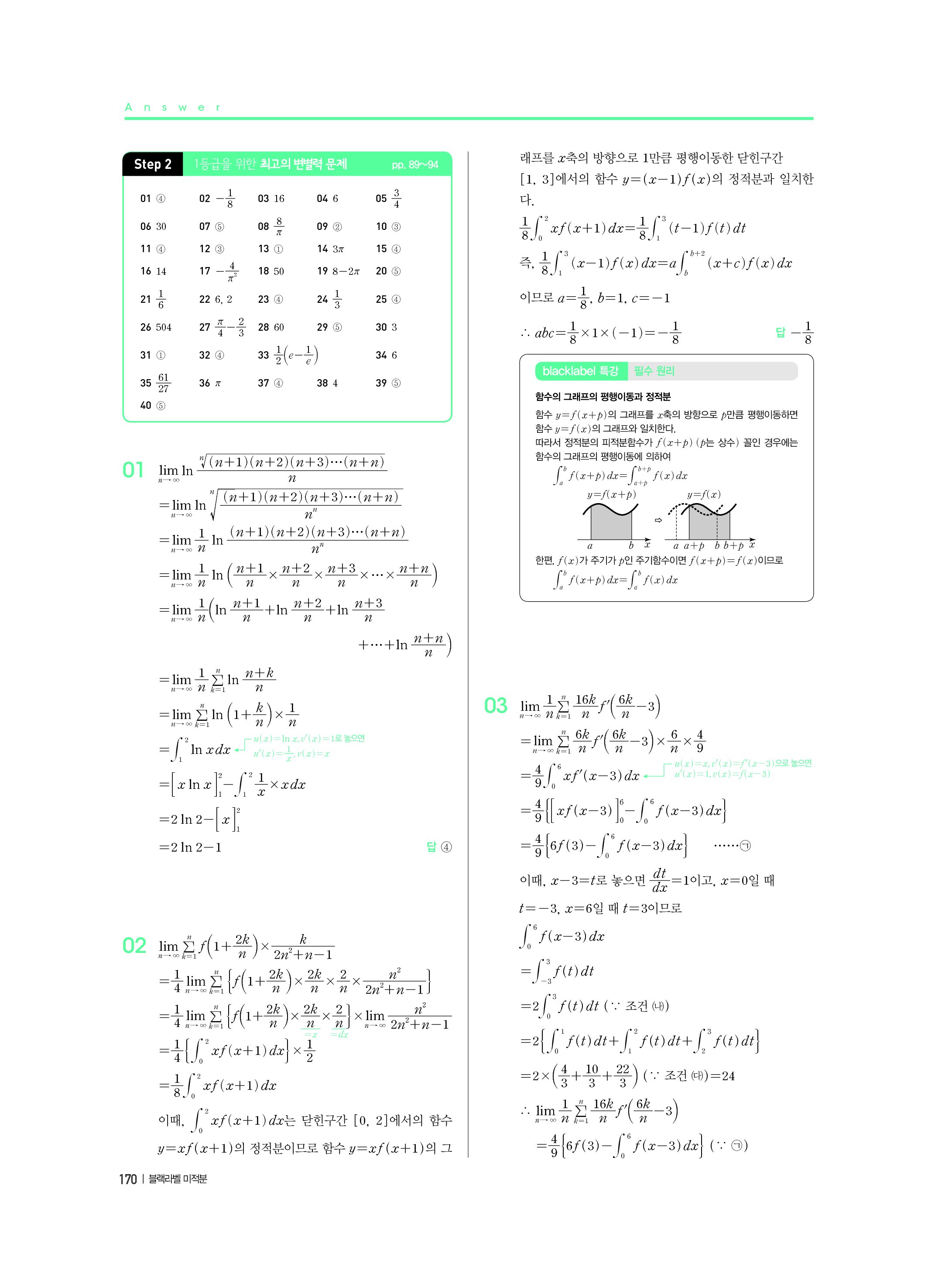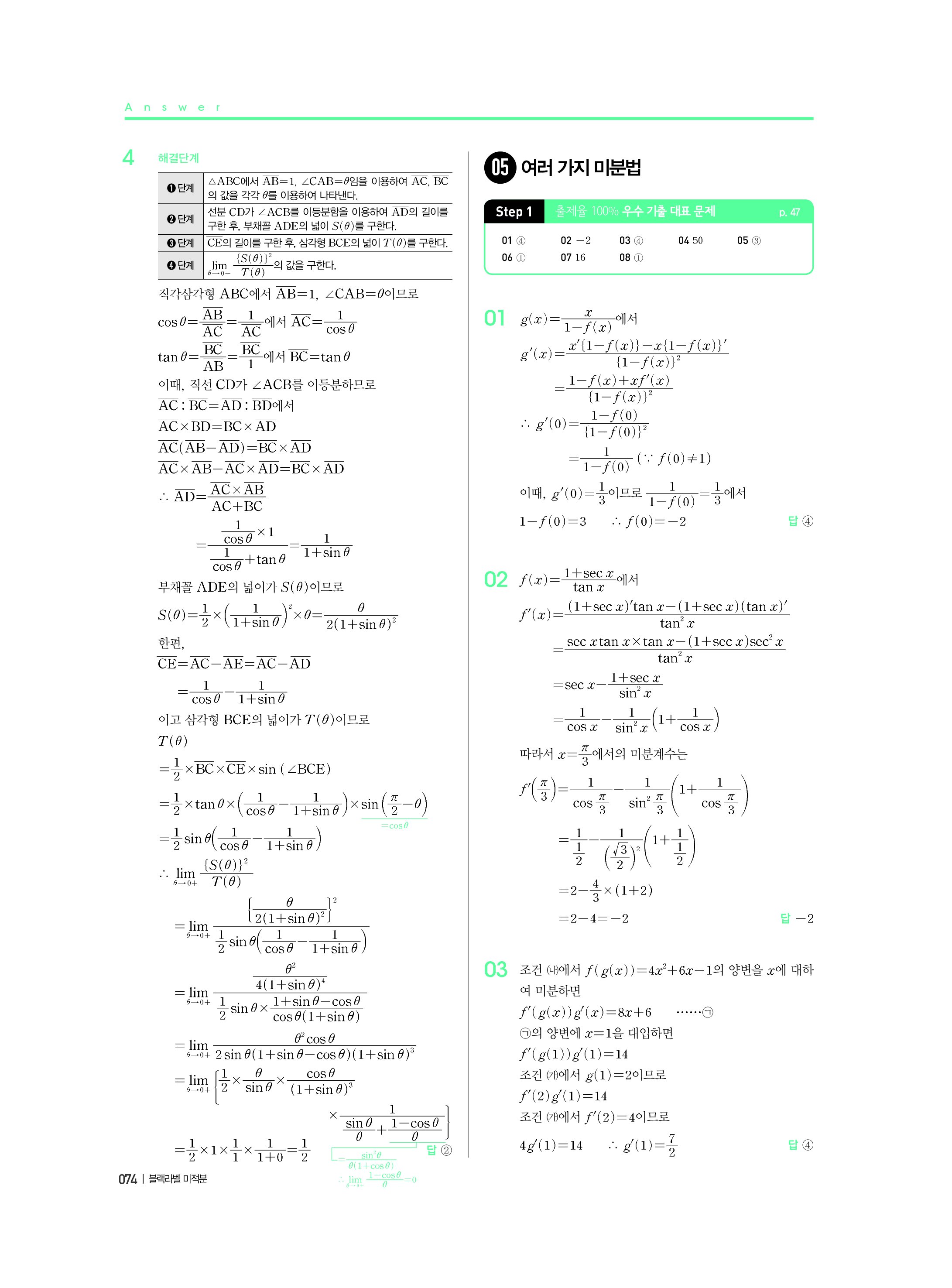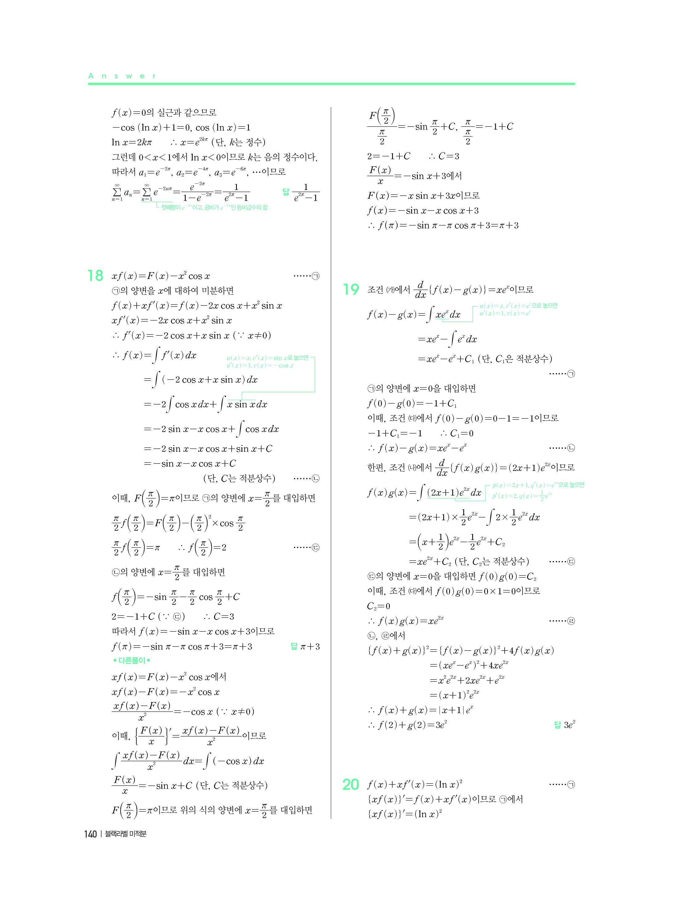 블랙라벨 미적분 답지 해설 사진답지 빠른답지 모바일최적화