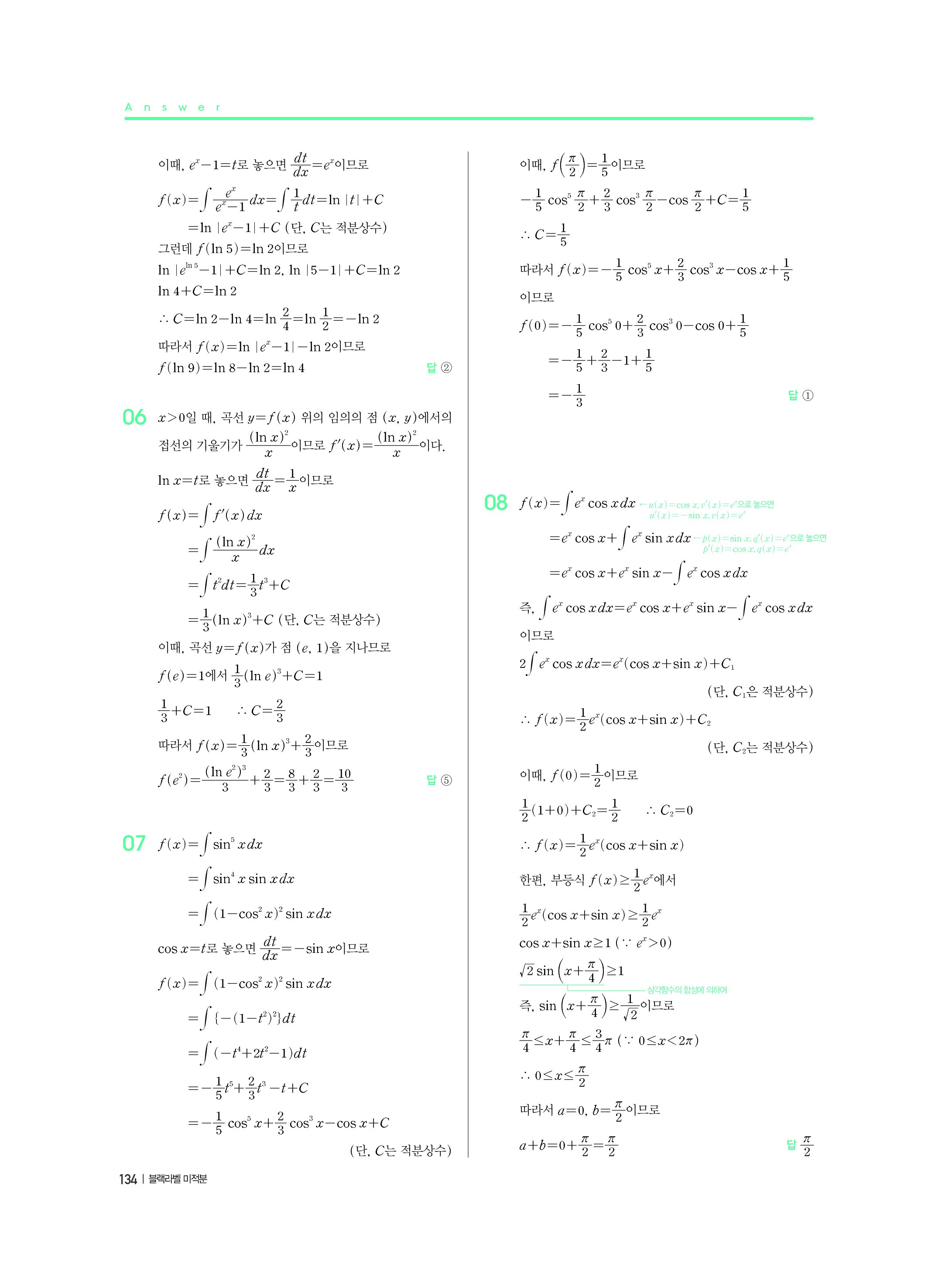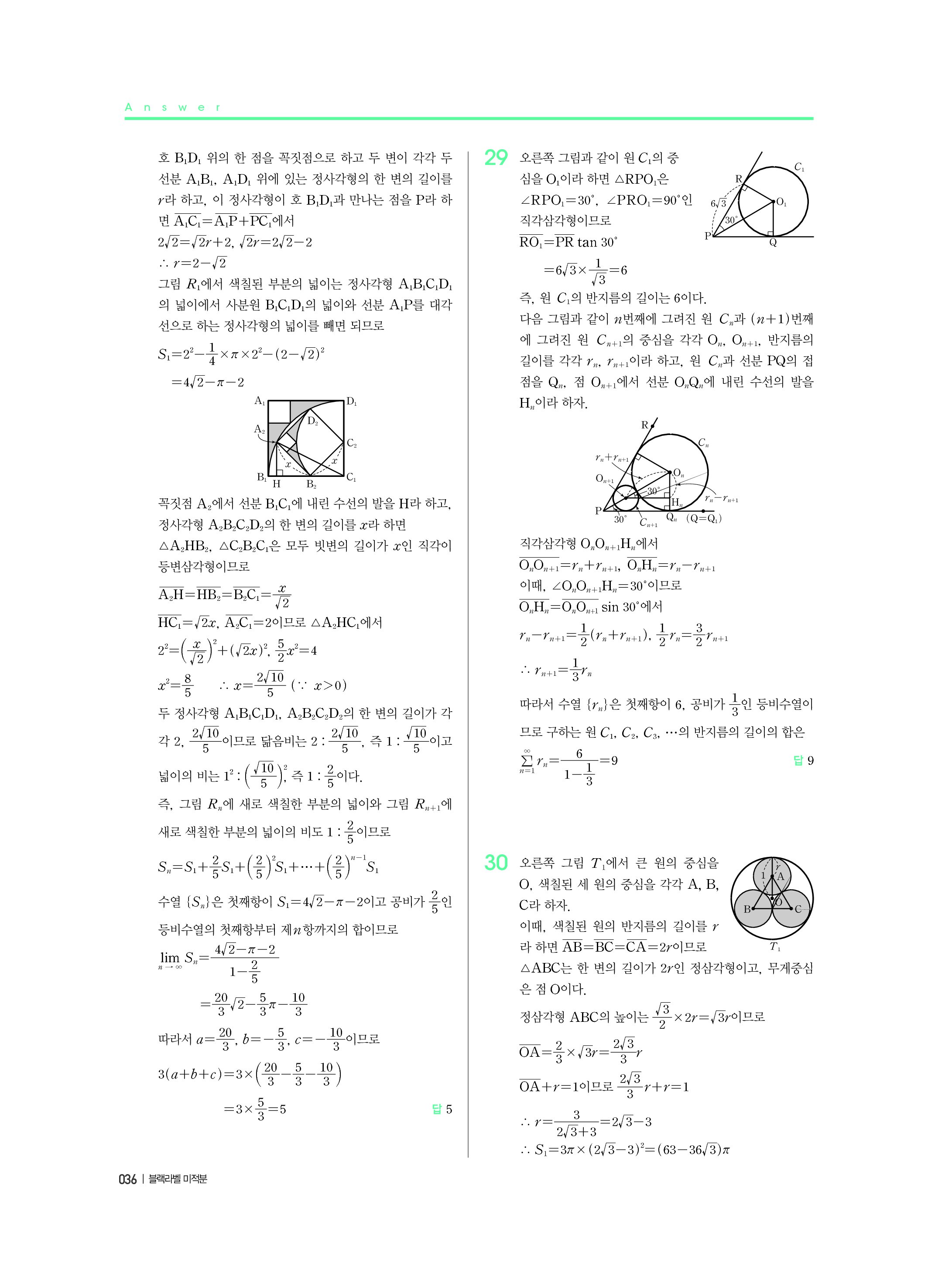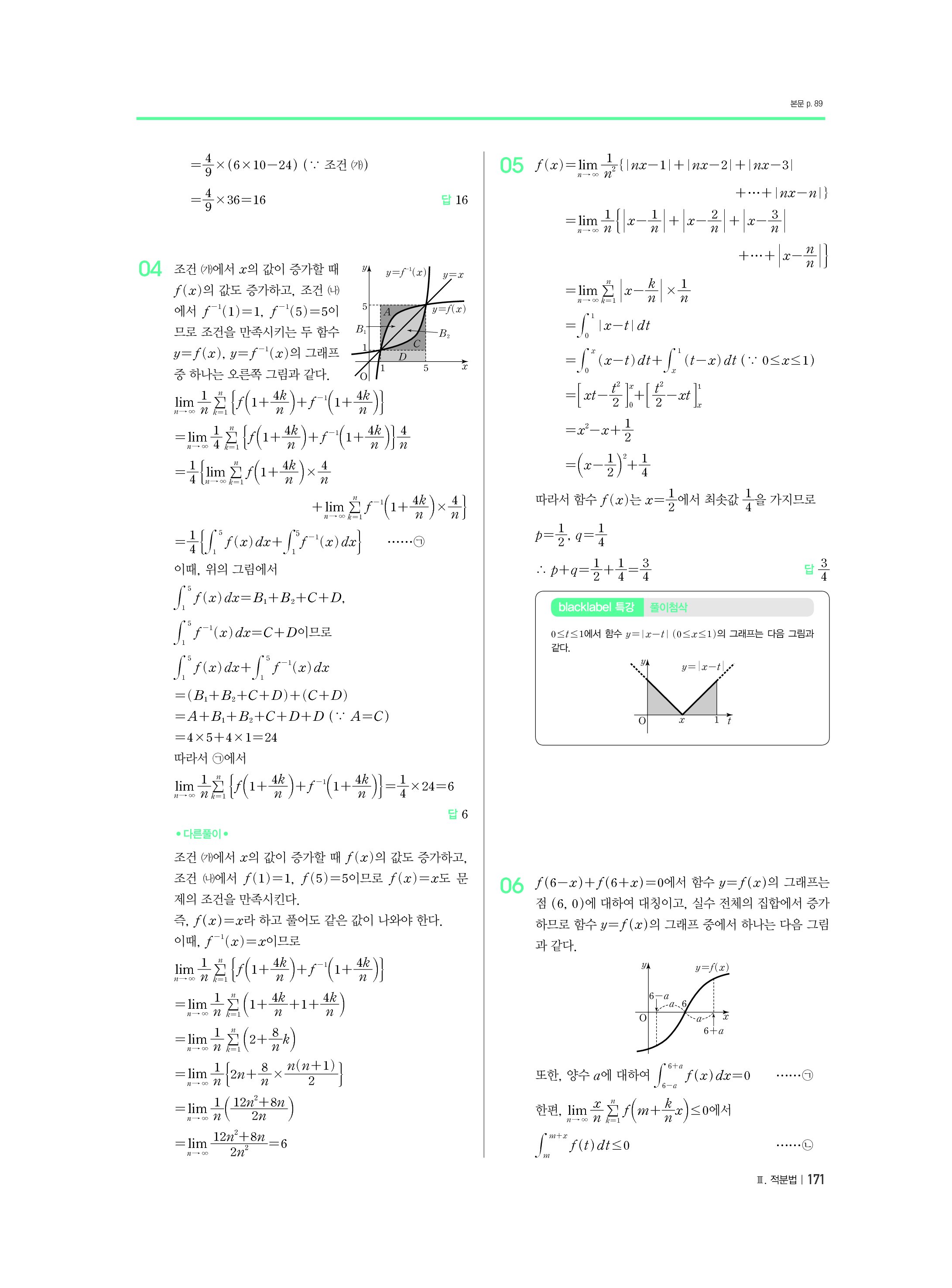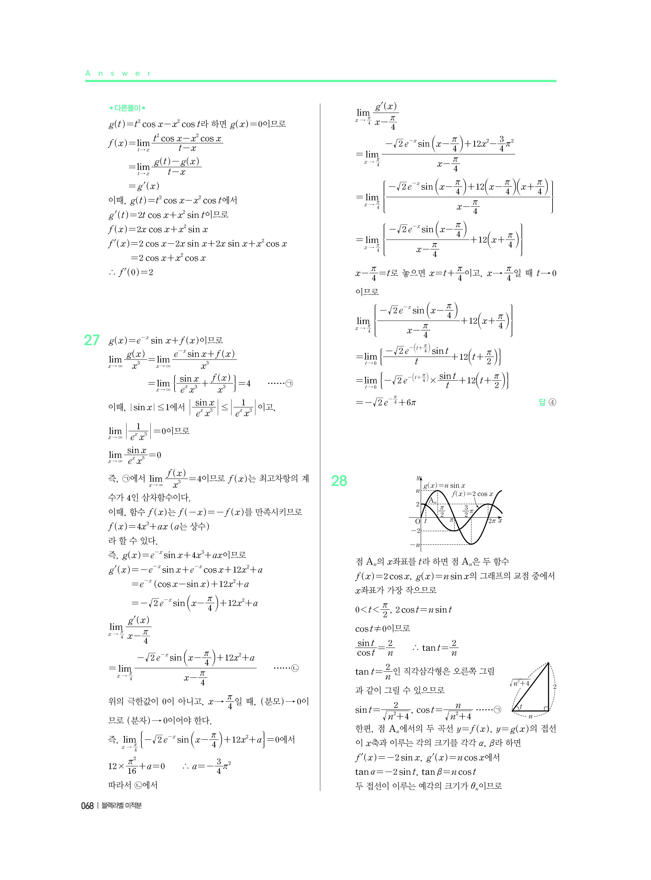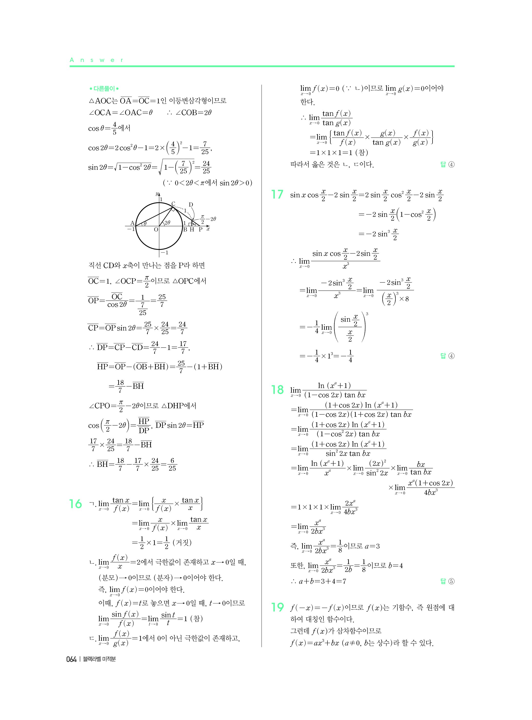 블랙라벨 미적분 답지 해설 사진답지 빠른답지 모바일최적화