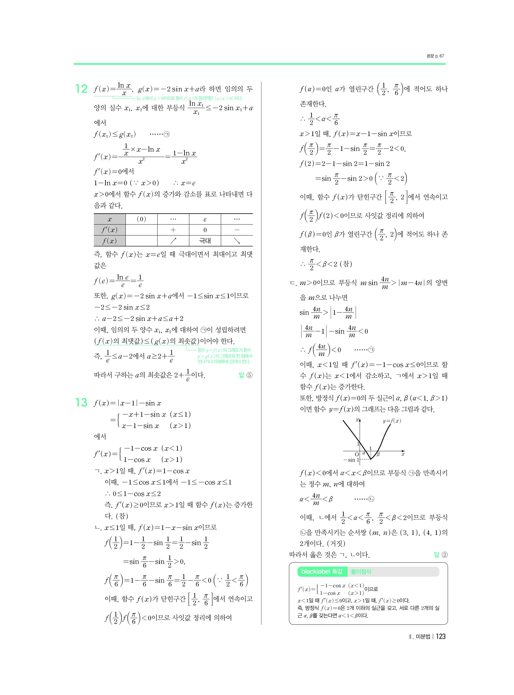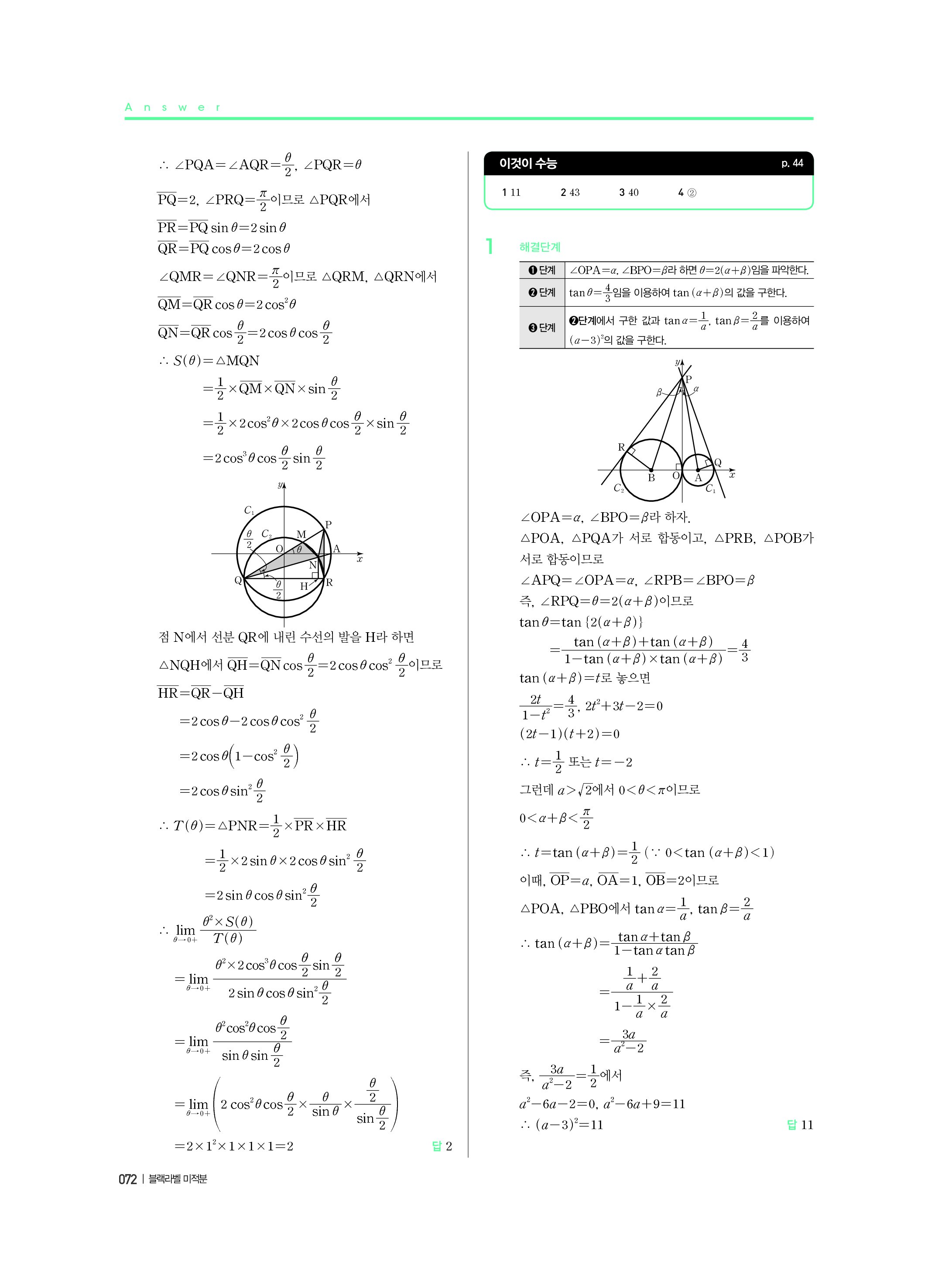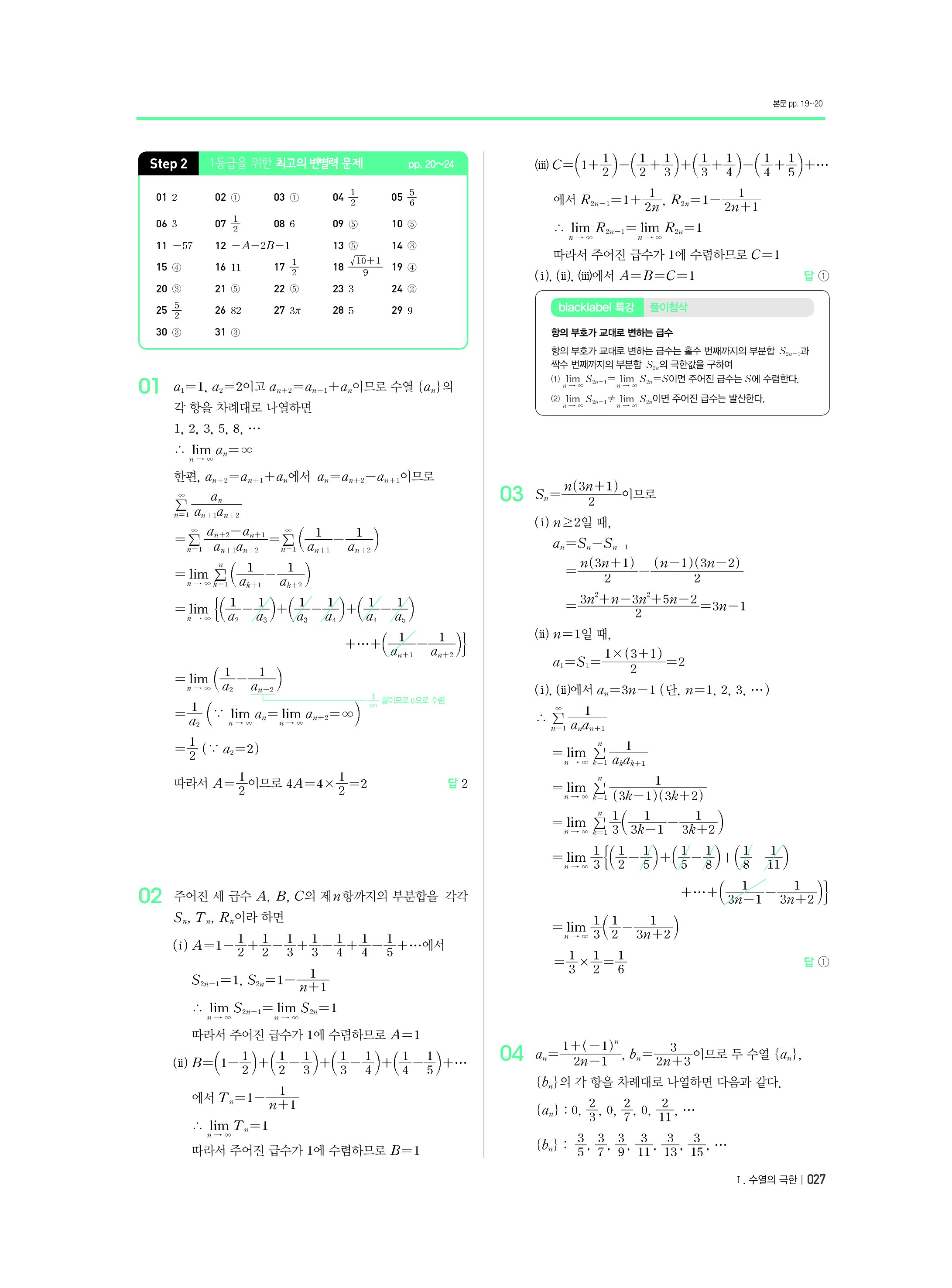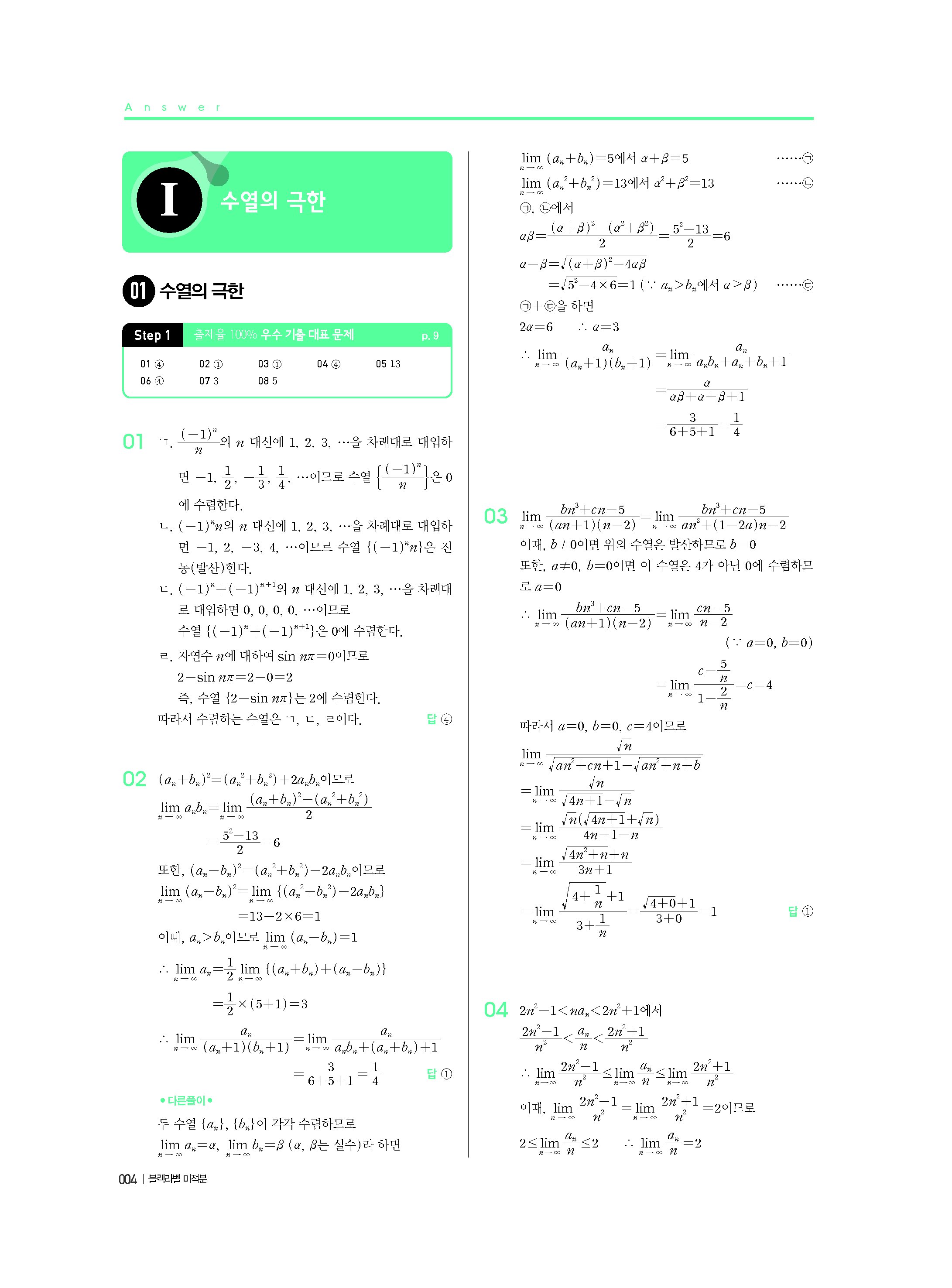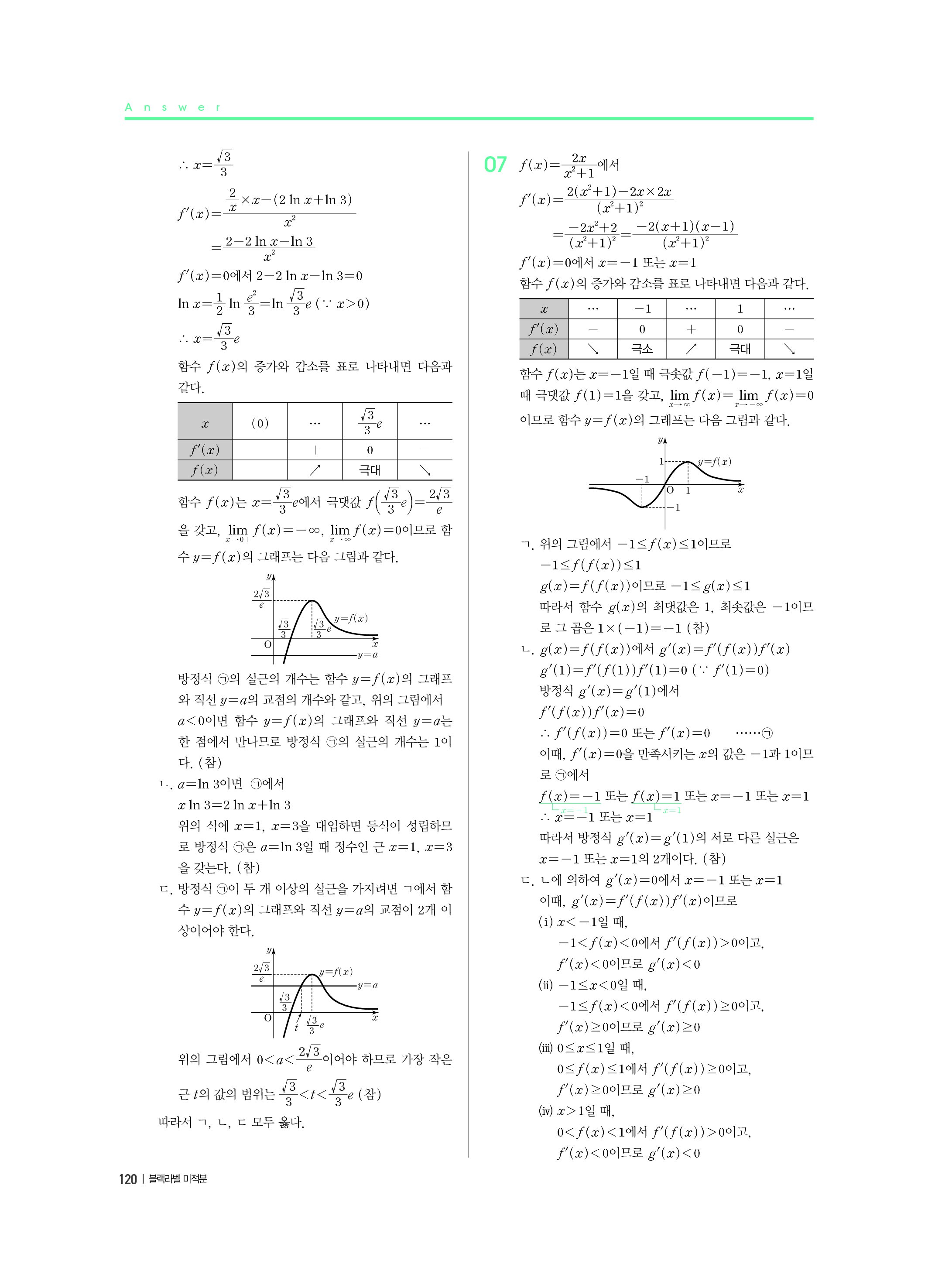 블랙라벨 미적분 답지 해설 사진답지 빠른답지 모바일최적화