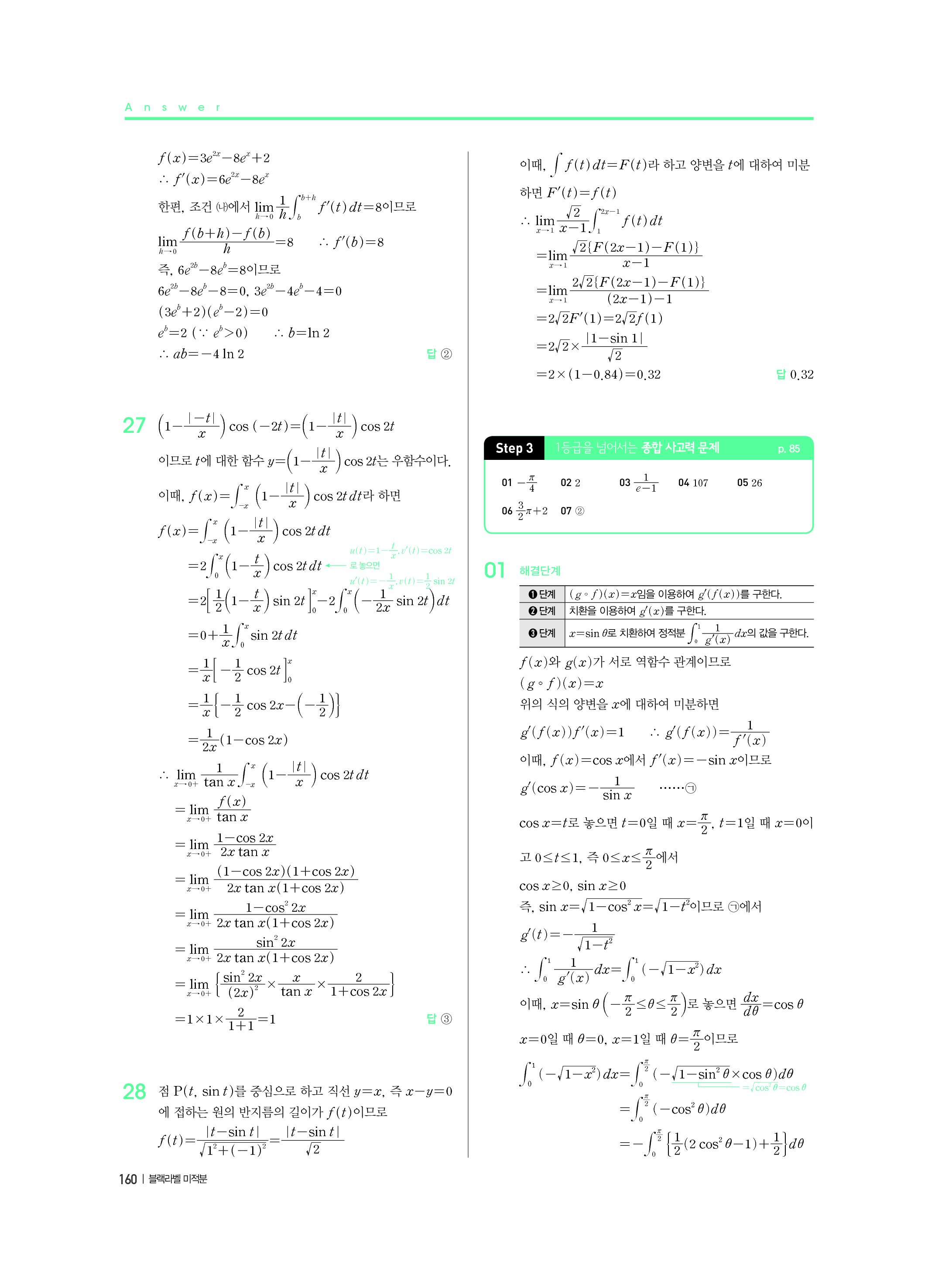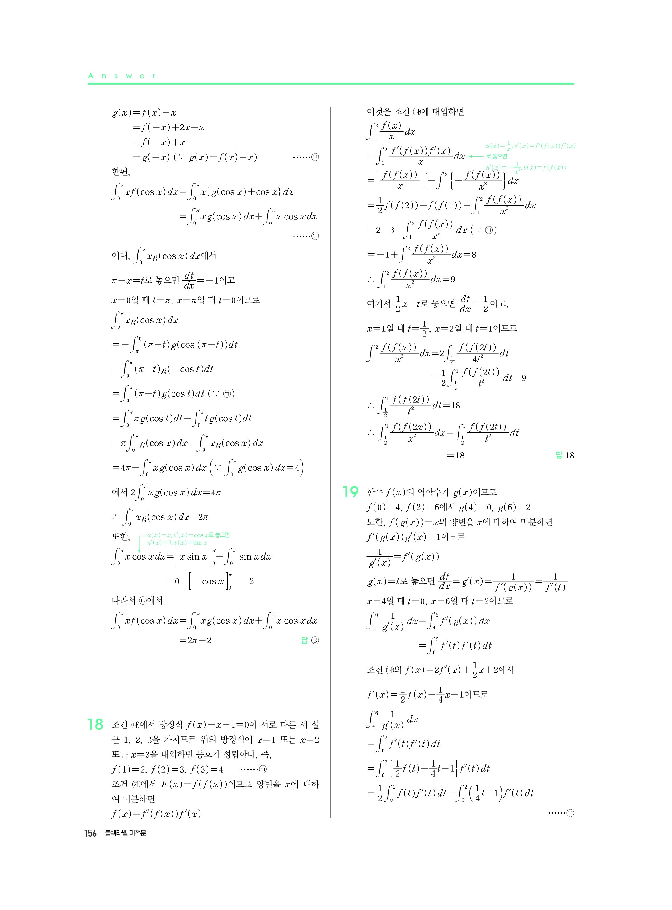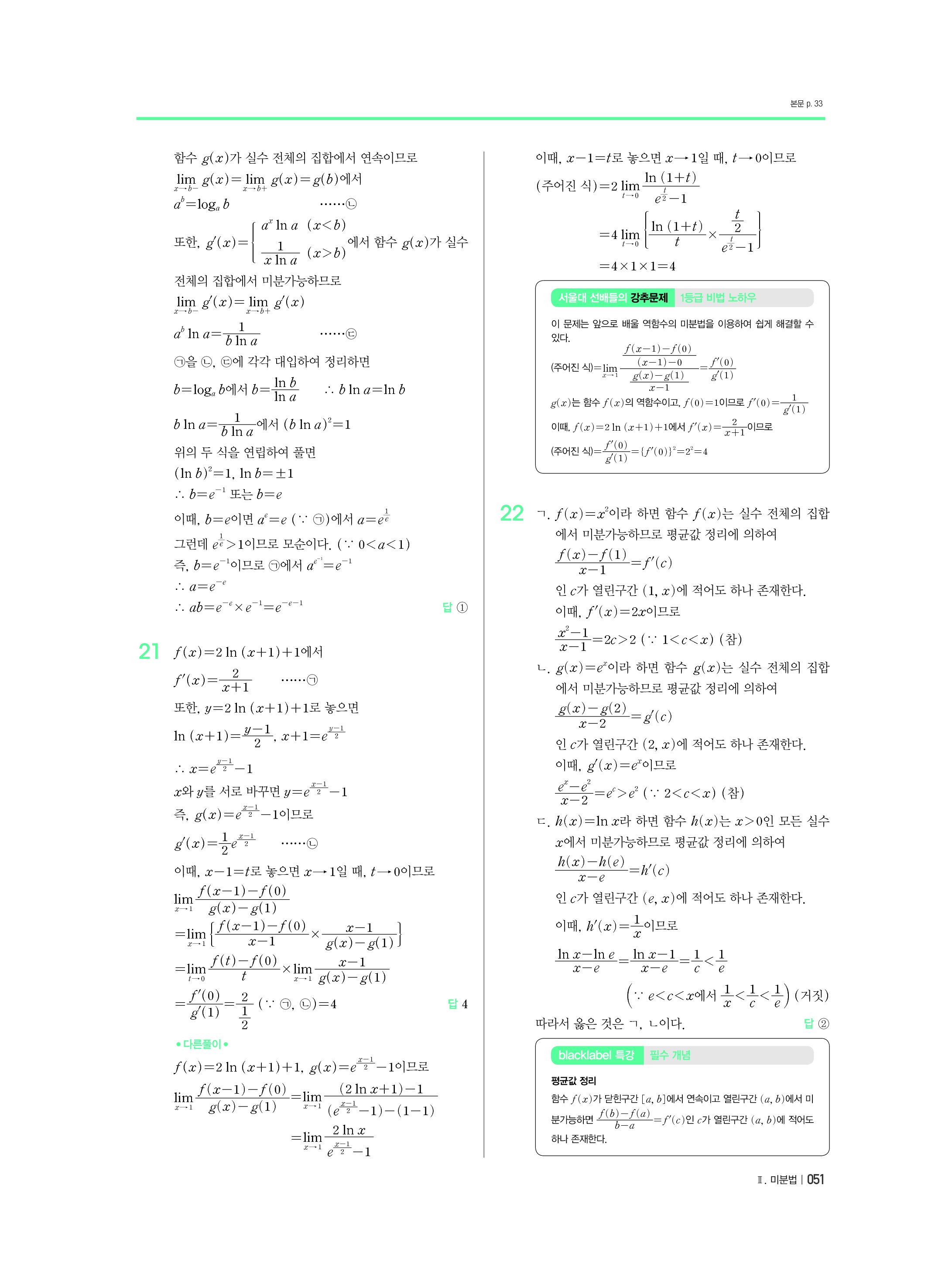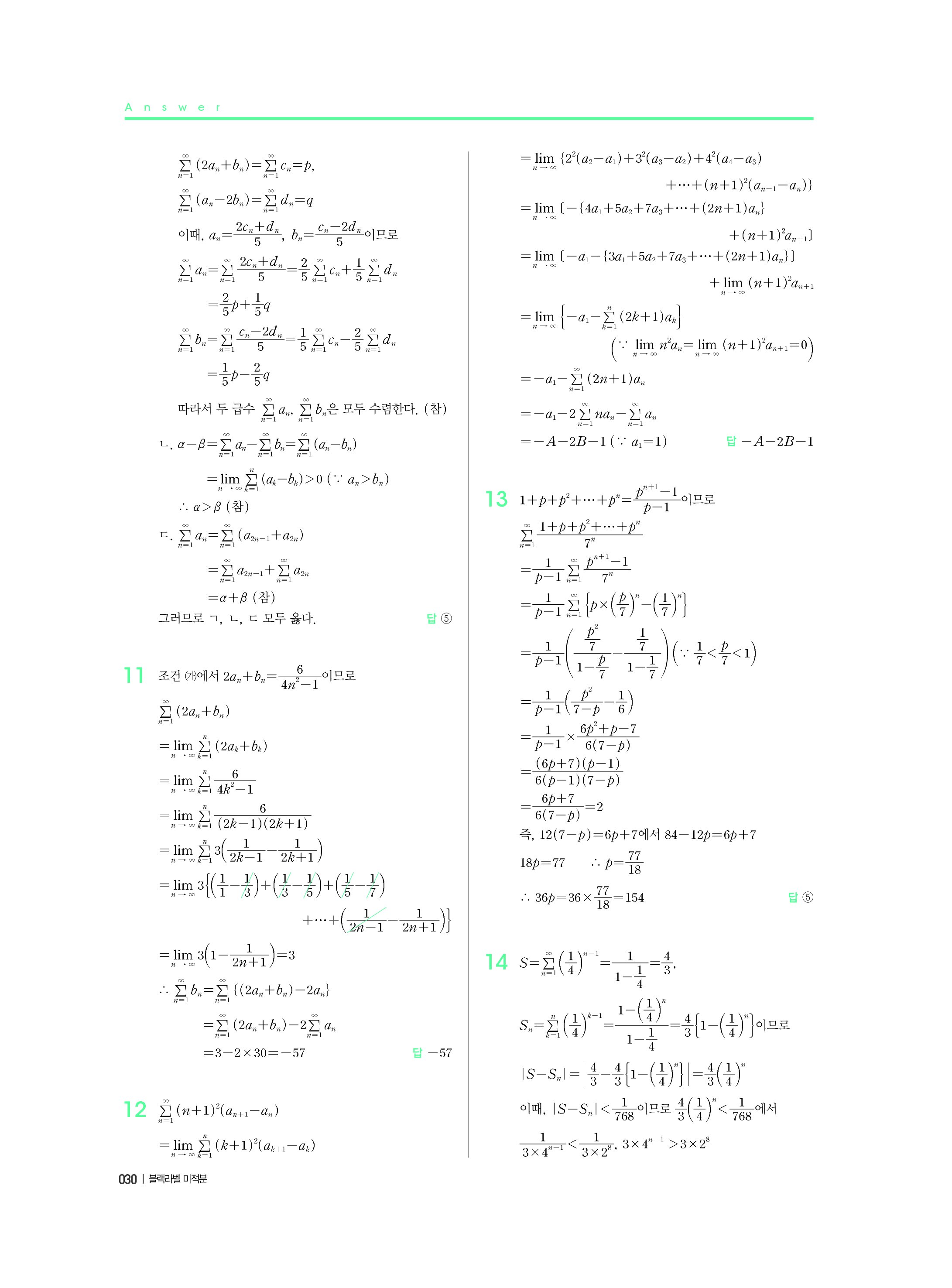 블랙라벨 미적분 답지 해설 사진답지 빠른답지 모바일최적화