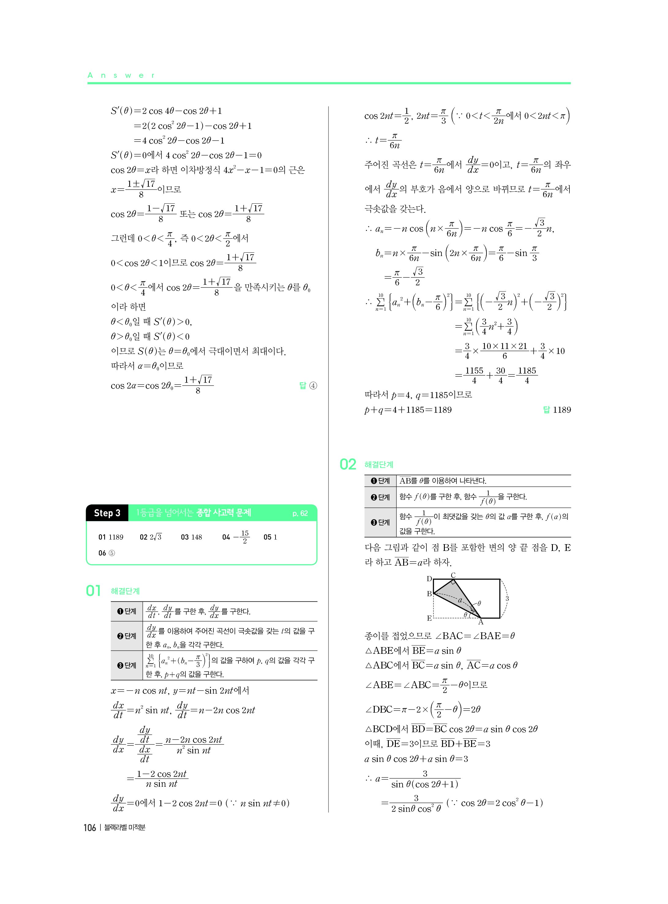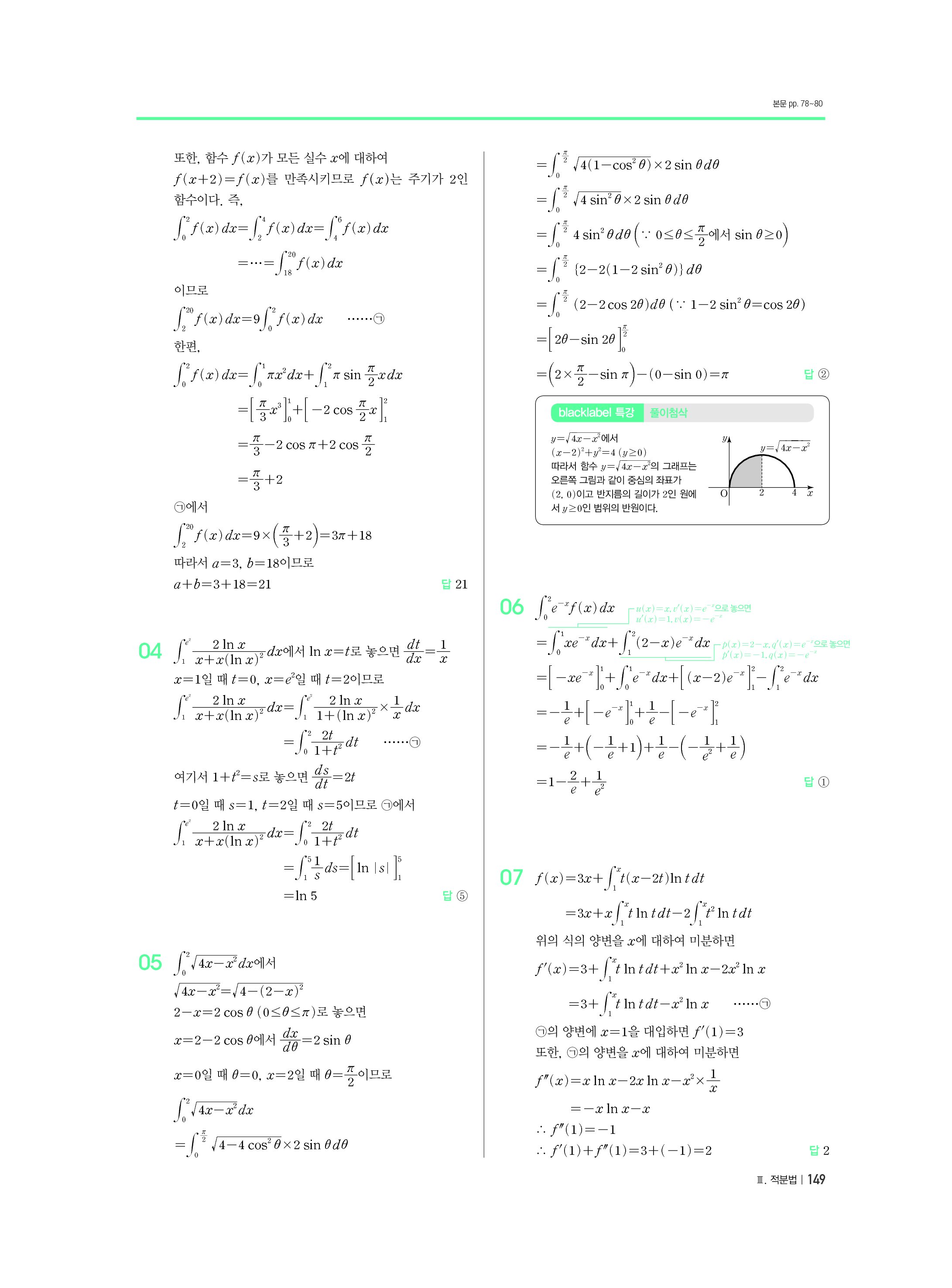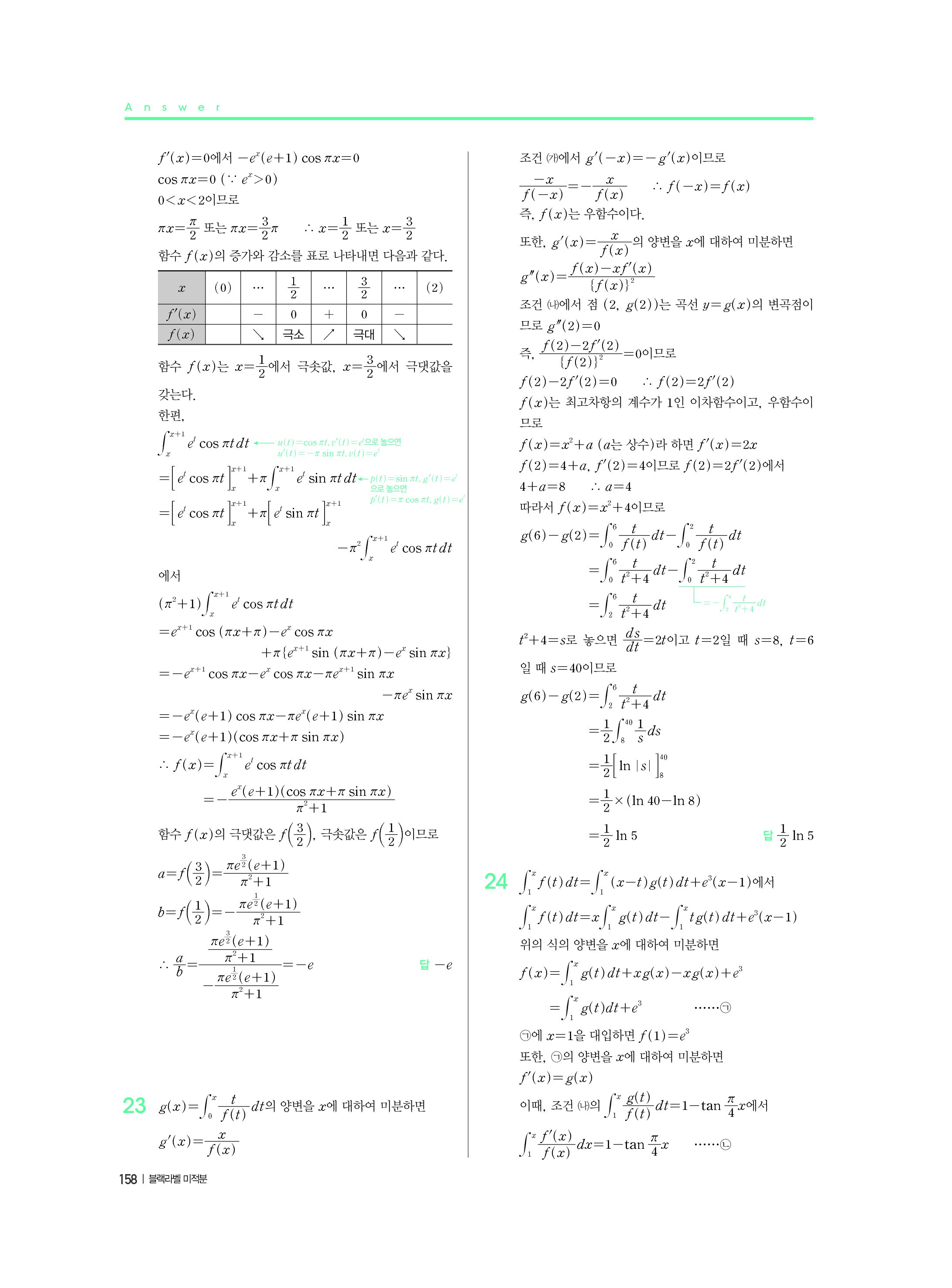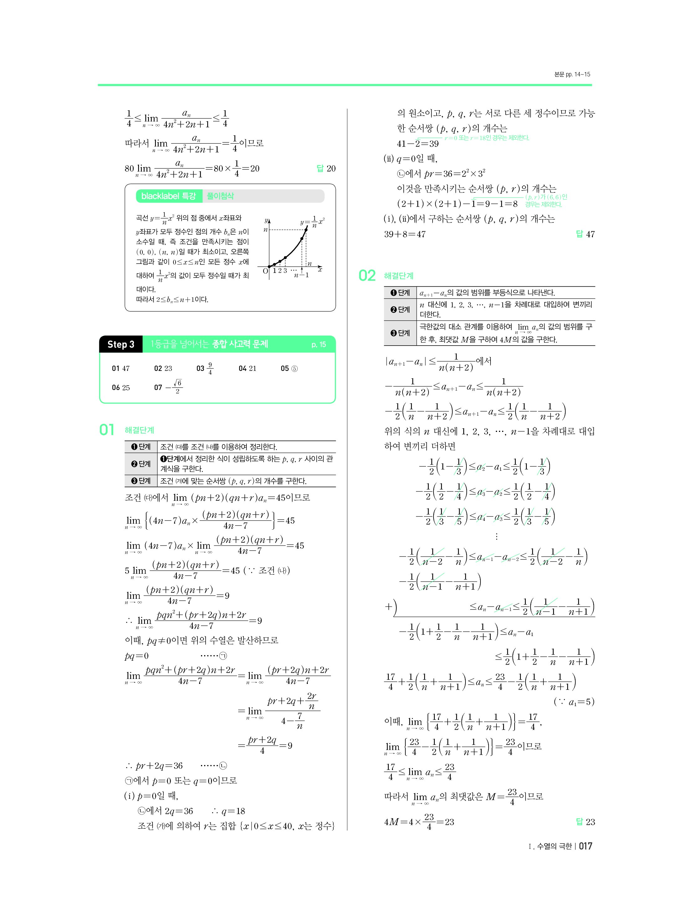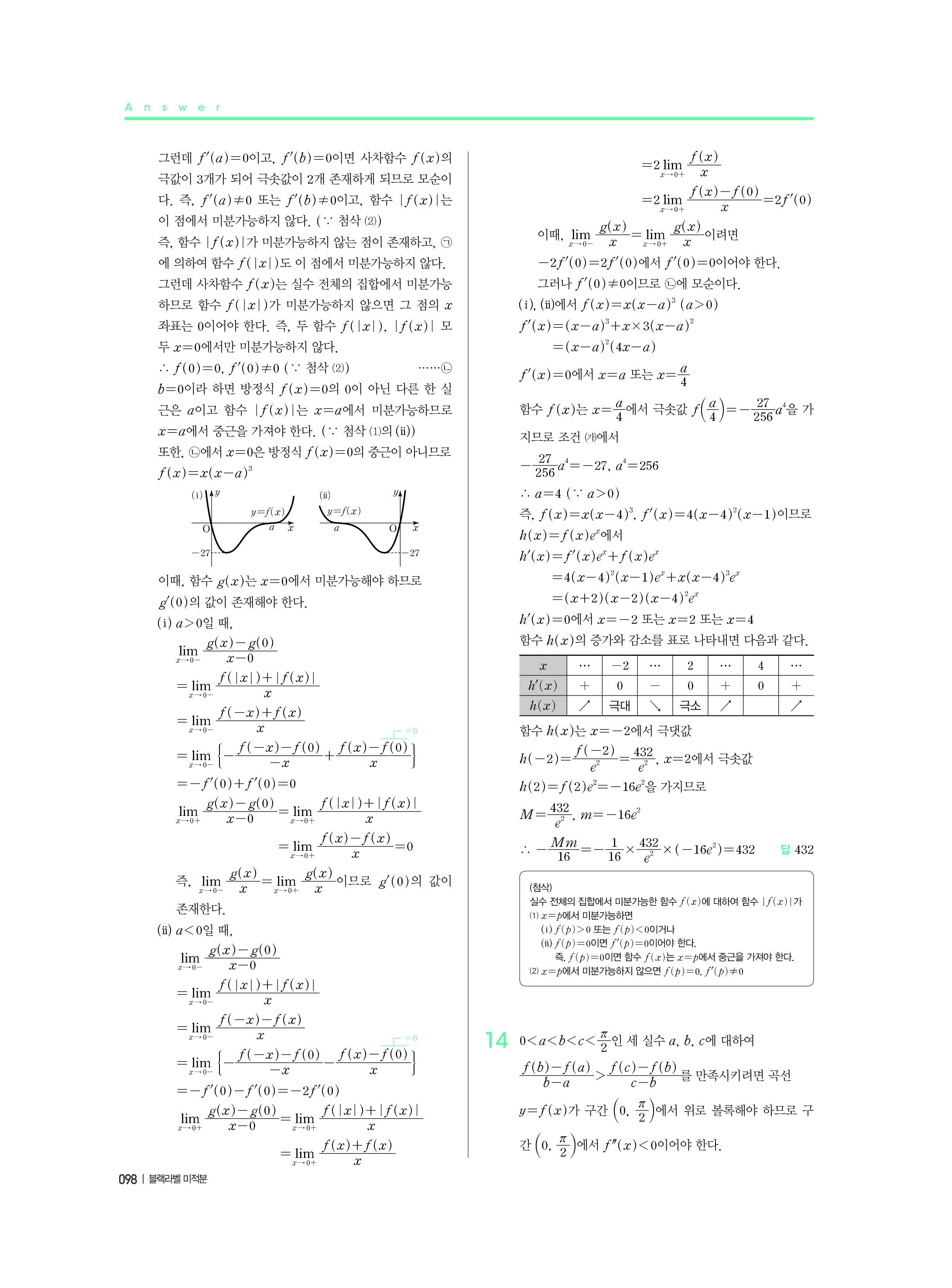 블랙라벨 미적분 답지 해설 사진답지 빠른답지 모바일최적화