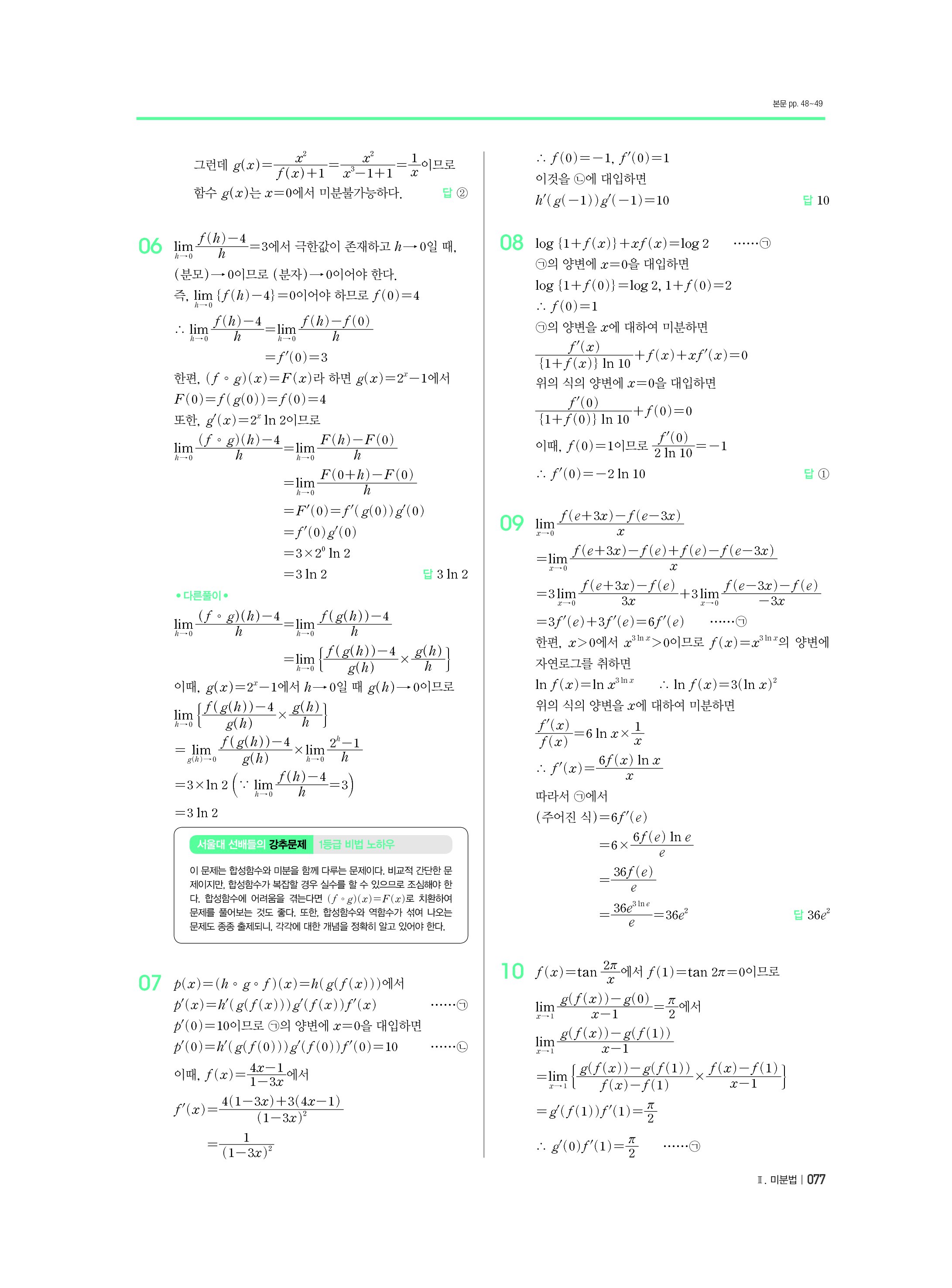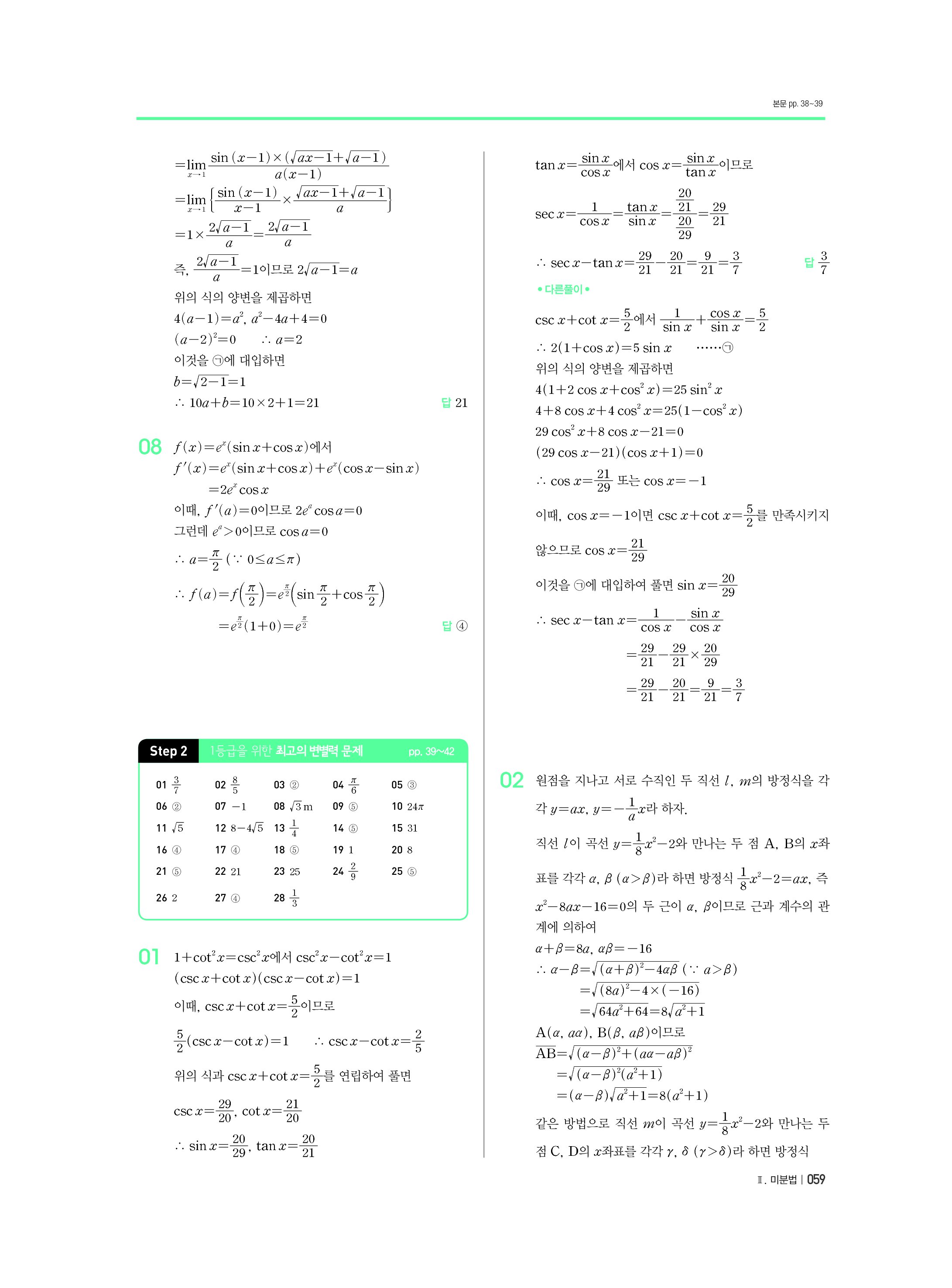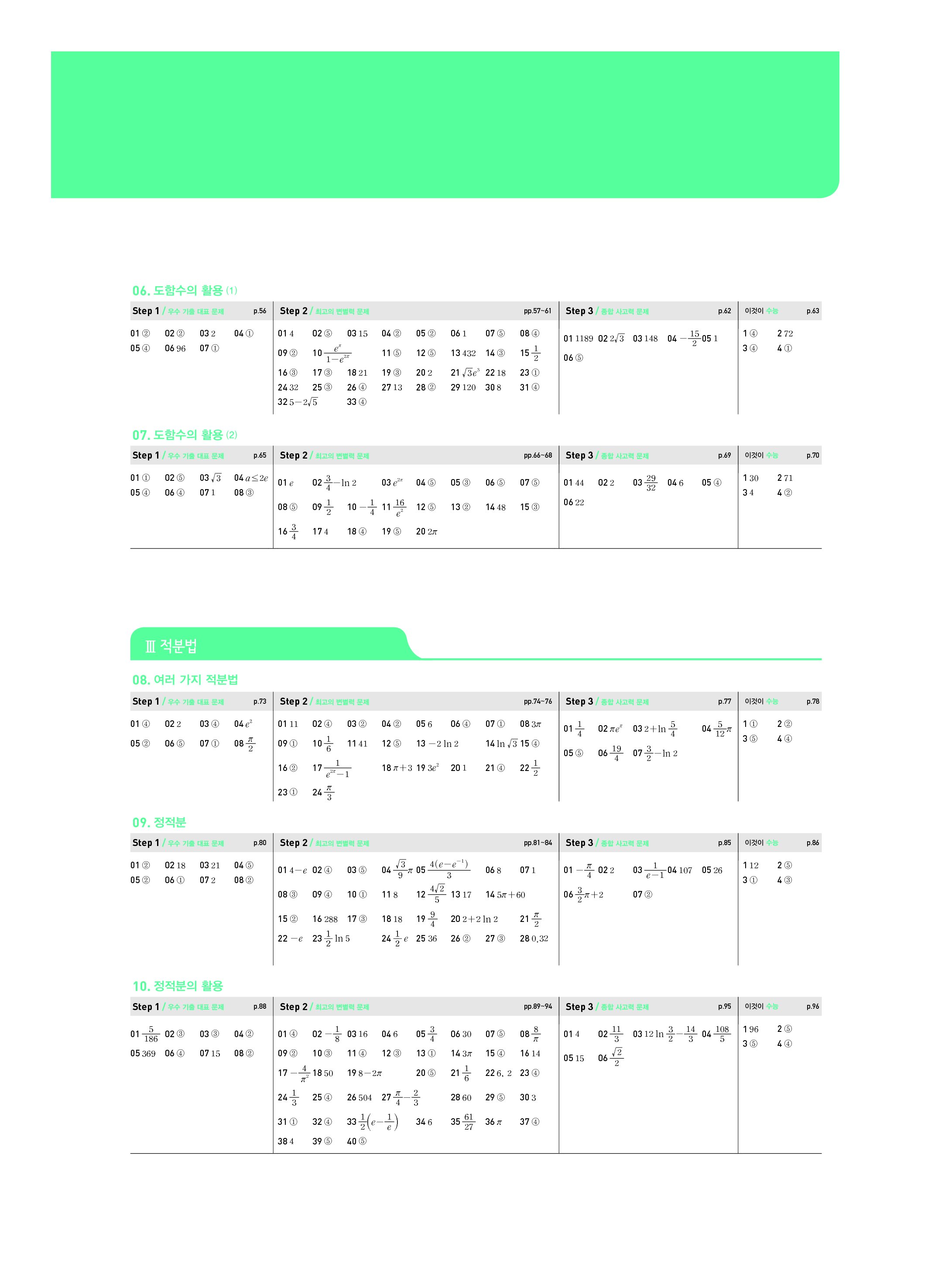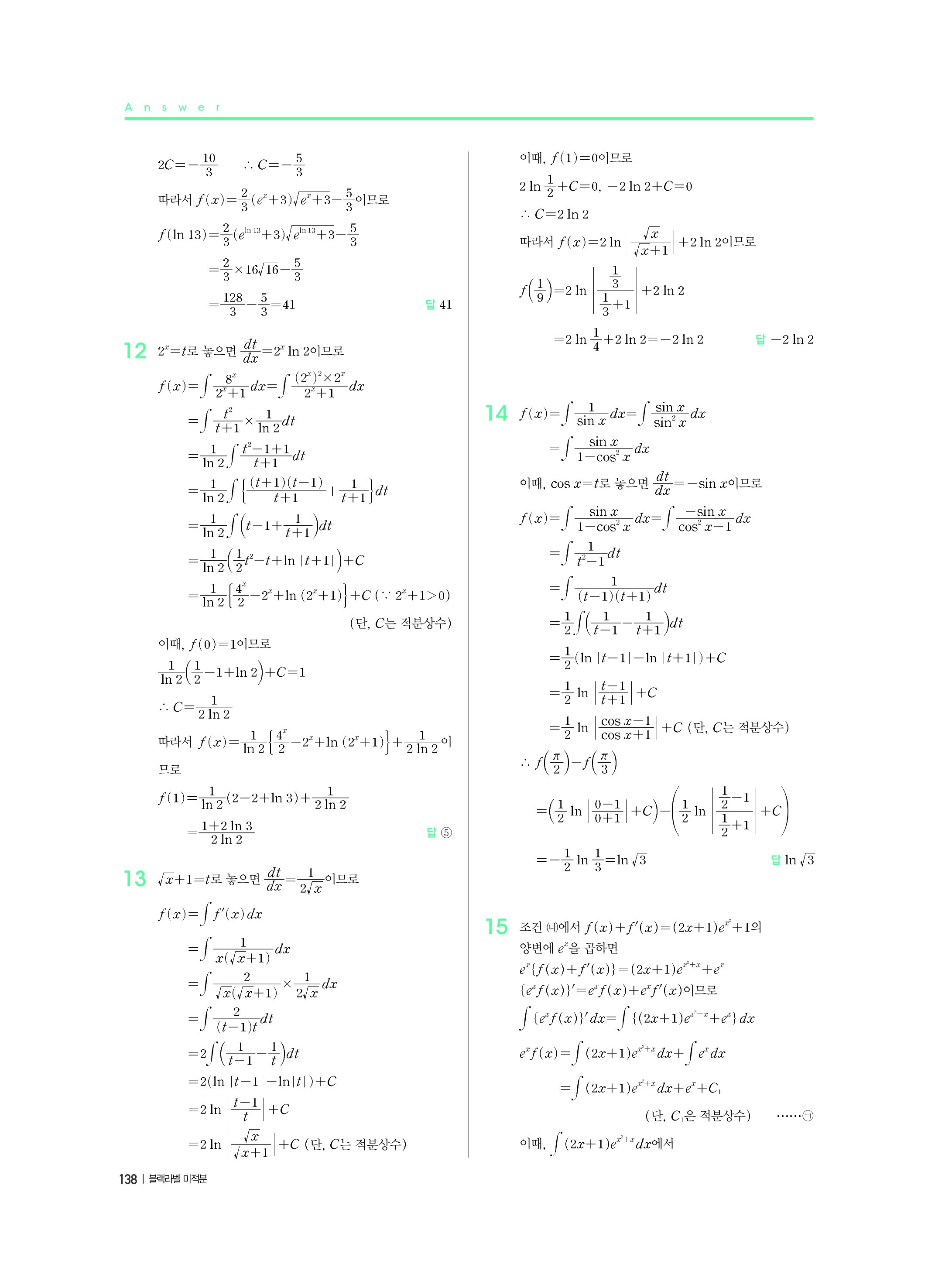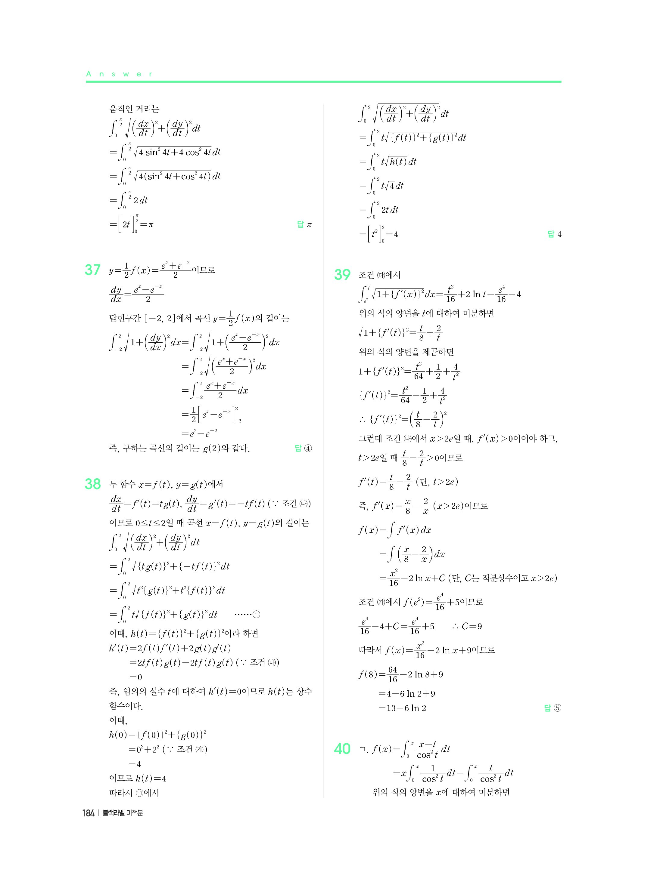 블랙라벨 미적분 답지 해설 사진답지 빠른답지 모바일최적화