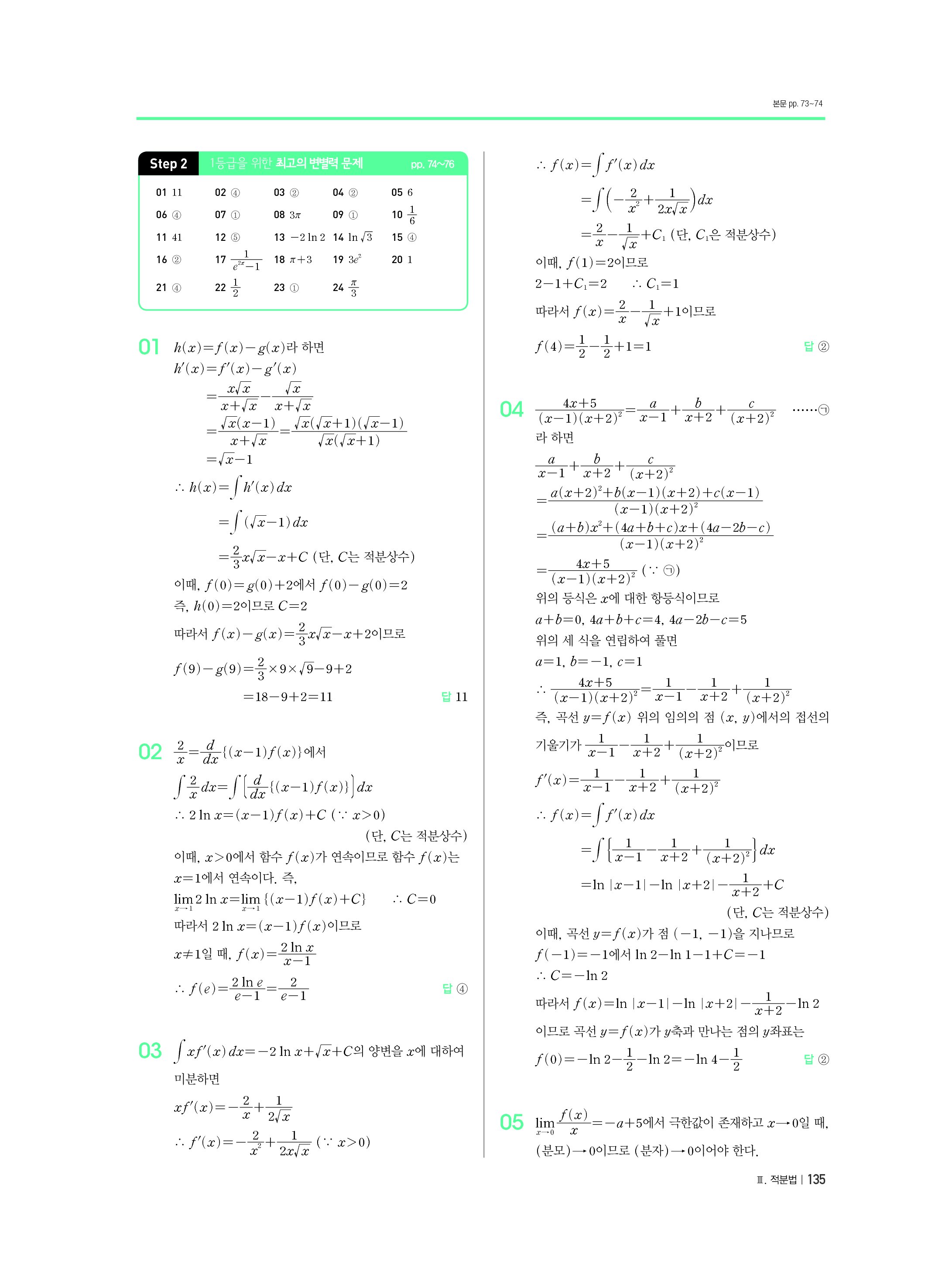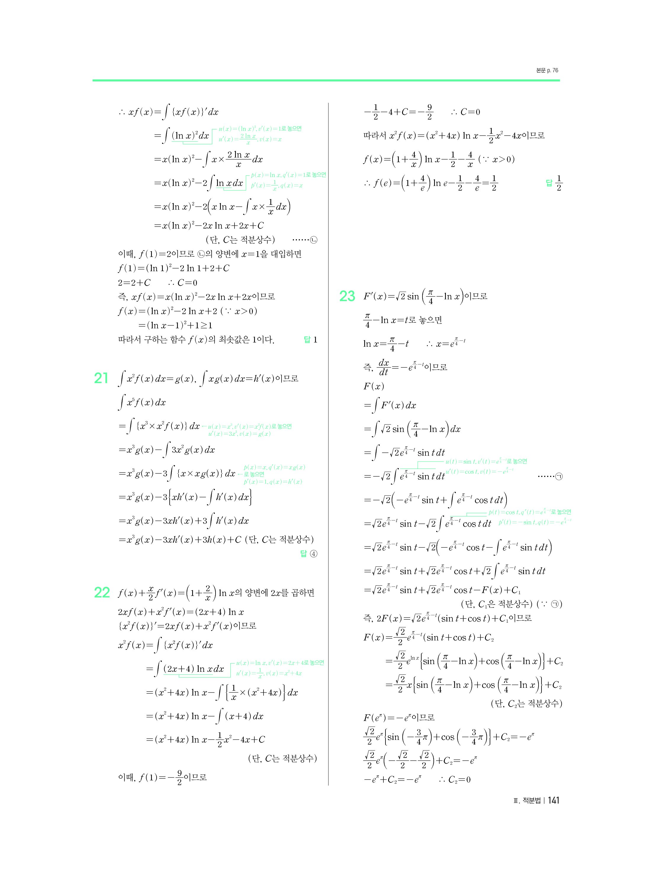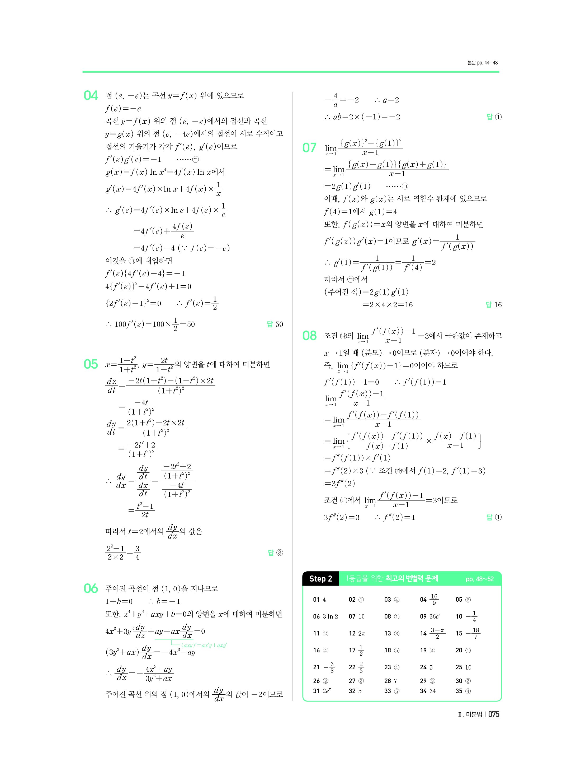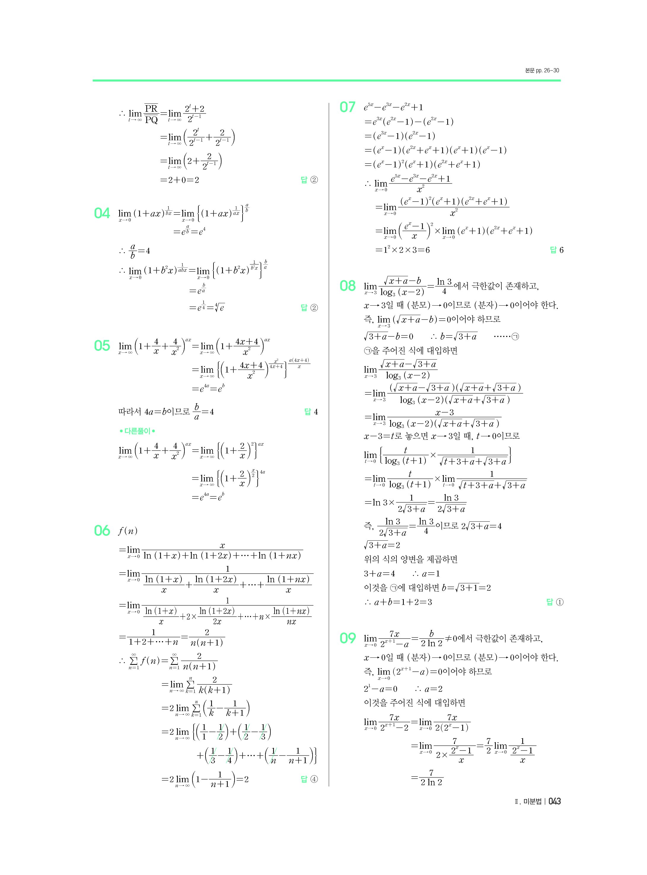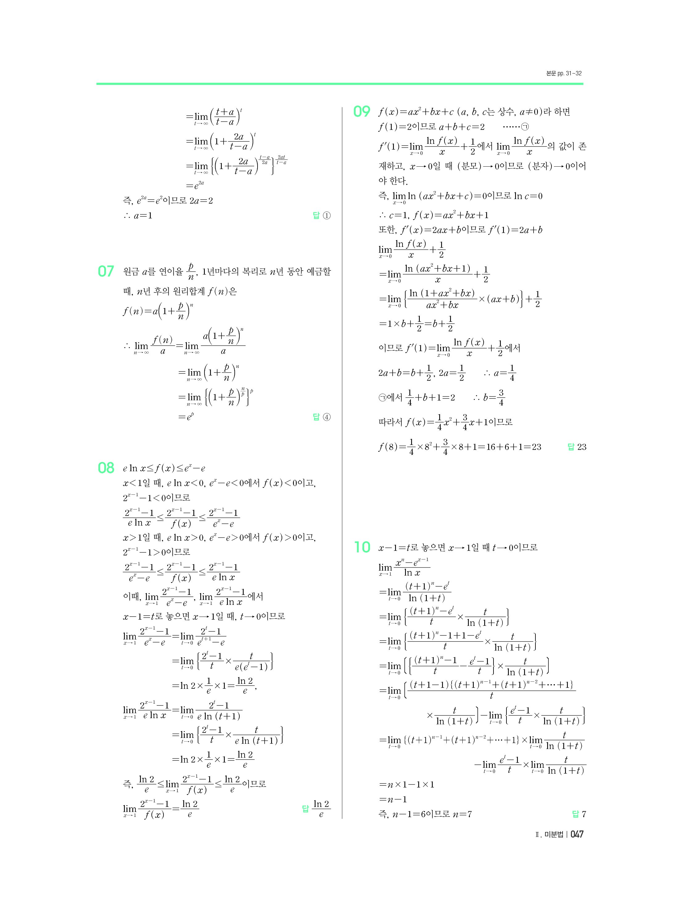 블랙라벨 미적분 답지 해설 사진답지 빠른답지 모바일최적화