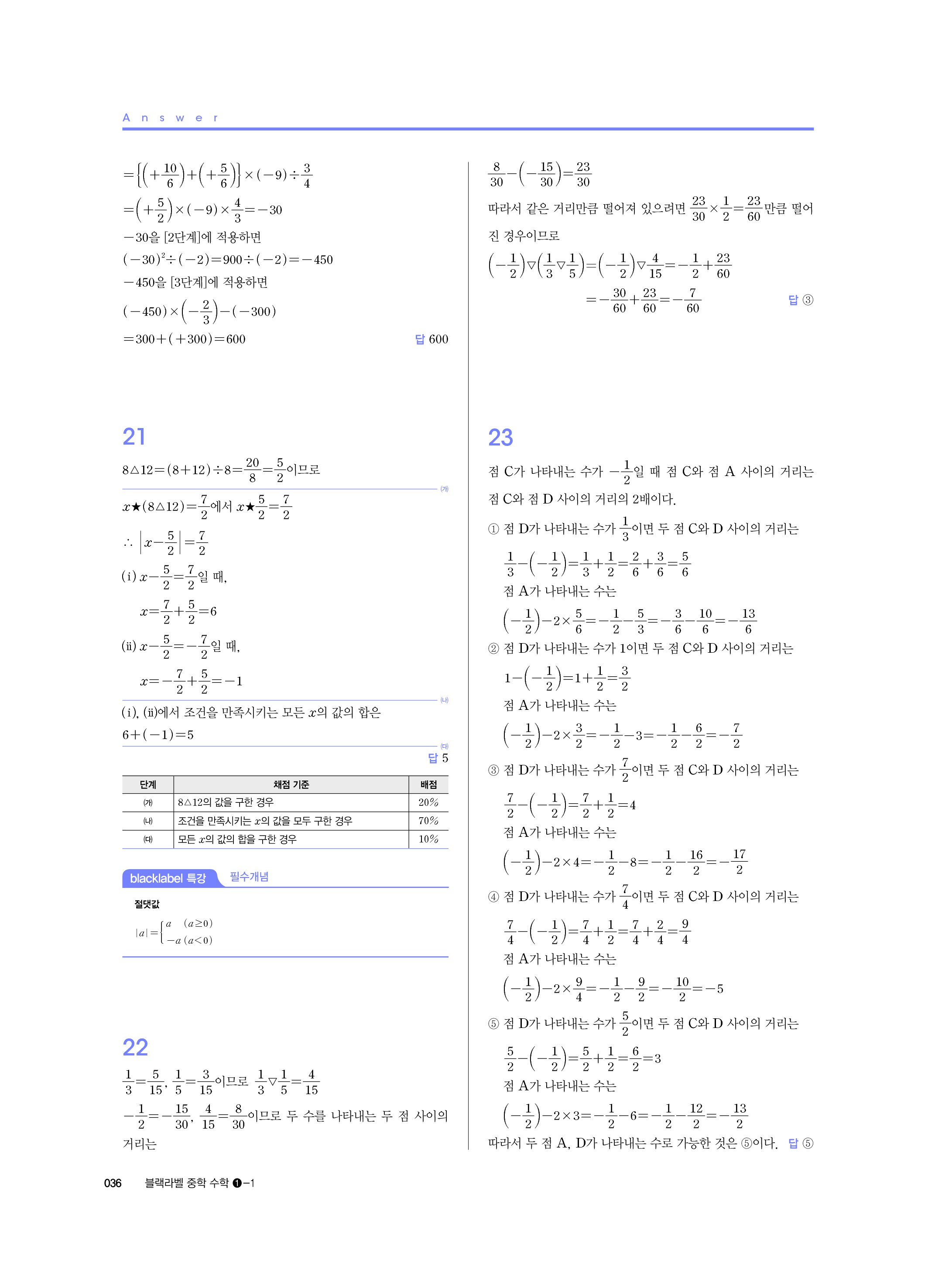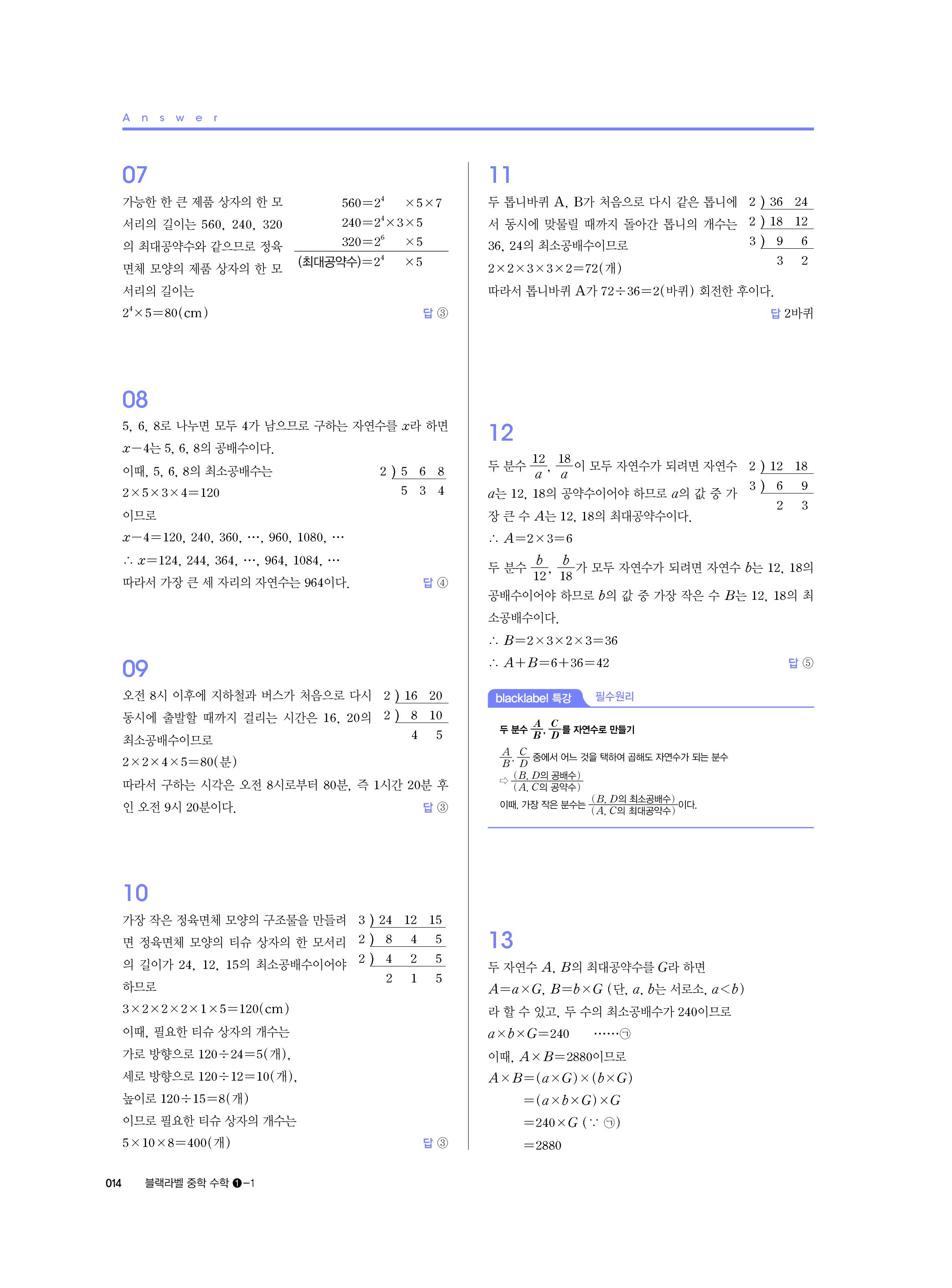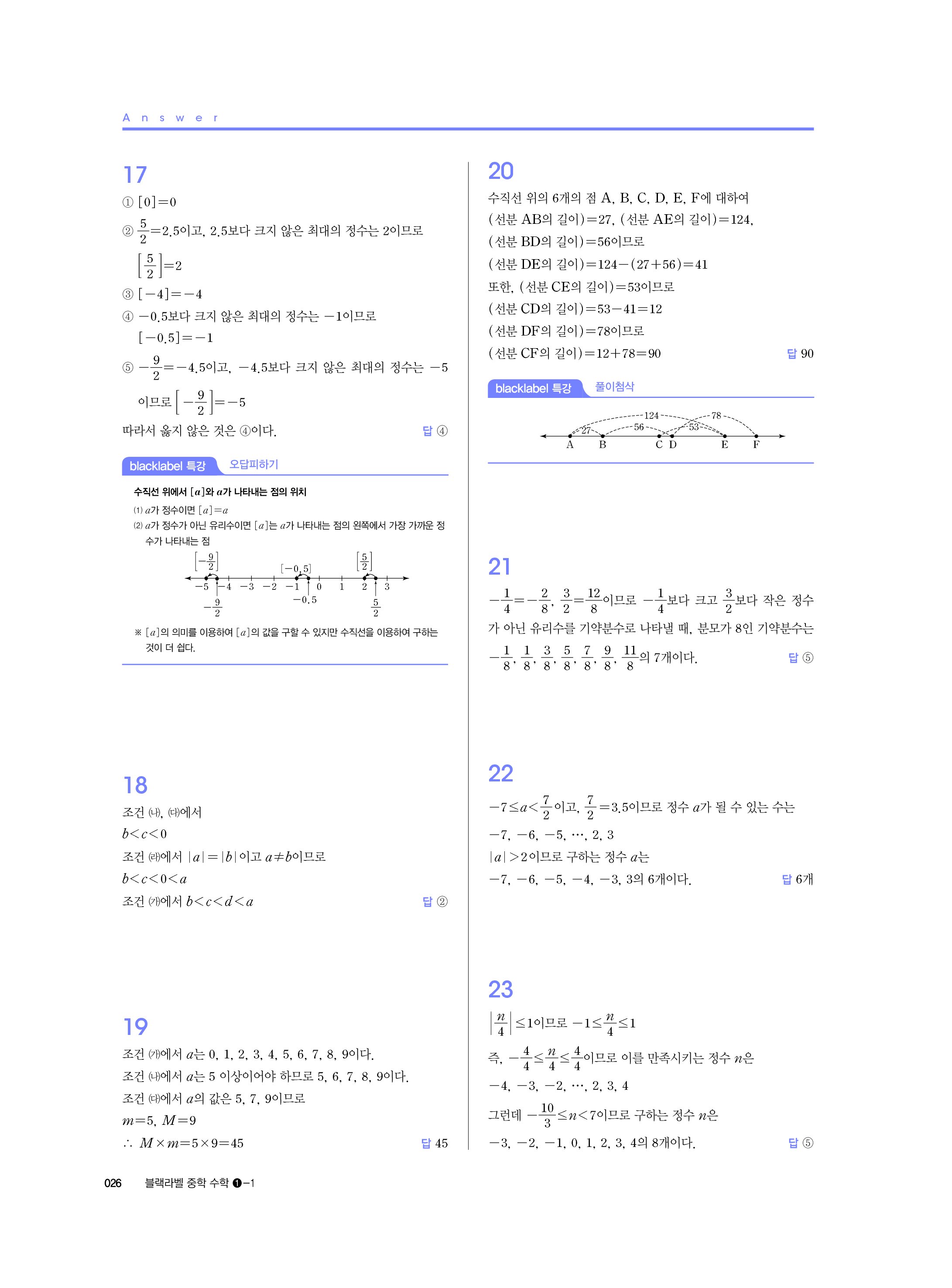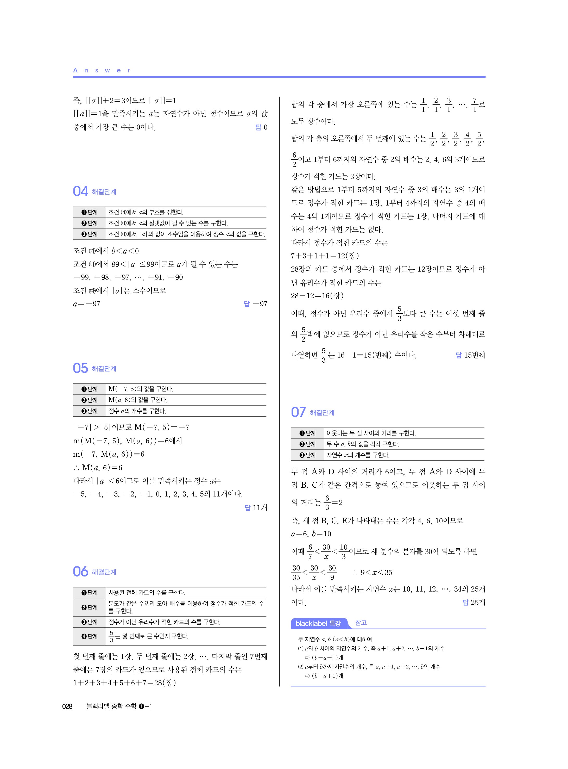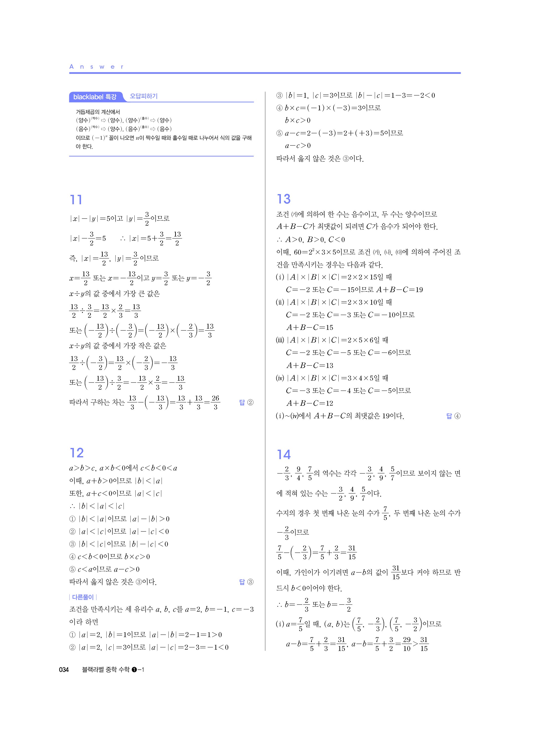 블랙라벨 중학수학 1-1 답지 해설 사진답지 빠른답지 모바일최적화 중1상
