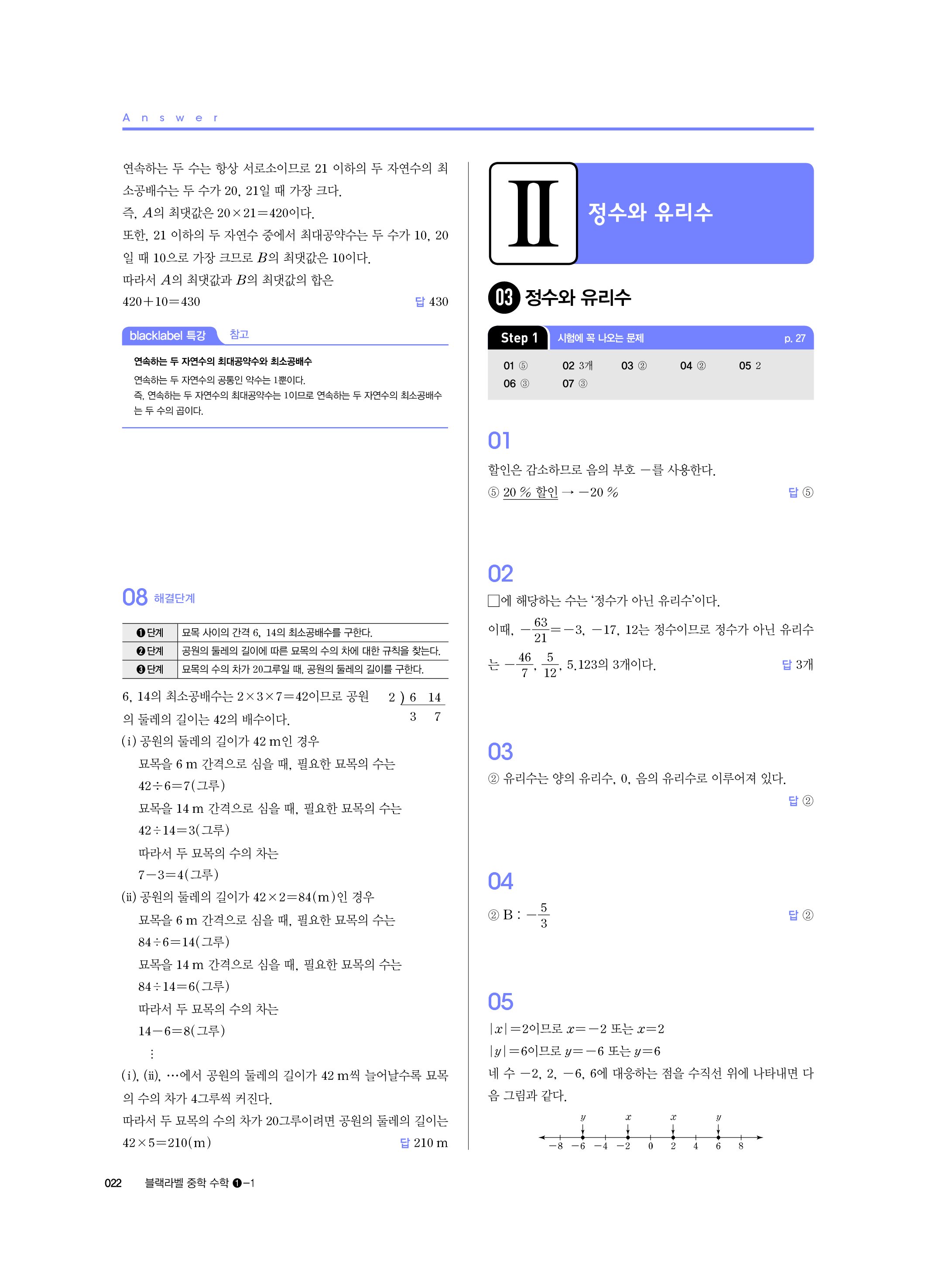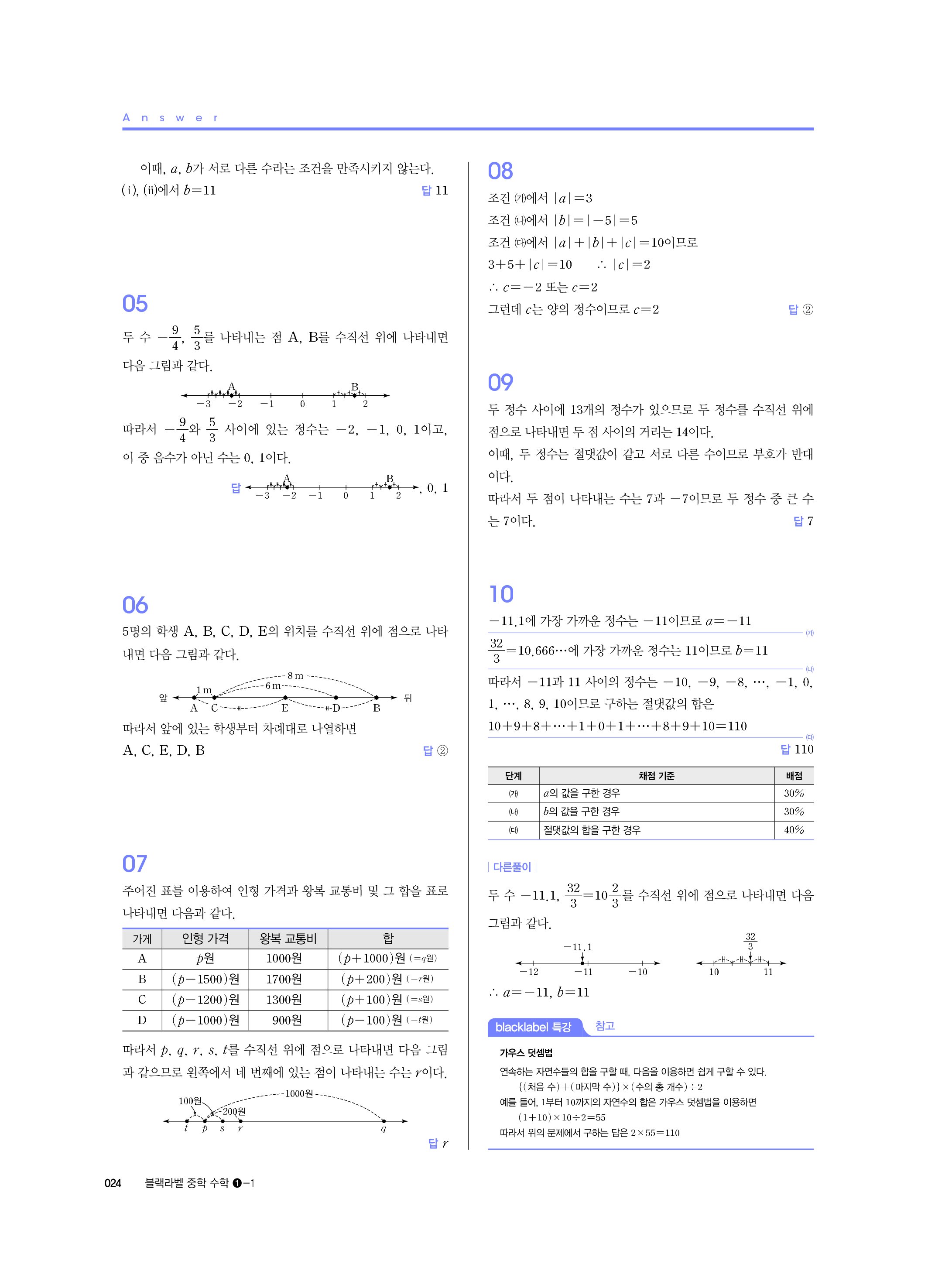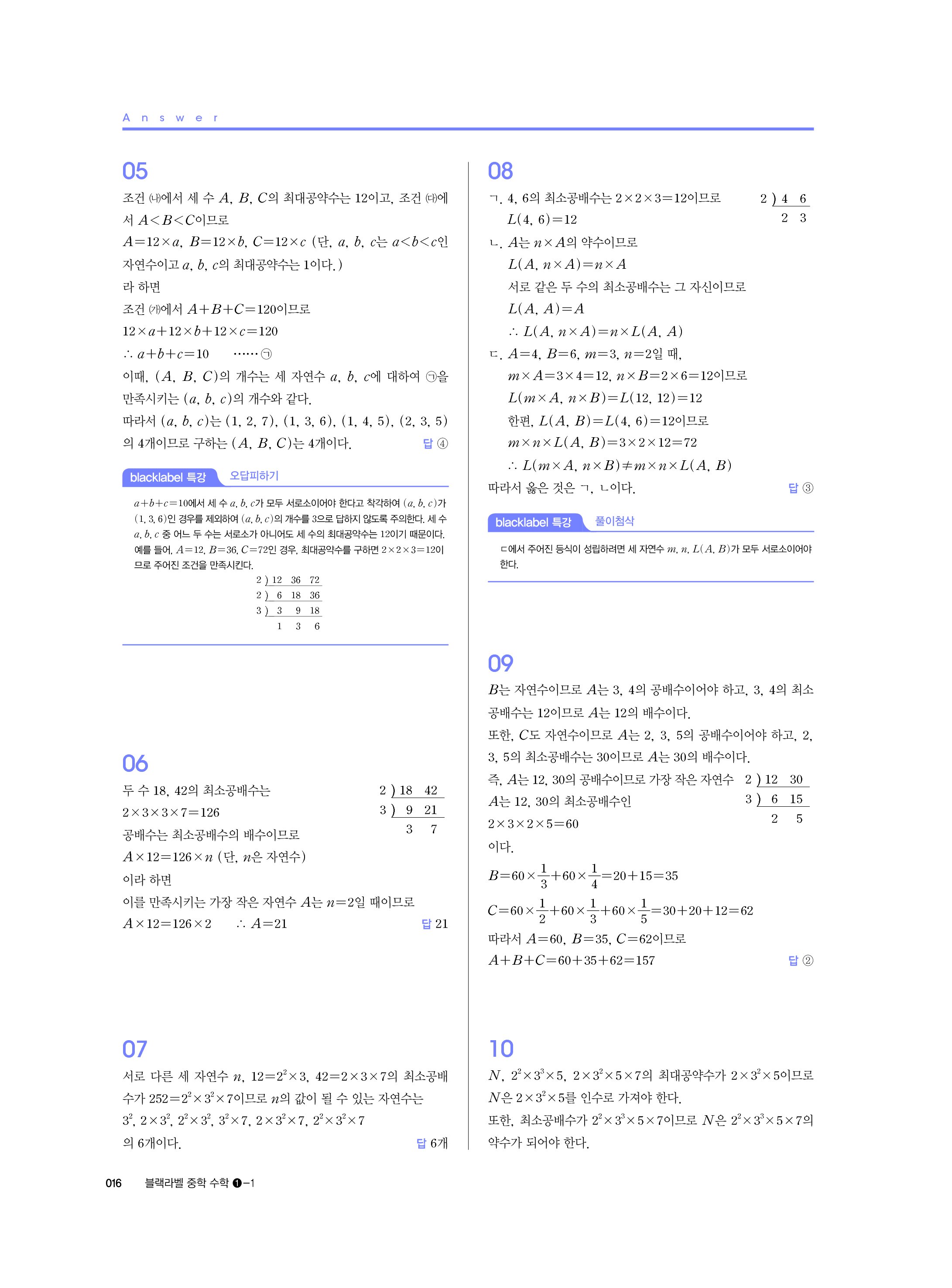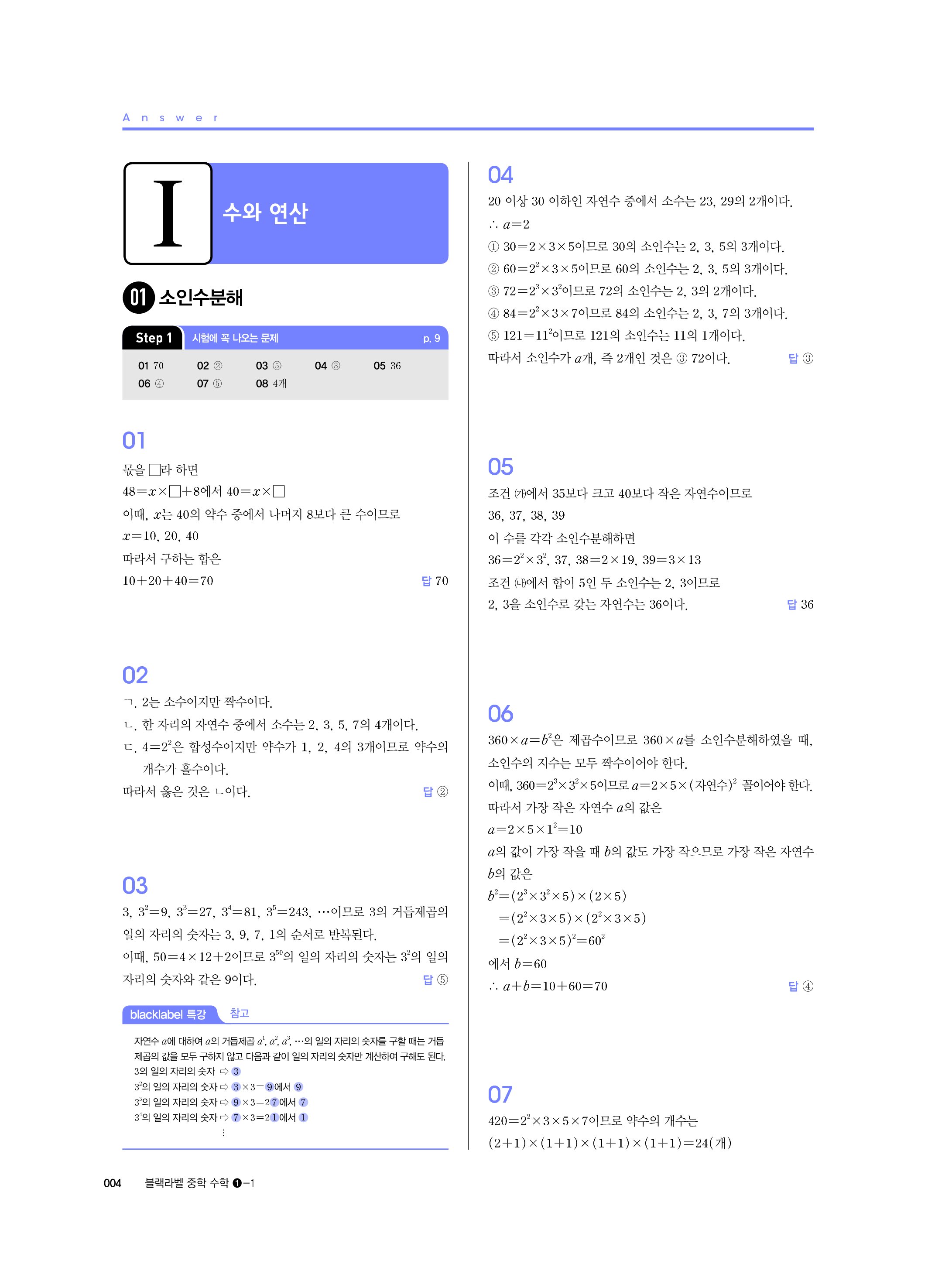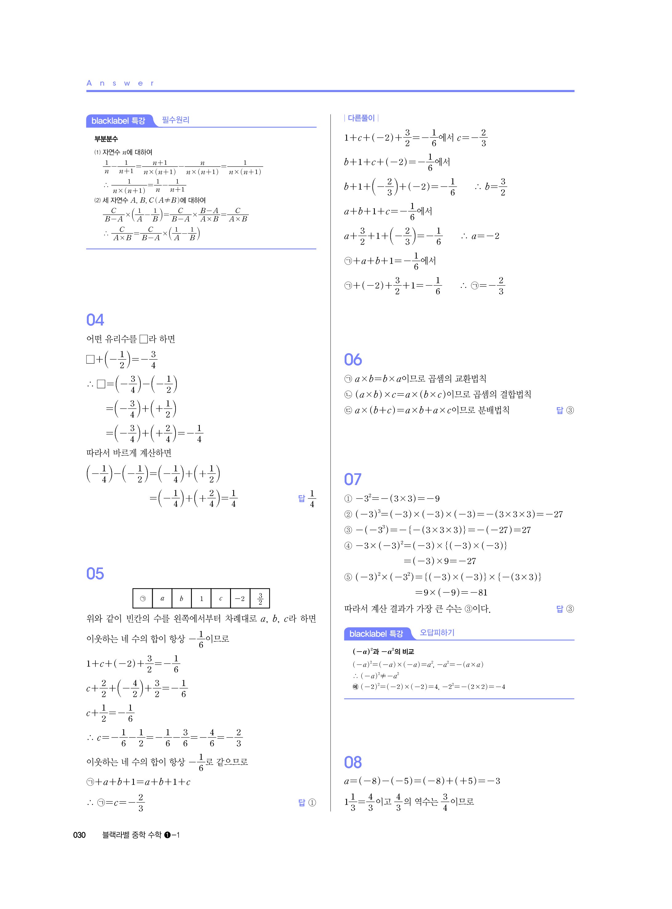 블랙라벨 중학수학 1-1 답지 해설 사진답지 빠른답지 모바일최적화 중1상