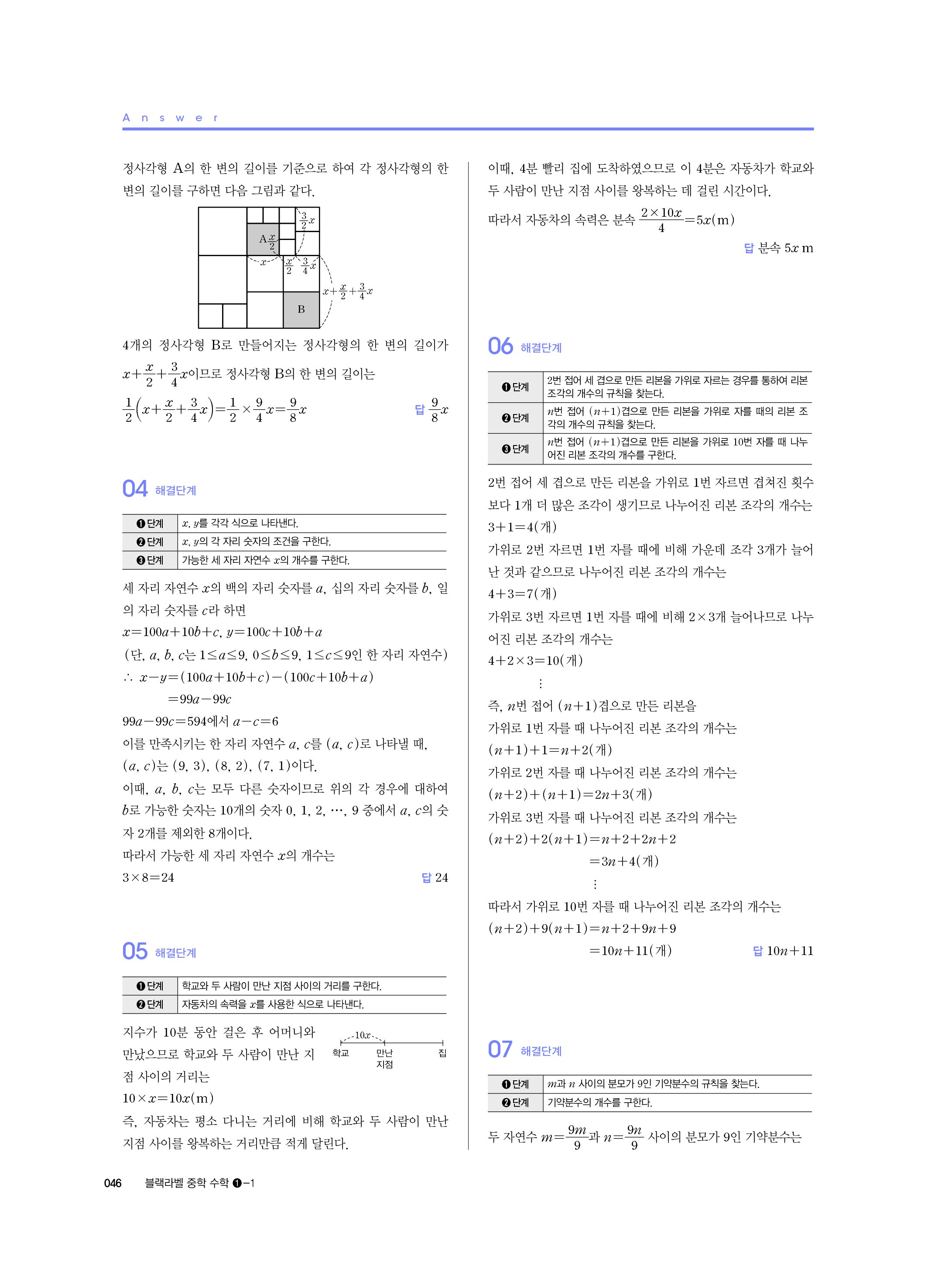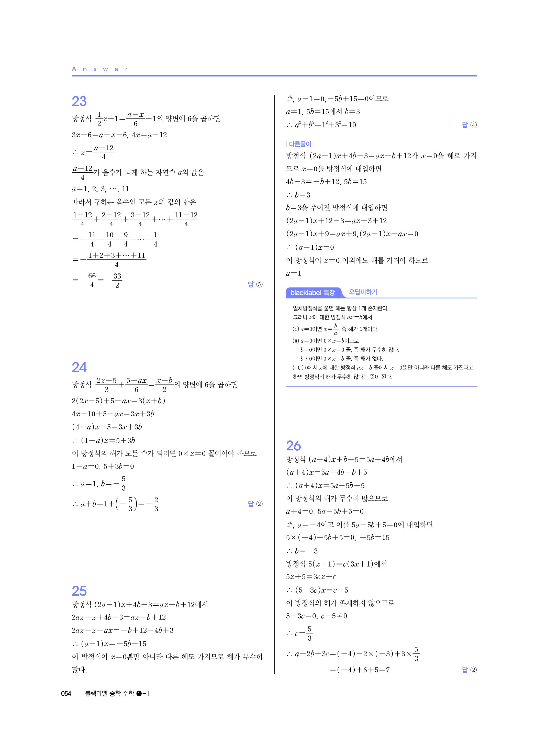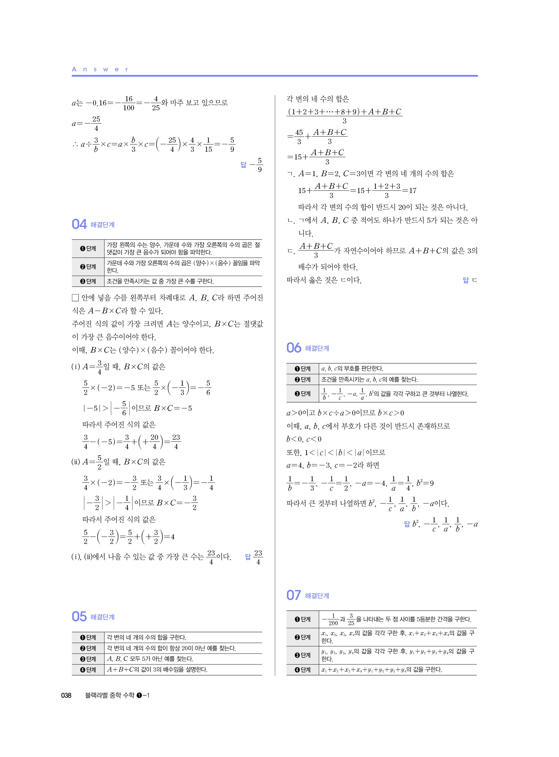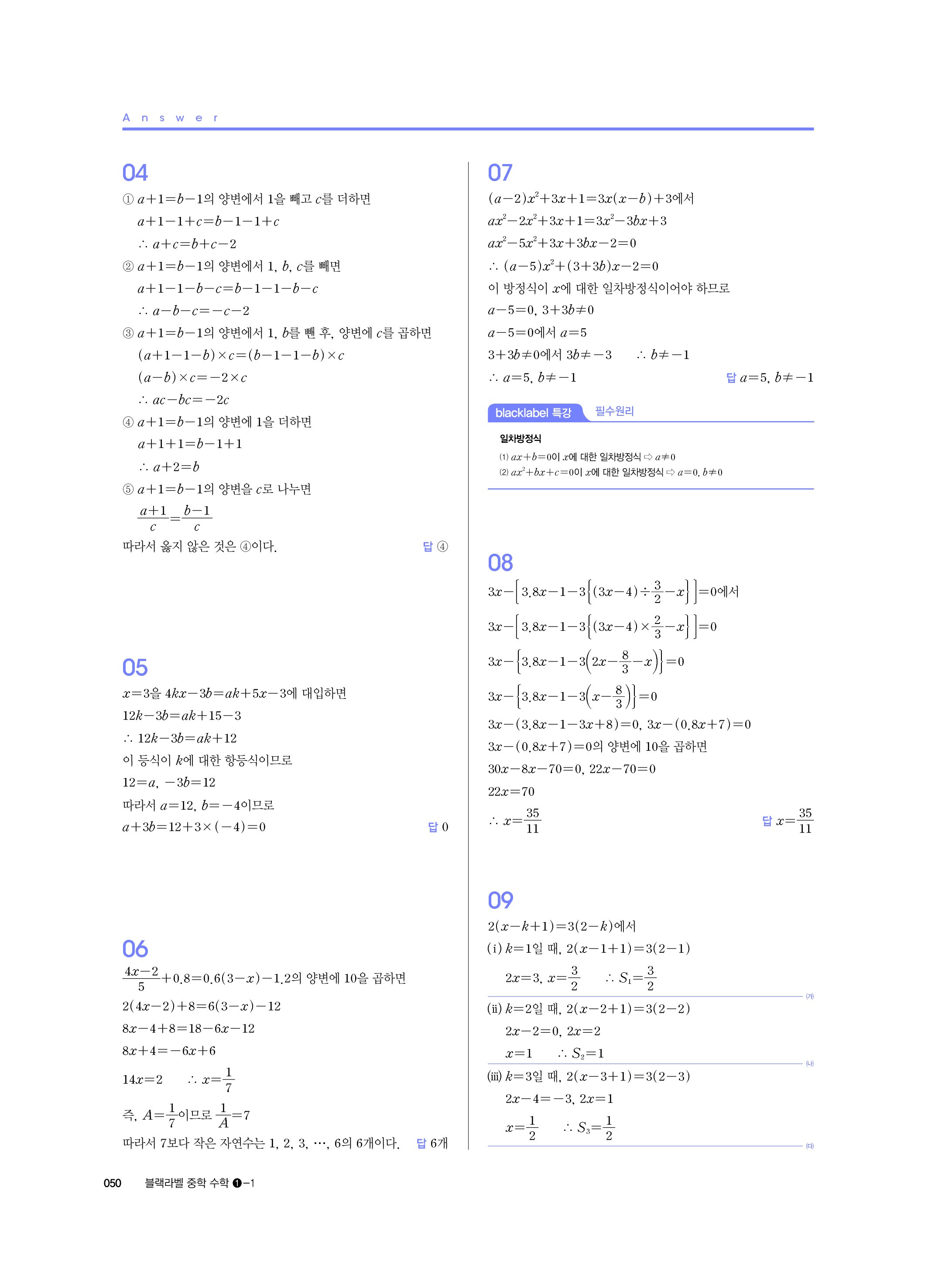 블랙라벨 중학수학 1-1 답지 해설 사진답지 빠른답지 모바일최적화 중1상