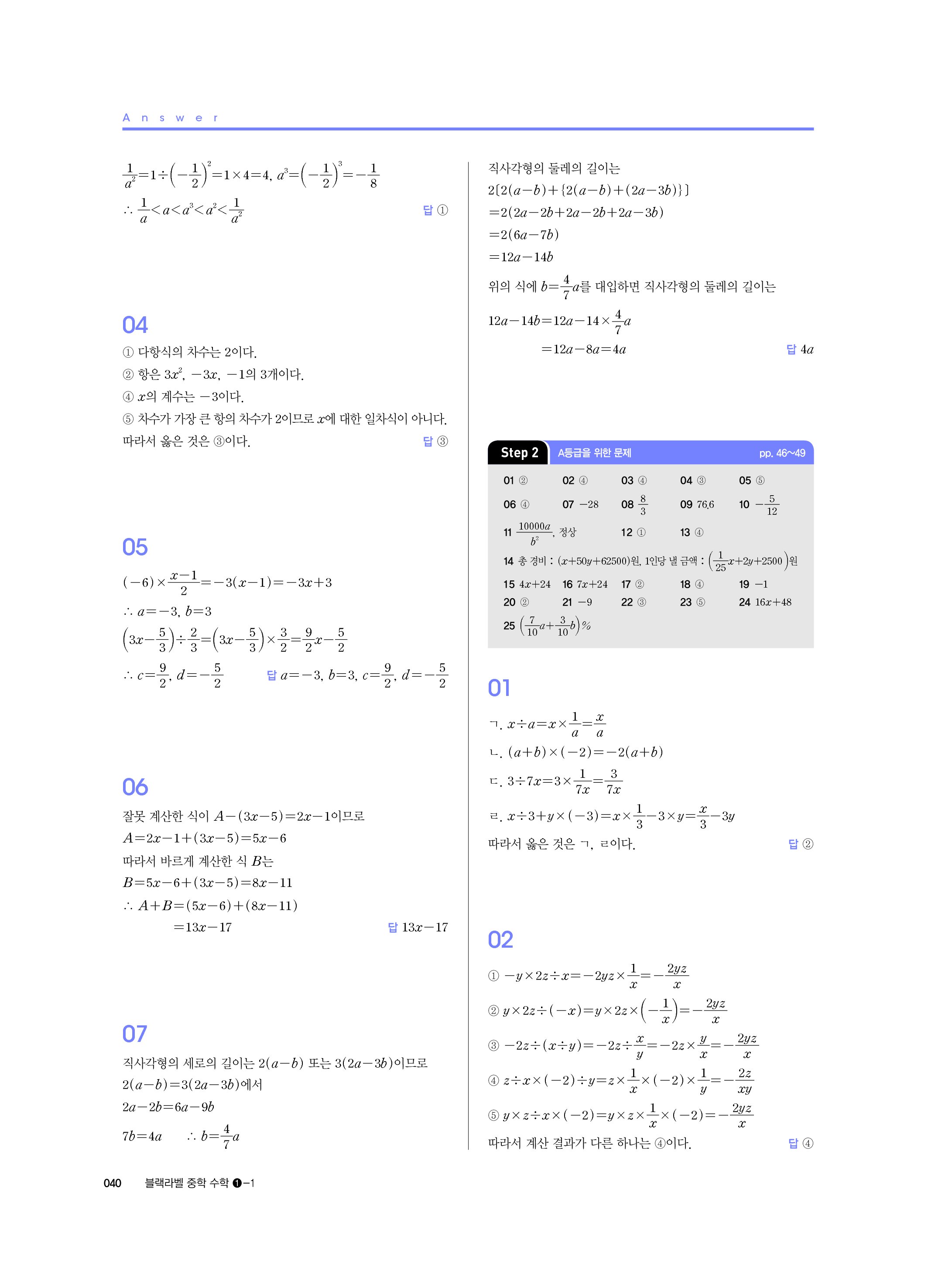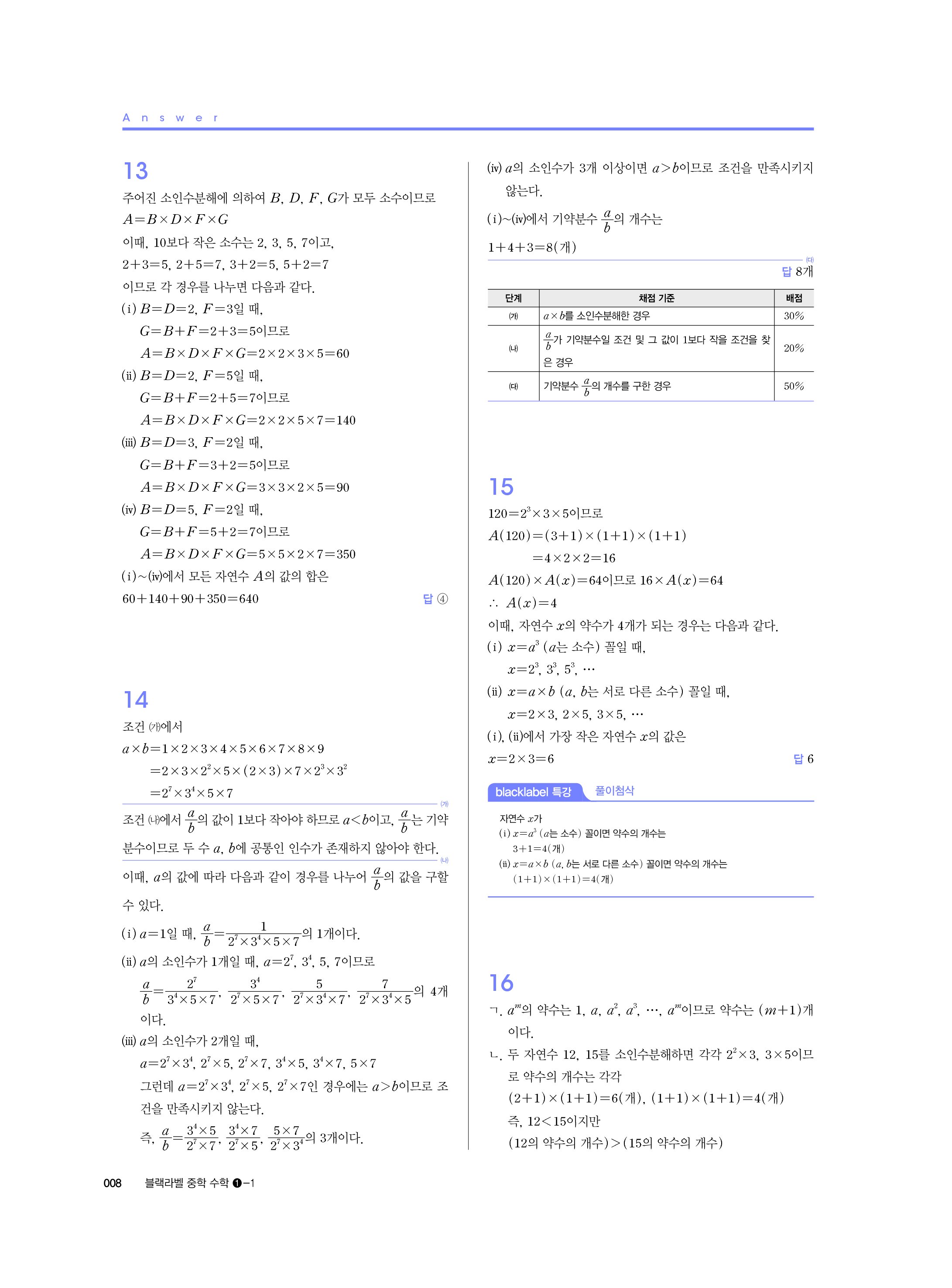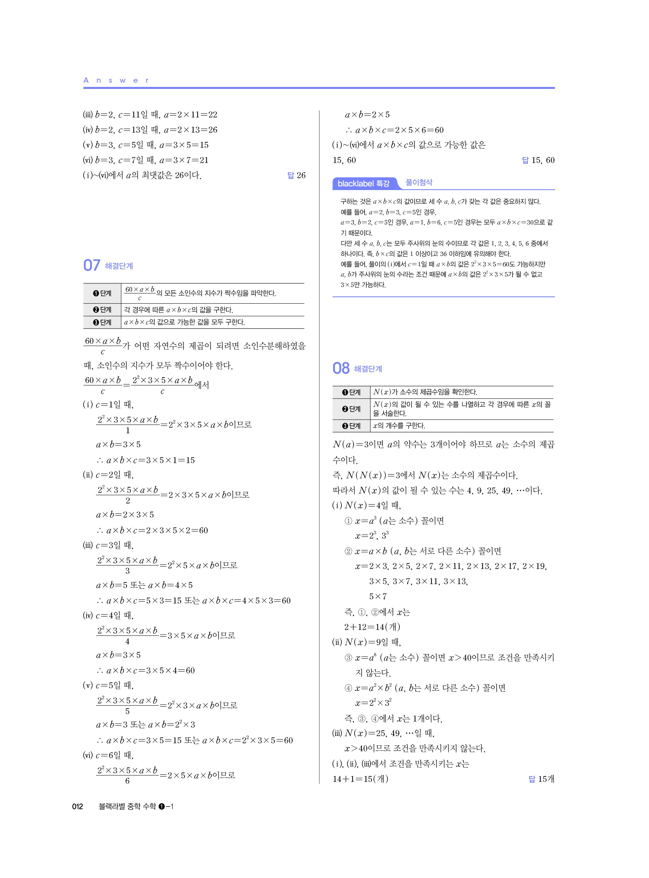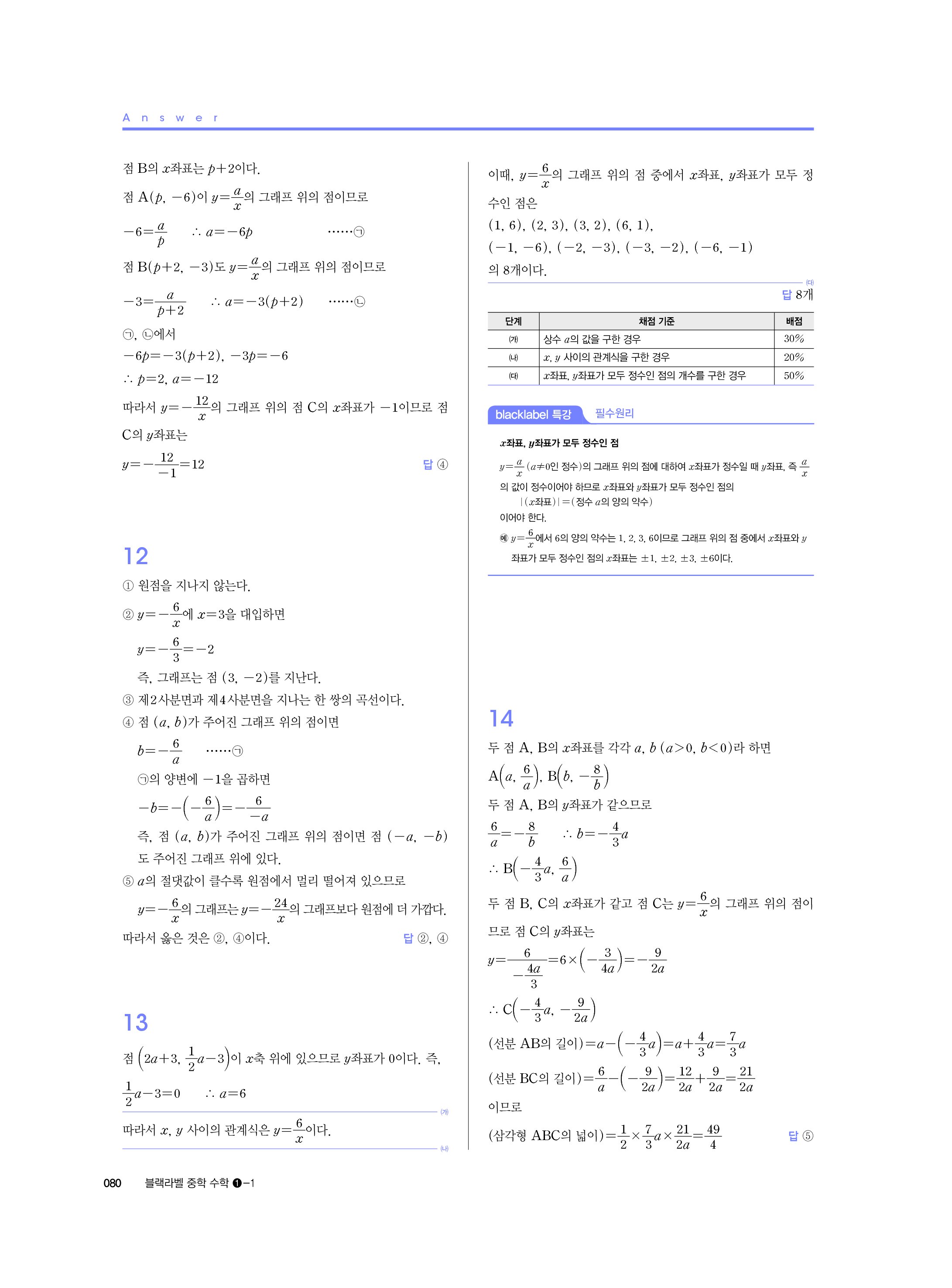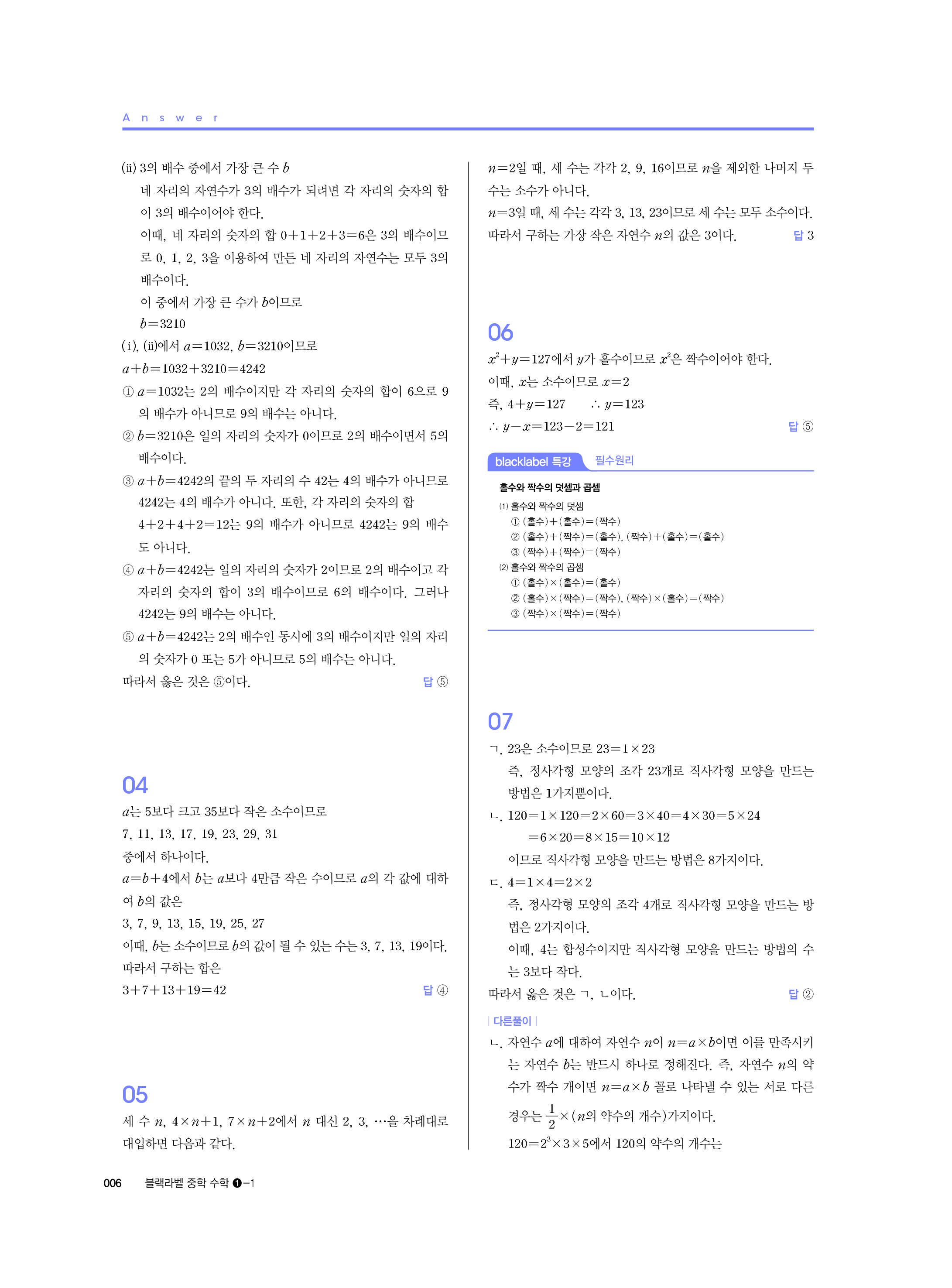 블랙라벨 중학수학 1-1 답지 해설 사진답지 빠른답지 모바일최적화 중1상