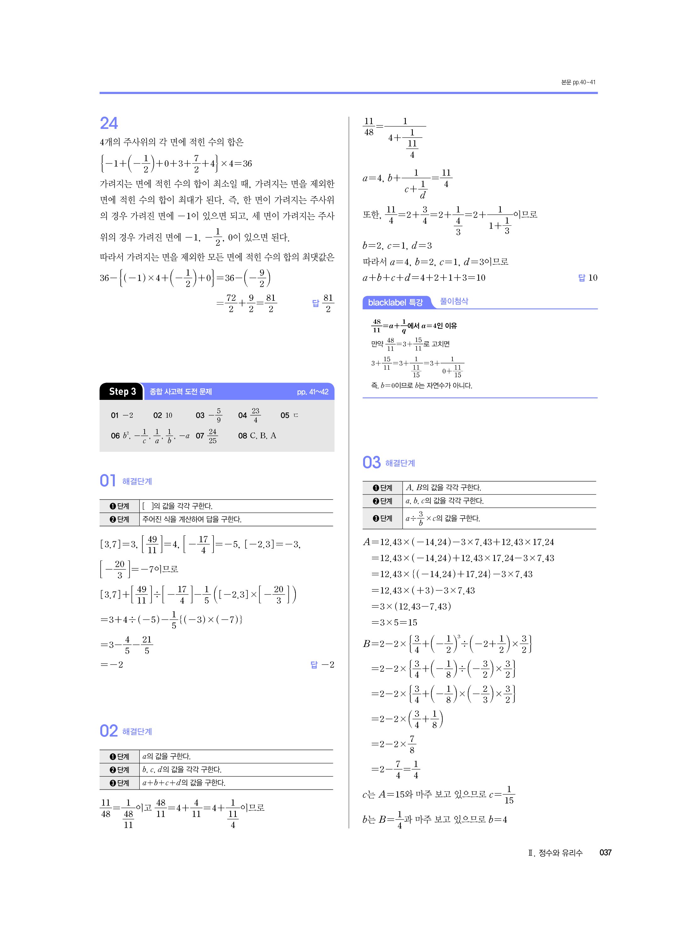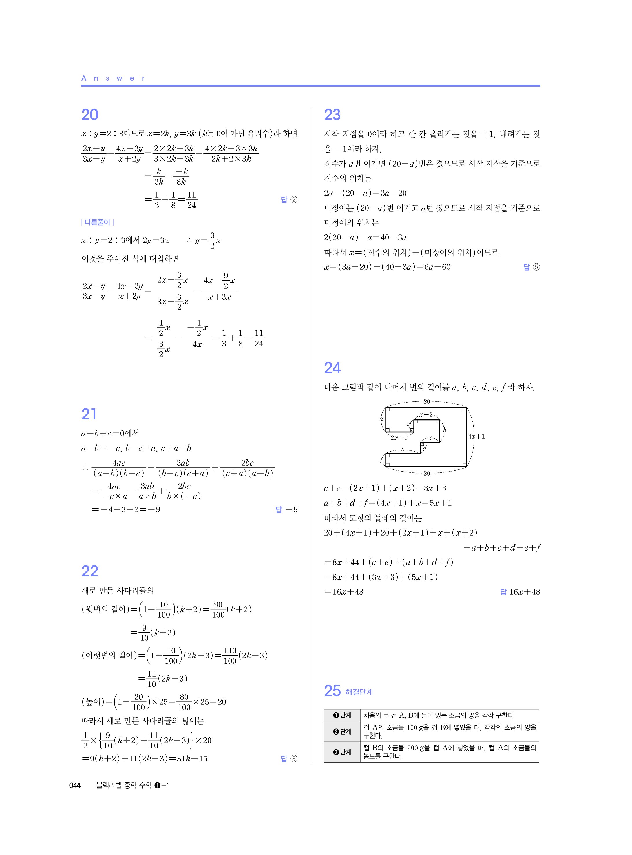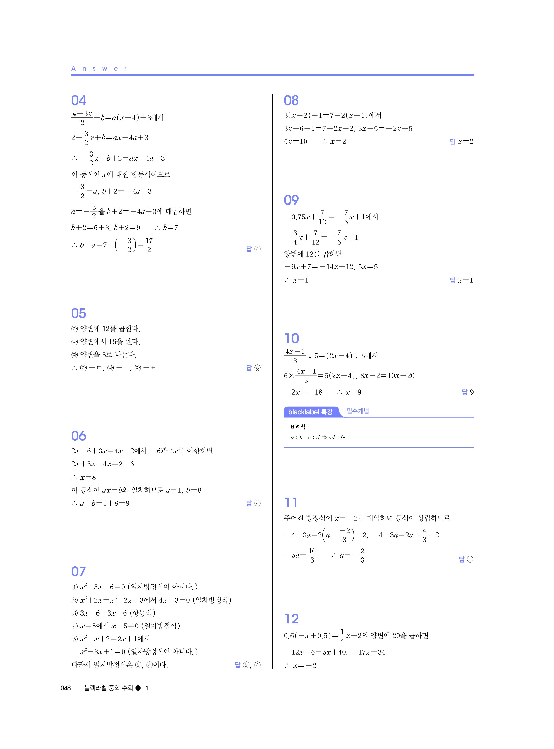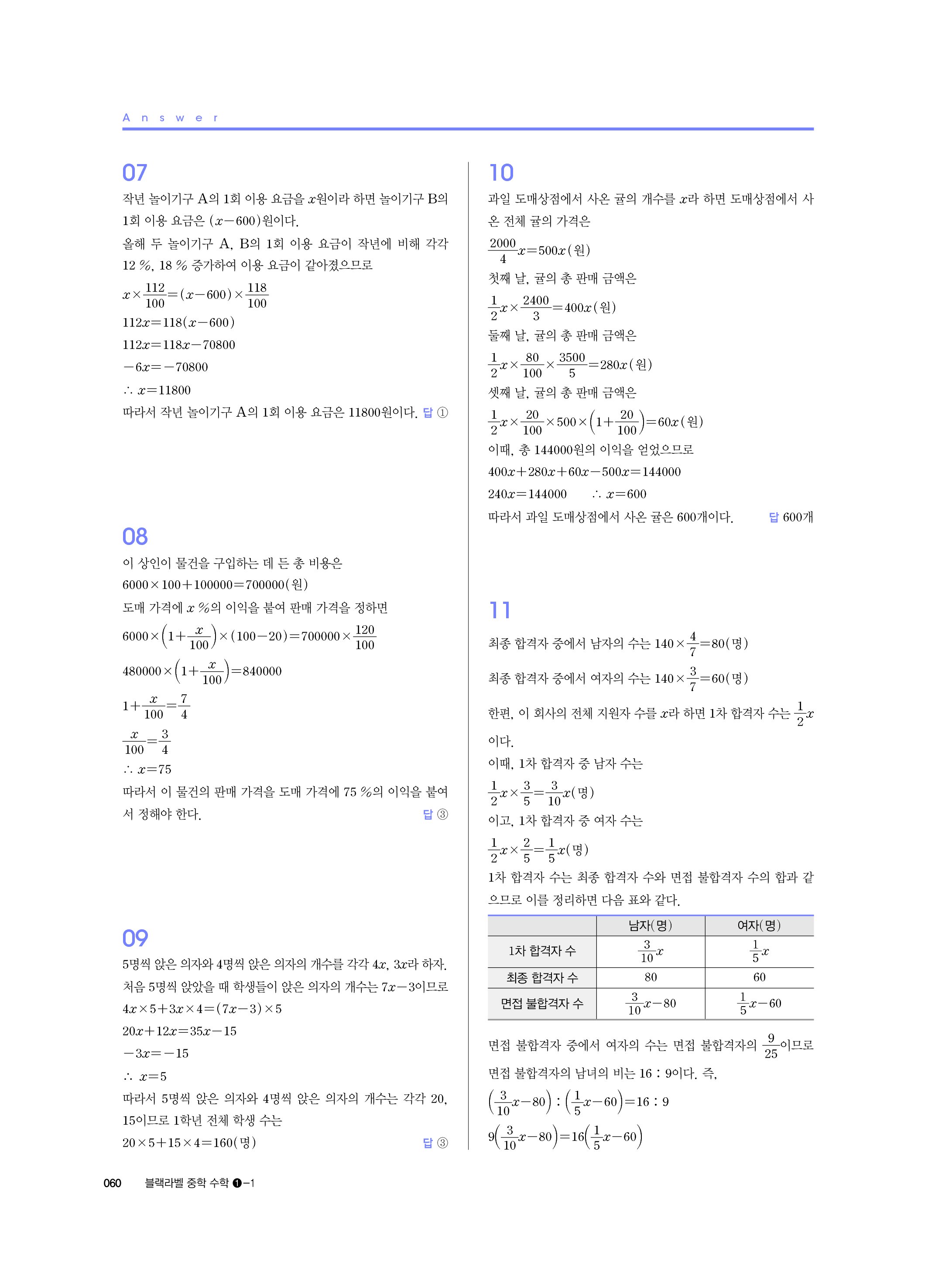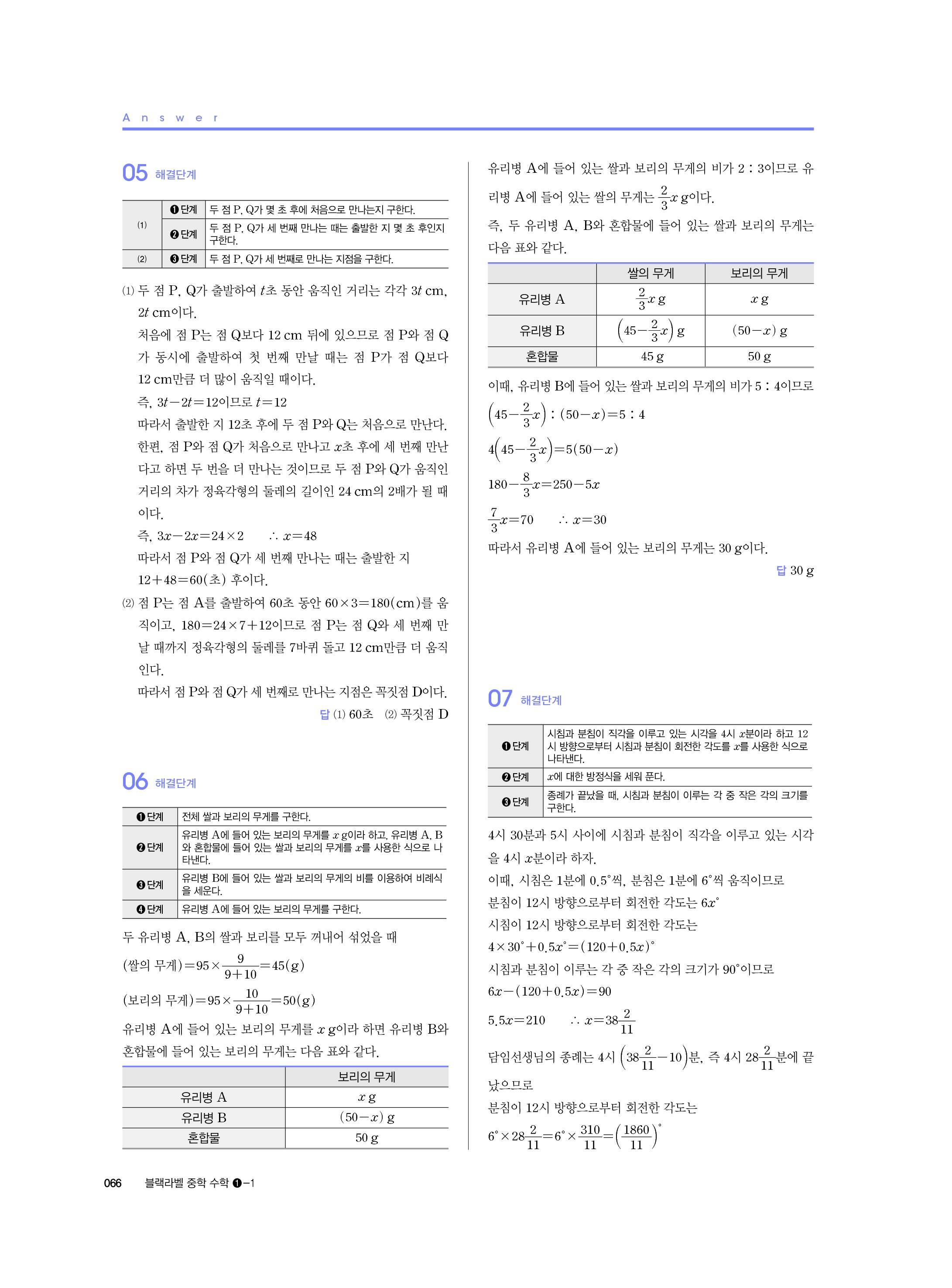 블랙라벨 중학수학 1-1 답지 해설 사진답지 빠른답지 모바일최적화 중1상
