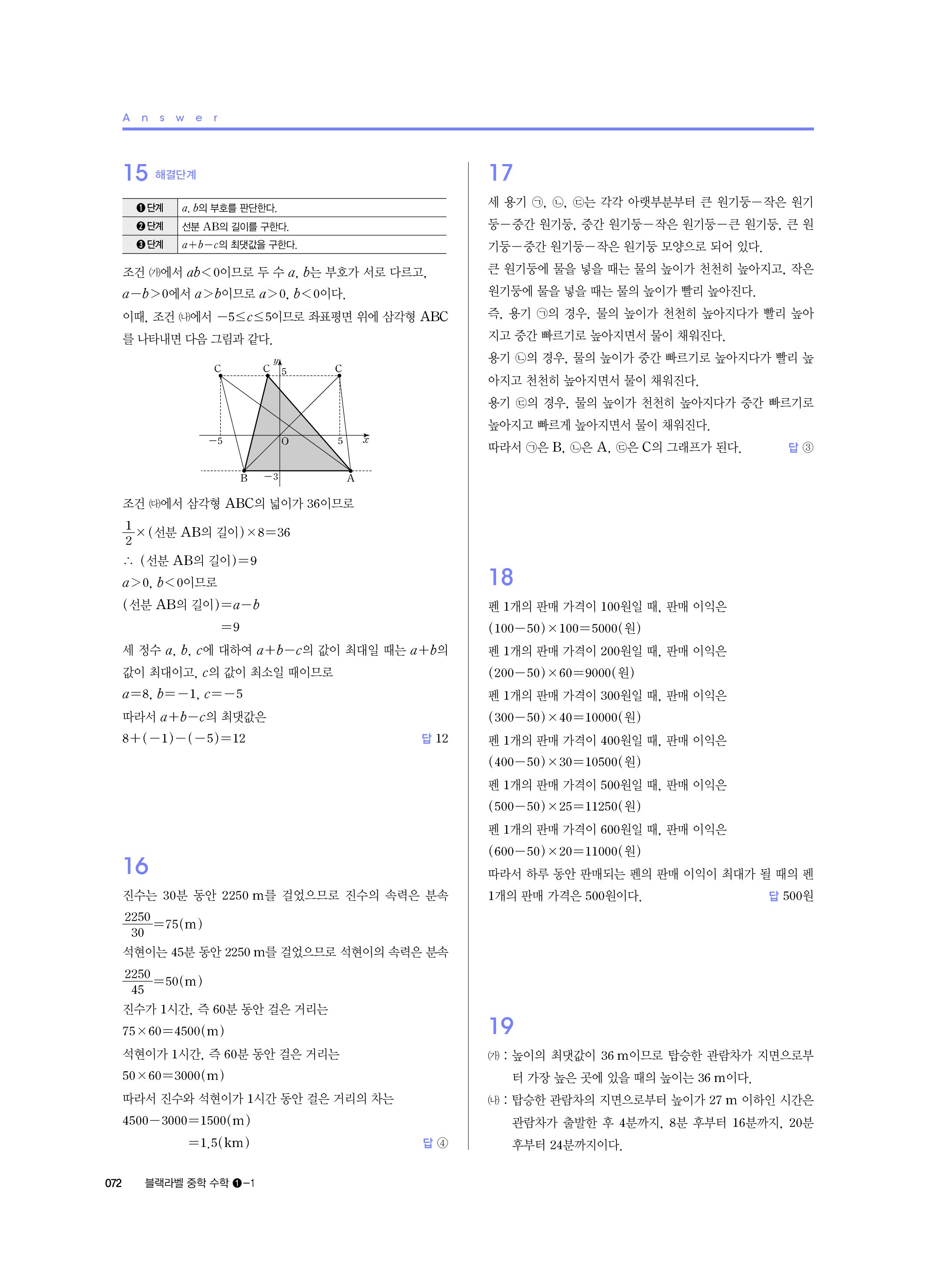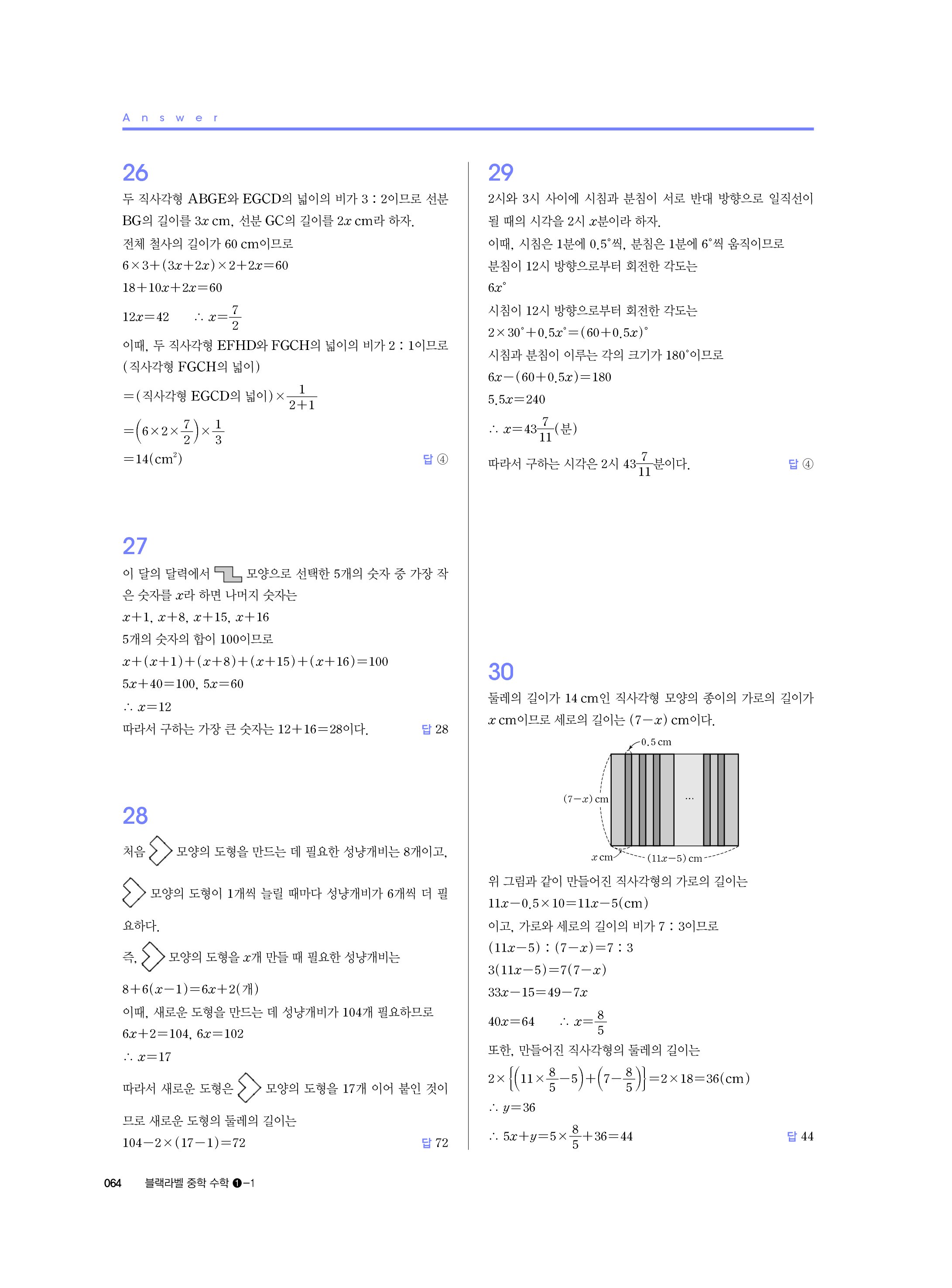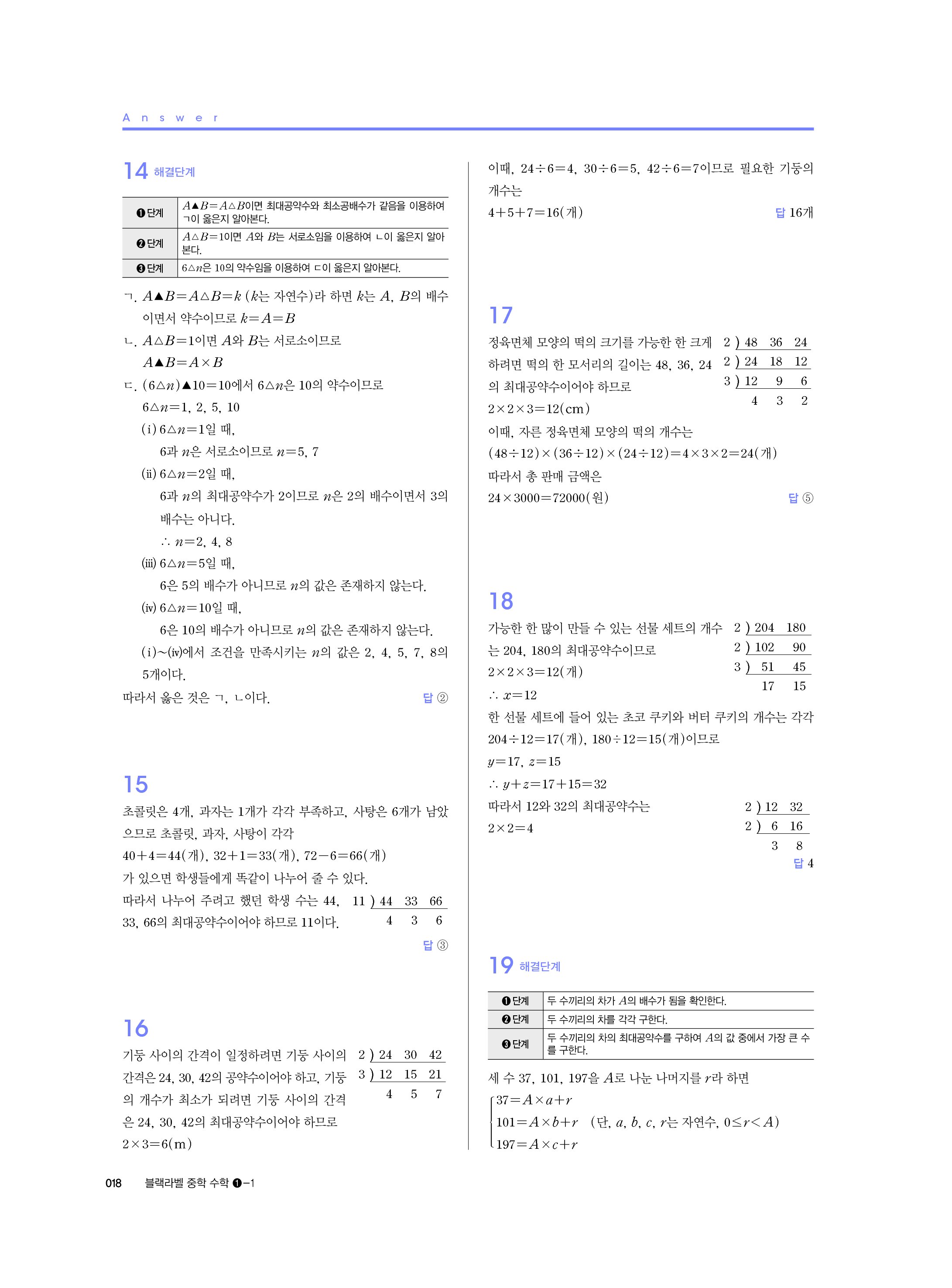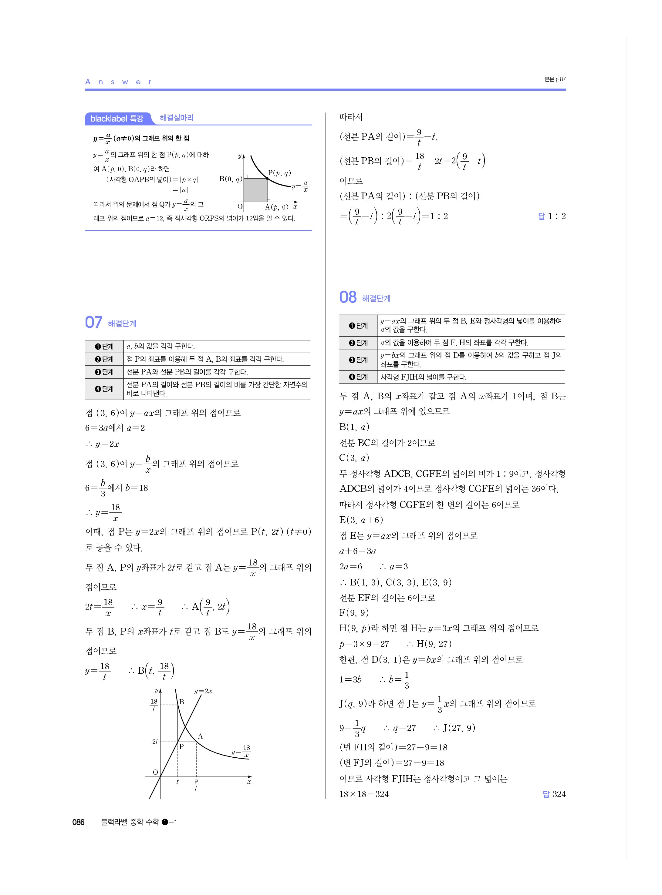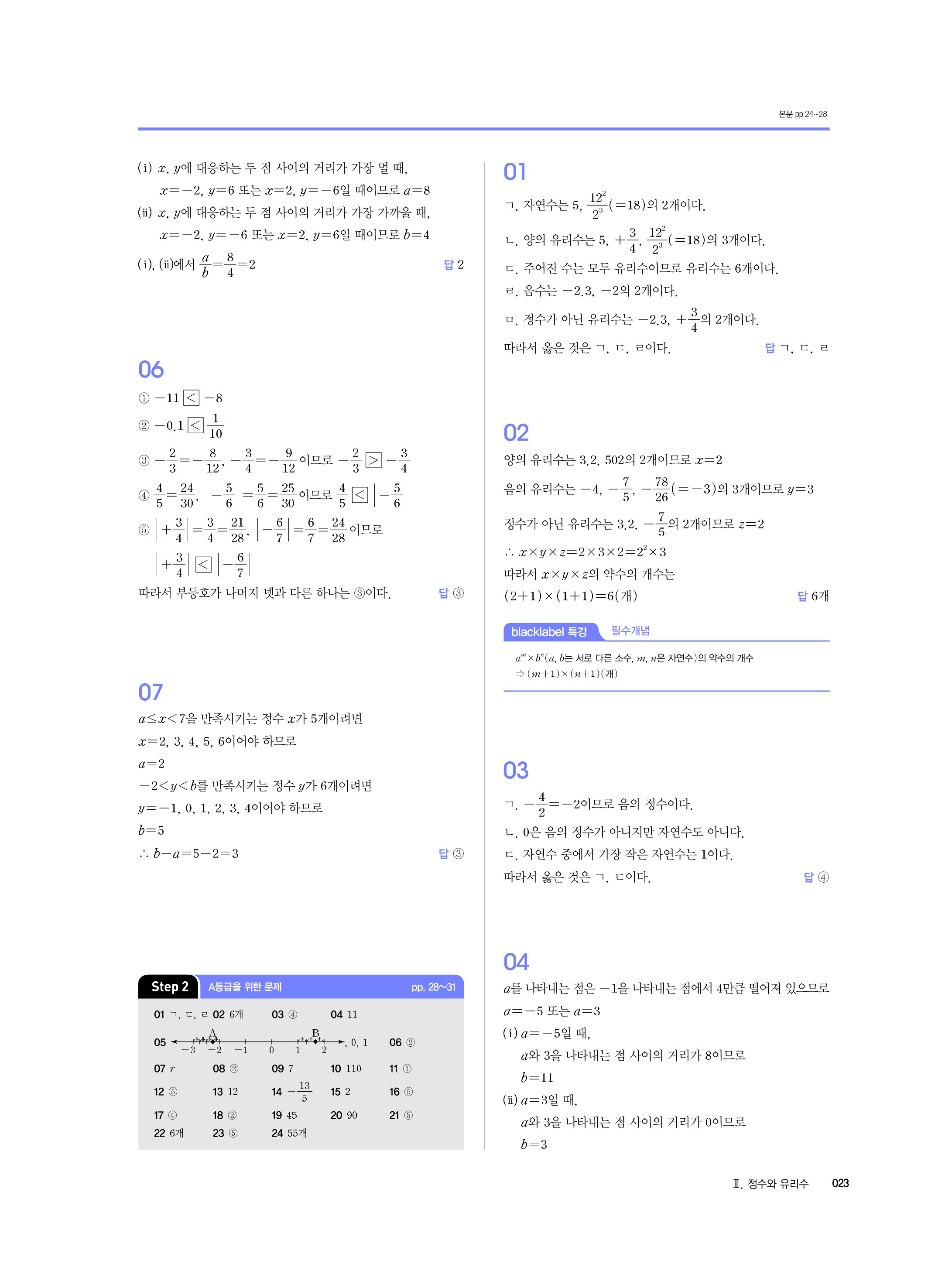 블랙라벨 중학수학 1-1 답지 해설 사진답지 빠른답지 모바일최적화 중1상